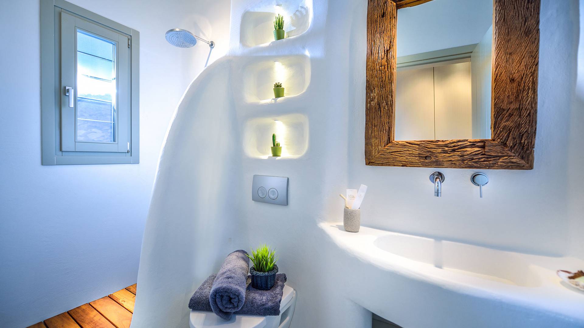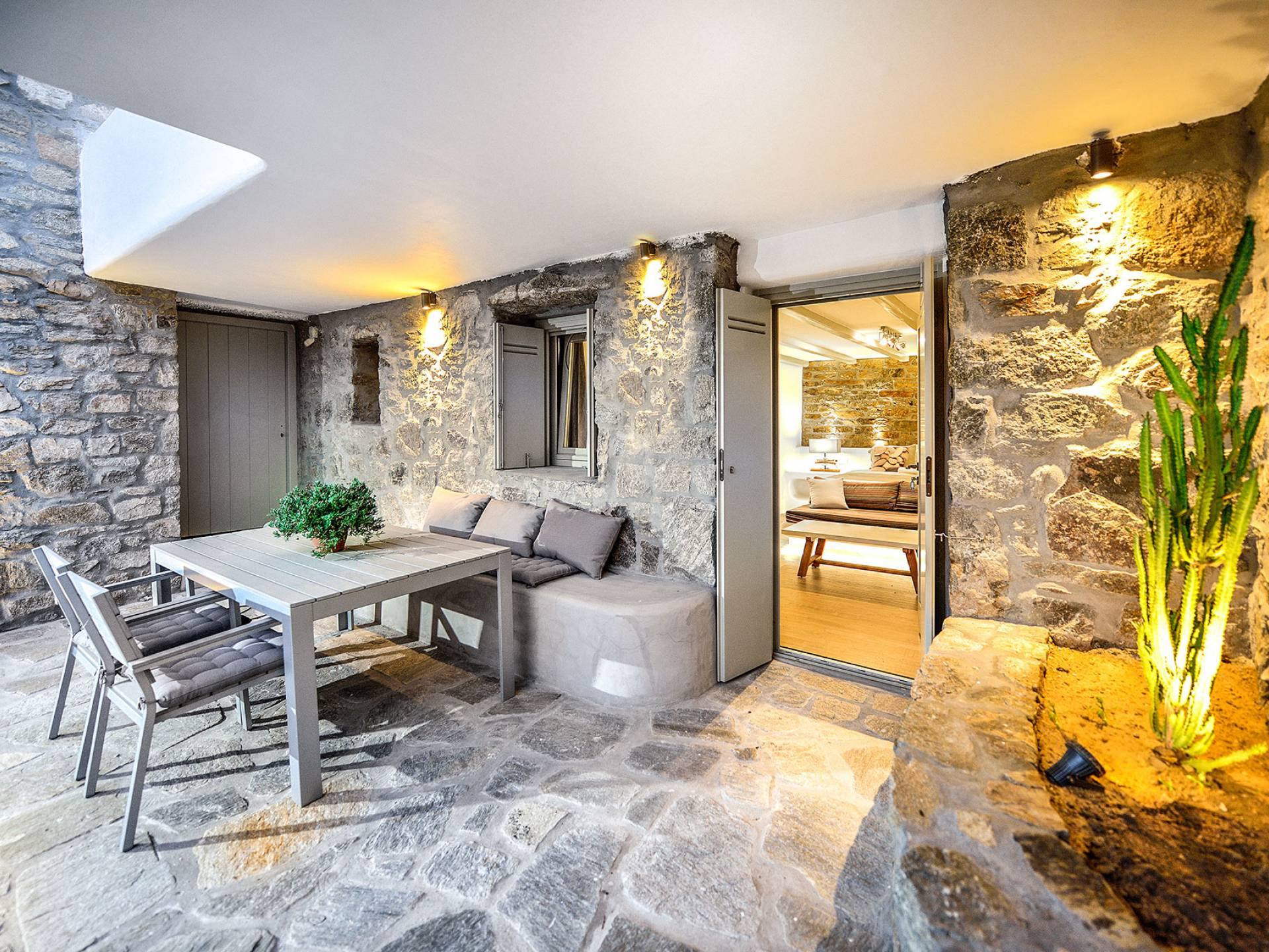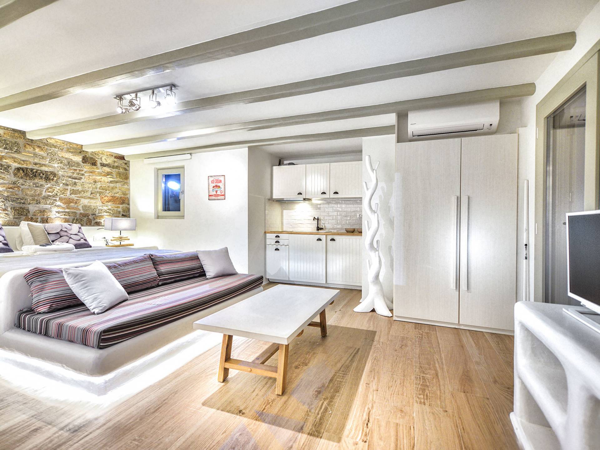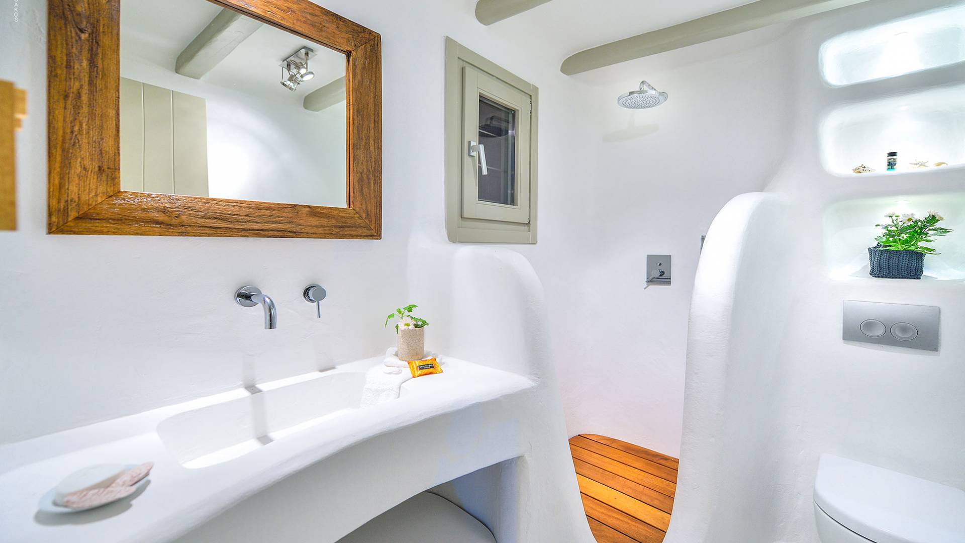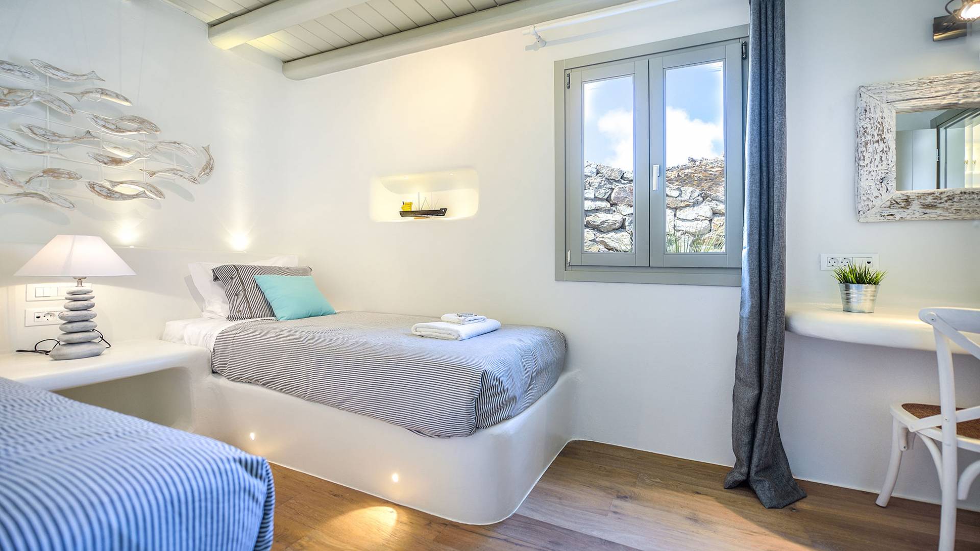 The 2.000 sq. m. plot with flowers, cactuses and other decorative plants give the guests an abundance of spaces to enjoy and offer the opportunity to relax on the exquisite outdoor area with its Infinity Pool (which is surrounded by grass), multiple large lounges and the dining area with a bar and a built-in BBQ. A private parking lot for up to six cars can also be found within the Villa’s grounds while the region of Elia is less than a 20 minutes' drive from Mykonos Town and the island’s airport.