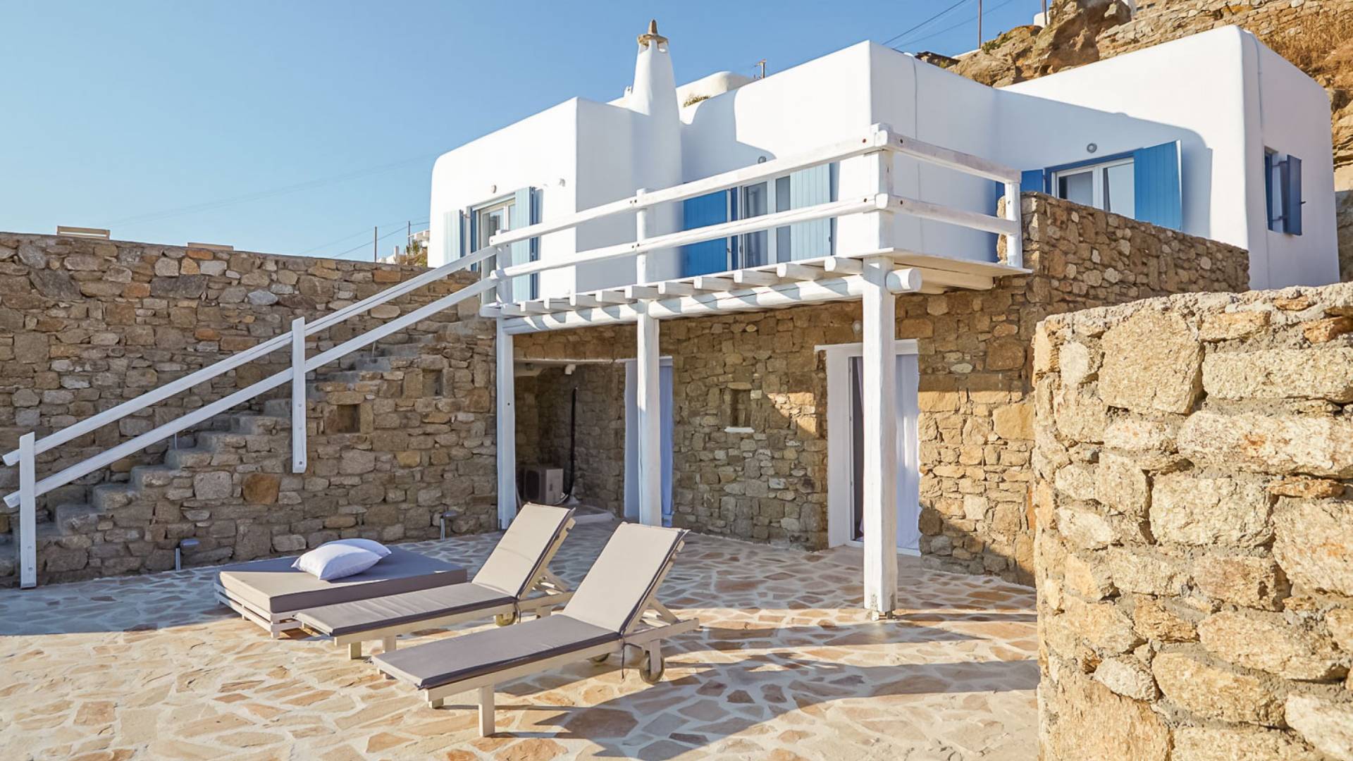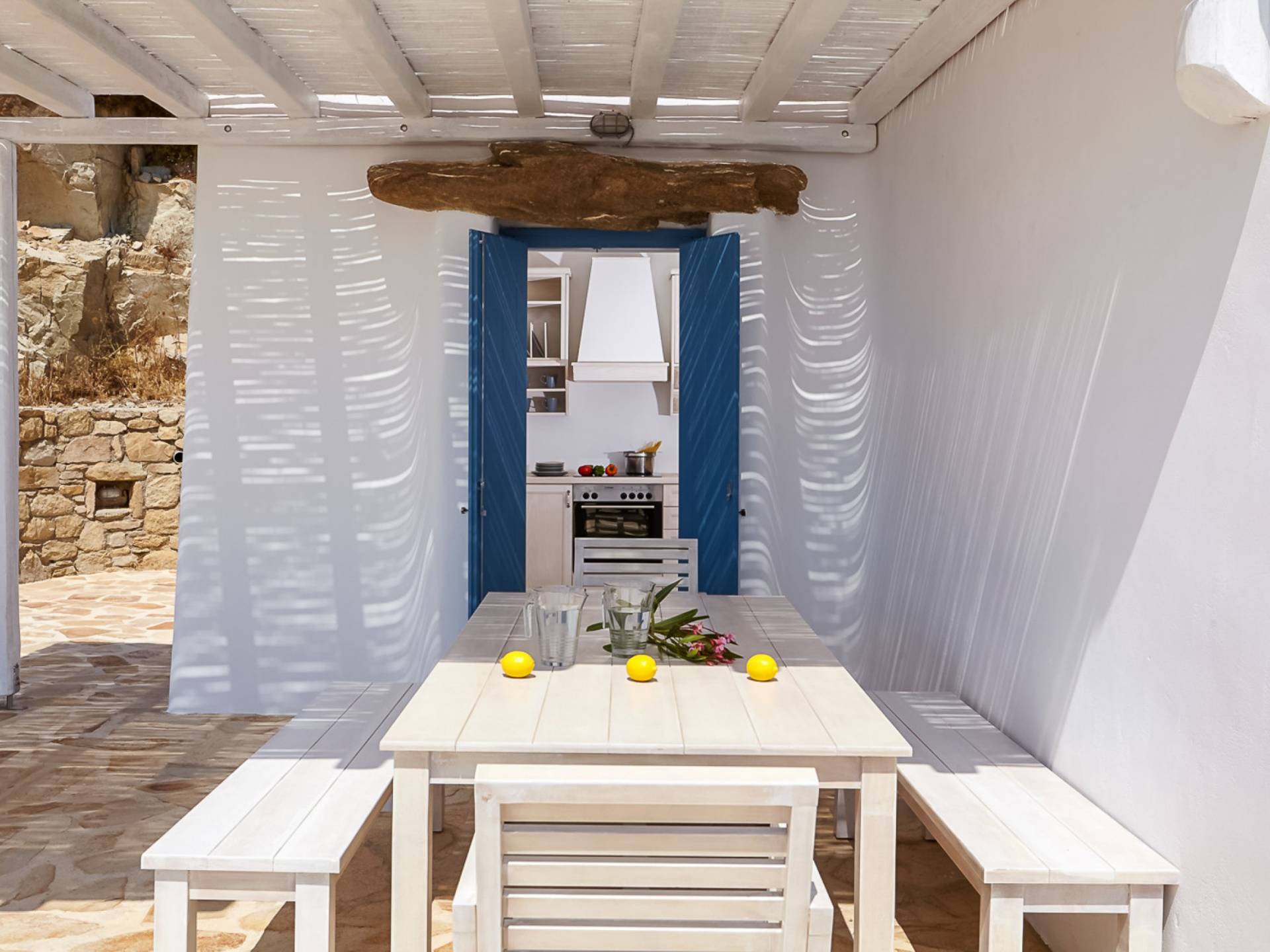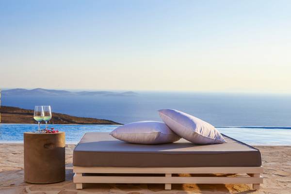 Green, stone, and sea are the basic elements of the landscape around you, and Moon Light Villa is the perfect base from where you can discover the panoramic, stunning view of Mykonos Island and the sea throughout the day. Without any doubt, you will notice its minimal and modern decoration and the comfortable, spacious interior areas upon arrival.