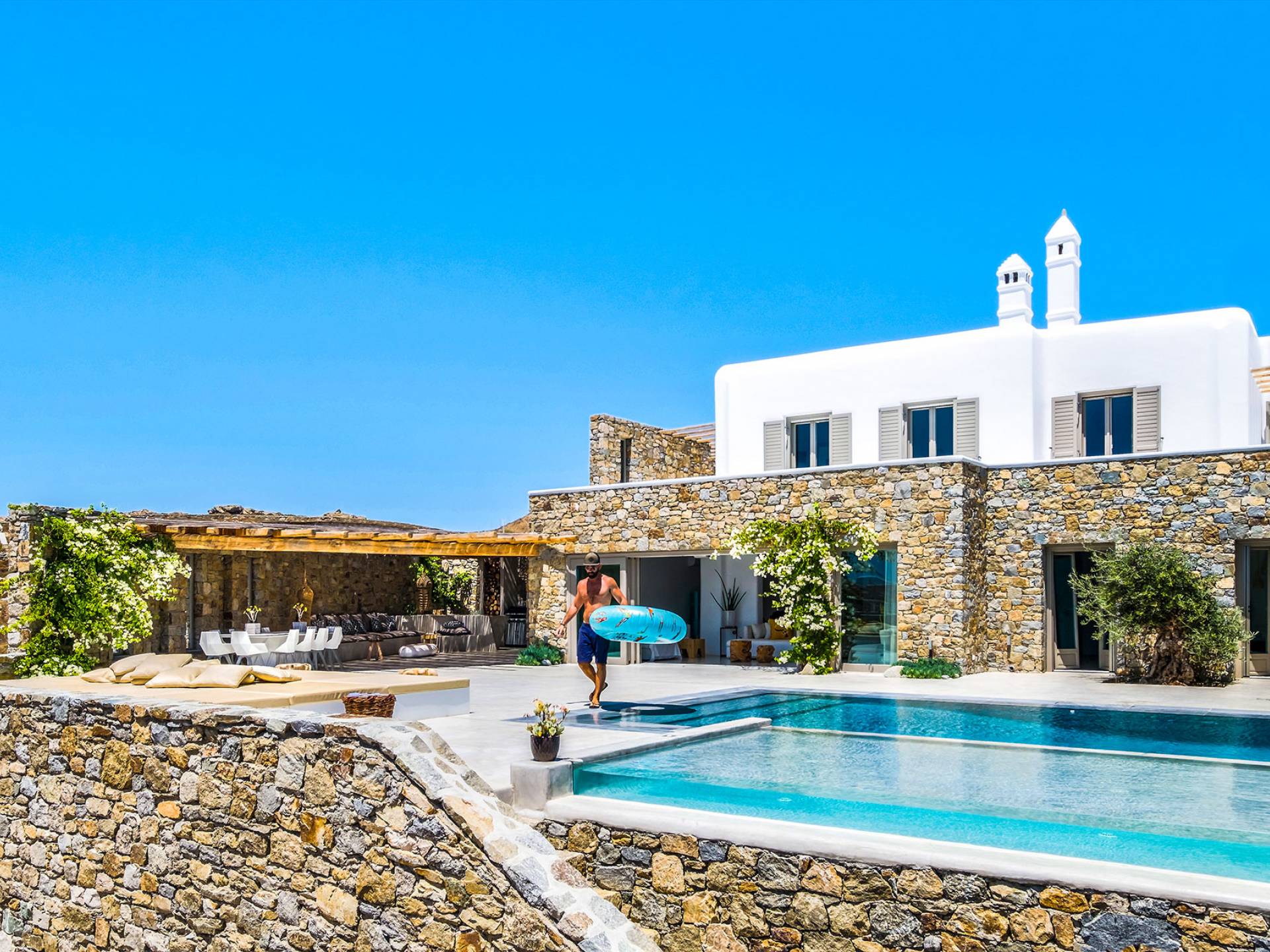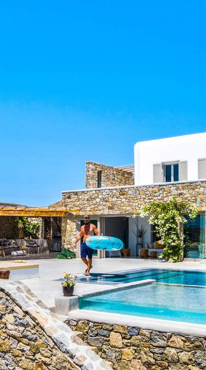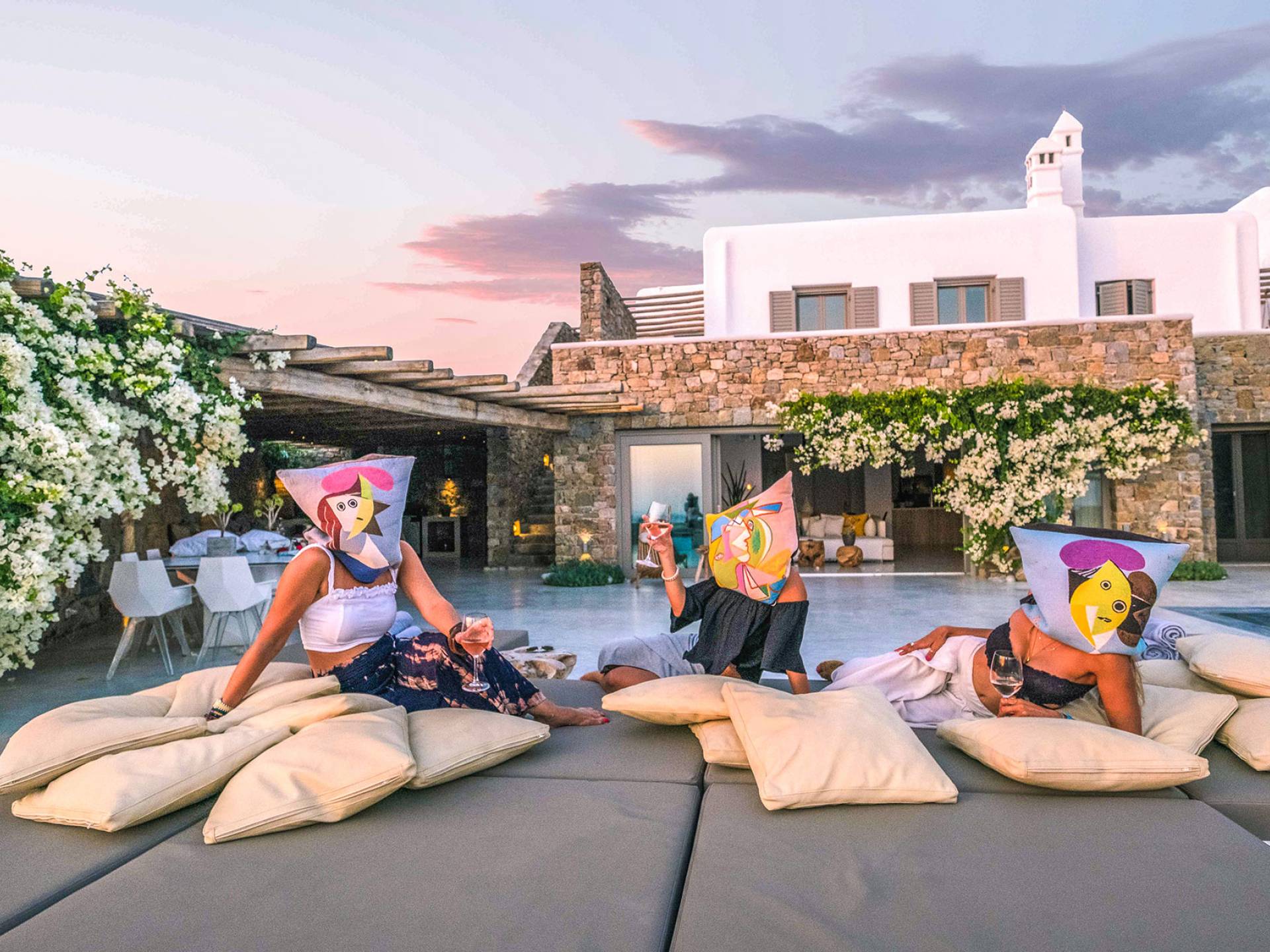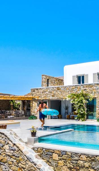 Villa Fleur De Sel Mykonos is a luxury villa rental with 6 bedrooms and a private pool. The best 360 view of the island is 5 minutes away, right at the lighthouse, and the town is not more than a 10-minute ride. And the best part is, we drive by a mesmerizing view of the island that only Kastro, Fanari, residents get to enjoy every day.