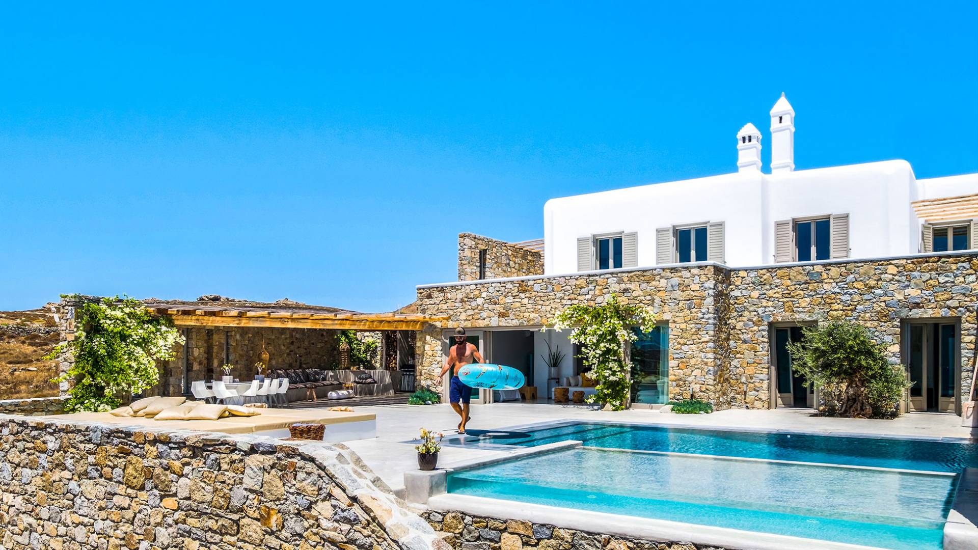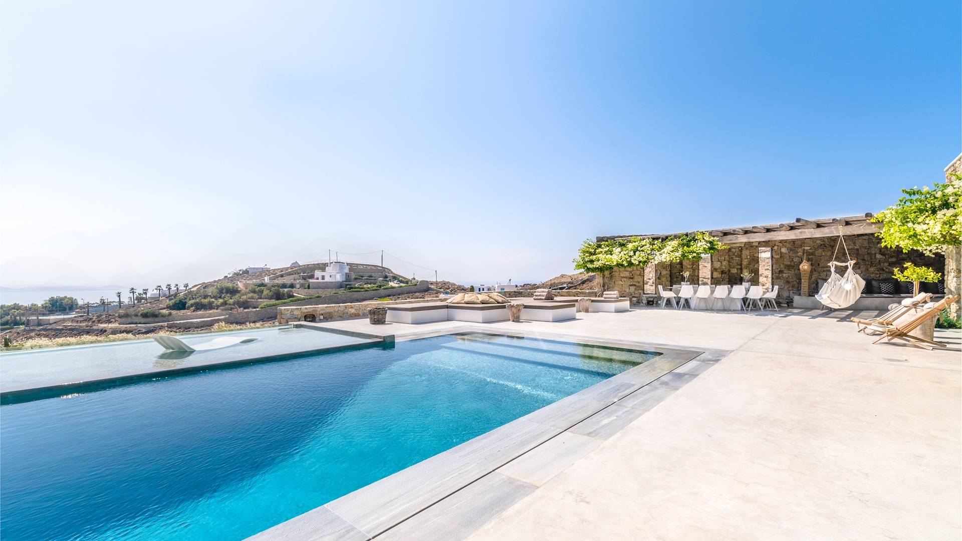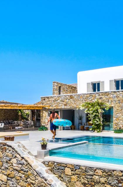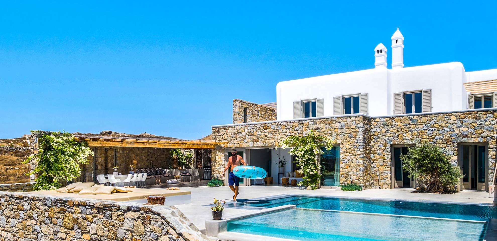 Villa Fleur De Sel Mykonos is a luxury villa rental with 6 bedrooms and a private pool. The best 360 view of the island is 5 minutes away, right at the lighthouse, and the town is not more than a 10-minute ride. And the best part is, we drive by a mesmerizing view of the island that only Kastro, Fanari, residents get to enjoy every day.