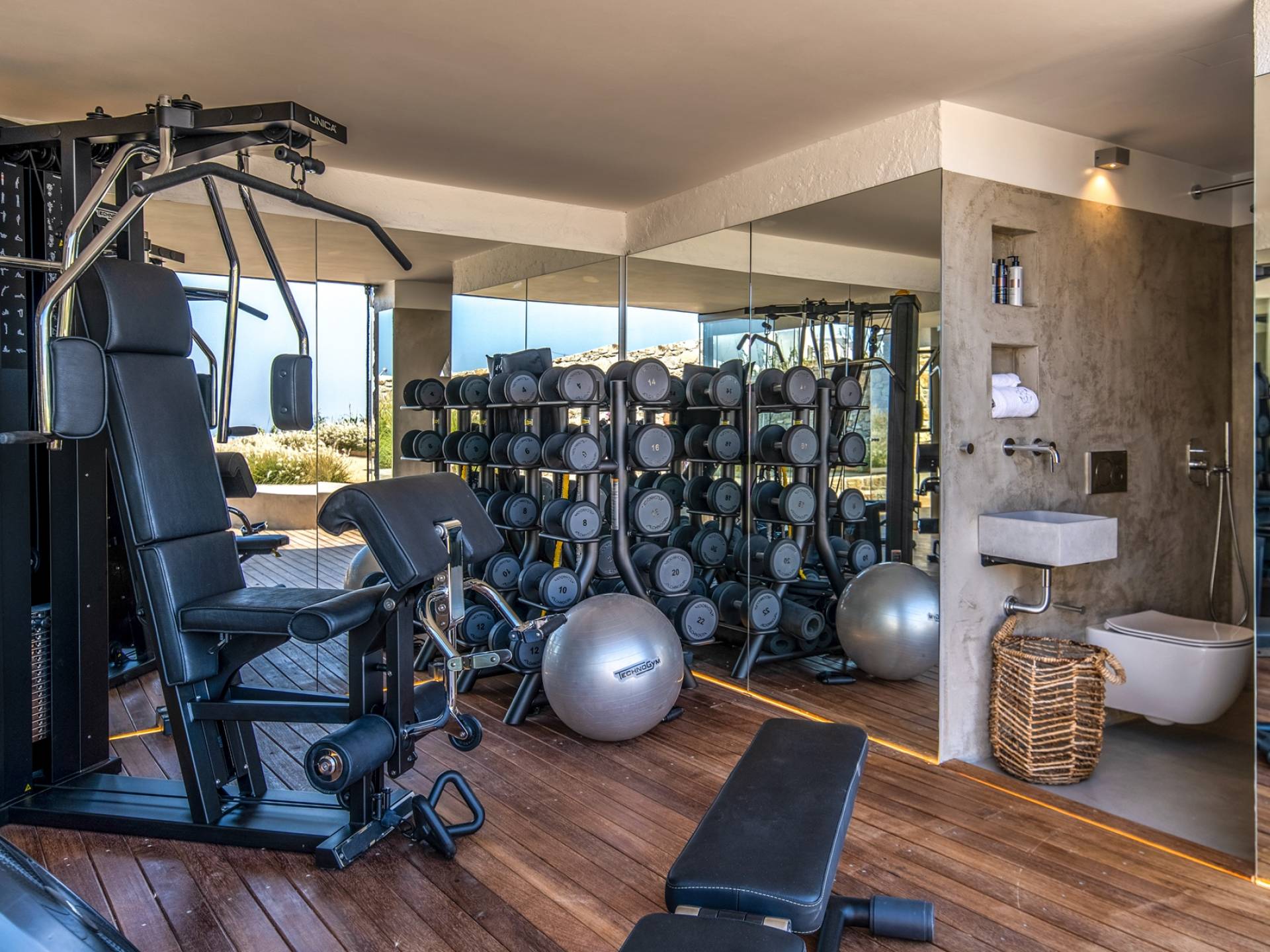 Consistency is important, so all the rooms have the same furniture. What makes each special is the space, spot, and view. All the first-floor bedrooms have direct outdoor access to the terrace sunbeds, hammock room, stairs to the rooftop and stairs to the pool, the “Pergola” table, and sunbeds on the ground floor. A garden terrace of 200 sqm with a bracero lounge area with a circle seating for 12 guests, "a pétanque piste game" (15m/4m), an indoor Gym with a toilet and shower, and a garden. The typical scene includes music in the air with chatter and laughter, clinking drinks on the main pool’s stairs, a floating inflatable with feet splashing water, and tan bodies lying in the extra platform pool with their heads resting above water. We also nap on the double sun beds spread between the ground and the 1st floor.