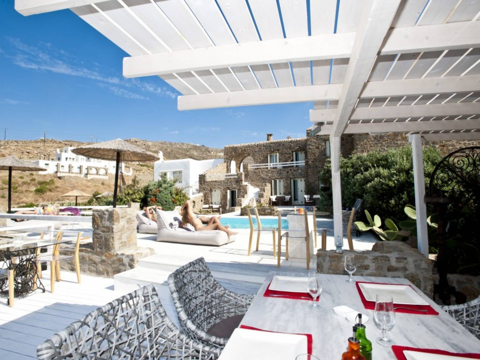 Castella Rossa Villa Mykonos is a luxury villa rental with 4 bedrooms and grand shared pool. Castella Rossa Villa is located in Ftelia, Mykonos. View photos, rates and info here.