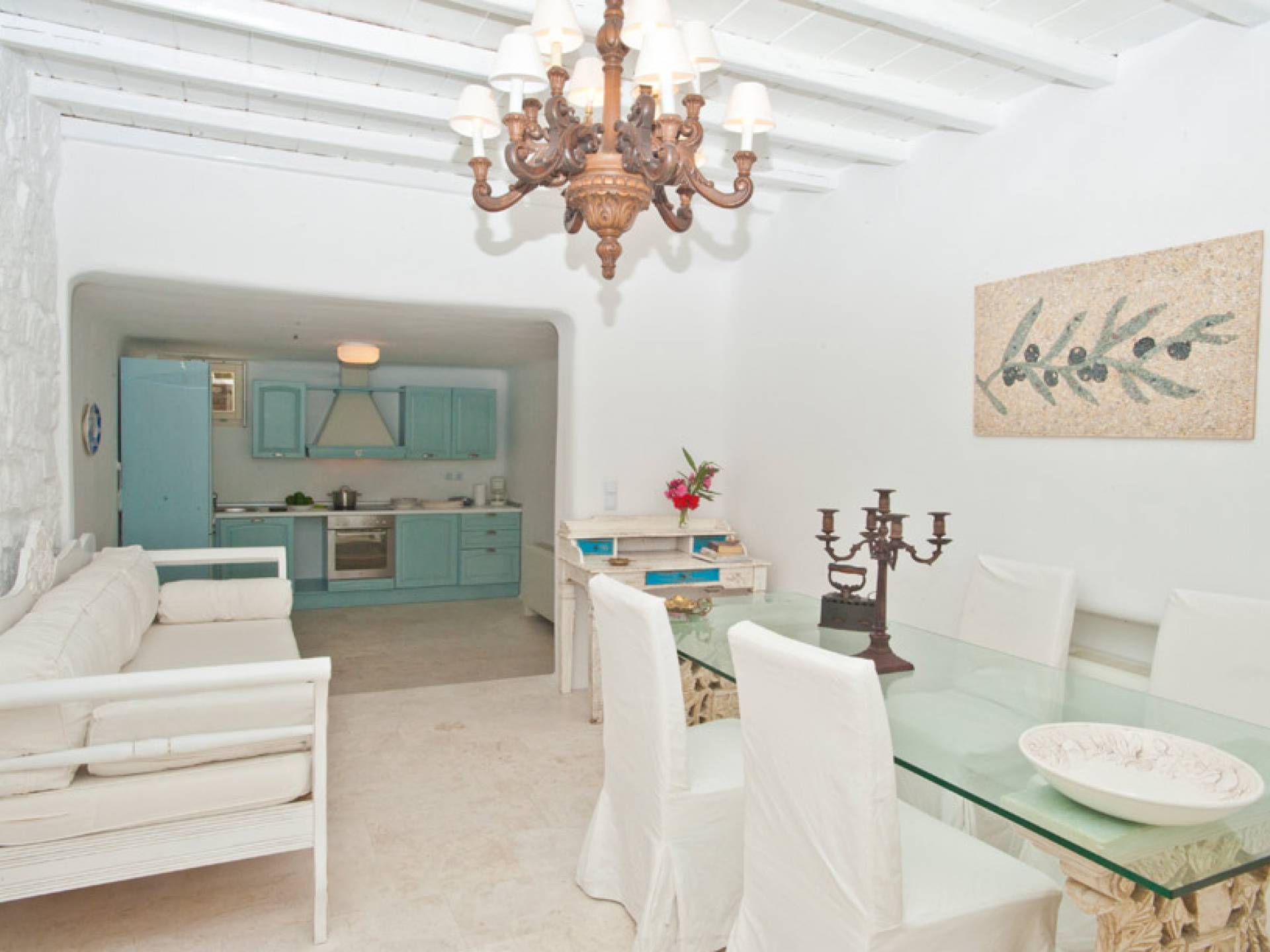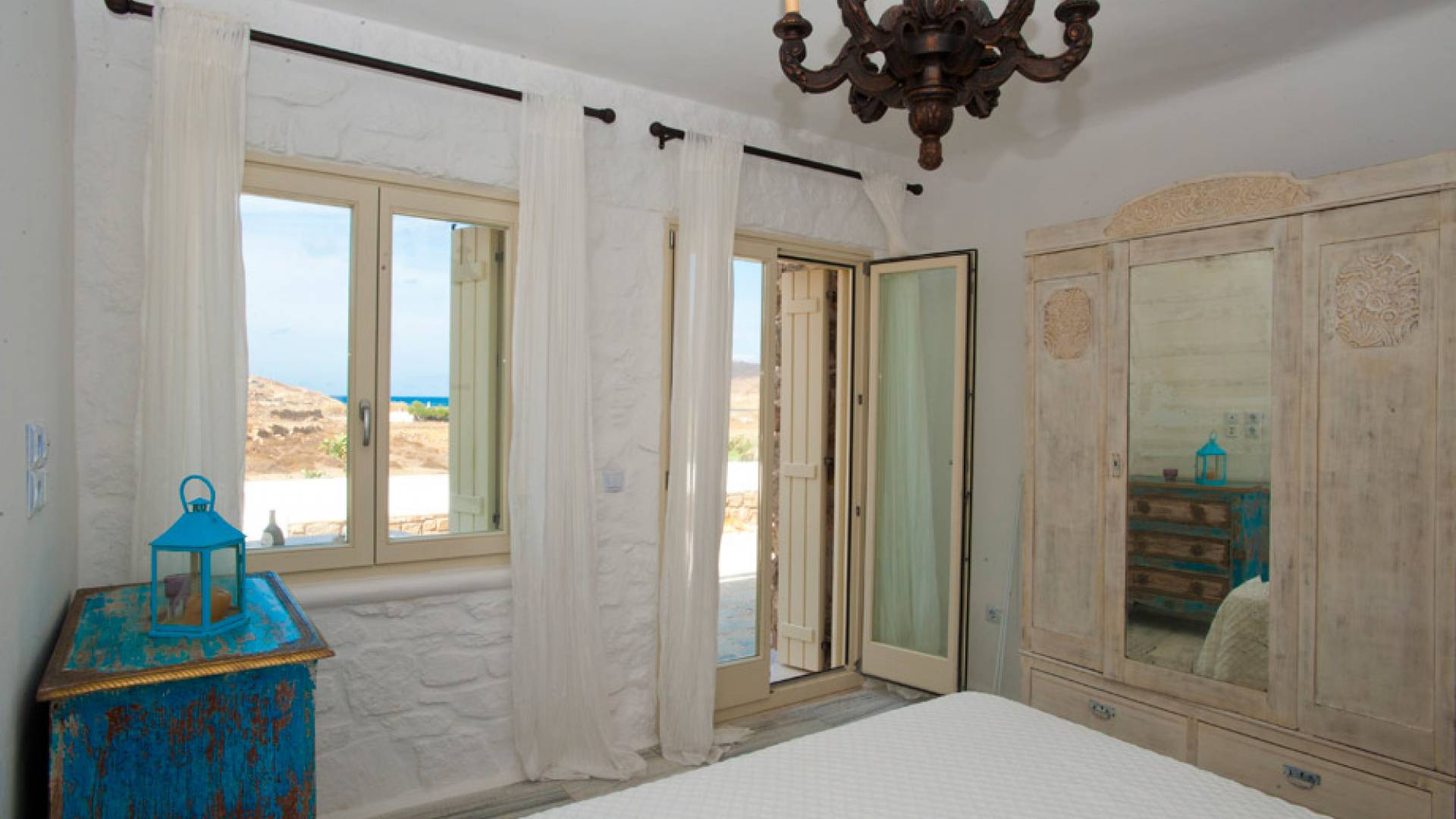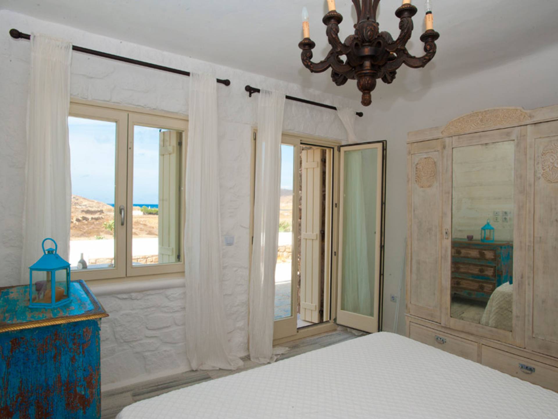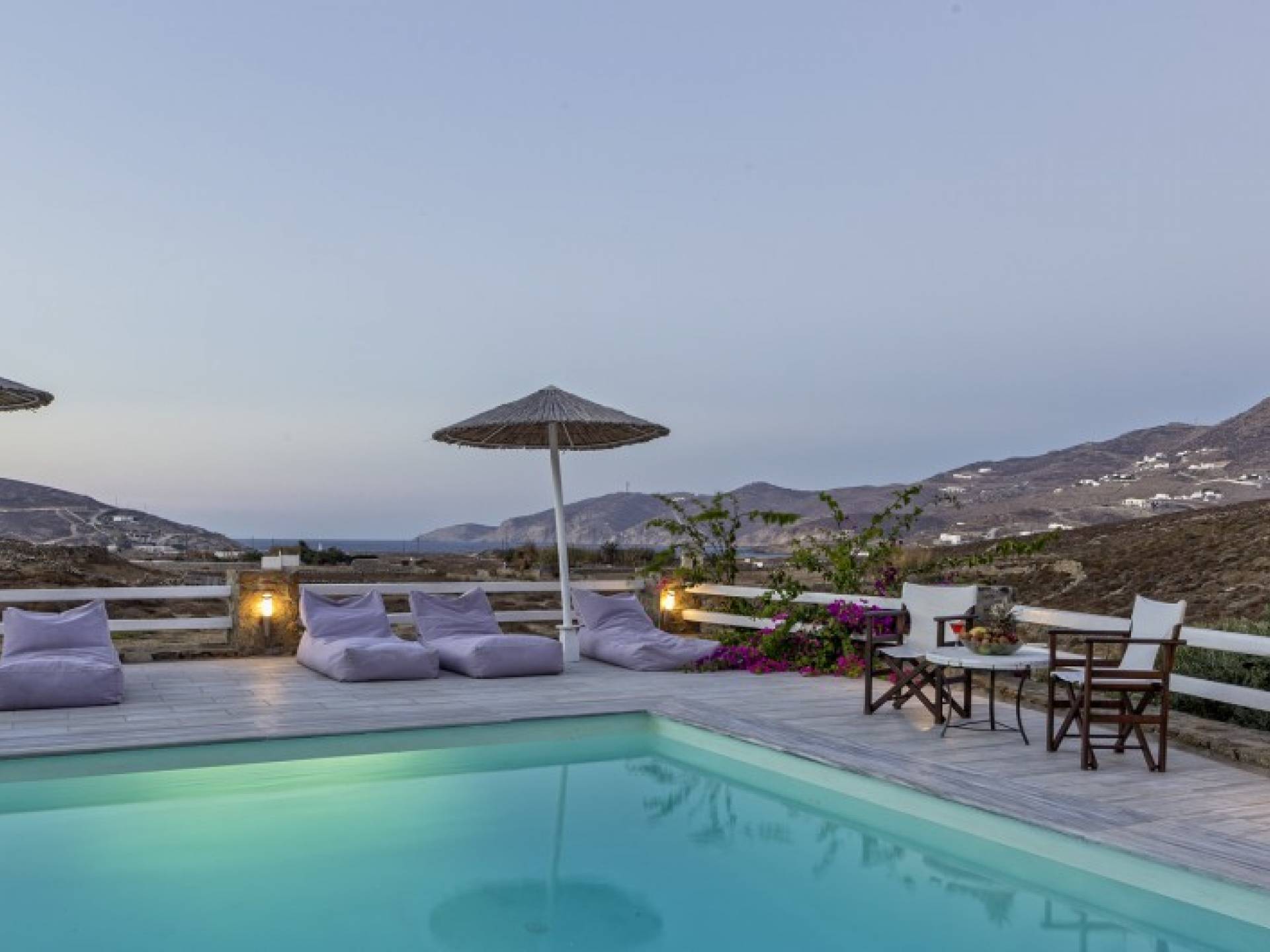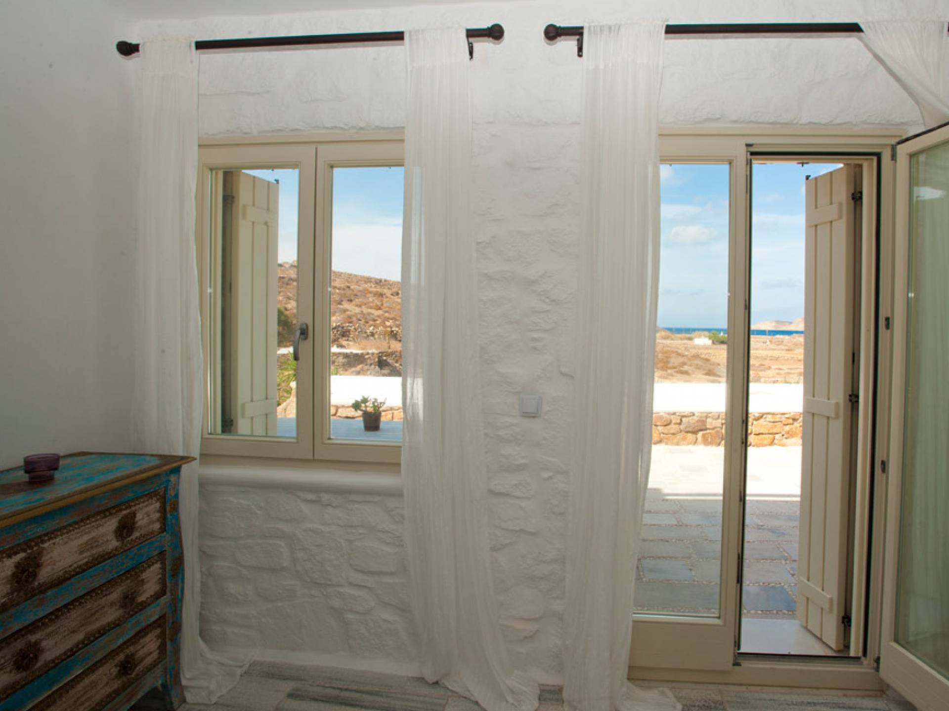 Located among fields above Ftelia Beach, Mykonos Dream Villas-three secluded, very large brand new 2009 built modern villas - offer fantastic sea & countryside views with guaranteed tranquility. The harmonious composition of stone, marble & wood creates the unique atmosphere of the outdoor area. Stone sills provide a certain degree of privacy among villas and residents. Inside, beautiful antique pieces, paintings, arches, and silk-lined curtains decorate the many rooms with harmony and charm.