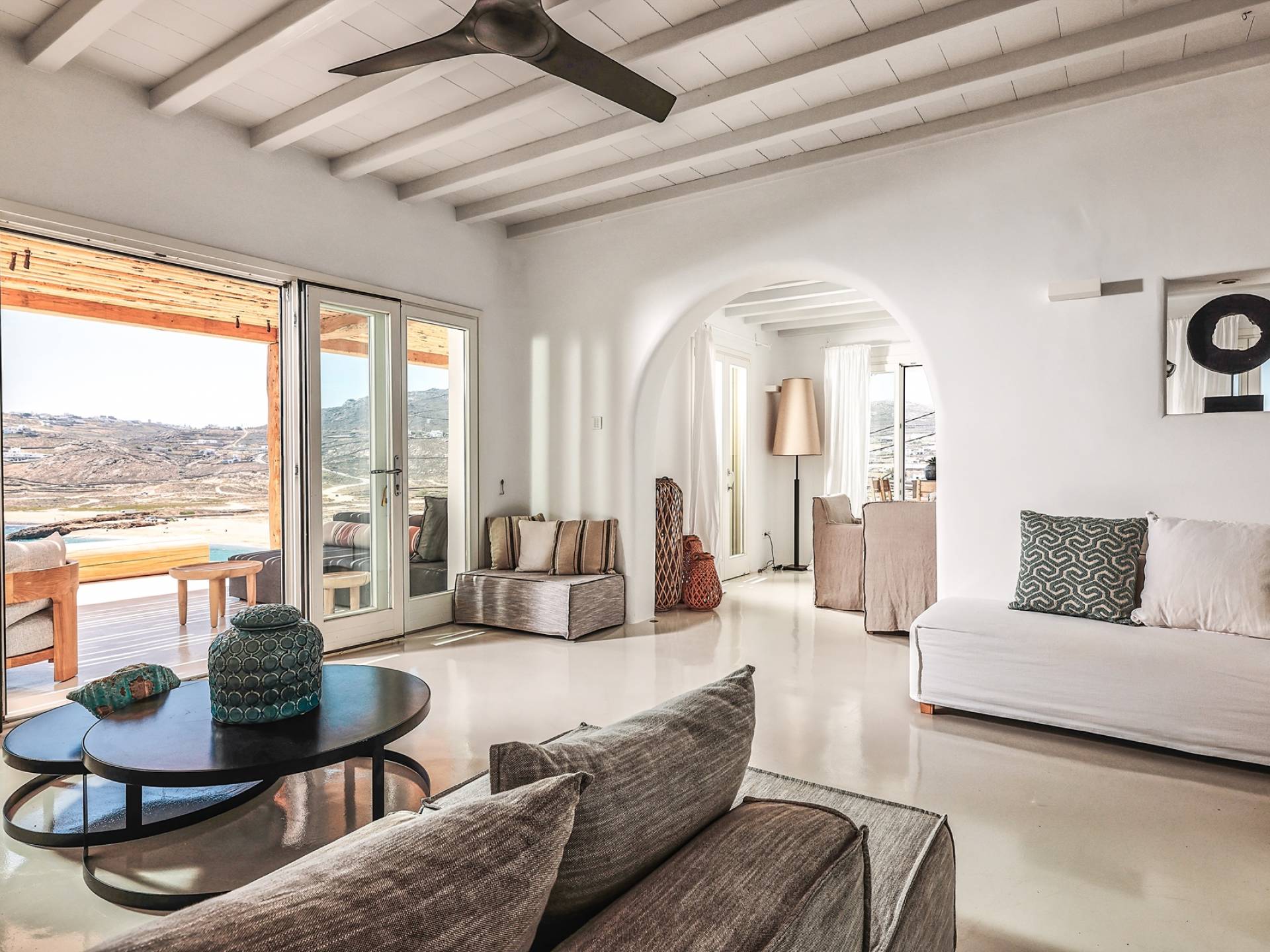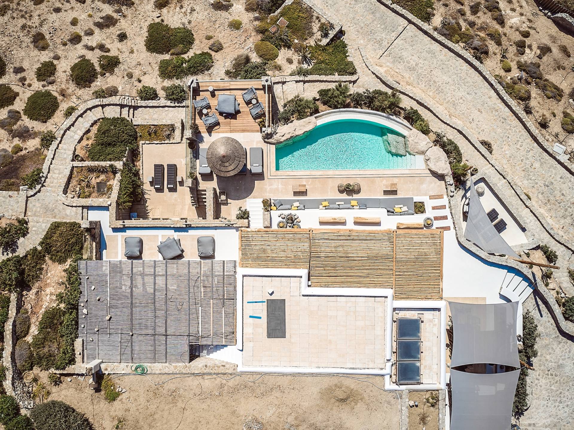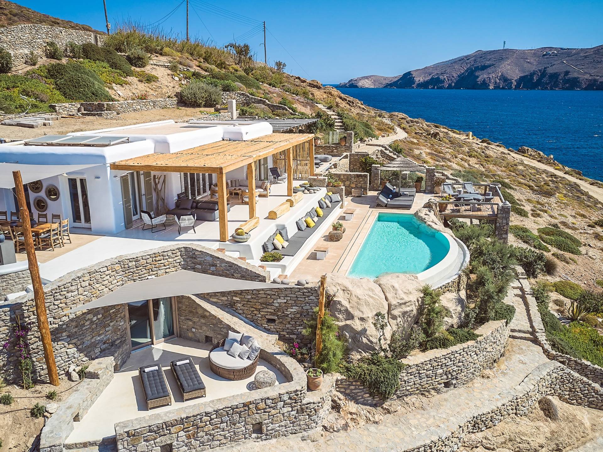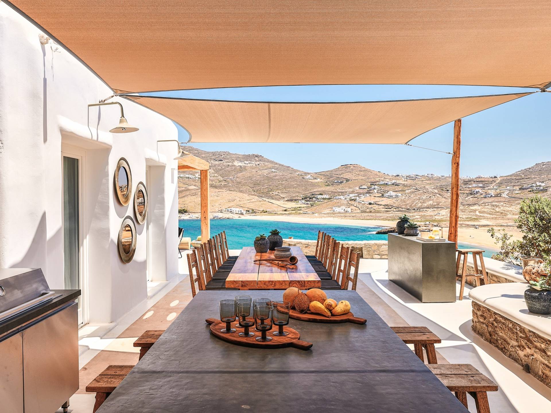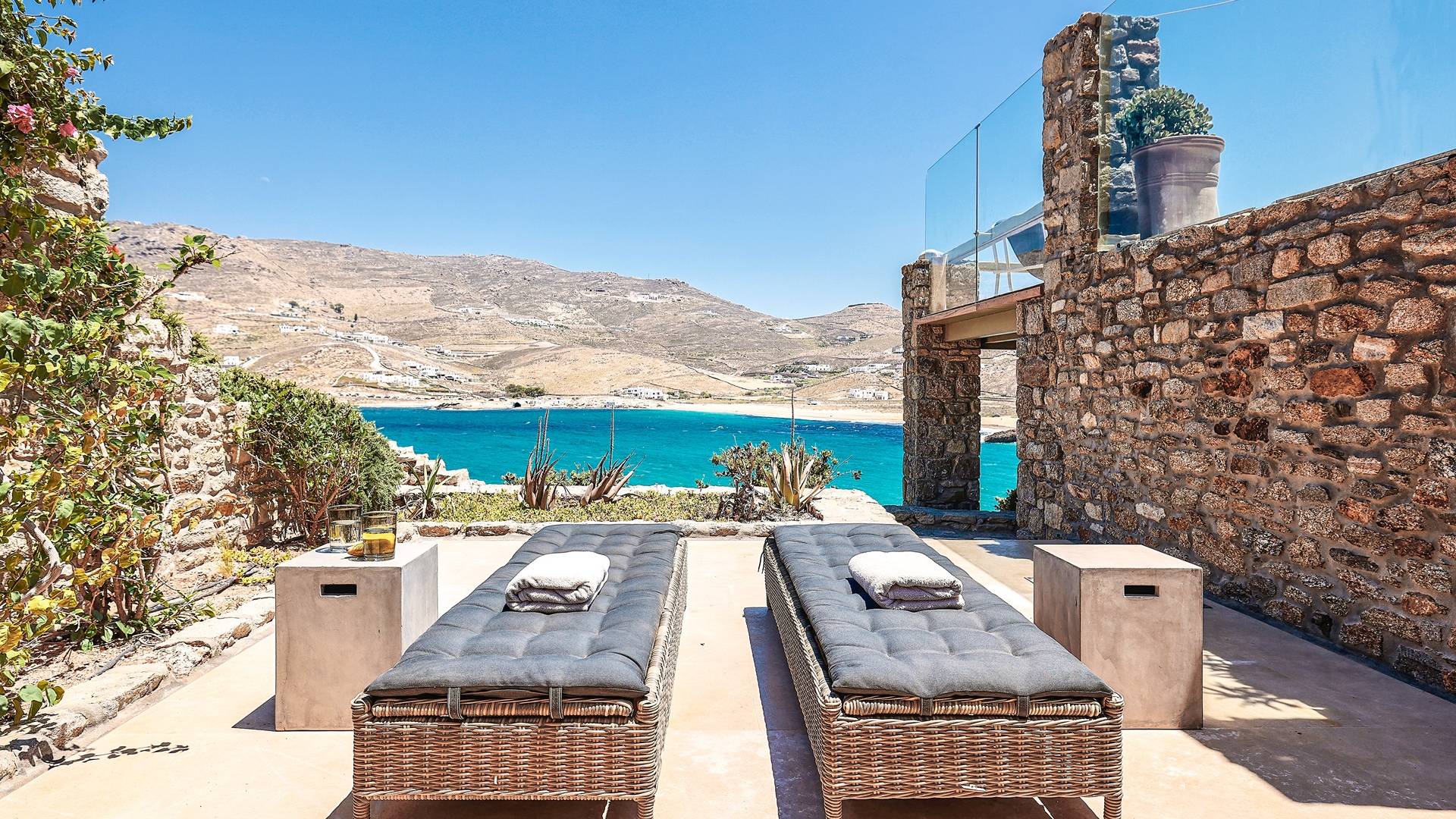 The villa praises traditional architecture, incorporating a mixture of stone and concrete, and is tastefully decorated with warm colors. At the same time, it invites guests to unwind in the multiple lounge areas and the BBQ/dining area of the expansive terrace and gives the opportunity to the most athletic ones to remain active at the outdoor gym area, while gazing at the crystal-clear Aegean waters.