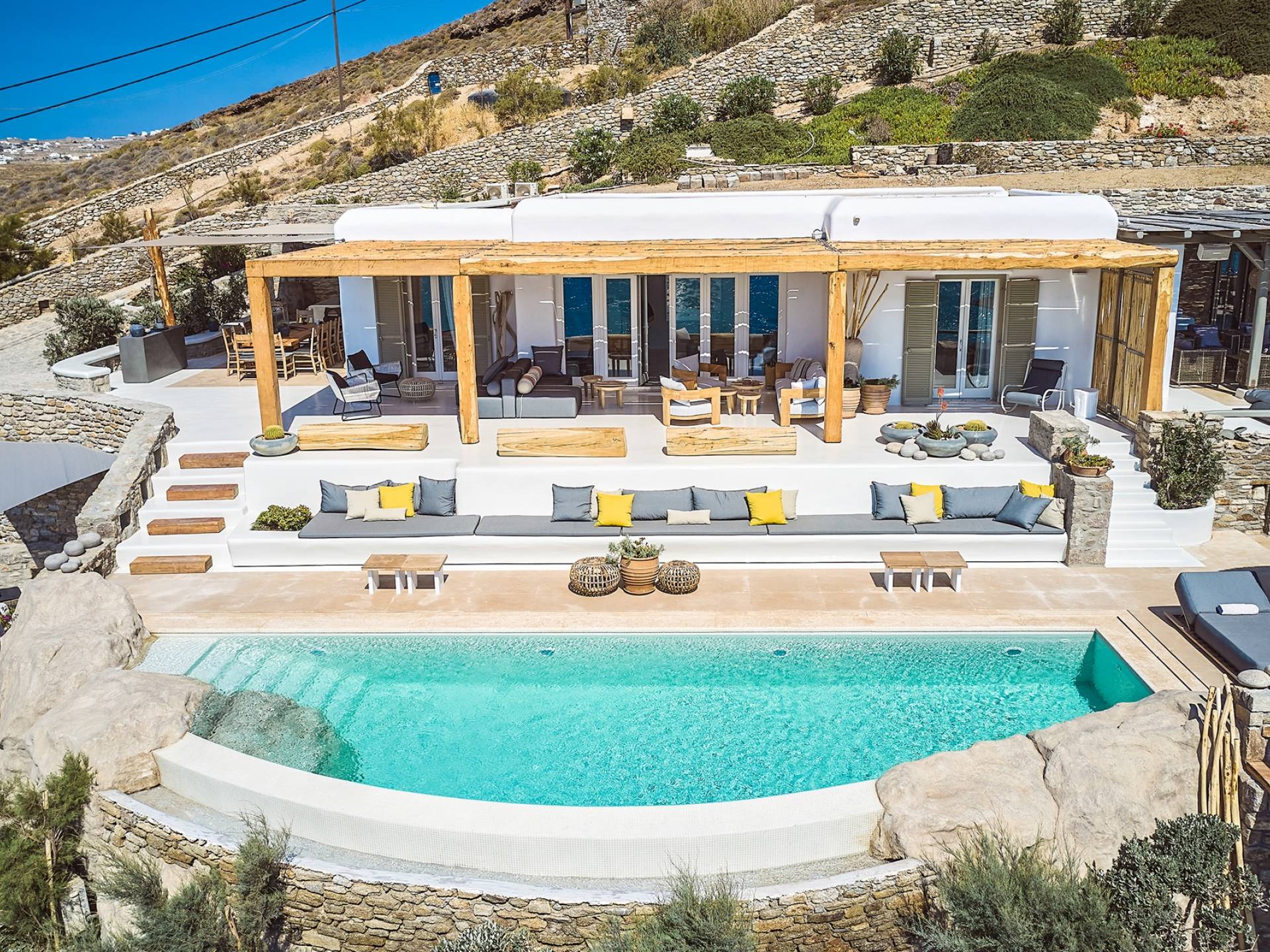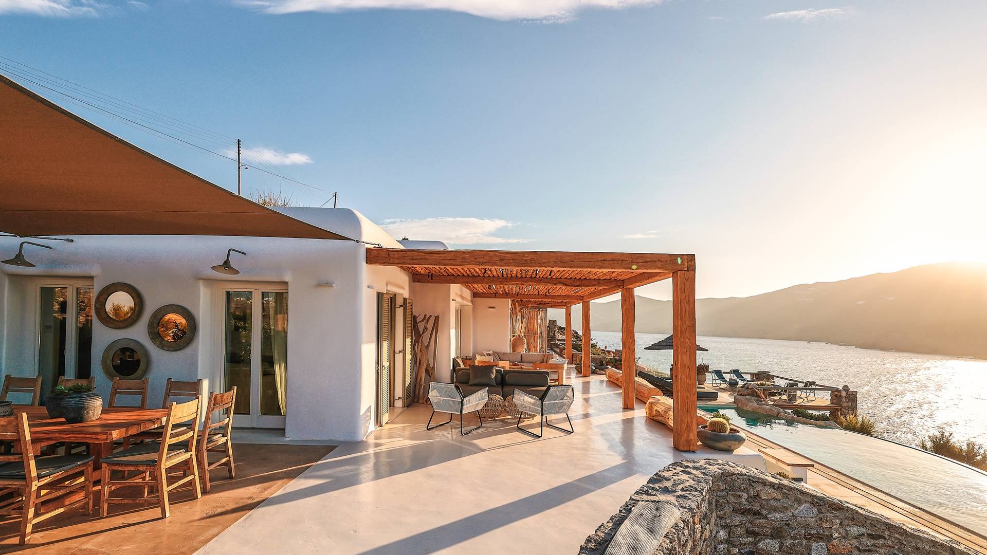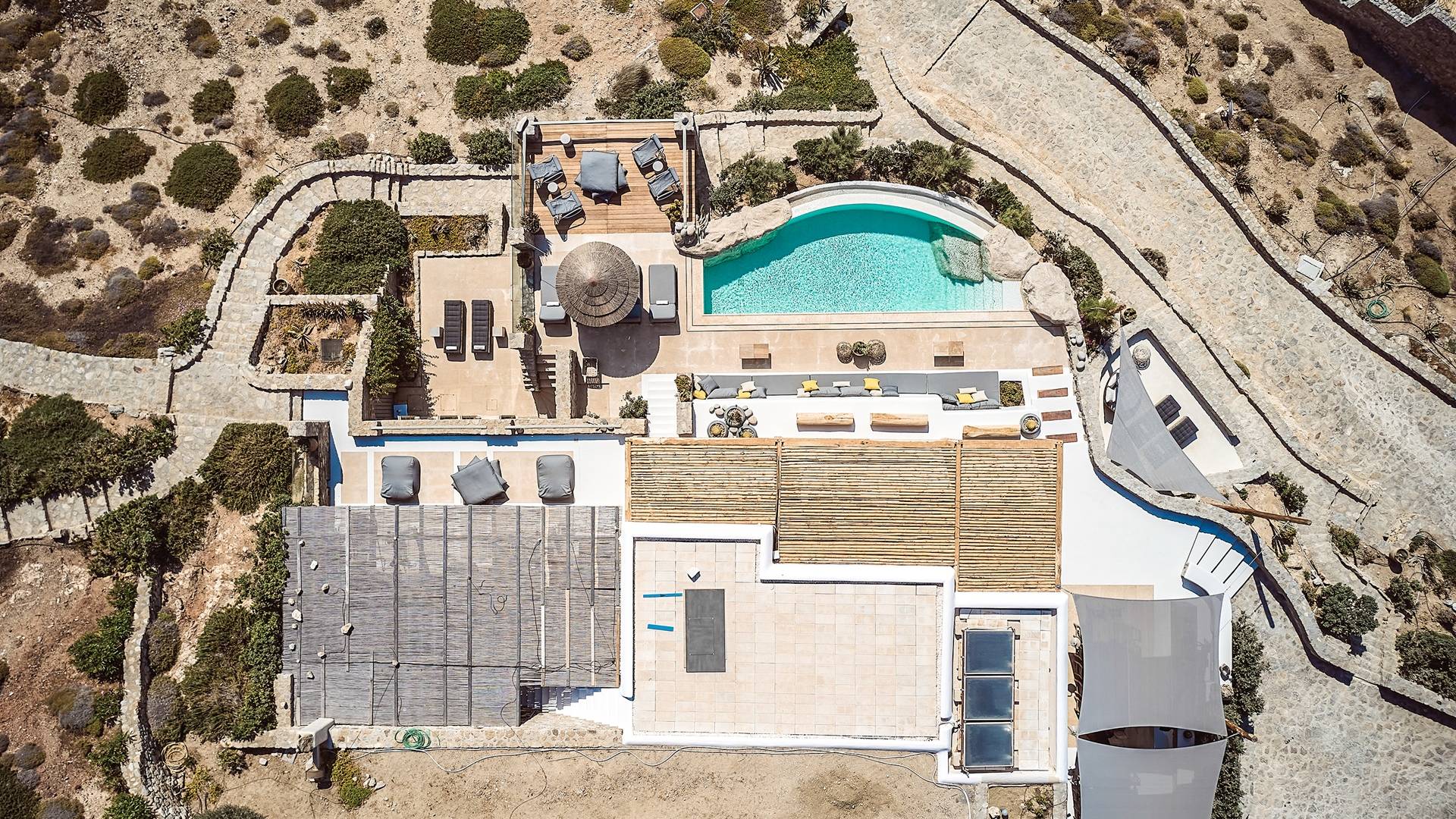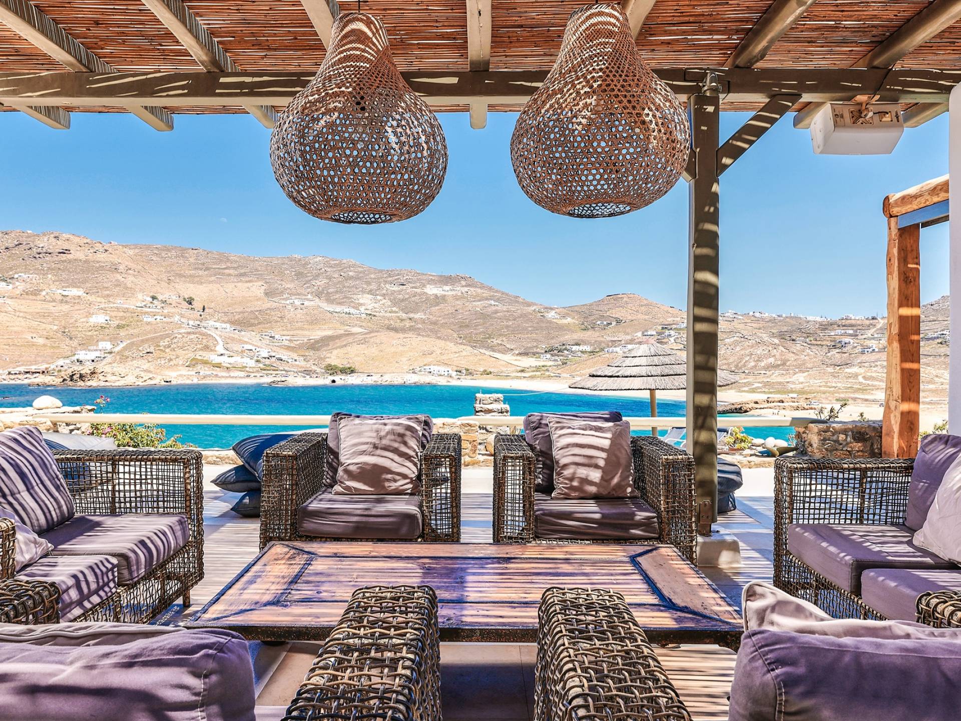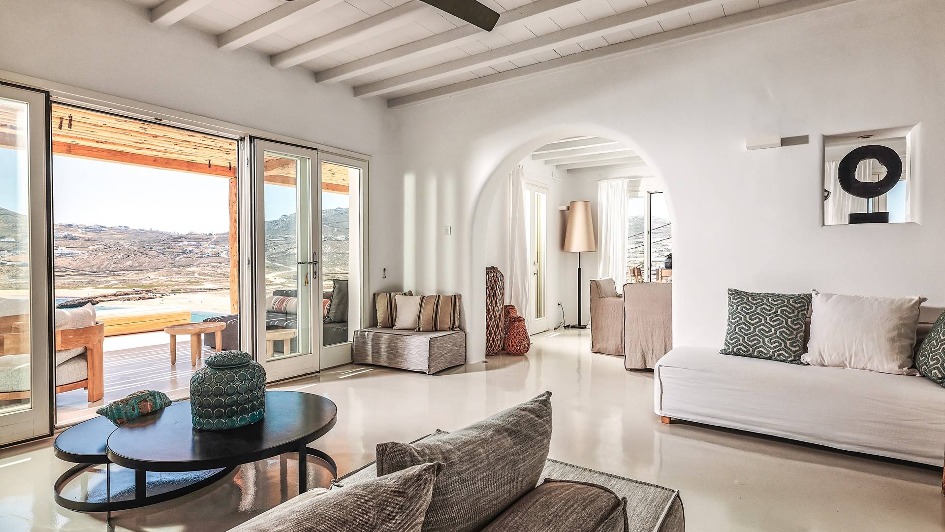 The villa praises traditional architecture, incorporating a mixture of stone and concrete, and is tastefully decorated with warm colors. At the same time, it invites guests to unwind in the multiple lounge areas and the BBQ/dining area of the expansive terrace and gives the opportunity to the most athletic ones to remain active at the outdoor gym area, while gazing at the crystal-clear Aegean waters.