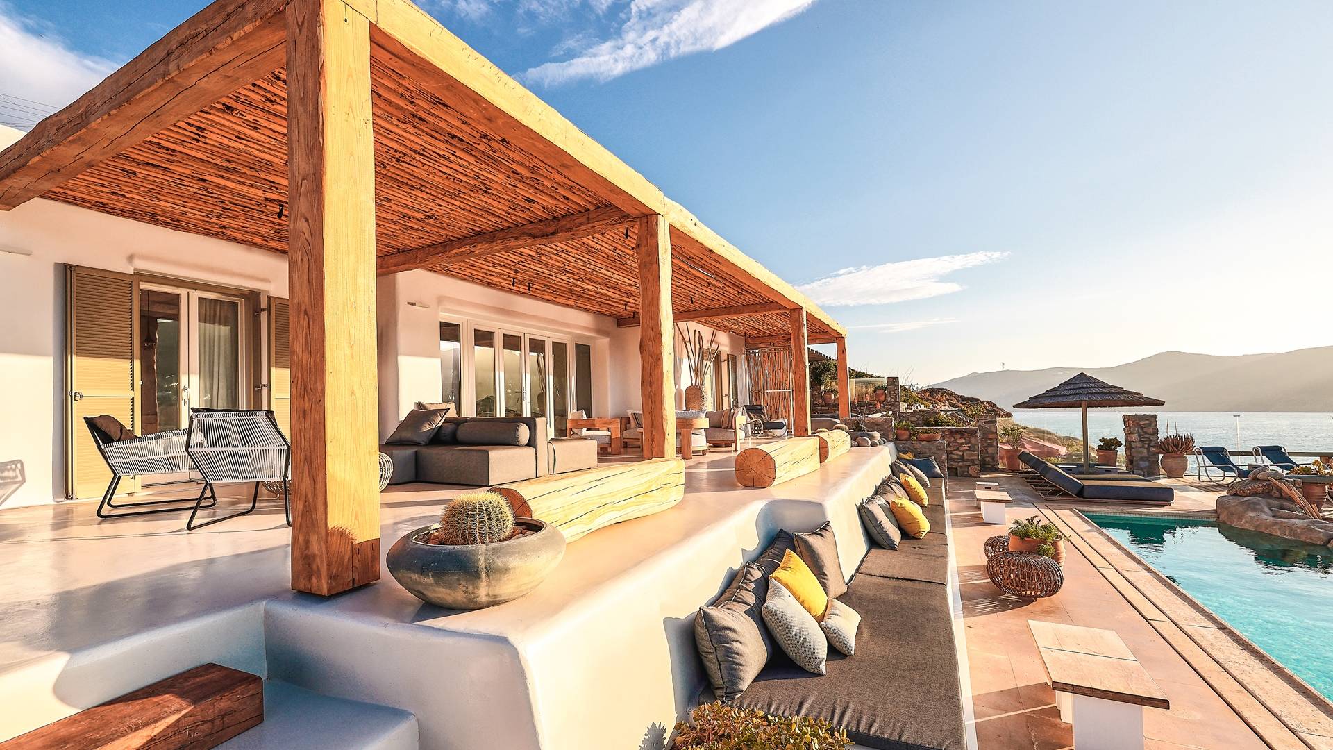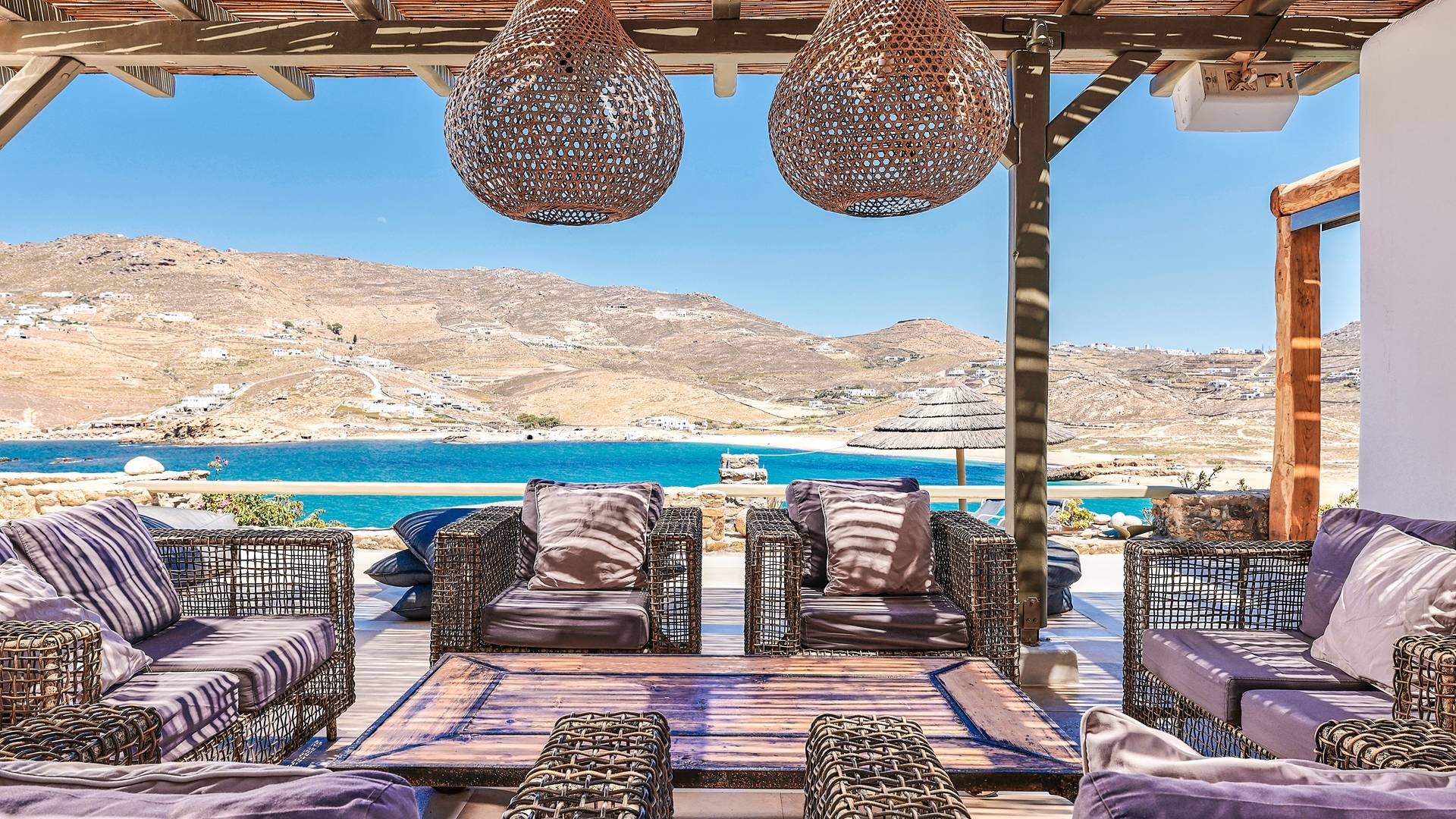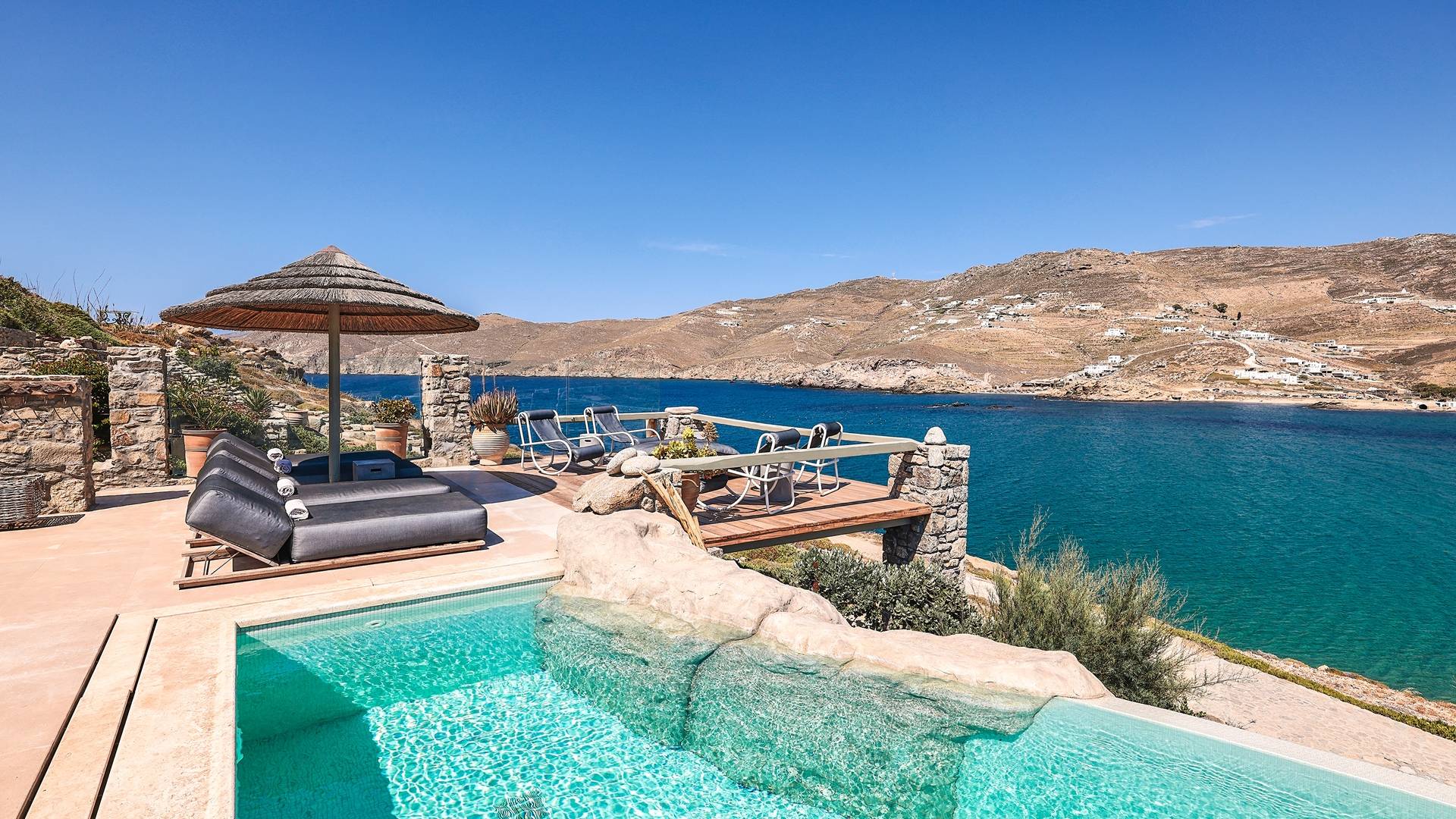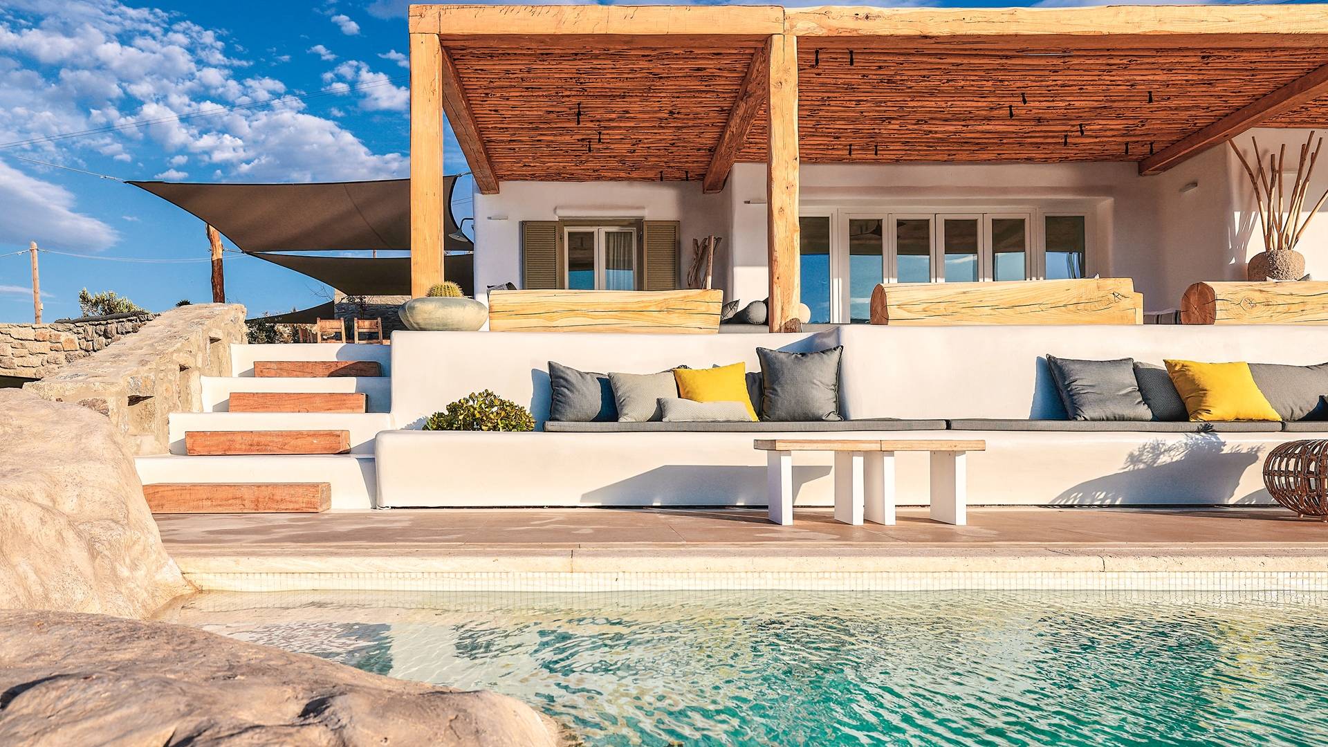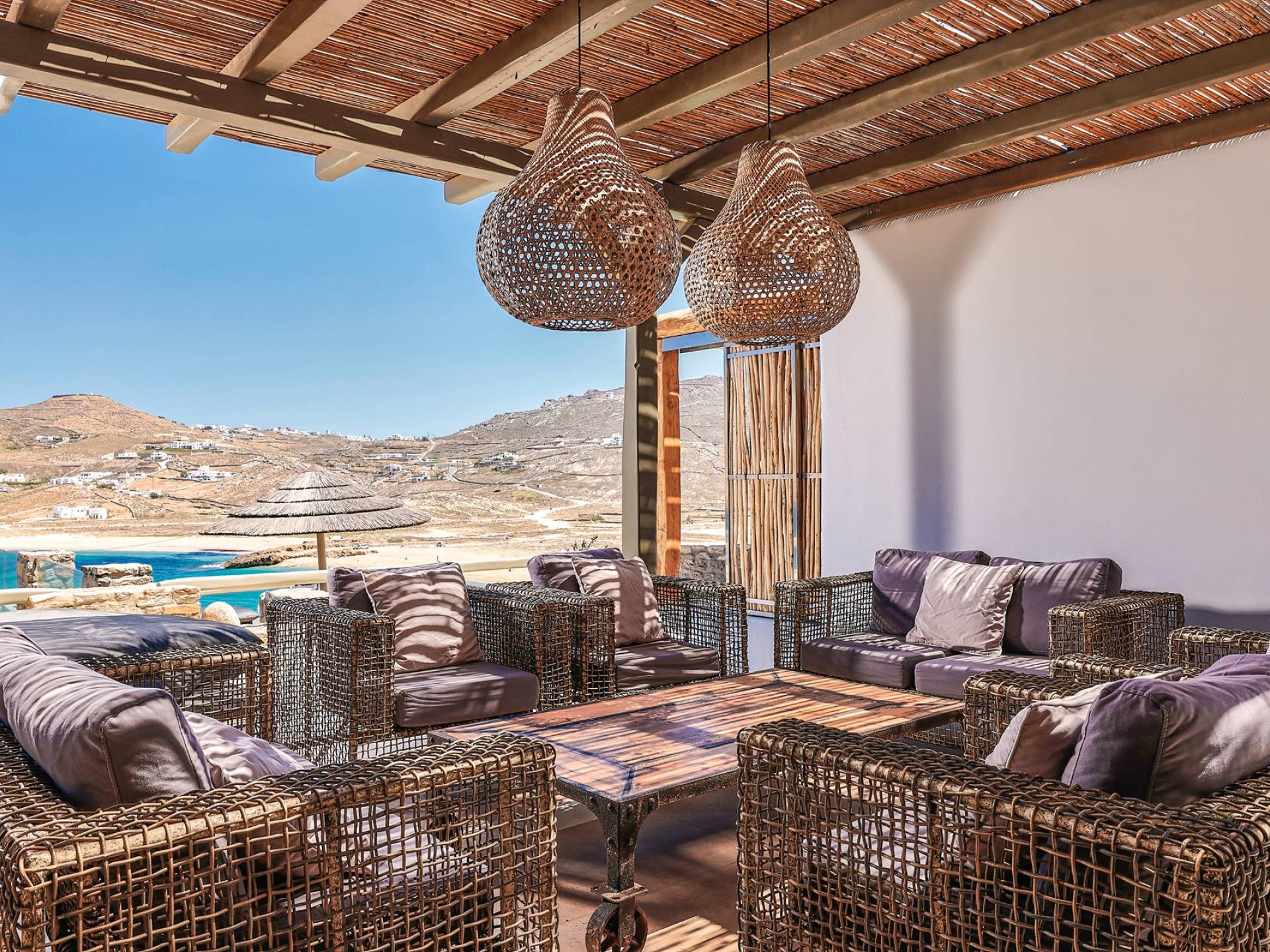 The villa praises traditional architecture, incorporating a mixture of stone and concrete, and is tastefully decorated with warm colors. At the same time, it invites guests to unwind in the multiple lounge areas and the BBQ/dining area of the expansive terrace and gives the opportunity to the most athletic ones to remain active at the outdoor gym area, while gazing at the crystal-clear Aegean waters.