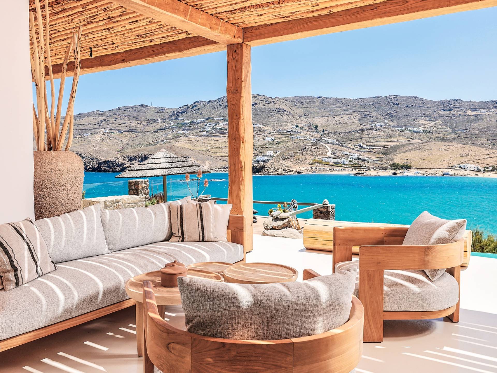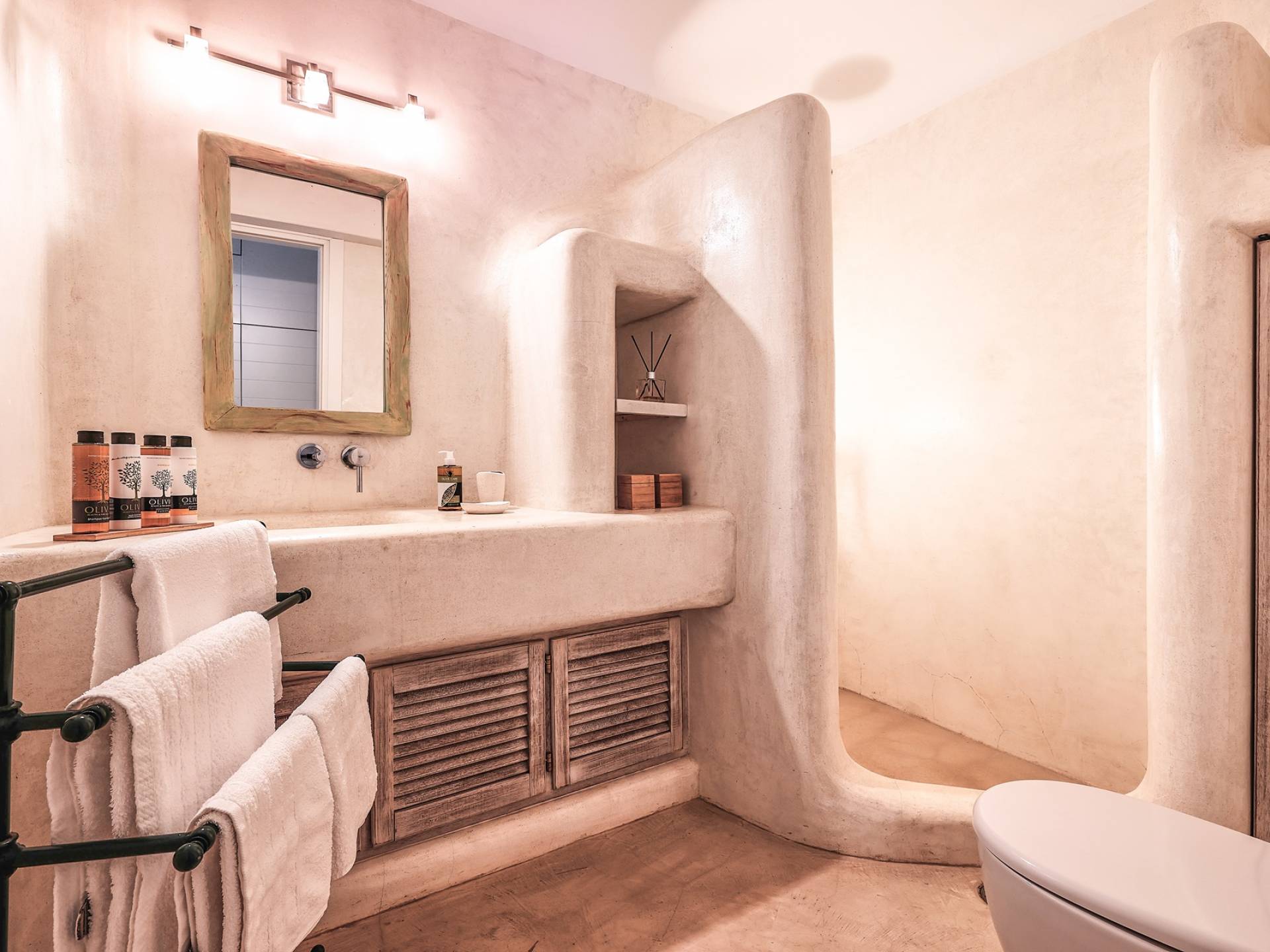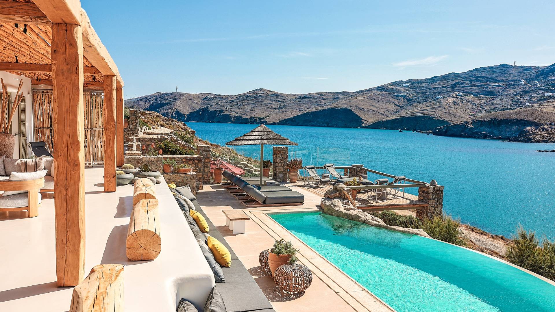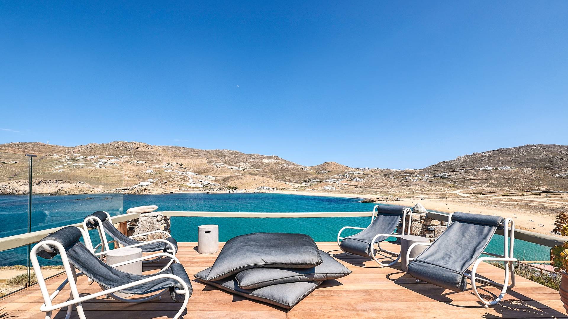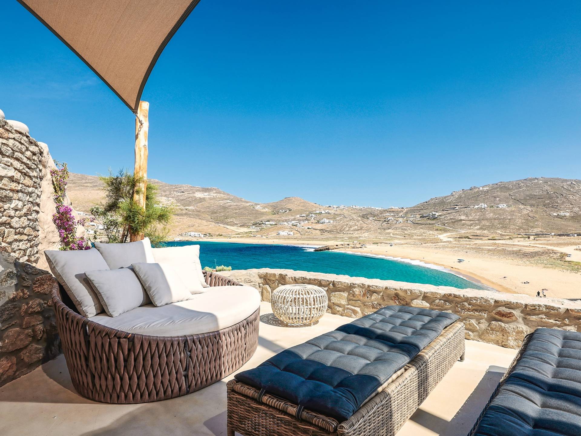 The villa praises traditional architecture, incorporating a mixture of stone and concrete, and is tastefully decorated with warm colors. At the same time, it invites guests to unwind in the multiple lounge areas and the BBQ/dining area of the expansive terrace and gives the opportunity to the most athletic ones to remain active at the outdoor gym area, while gazing at the crystal-clear Aegean waters.