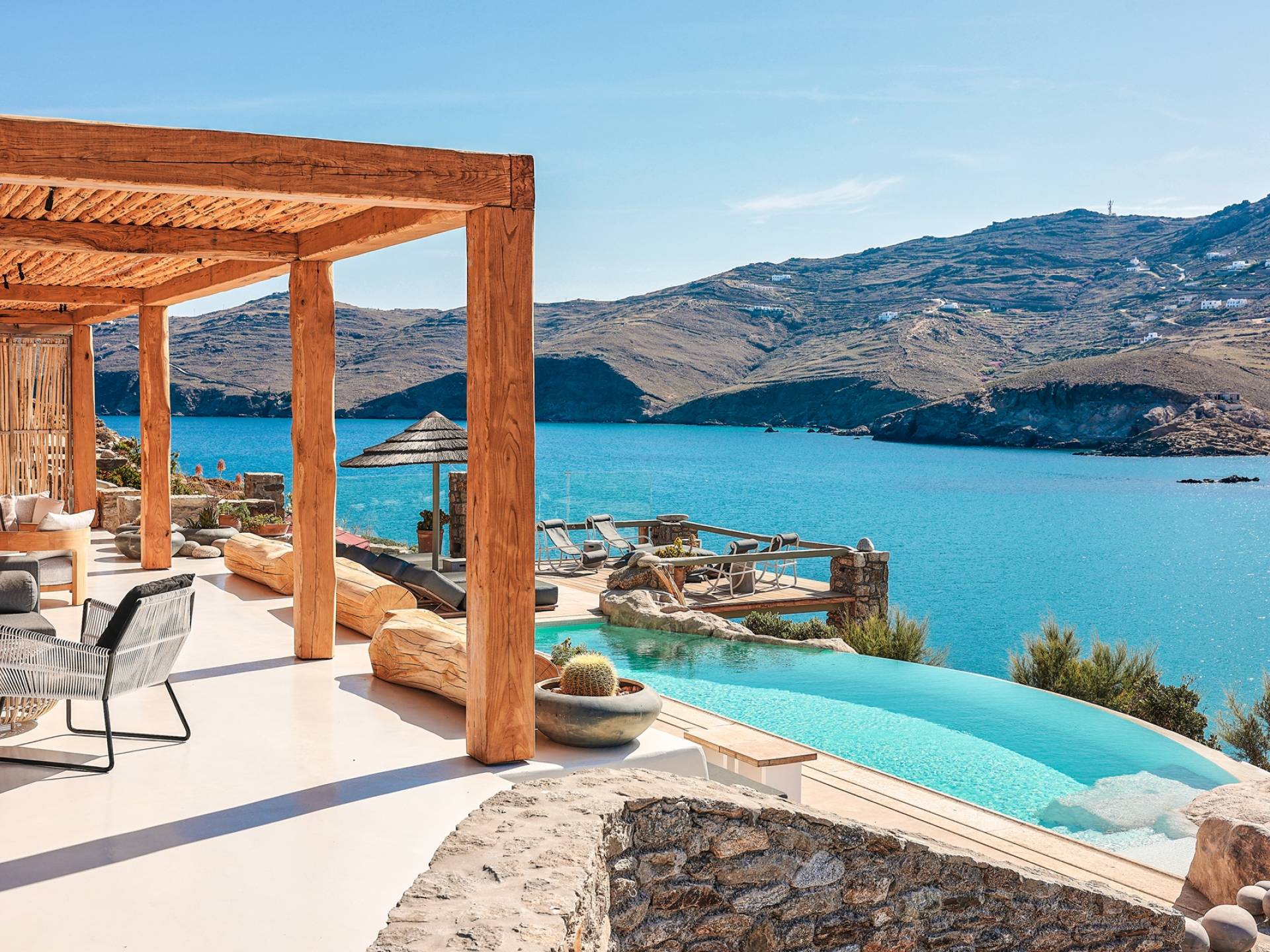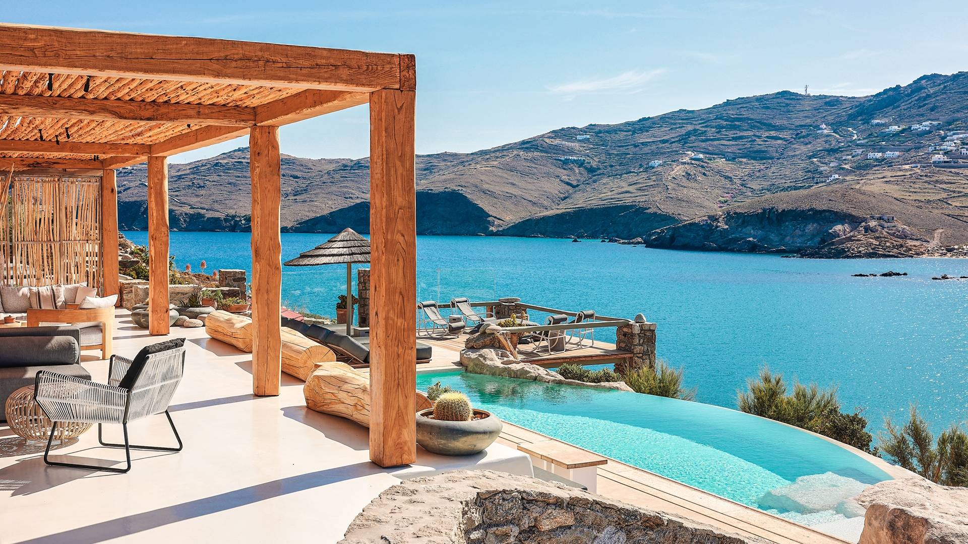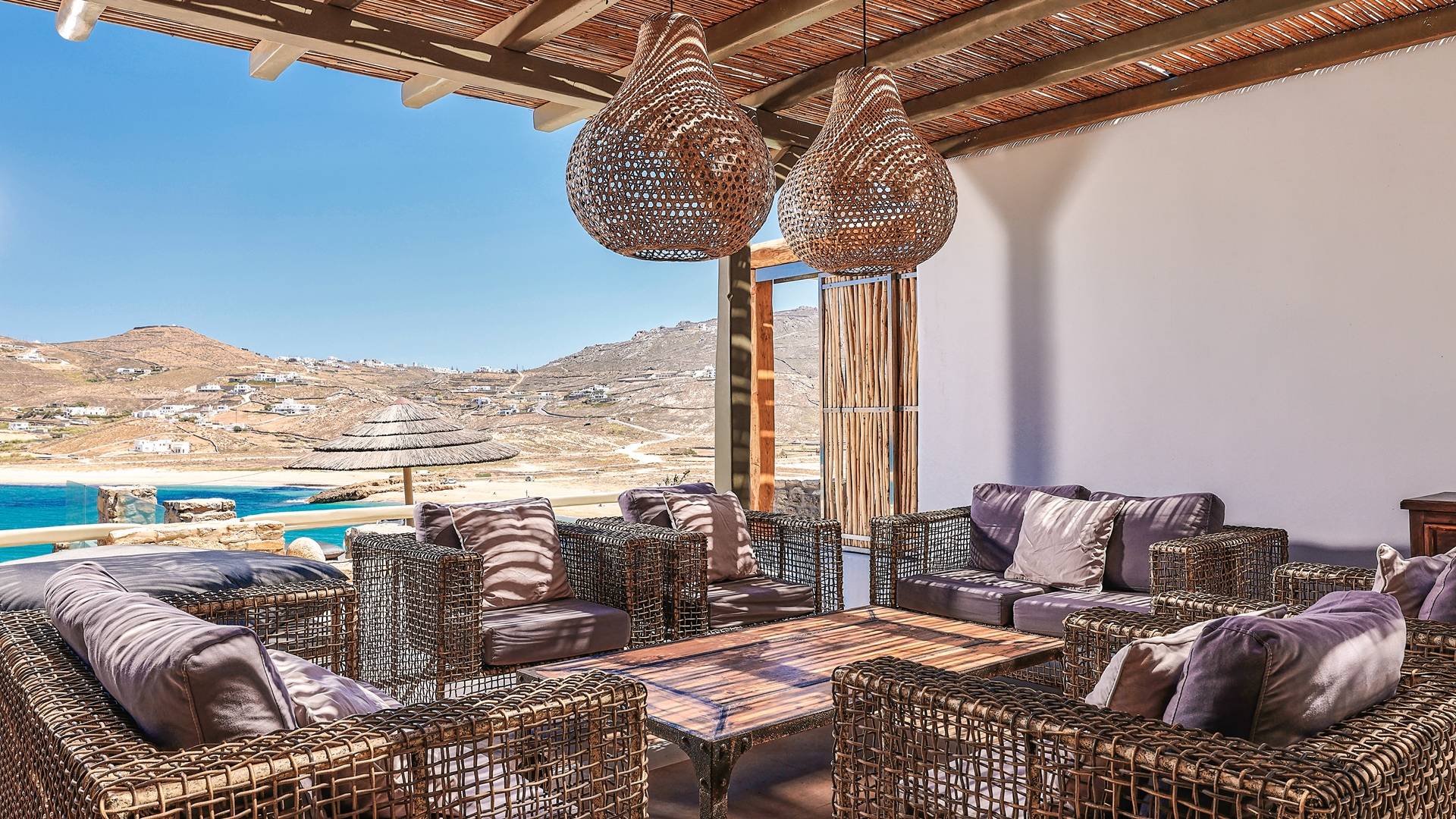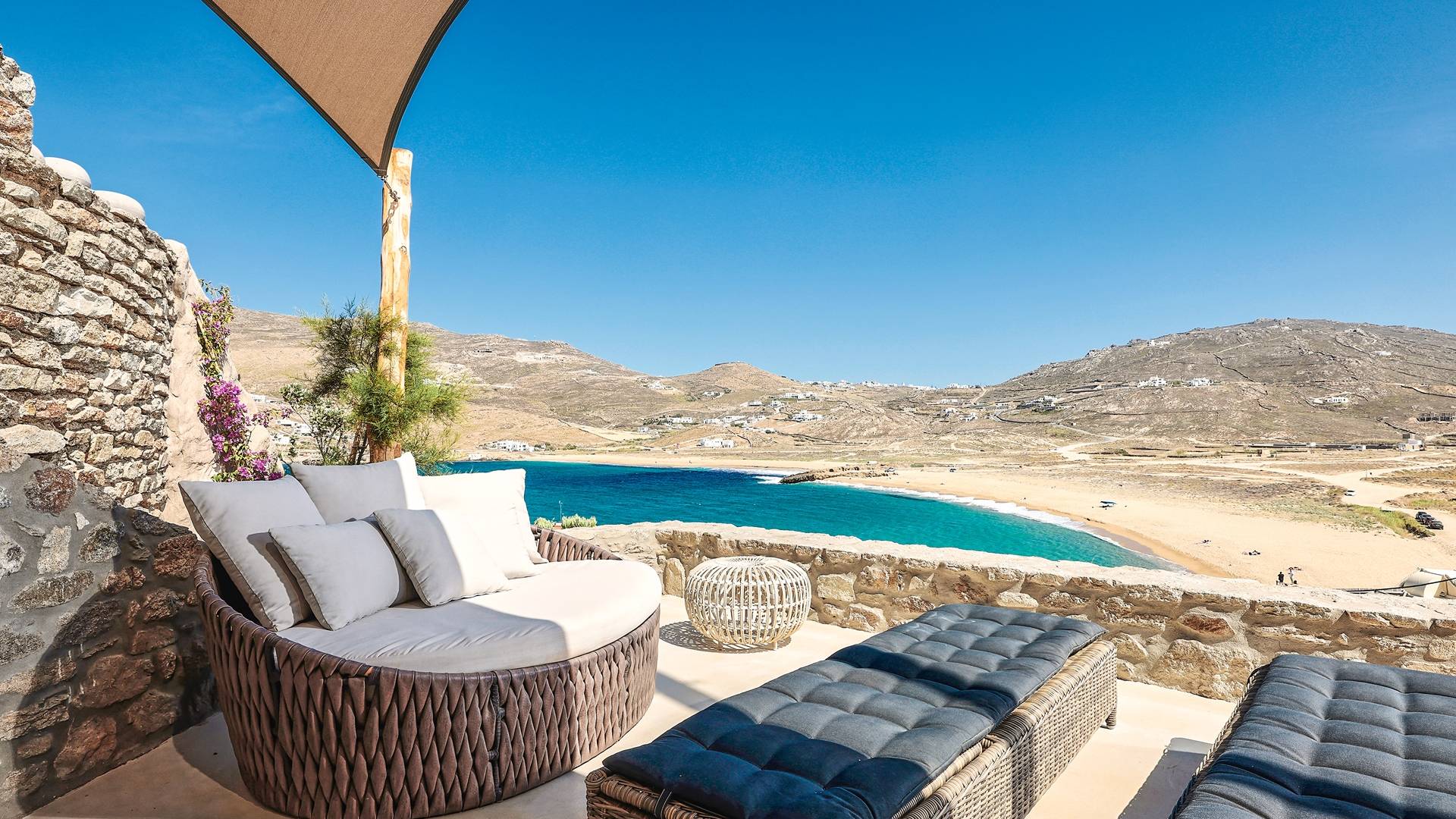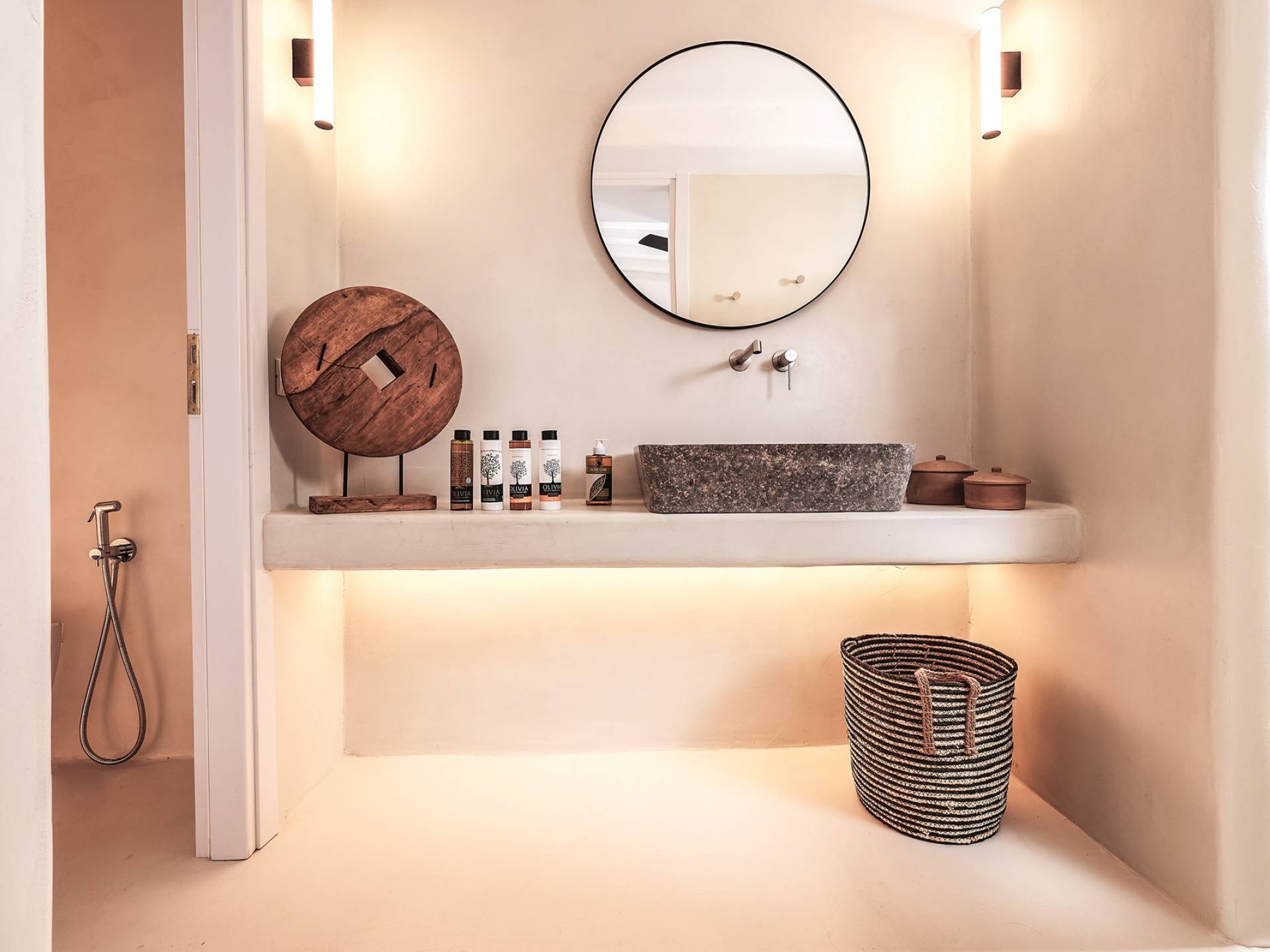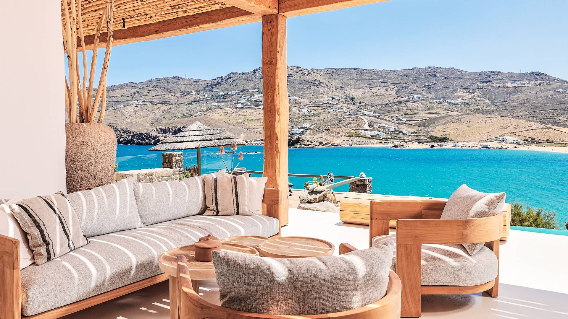 The villa praises traditional architecture, incorporating a mixture of stone and concrete, and is tastefully decorated with warm colors. At the same time, it invites guests to unwind in the multiple lounge areas and the BBQ/dining area of the expansive terrace and gives the opportunity to the most athletic ones to remain active at the outdoor gym area, while gazing at the crystal-clear Aegean waters.