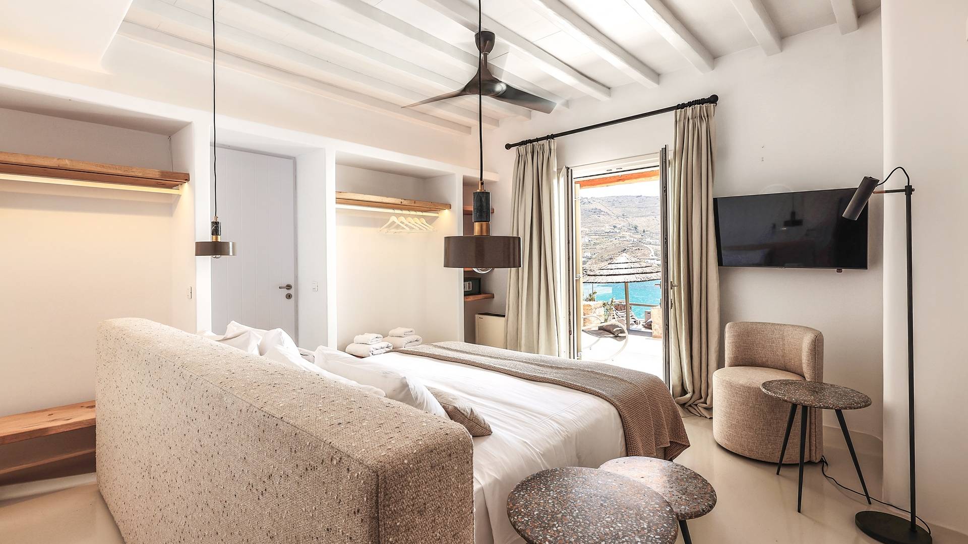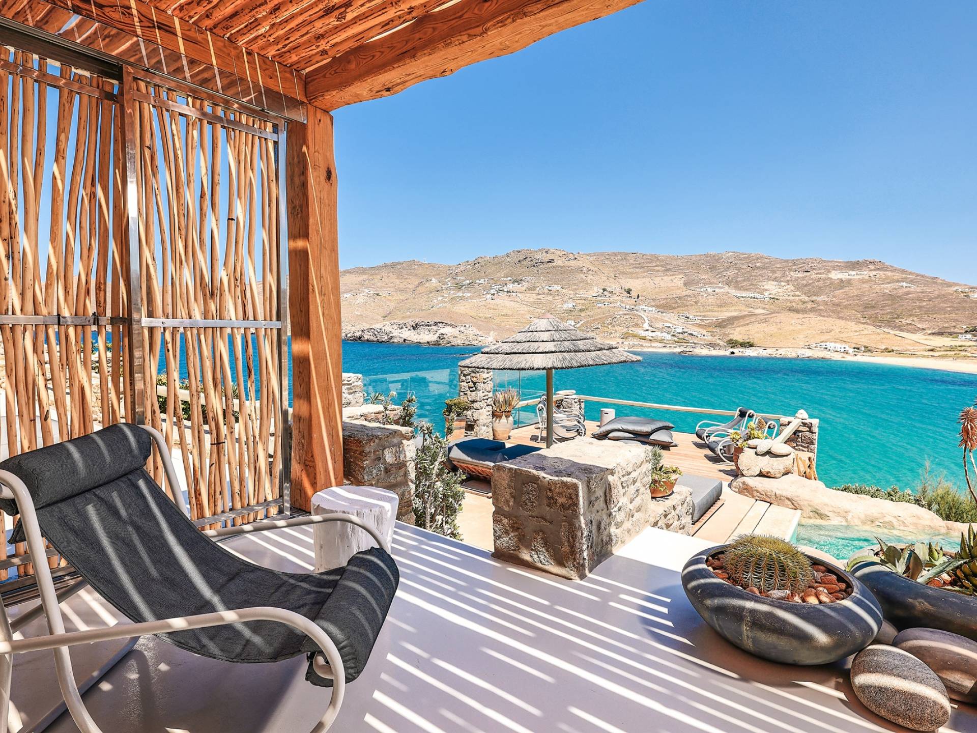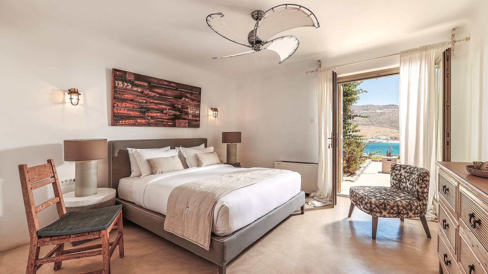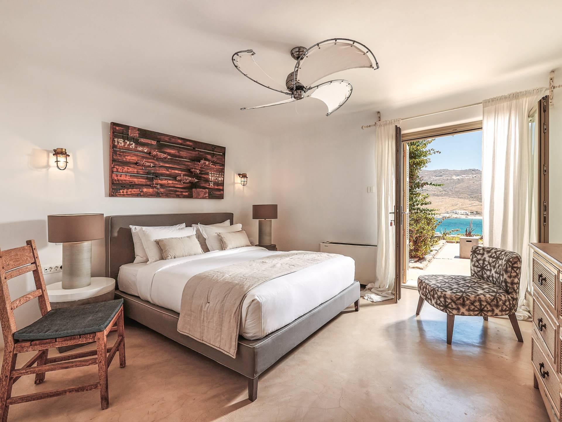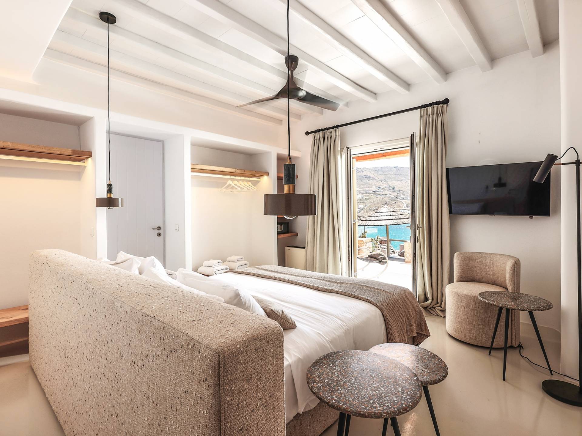 The villa praises traditional architecture, incorporating a mixture of stone and concrete, and is tastefully decorated with warm colors. At the same time, it invites guests to unwind in the multiple lounge areas and the BBQ/dining area of the expansive terrace and gives the opportunity to the most athletic ones to remain active at the outdoor gym area, while gazing at the crystal-clear Aegean waters.