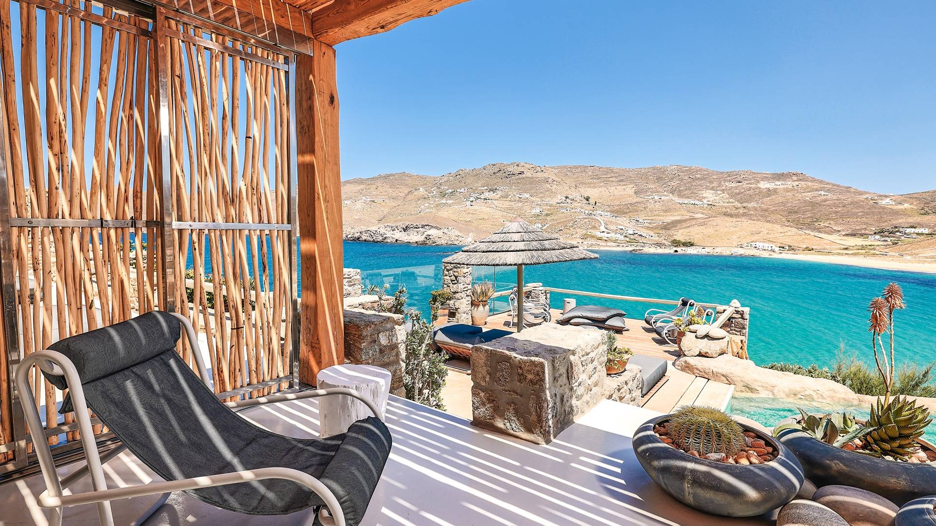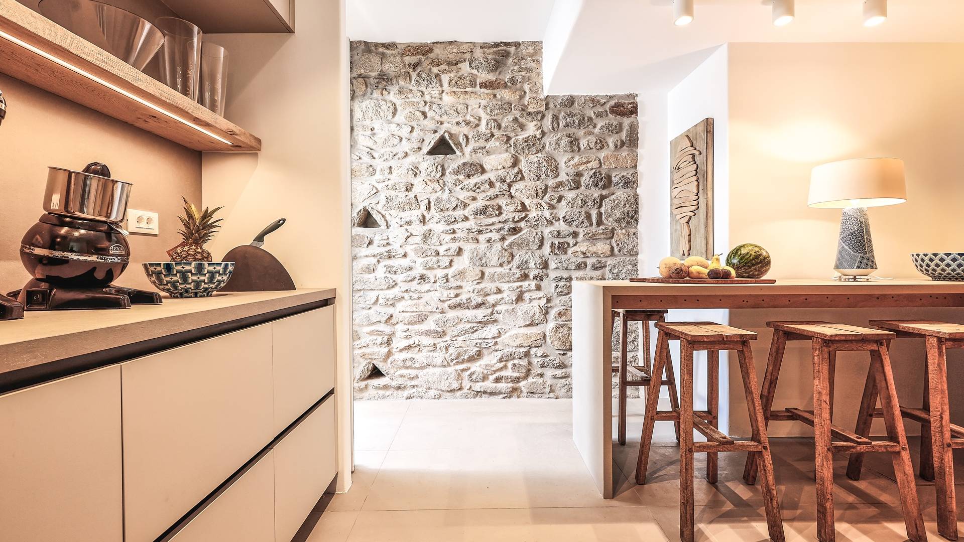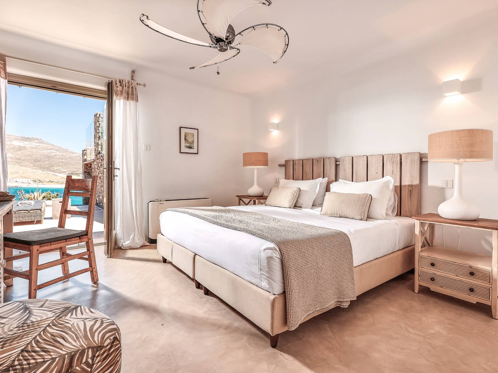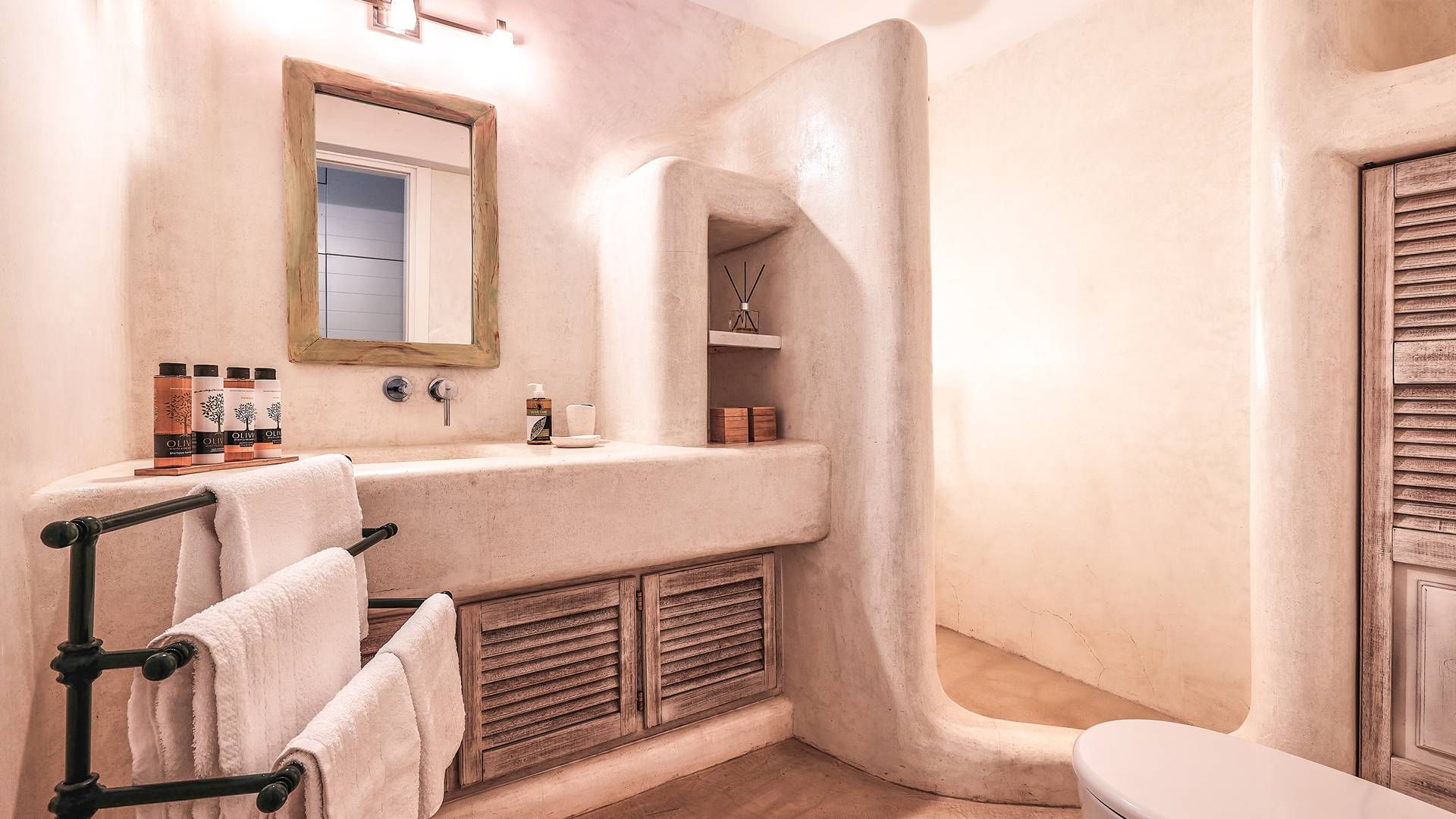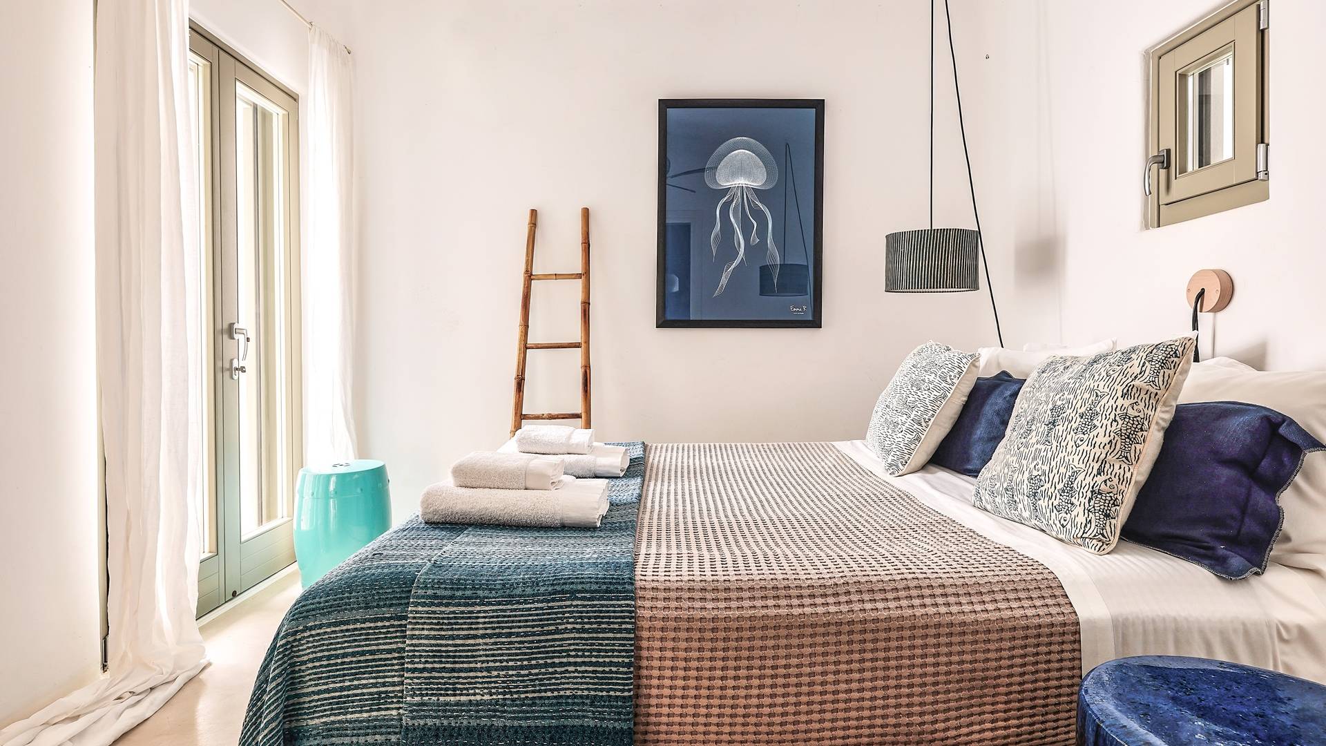 The villa praises traditional architecture, incorporating a mixture of stone and concrete, and is tastefully decorated with warm colors. At the same time, it invites guests to unwind in the multiple lounge areas and the BBQ/dining area of the expansive terrace and gives the opportunity to the most athletic ones to remain active at the outdoor gym area, while gazing at the crystal-clear Aegean waters.