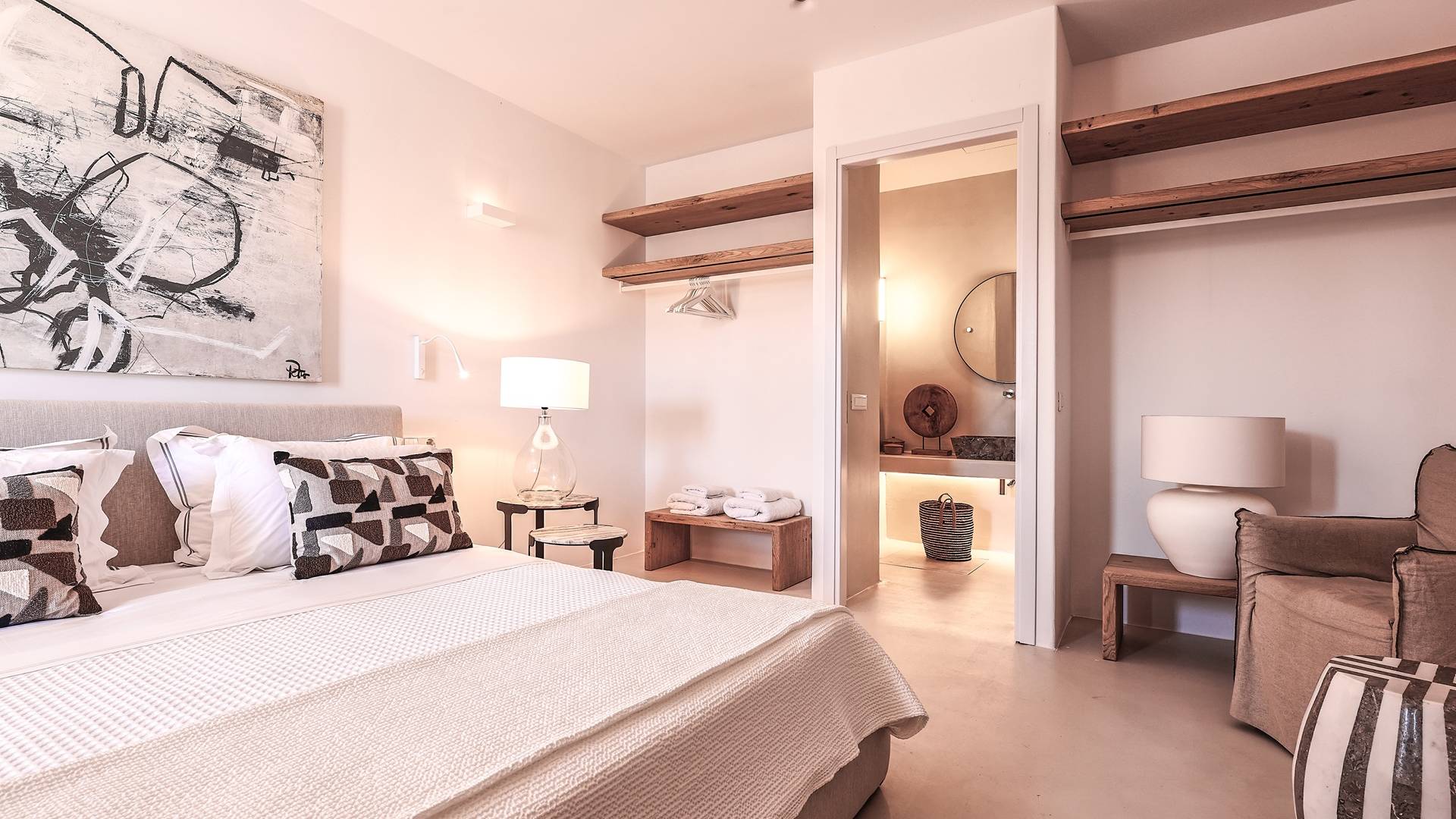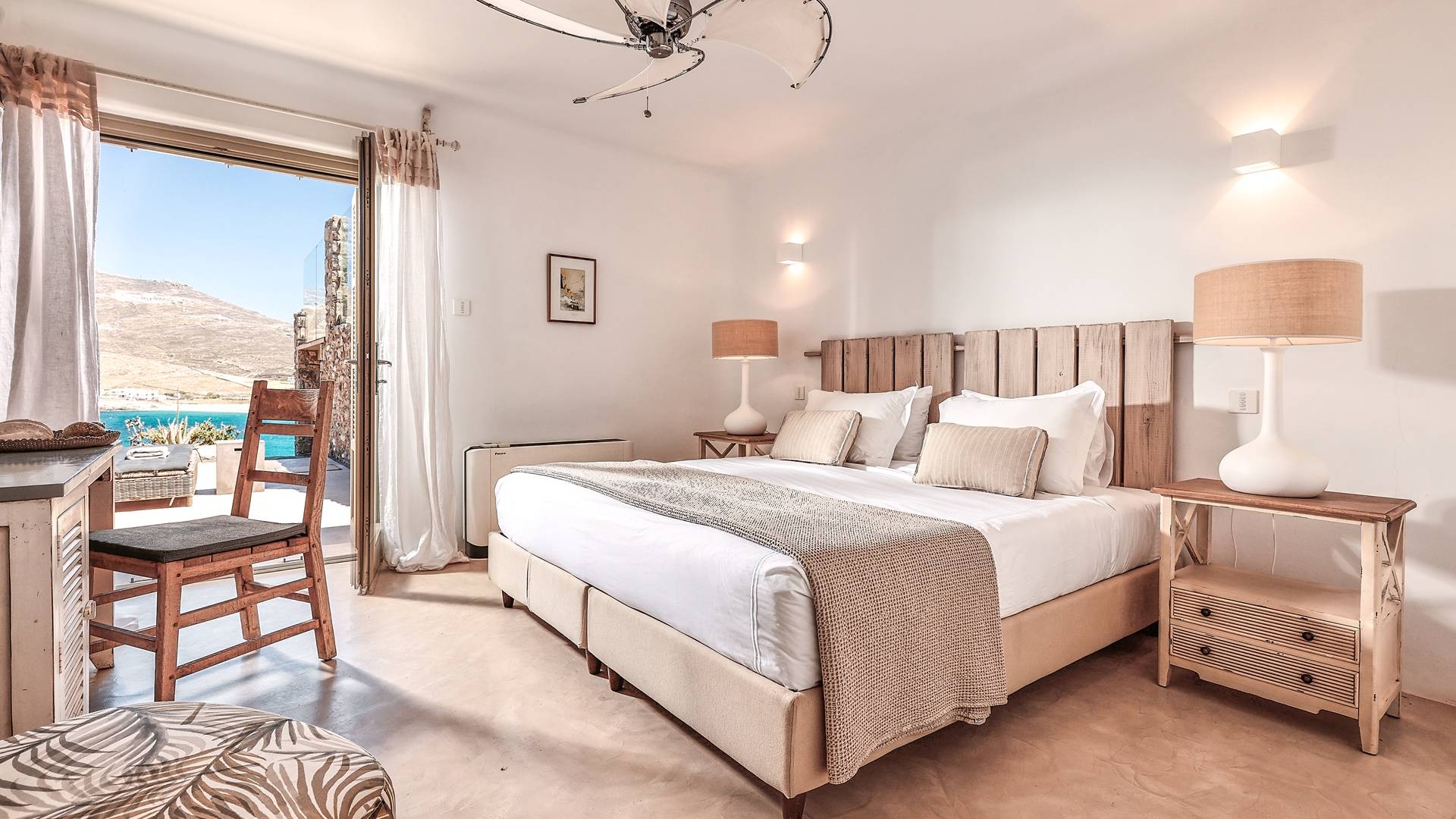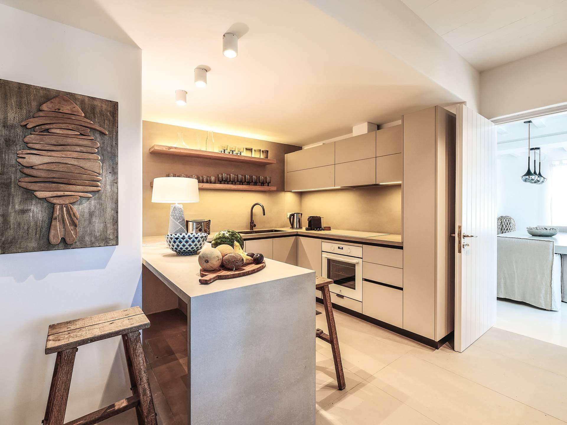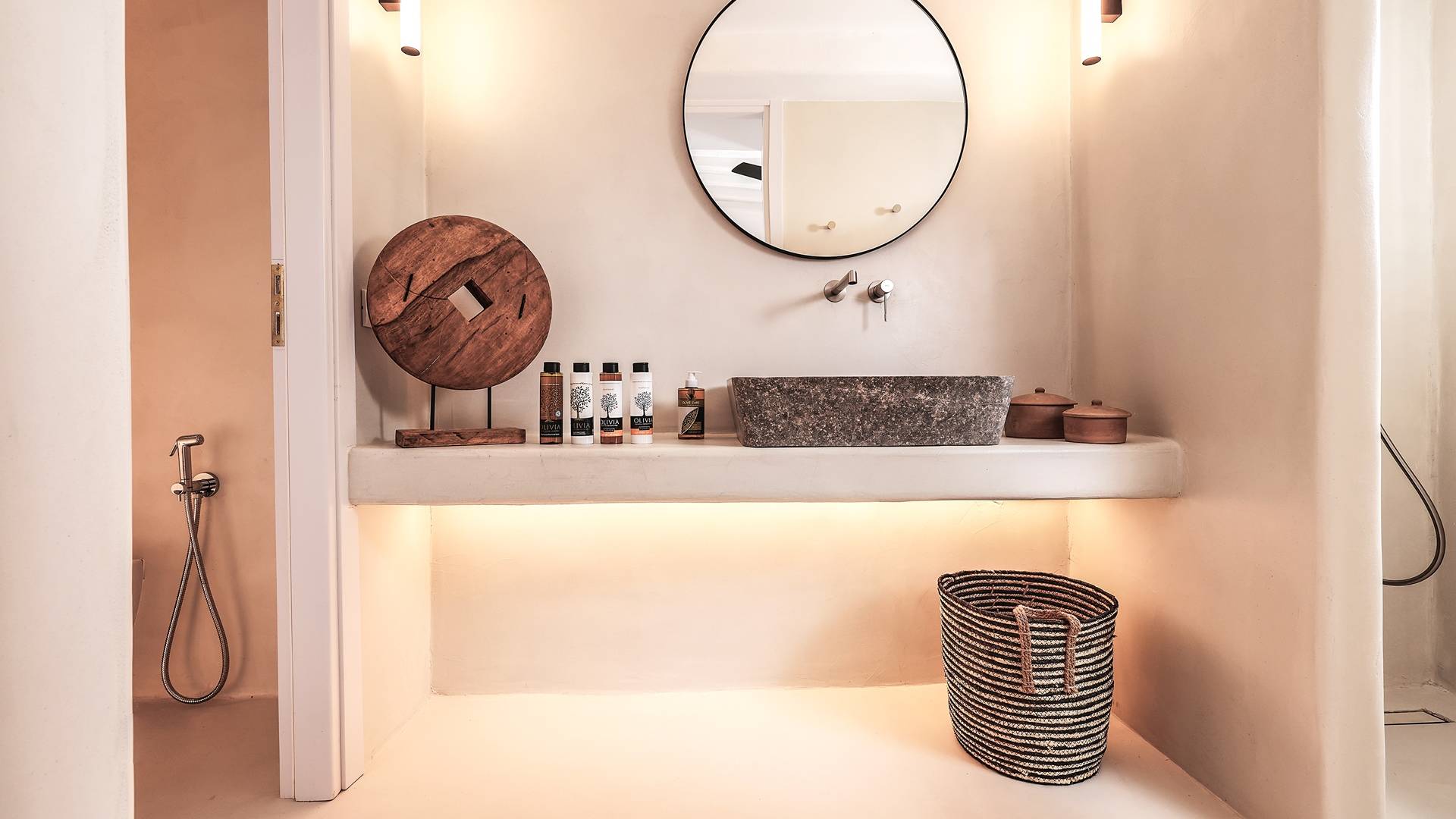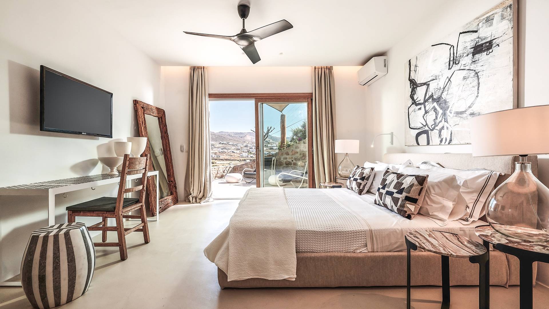 The villa praises traditional architecture, incorporating a mixture of stone and concrete, and is tastefully decorated with warm colors. At the same time, it invites guests to unwind in the multiple lounge areas and the BBQ/dining area of the expansive terrace and gives the opportunity to the most athletic ones to remain active at the outdoor gym area, while gazing at the crystal-clear Aegean waters.