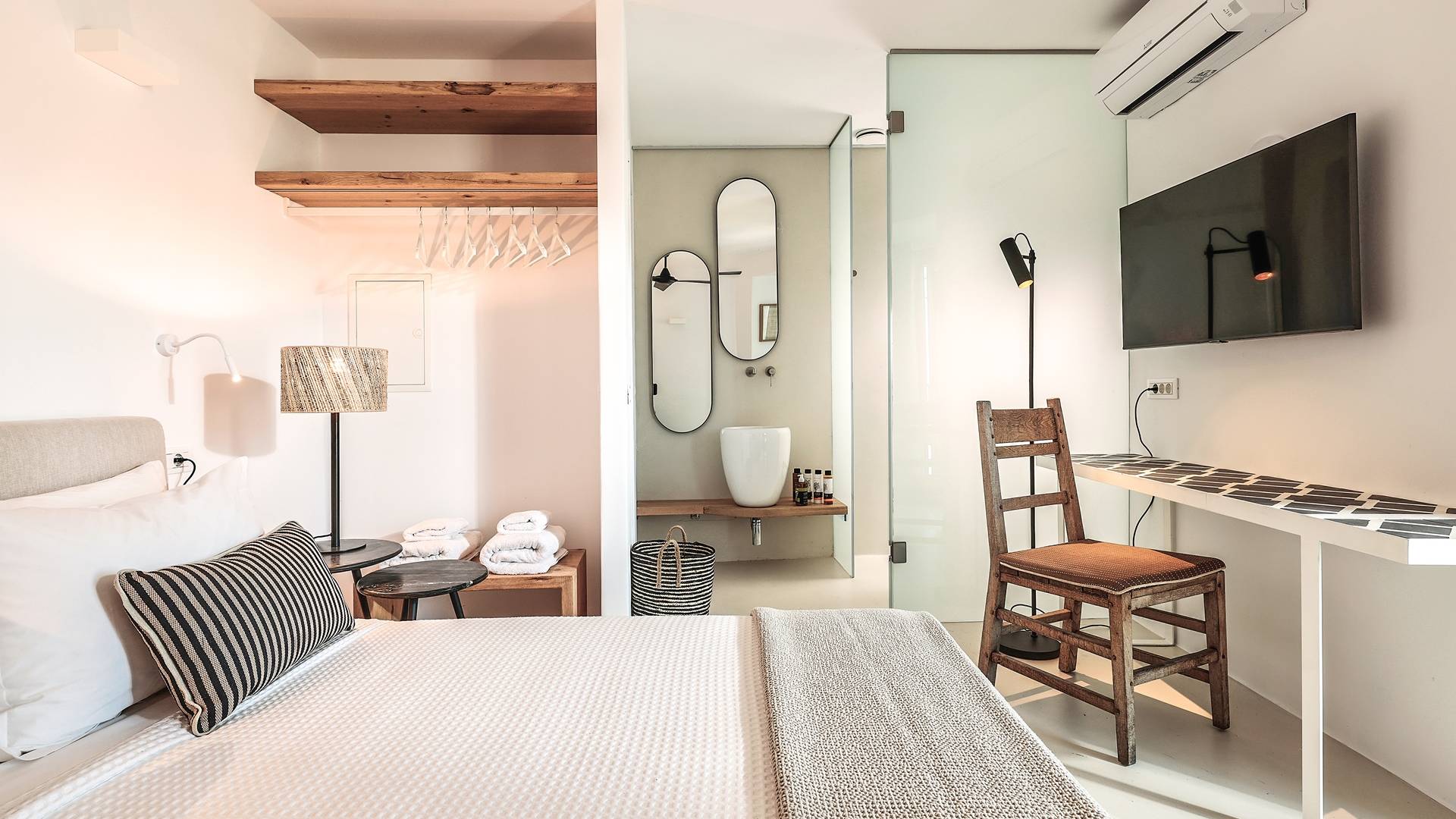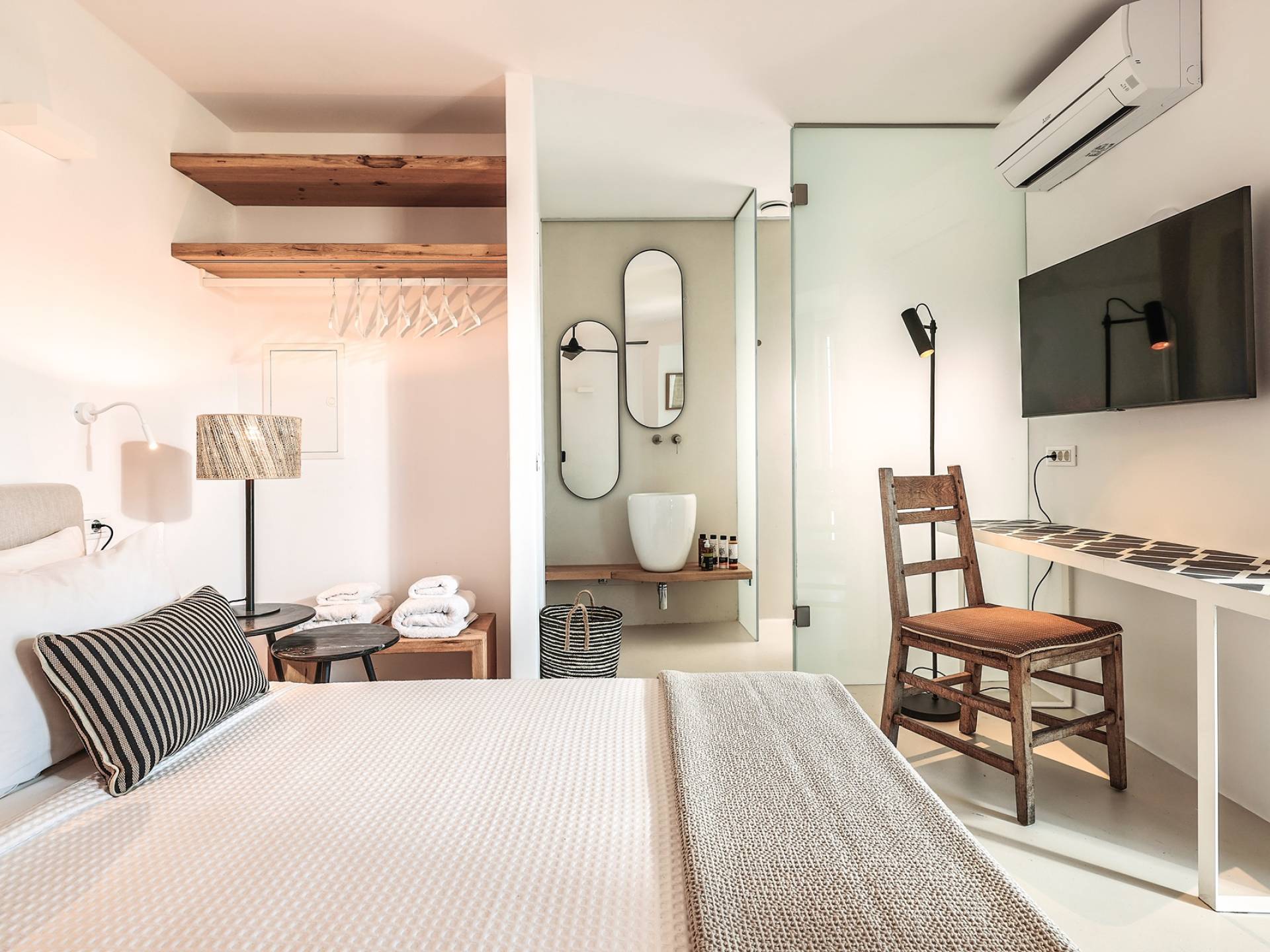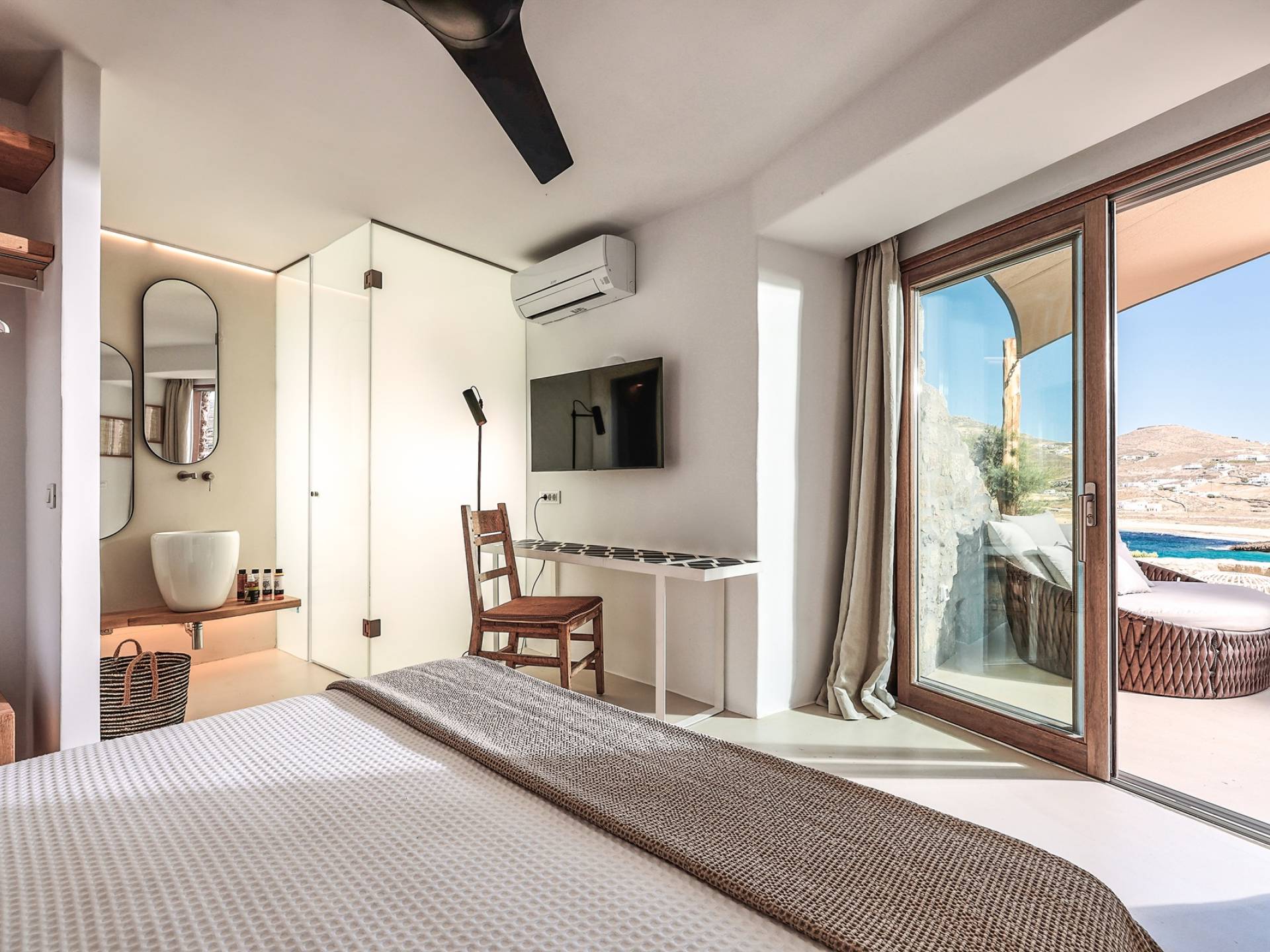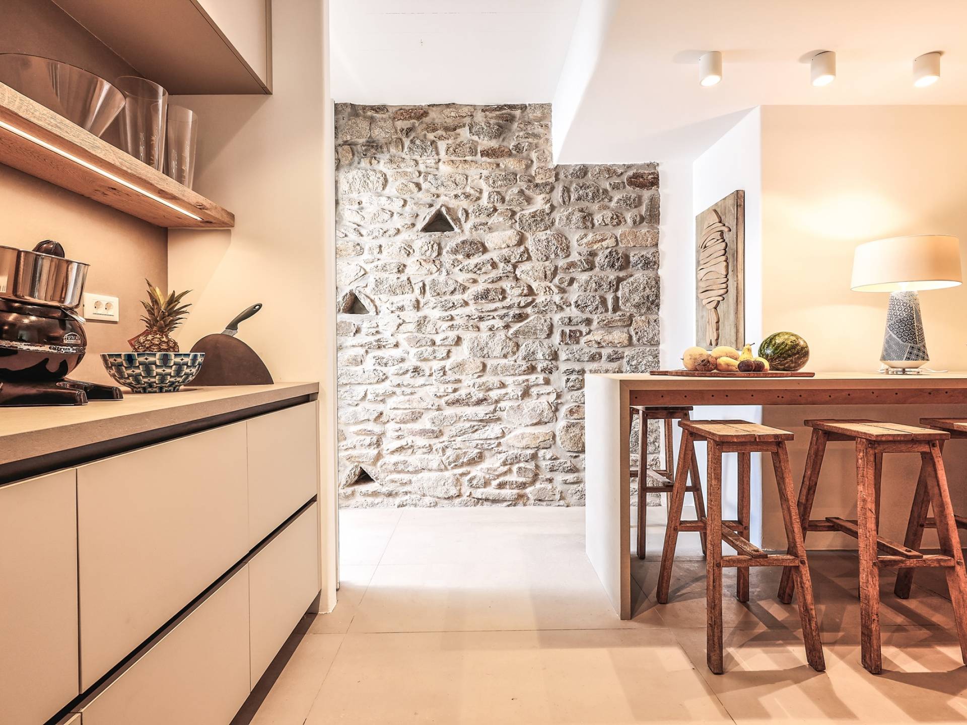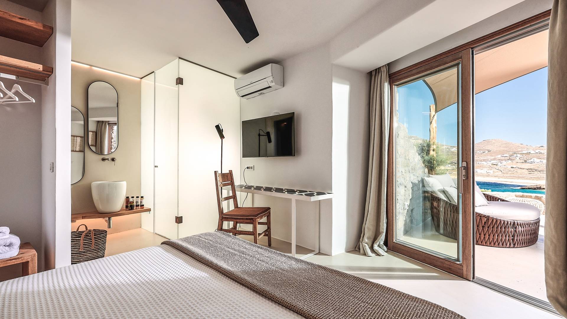The villa praises traditional architecture, incorporating a mixture of stone and concrete, and is tastefully decorated with warm colors. At the same time, it invites guests to unwind in the multiple lounge areas and the BBQ/dining area of the expansive terrace and gives the opportunity to the most athletic ones to remain active at the outdoor gym area, while gazing at the crystal-clear Aegean waters.