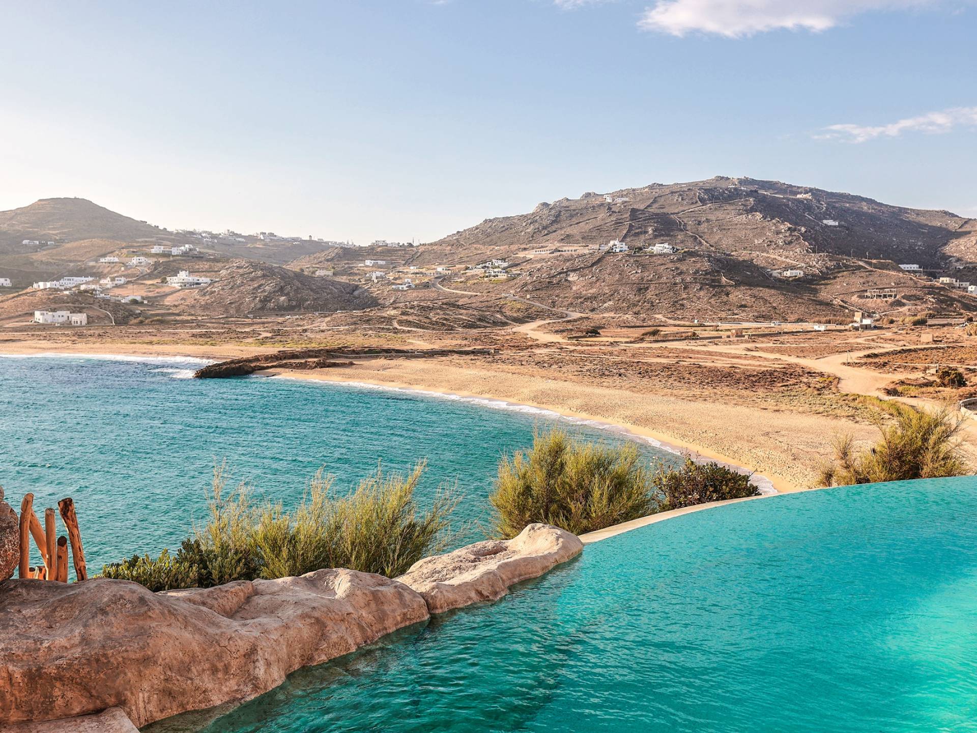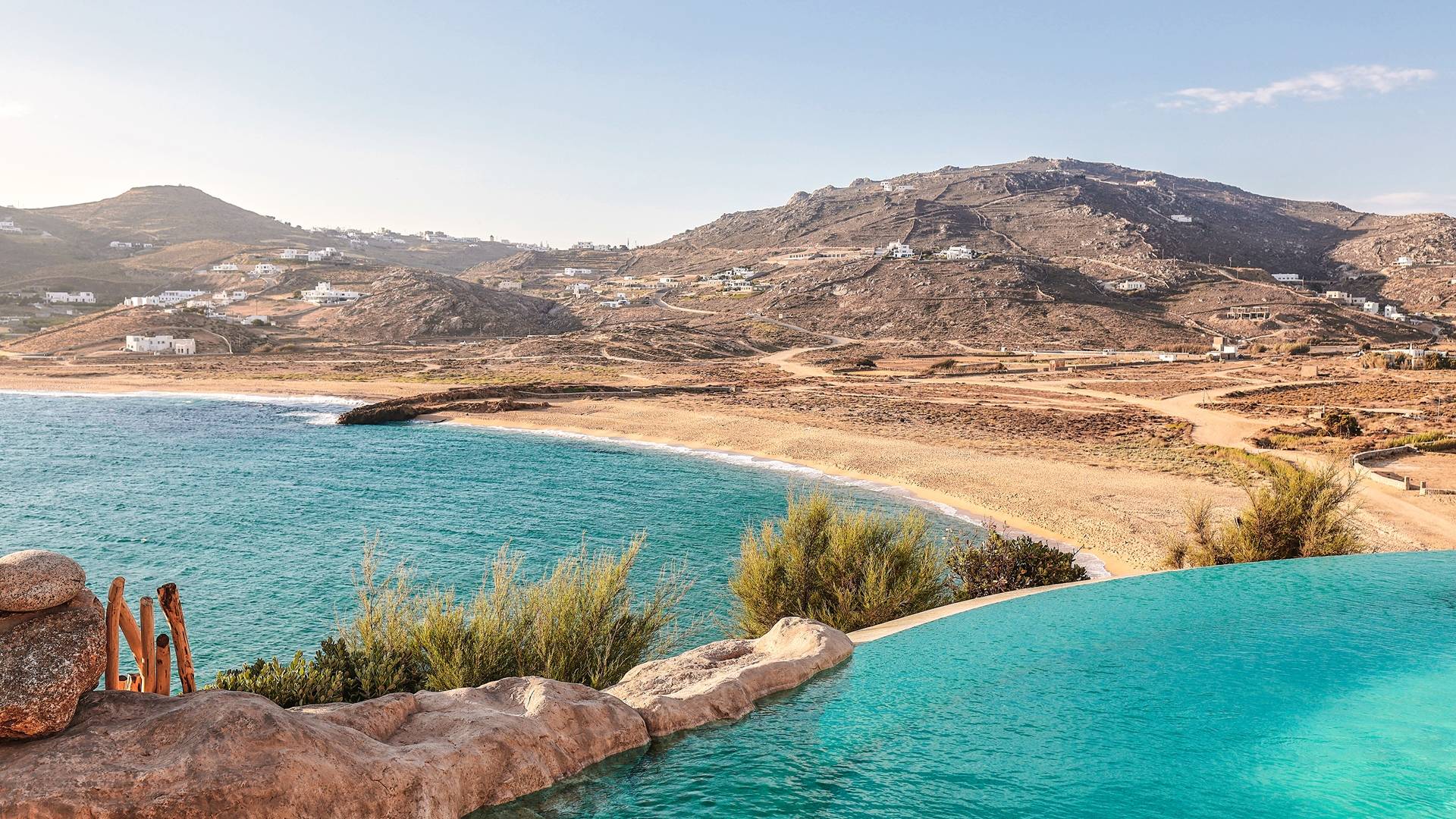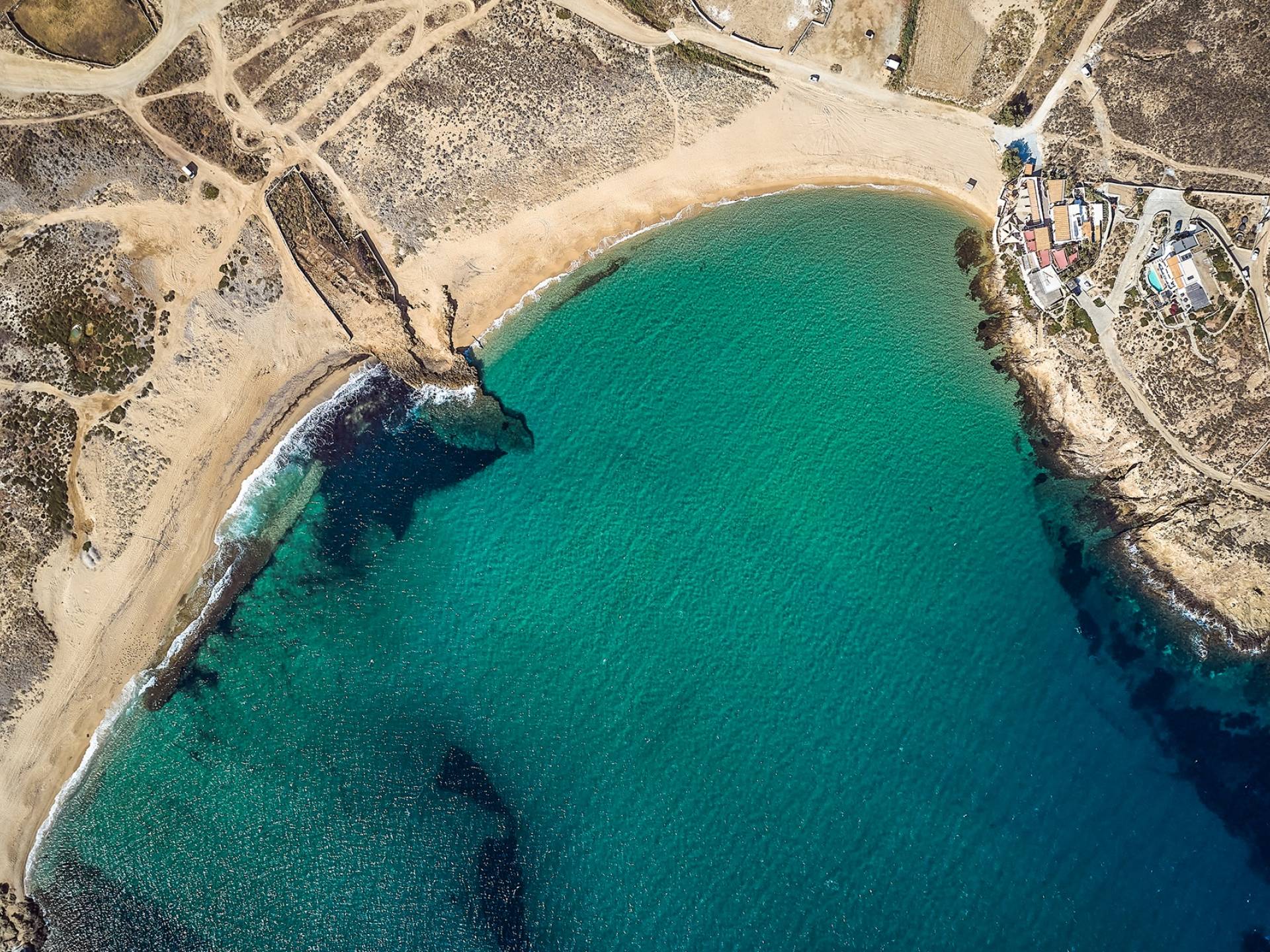 show more detailsFtelia Mykonos is a beautiful turquoise water beach on the north part, particularly famous among the windsurfers since it is caressed by the Meltemi north Cycladic wind that creates the ideal conditions for this sport. Even if you are not a windsurfing lover you will enjoy the serenity feeling this beach gives out. The road descending to the beach is paved with asphalt up to a certain point and then there is a walking distance within the sand. Within a few steps, you will come across a very peaceful and uncrowded beach, which is somewhat surprising because it is quite accessible from the Chora.