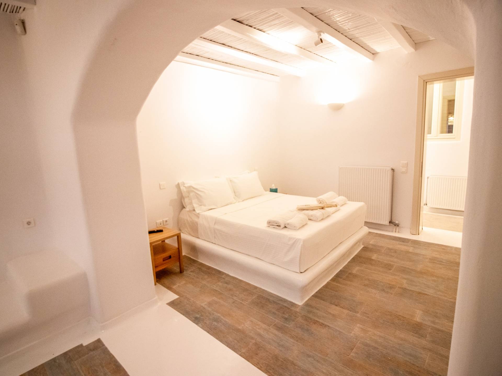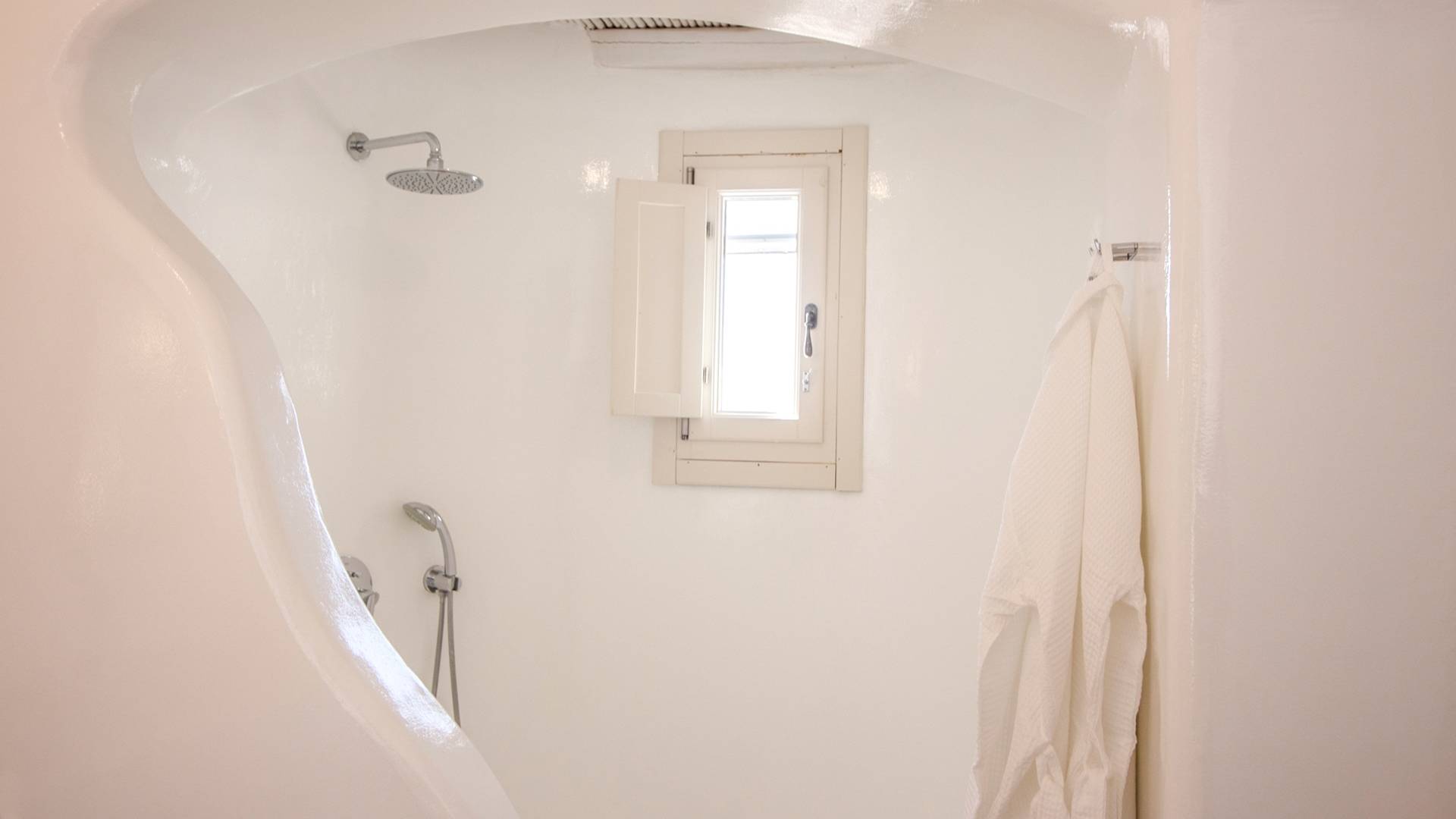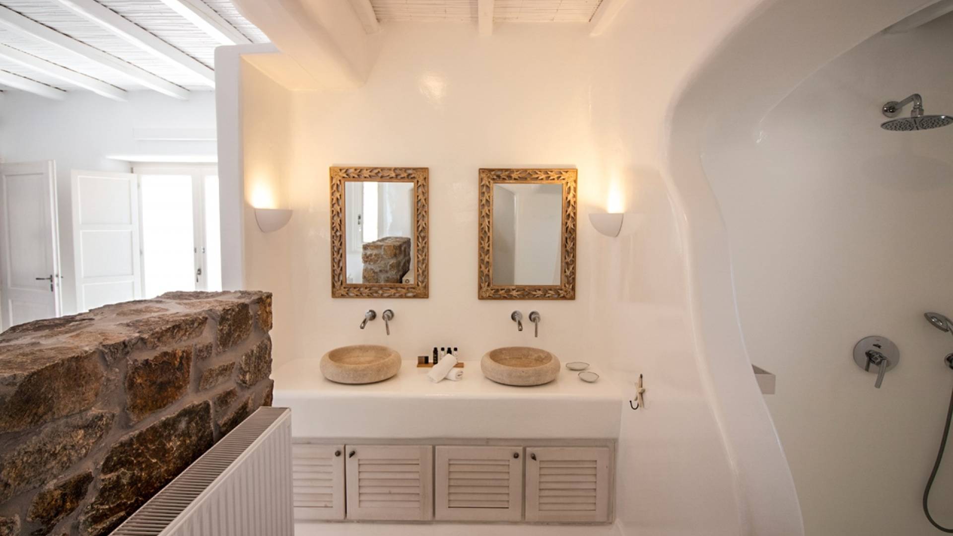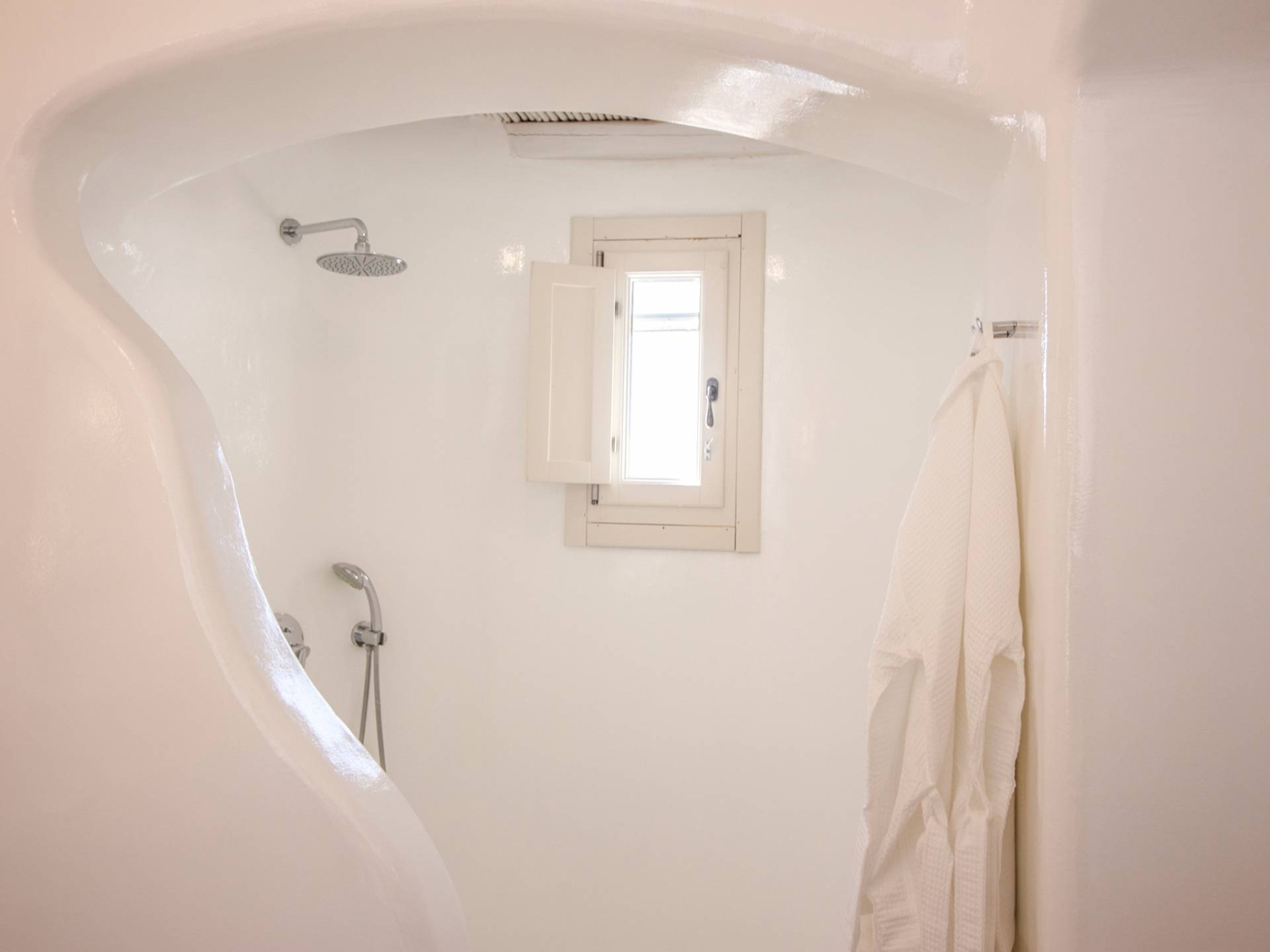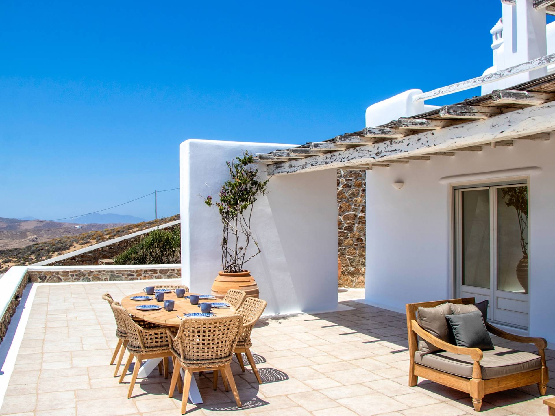 Mykonian Icon Villa consists of 6 bedrooms with a queen bed each and ensuite bathrooms with shower. The villa has a fully equipped kitchen and a spacious living-dining room with a fireplace. It has a special and very comfortable terrace with a beautiful and unobstructed view of the Aegean Sea. It is great for families or couples seeking a luxury retreat offering a cozy environment and magnificent sea view.