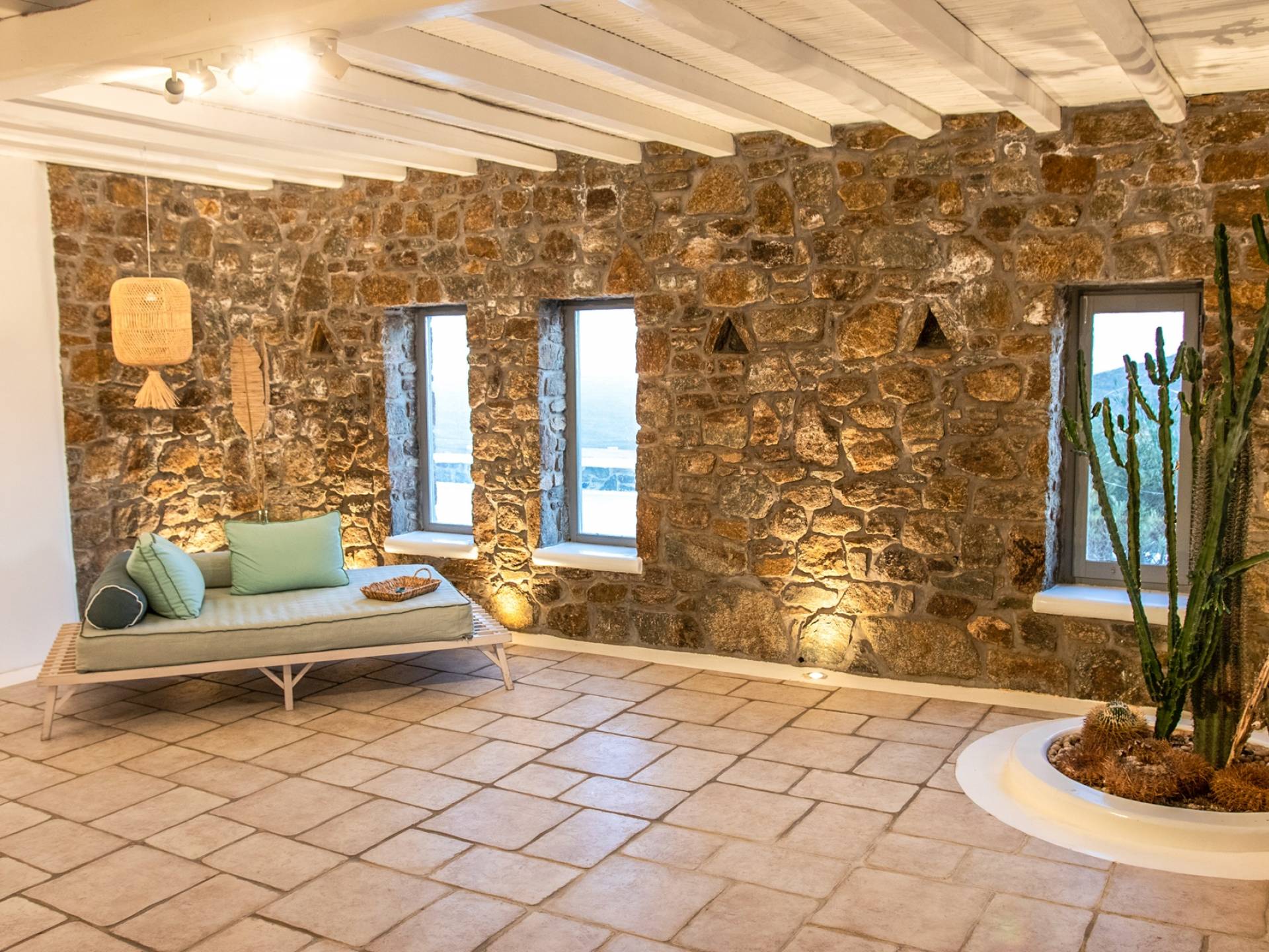 Mykonian Icon Villa is a newly built sea view luxury retreat in the exclusive and quiet area of Kalafati in Mykonos. The combination of comfort and peace far from the crowd, makes this holiday rental an ideal choice for those seeking ultimate privacy. The multiple spacious areas of the villa make it an ideal choice for big families or groups of friends. The magnificent view will release you from bad thoughts and stress of everyday life and make your stay a unique and memorable experience