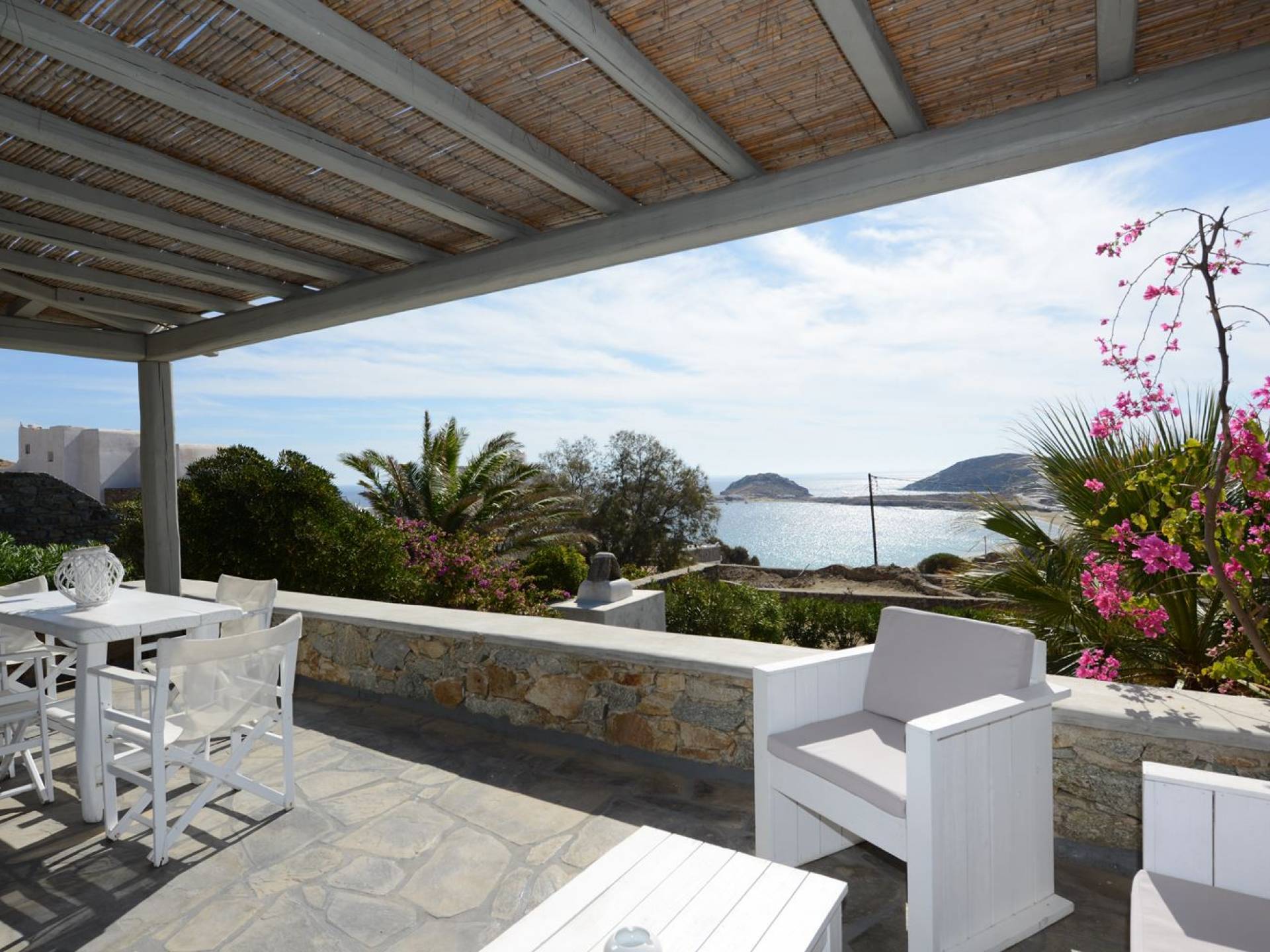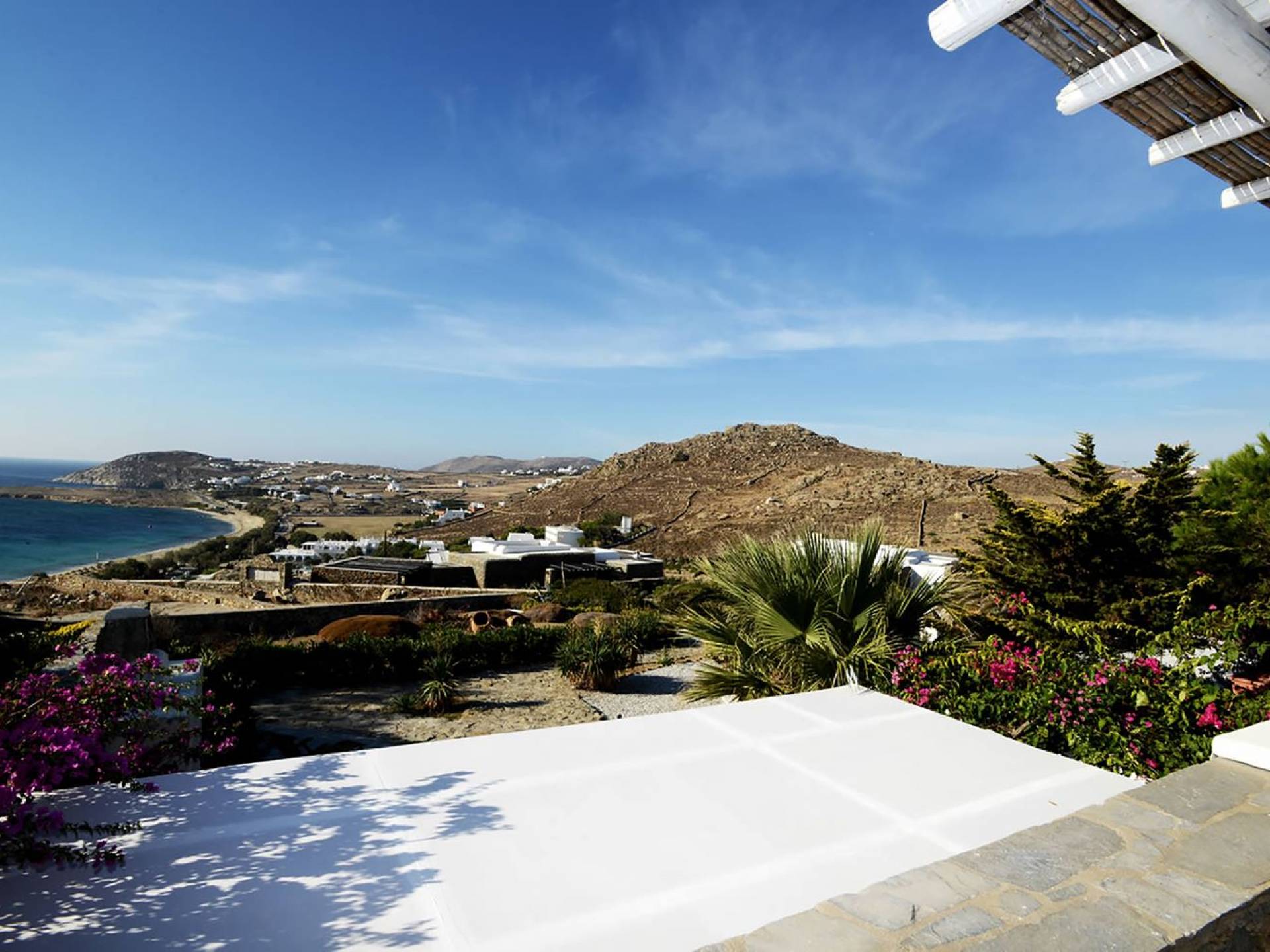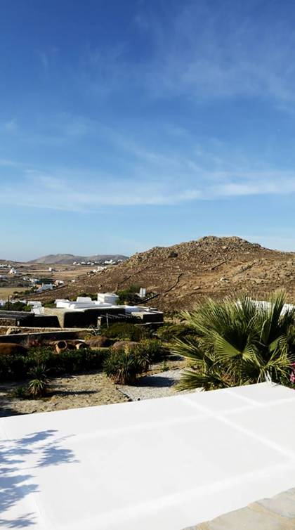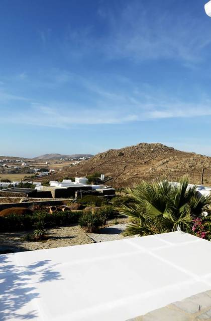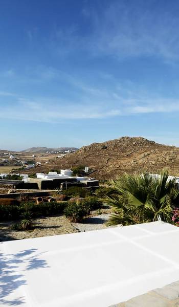 Thalasses Villas Mykonos are situated just 12 kilometers east of the center of the Town of Mykonos, above the village of Kalafati with its large sandy beach of 2 kilometers in length and 70 meters width, marked with the famous blue flag, stand the lovely villas. The holiday resort is built upon a small hill, with easy access to the main street that leads to the town center. At Thallasses Villas Mykonos, guests may enjoy high-quality services and upon special request be provided with a butler, chef, a yacht and even a helicopter.