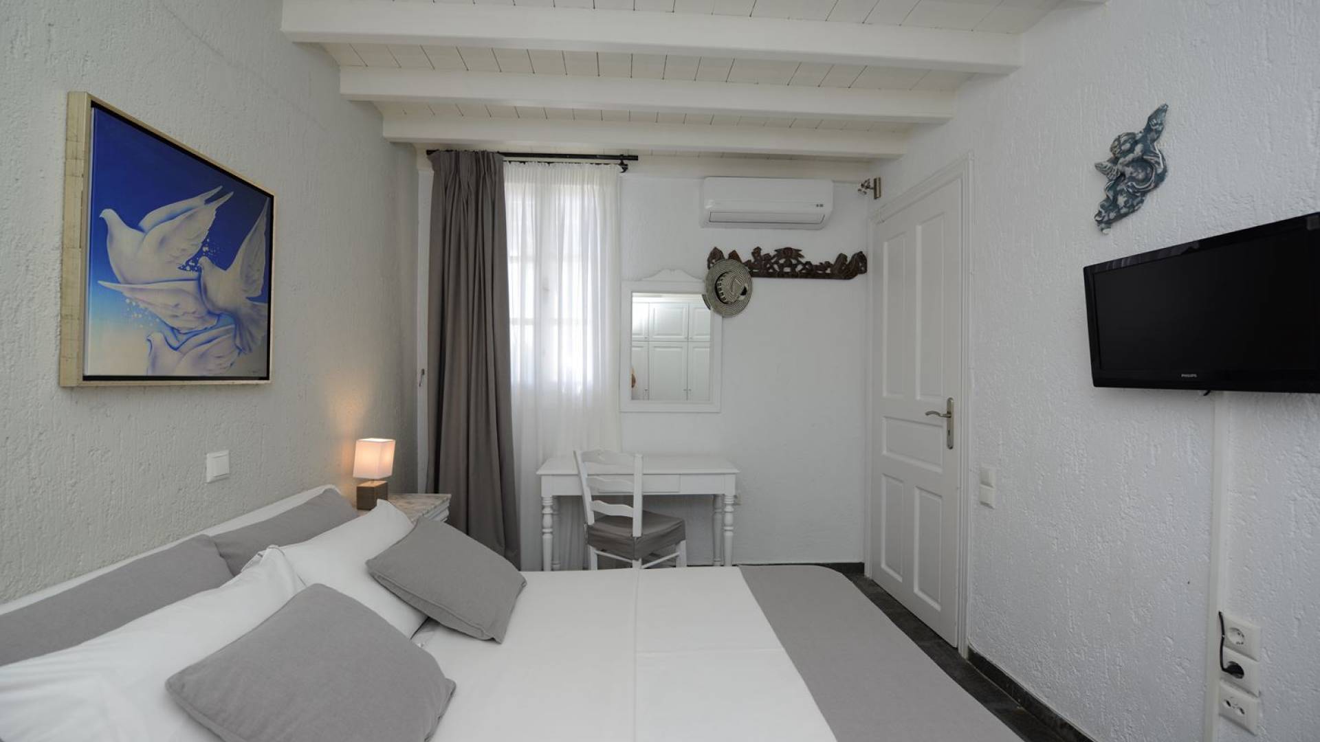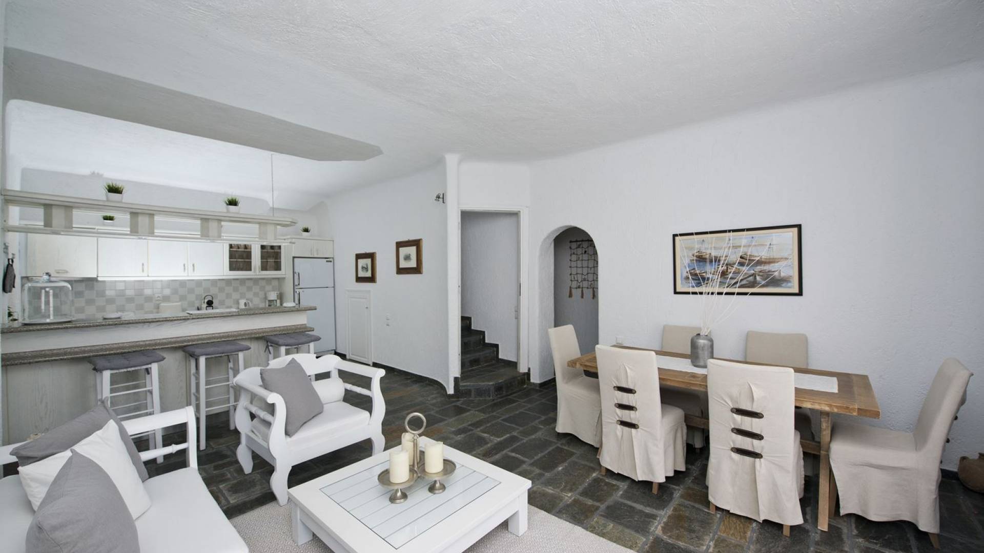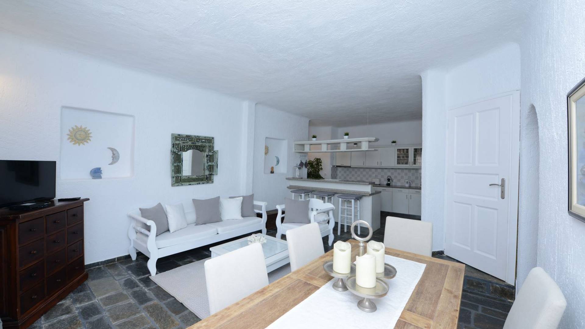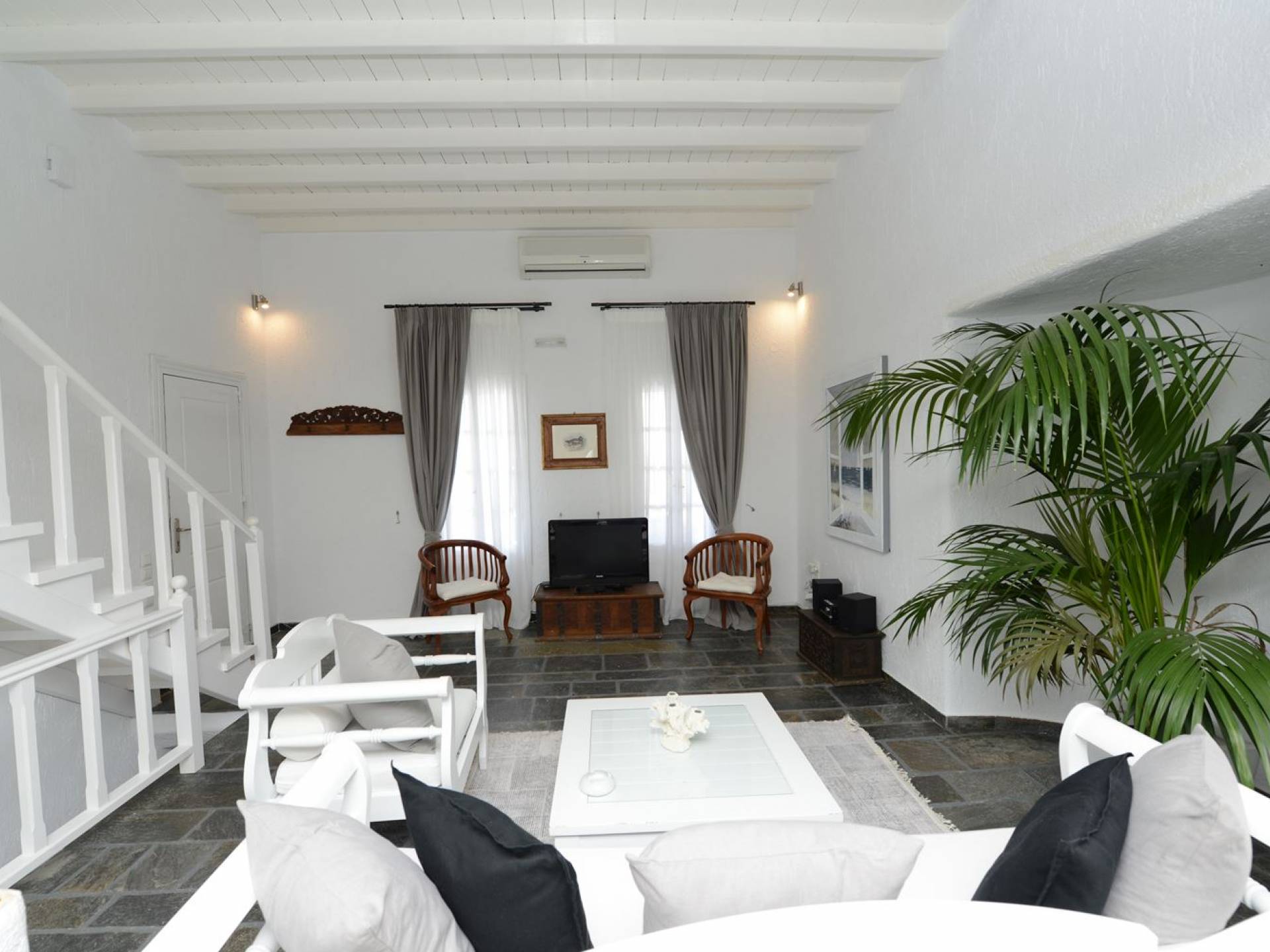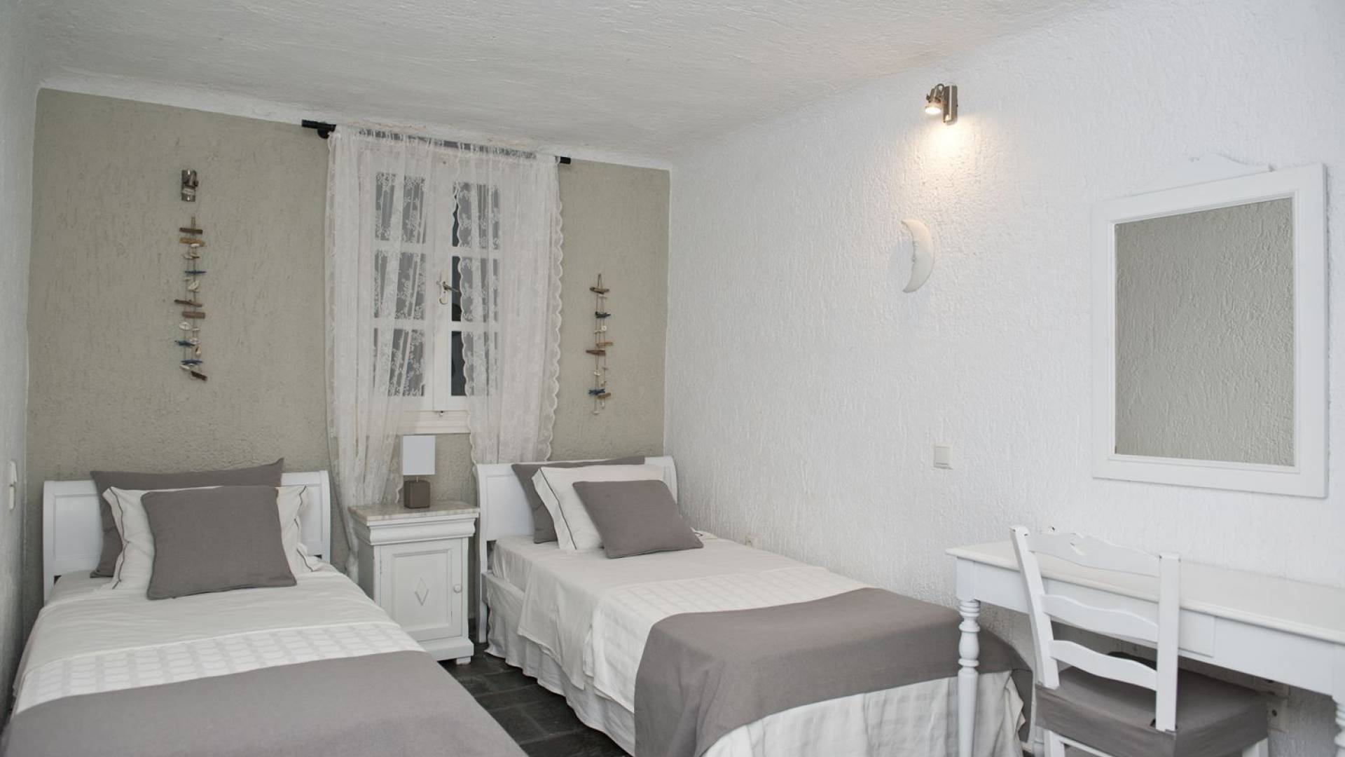 Villa Lia at Thalasses Villas Mykonos is a luxury villa rental with 4 bedrooms and private swimming pool. Villa Lia has a capacity to host up to 8 guests, depending on your choice of intimacy and comfort. The villa comprises of 4 bedrooms one of which is a loft style room with curtain for privacy and 2 hallway bathrooms with showers.