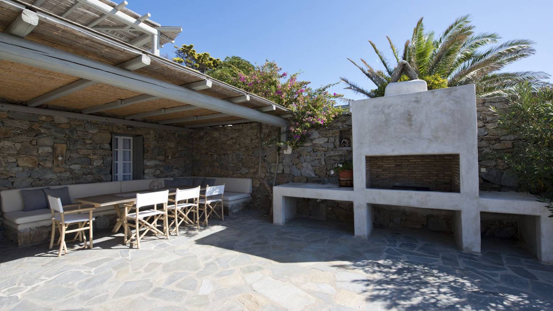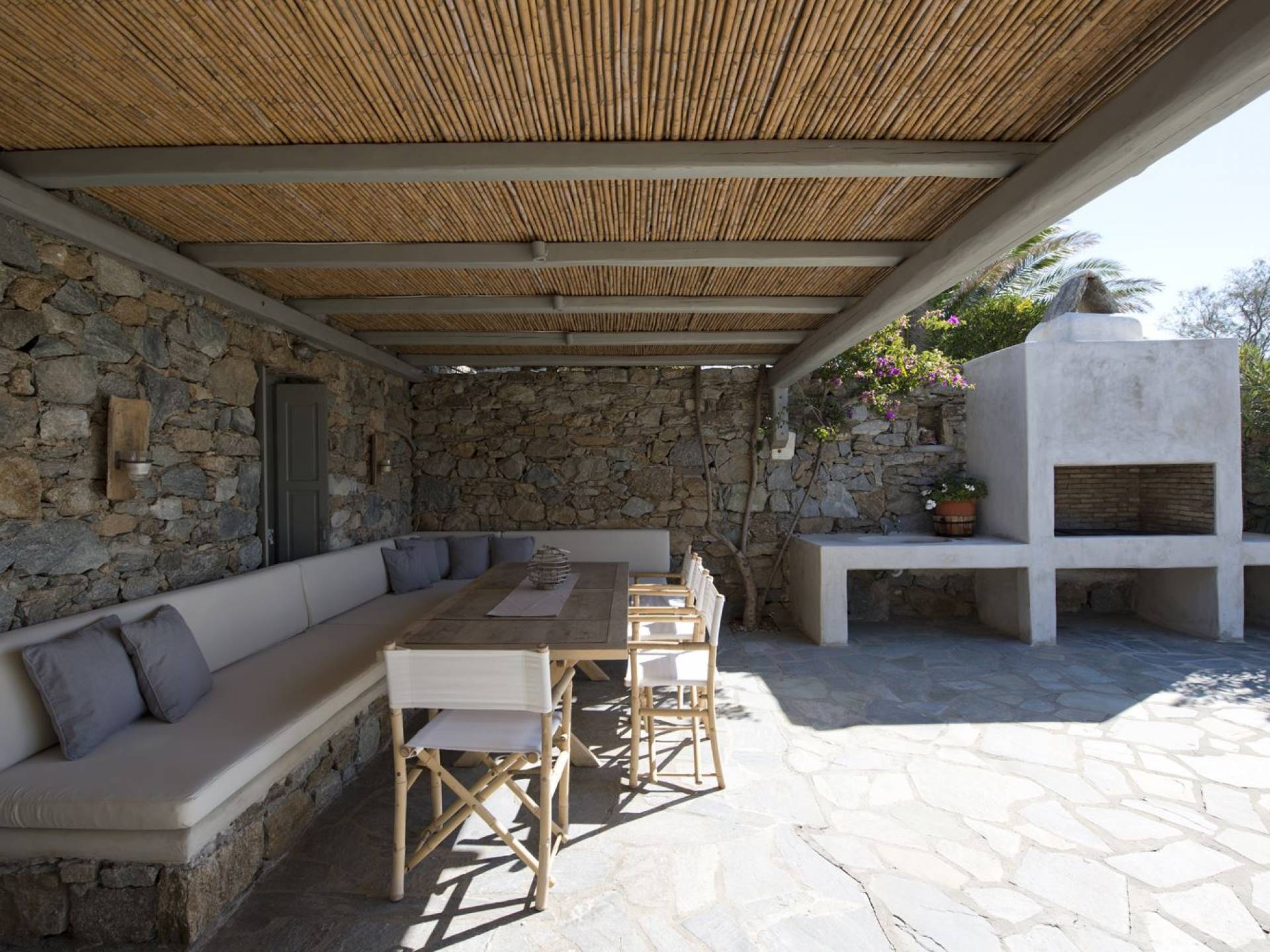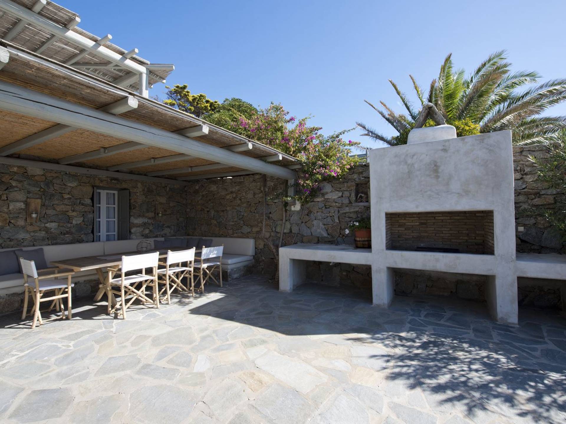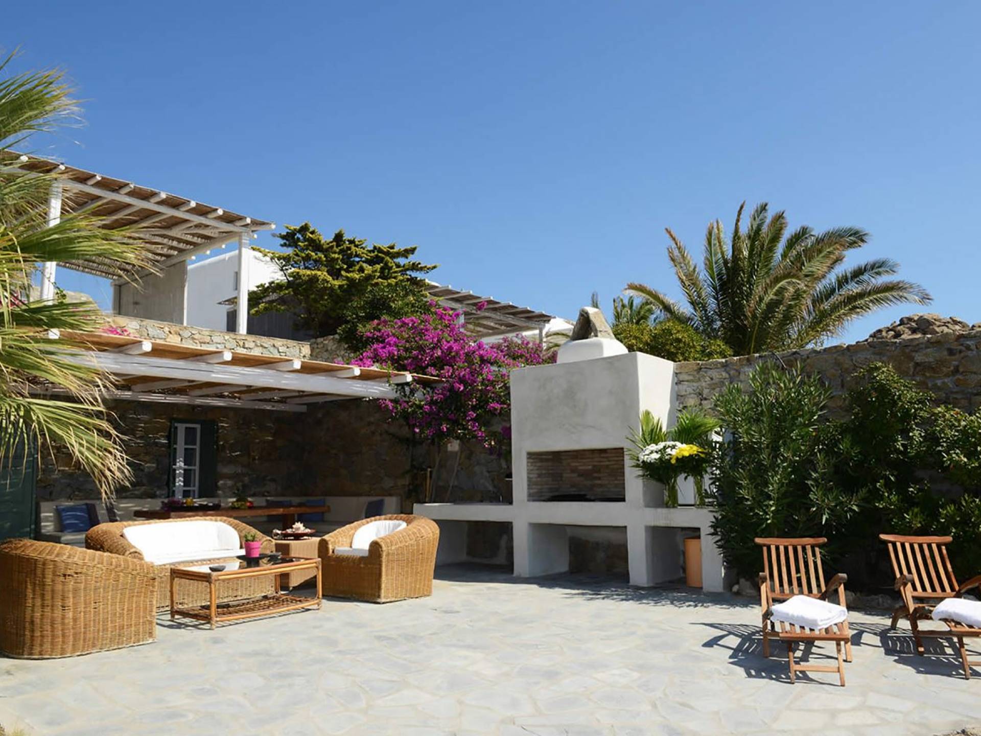 The villa is surrounded by gardens, and large exterior space fully equipped with BBQ and an ice machine to make your own cocktails and refreshing drinks, lovely garden furniture, and designated parking. The villa has an exceptional view overlooking the Aegean Sea to feast your eyes and relax your soul.