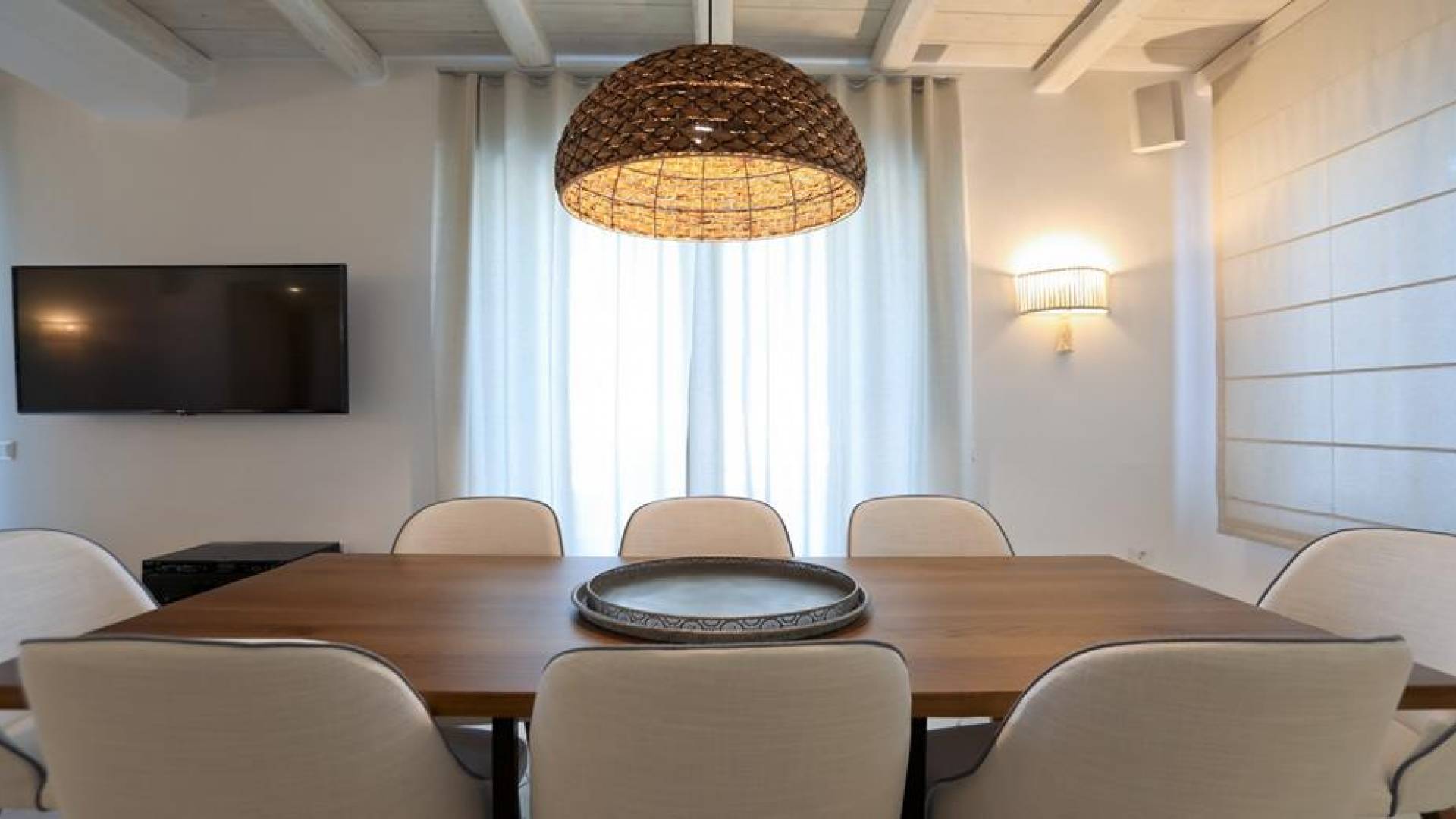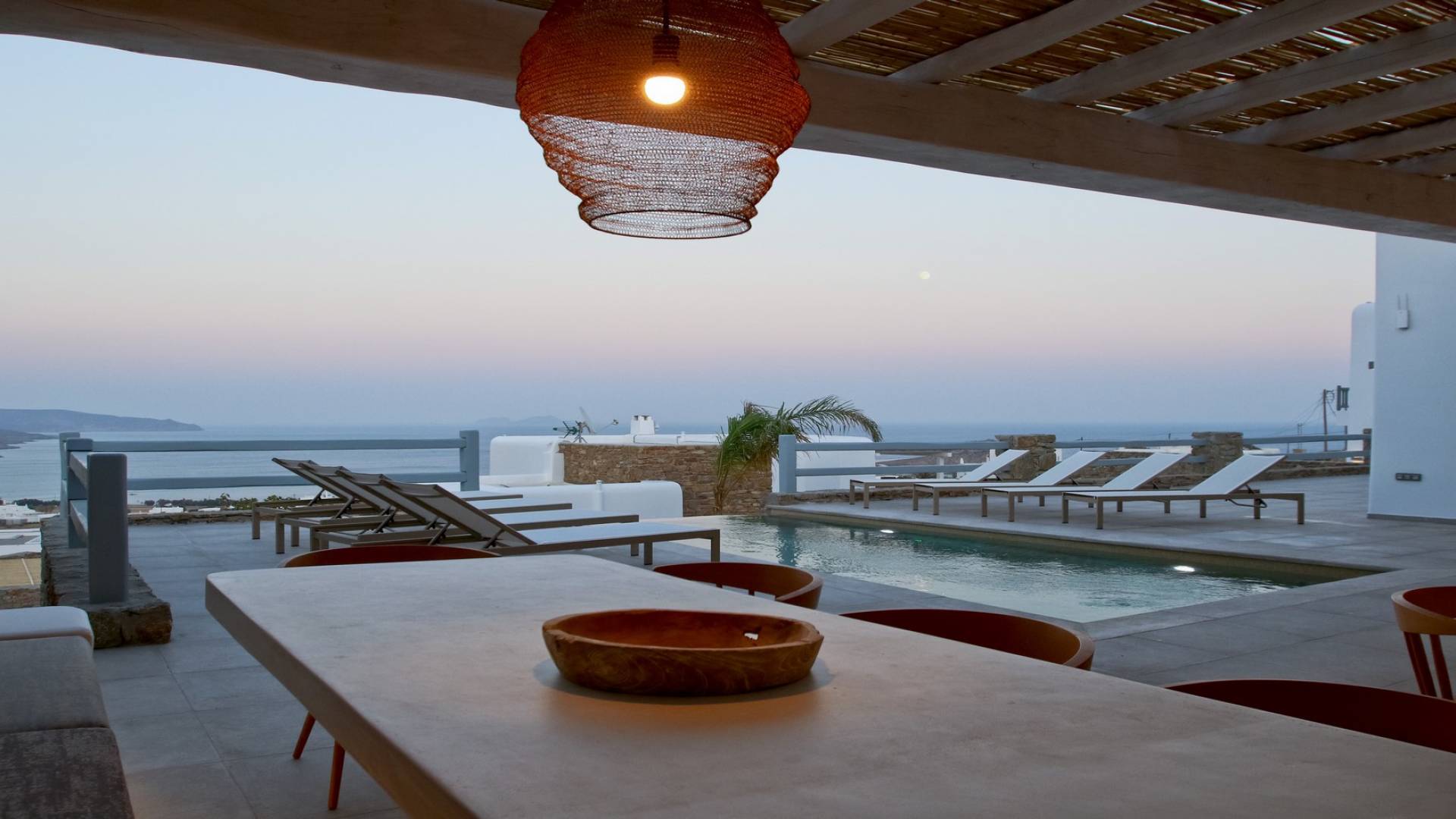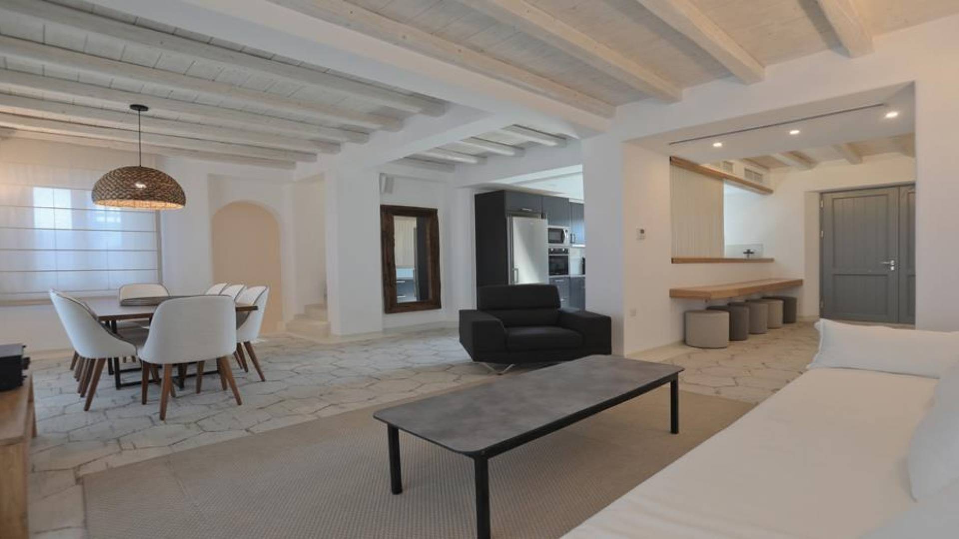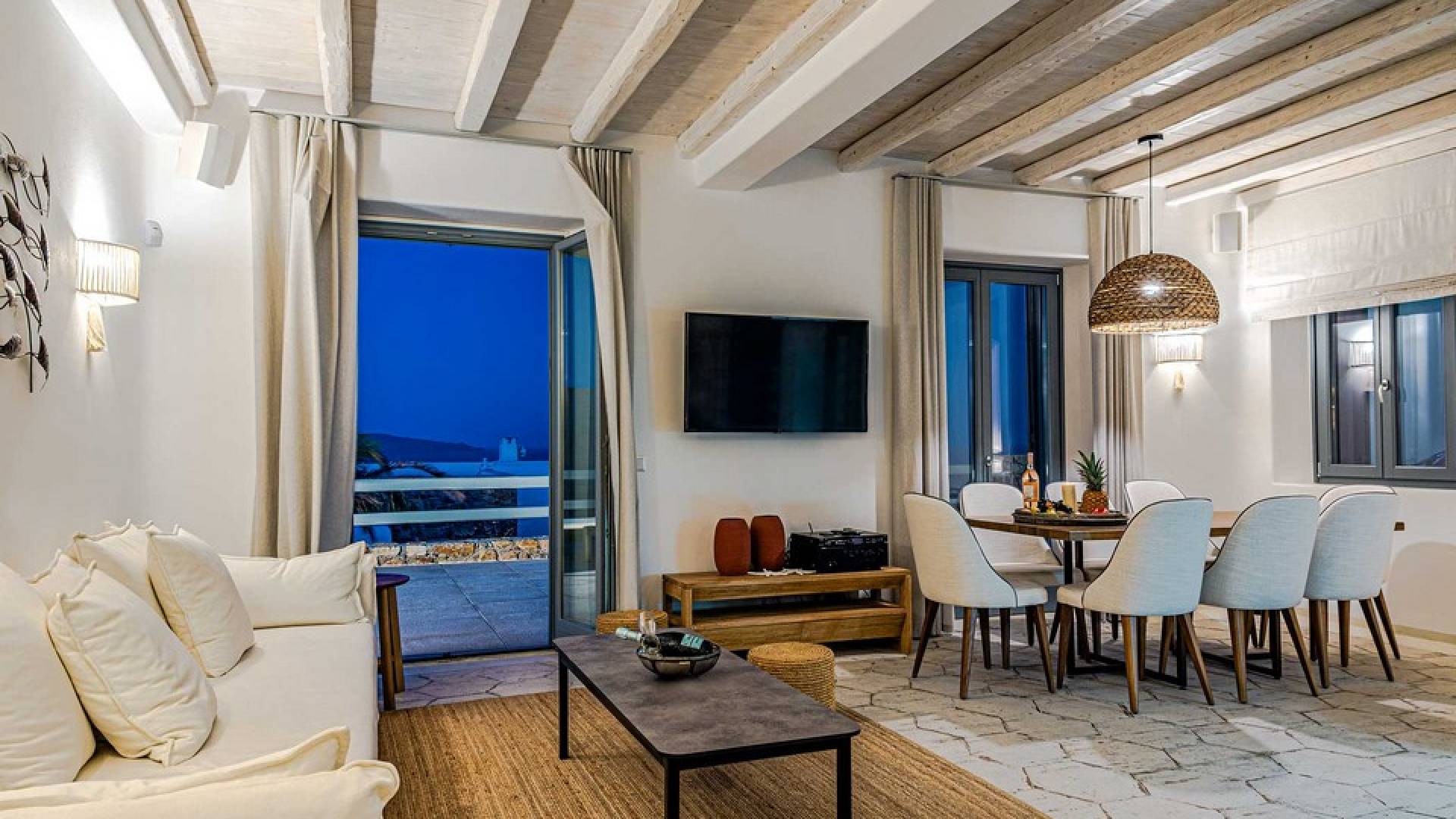 This luxury rental is around 250 sq.m., formed in 3 levels and comfortably accommodates 14 guests at 7 double bedrooms. All outdoor areas of the villa are surrounded by pergolas and stone pedestals that protect the house from the northern winds. The guests can enjoy top facilities: infinity private swimming pool (20 sq.m.), heated Jacuzzi, pool bar & lounge area with BBQ.