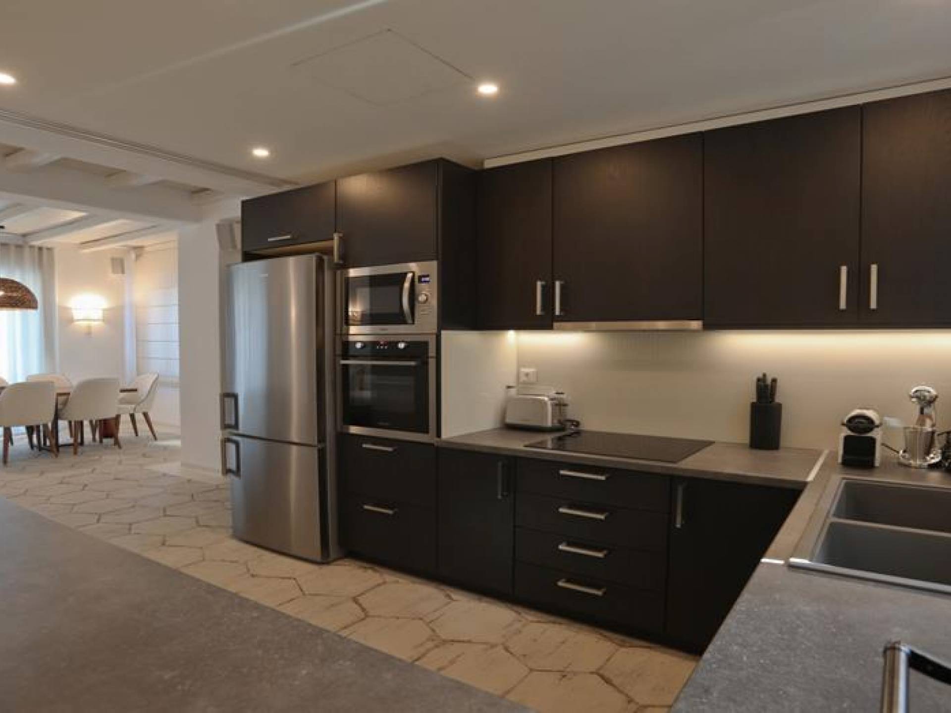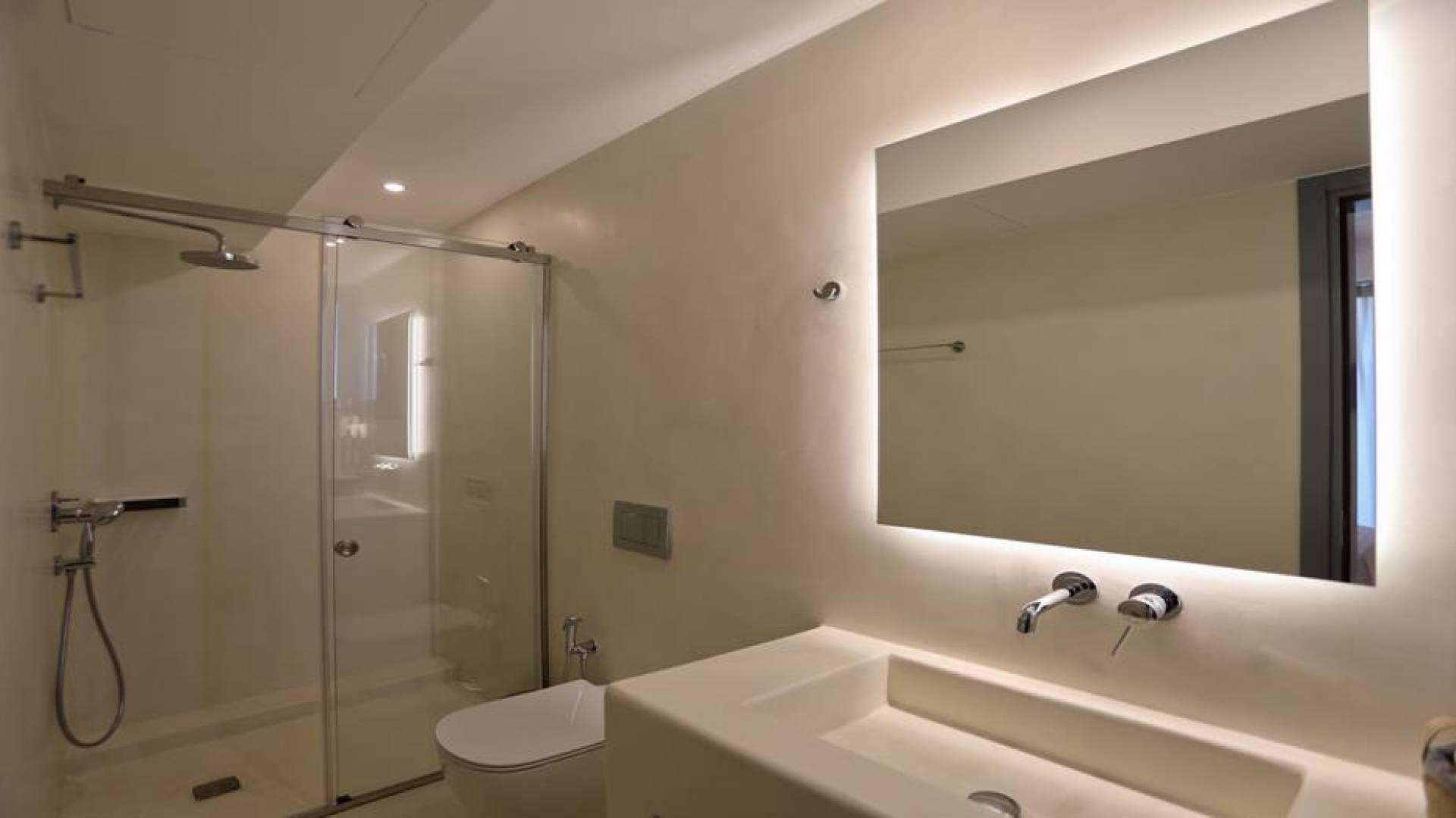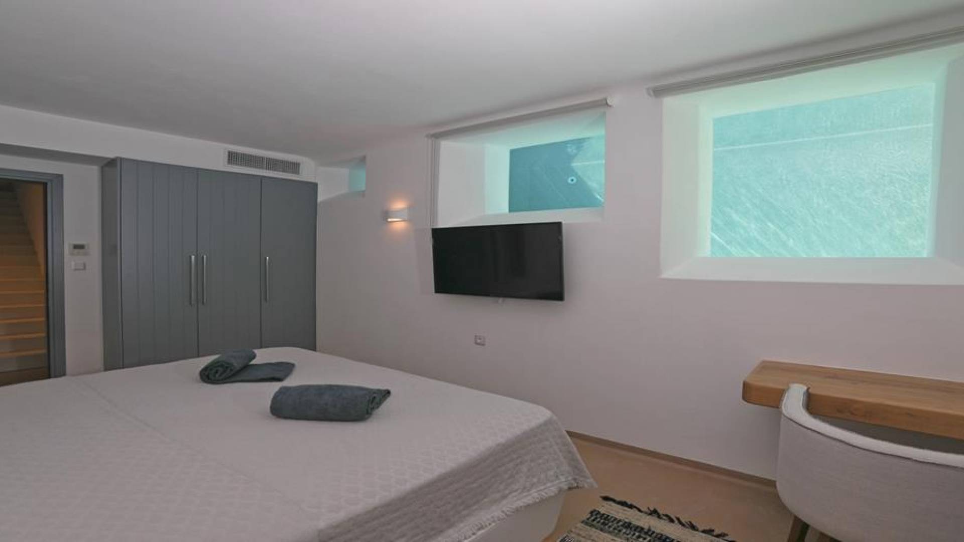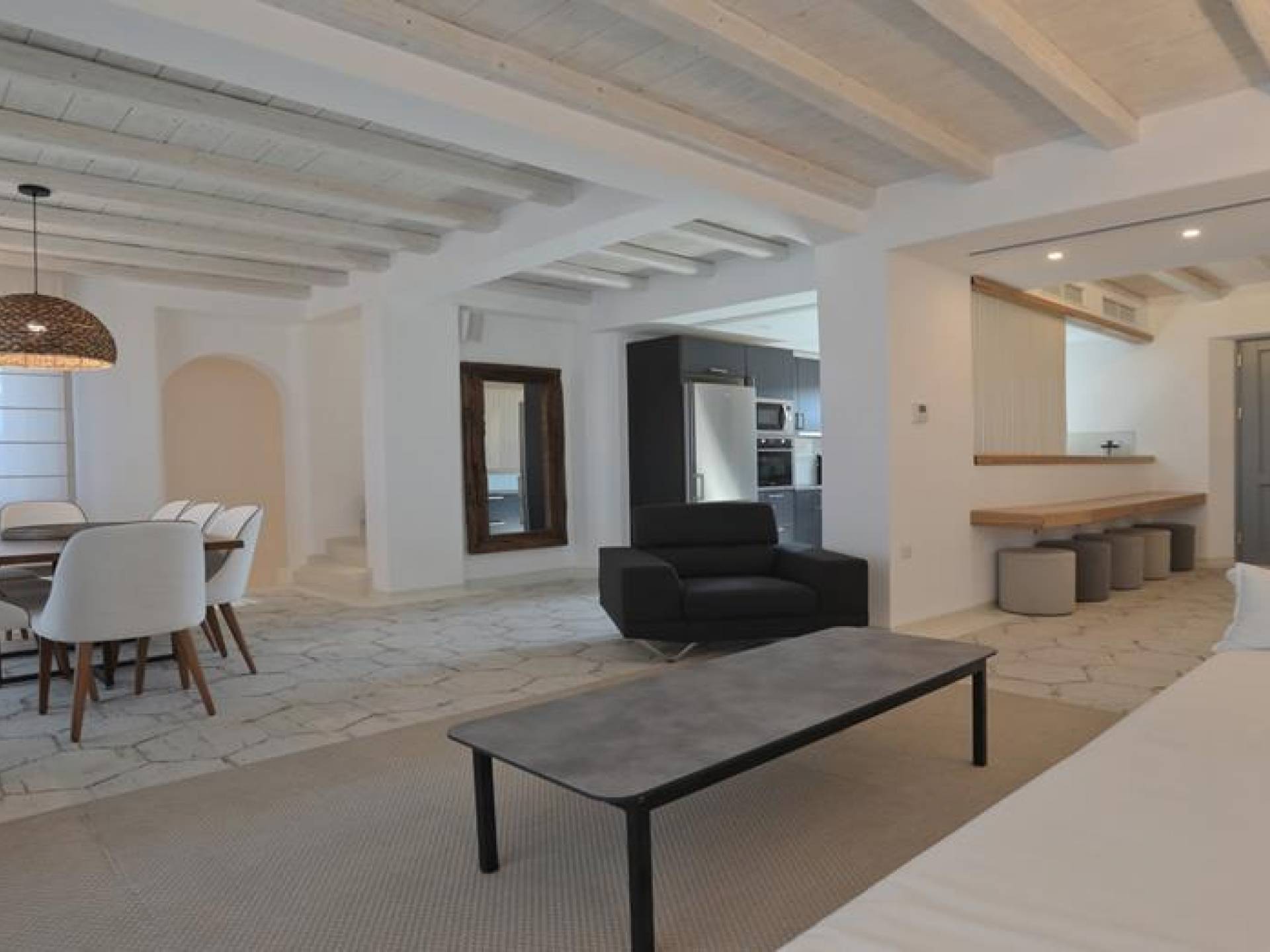 This luxury rental is around 250 sq.m., formed in 3 levels and comfortably accommodates 14 guests at 7 double bedrooms. All outdoor areas of the villa are surrounded by pergolas and stone pedestals that protect the house from the northern winds. The guests can enjoy top facilities: infinity private swimming pool (20 sq.m.), heated Jacuzzi, pool bar & lounge area with BBQ.