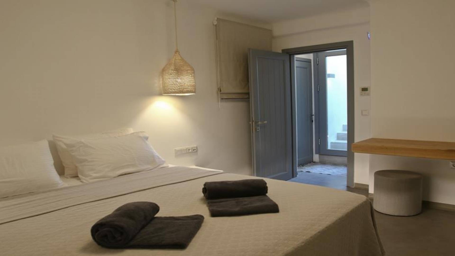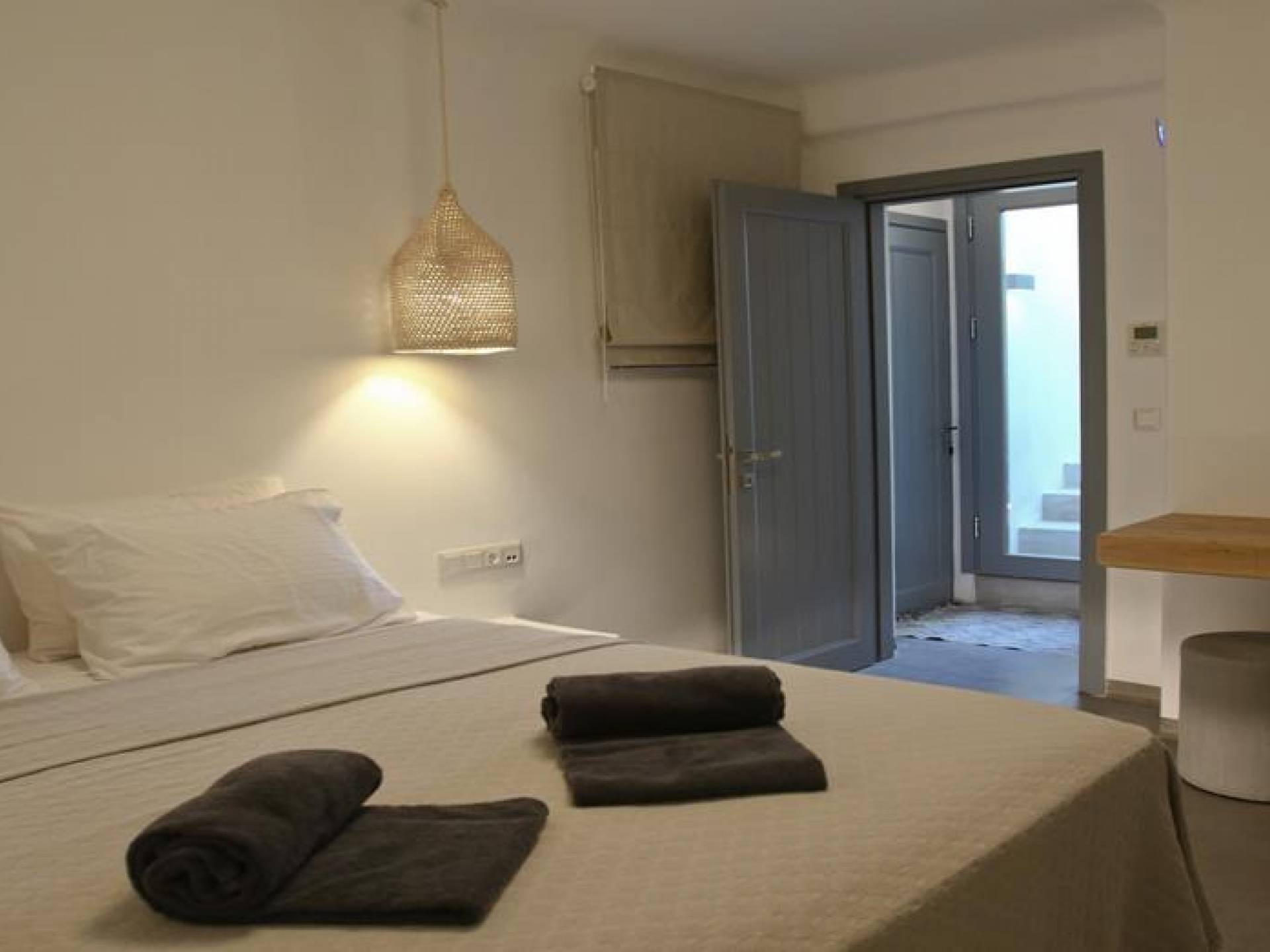 Villa Suflower Mykonos is built in the traditional Mykonian/Cycladic architecture of white washed cube houses with a contemporary touch in the design and furniture.