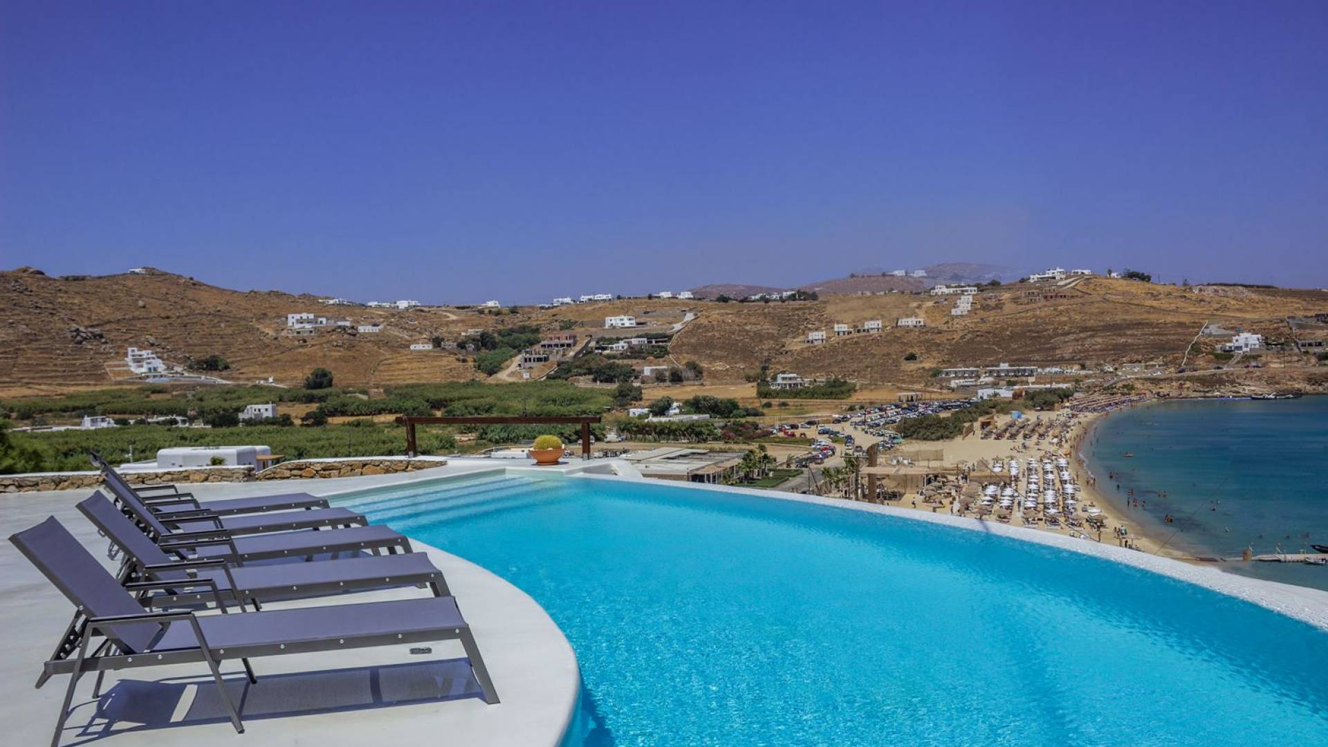 show more detailsKalo Livadi Mykonos is one of the longest beaches in Mykonos and quite popular for high-quality facilities and endless parties. However, it is also suited for families who choose this beach due to the shallow and clean waters and the tranquil atmosphere during daytime. The vast beauty of the turquoise waters and the idyllic setting is not to be missed. It is found between Kalafatis and Elia beach, located 10 km from Mykonos Town. Kalo Livadi has excellent facilities with sundecks and umbrellas available for you to enjoy the Greek hot sun. Find your own spot on the sand and let this become your most refreshing memory. Around this beach, you will find various types of accommodation as well as great taverns to taste the exquisite traditional cuisine.