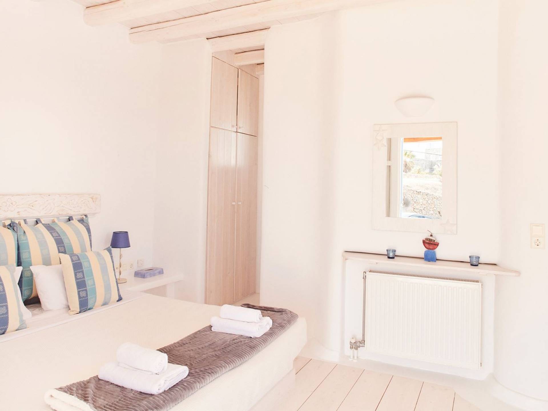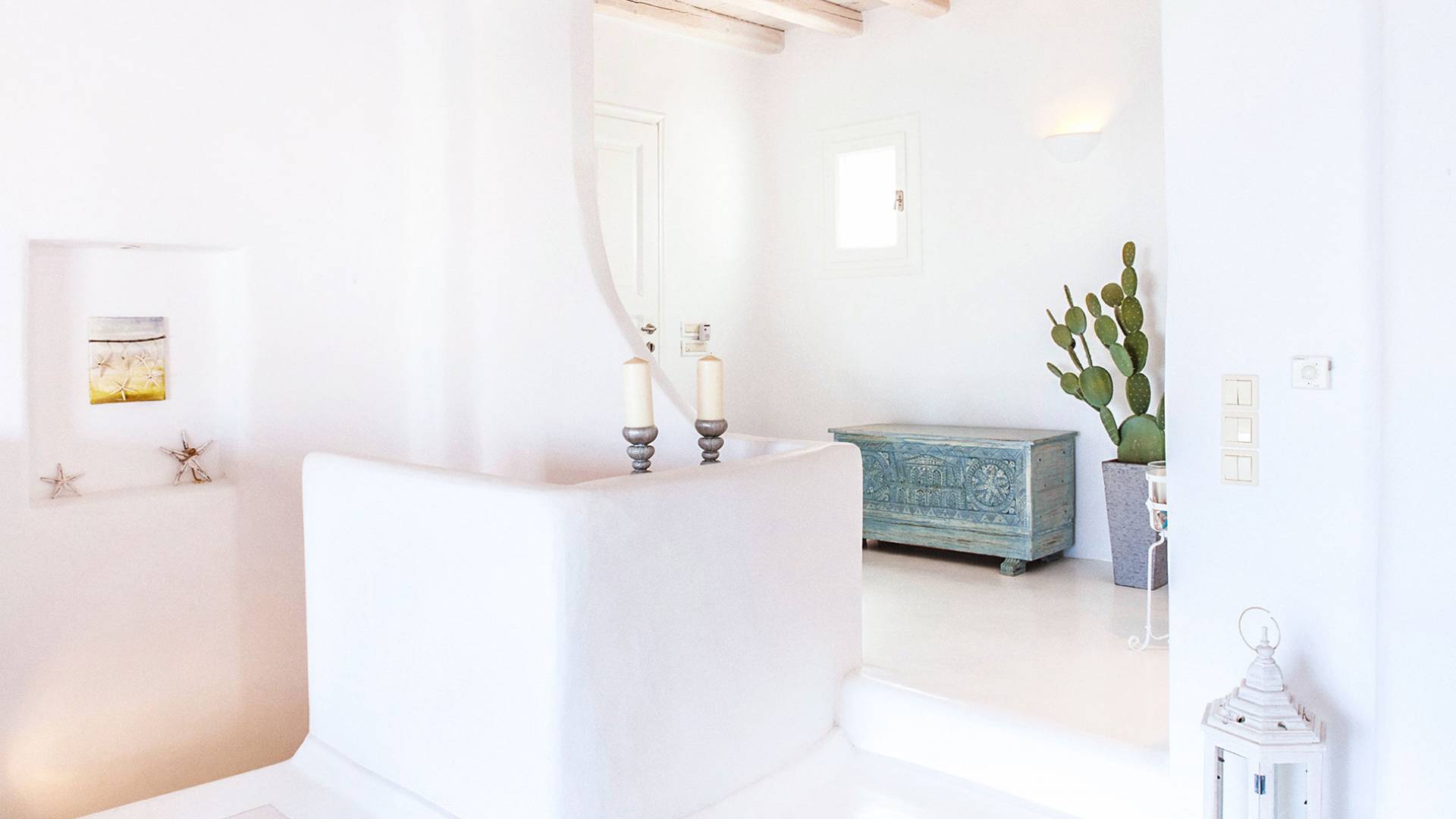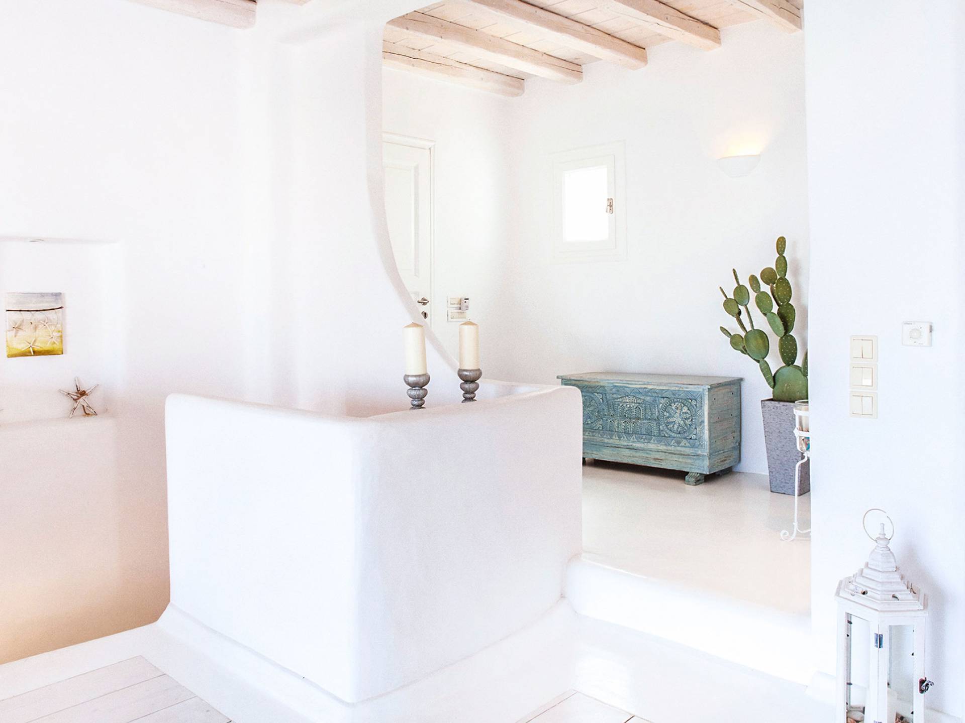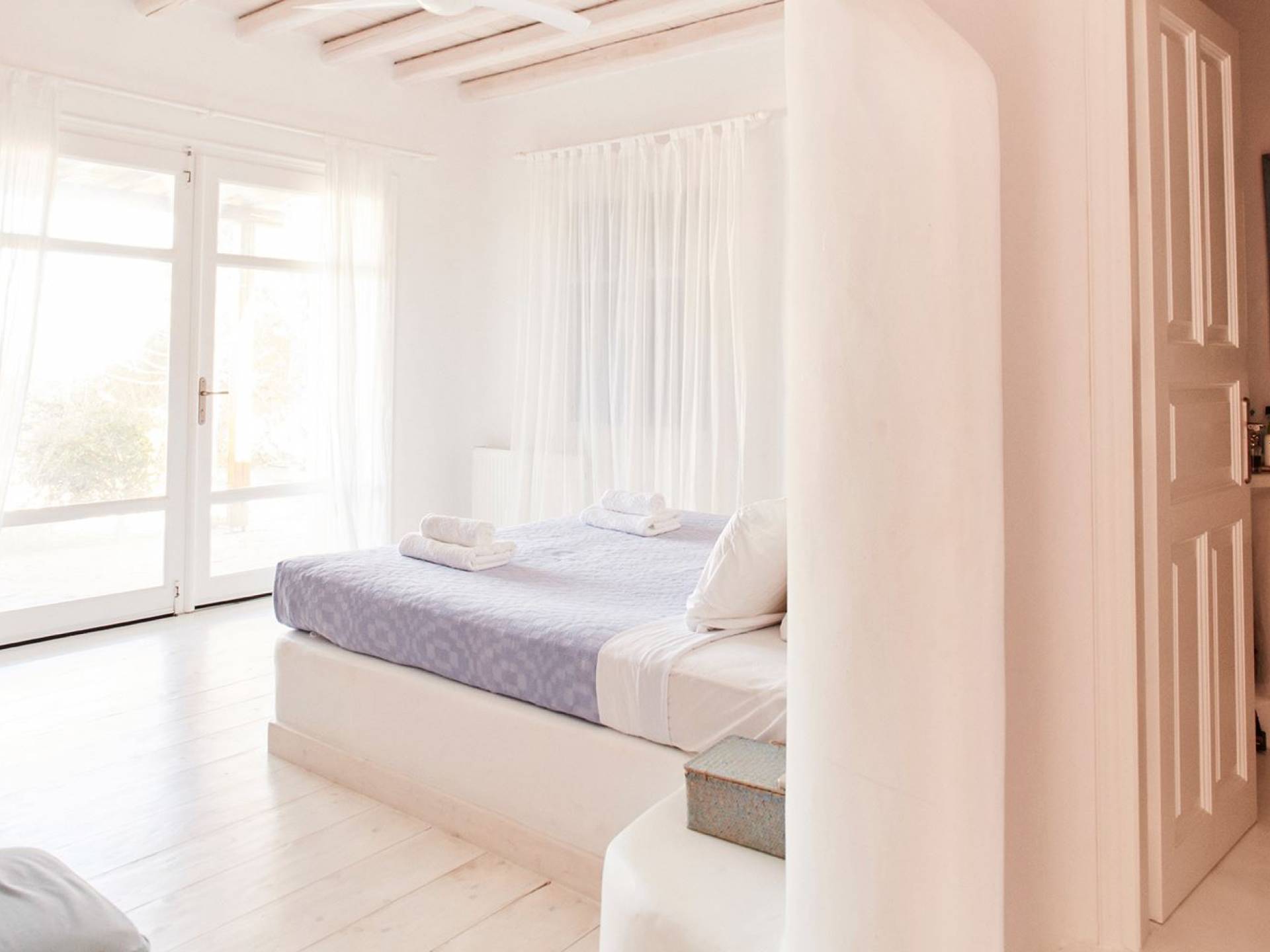 Villa Alcyone is a quintessential example of Mykonian sophistication. Its interior comprises 5 air-conditioned bedrooms, a commodious living room and a fully equipped kitchen, while its exterior features a charming terrace with sun loungers, a delightful garden and an inviting swimming pool with enticing ocean views