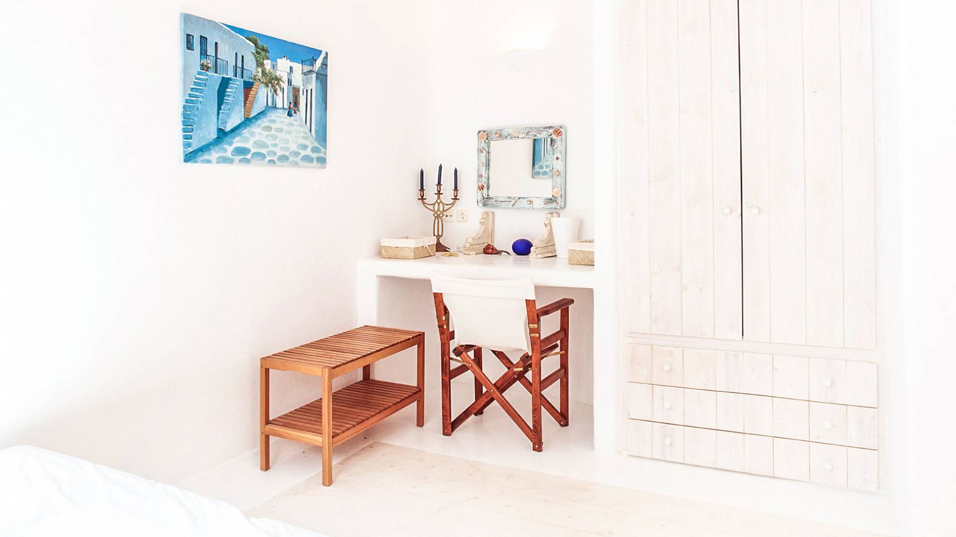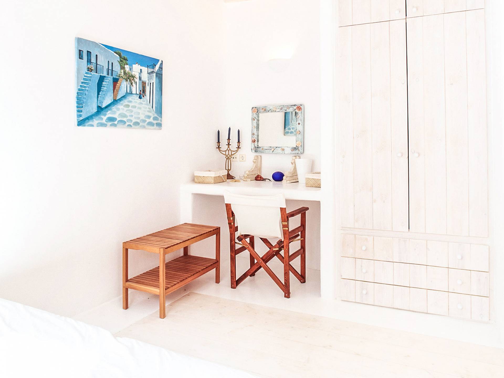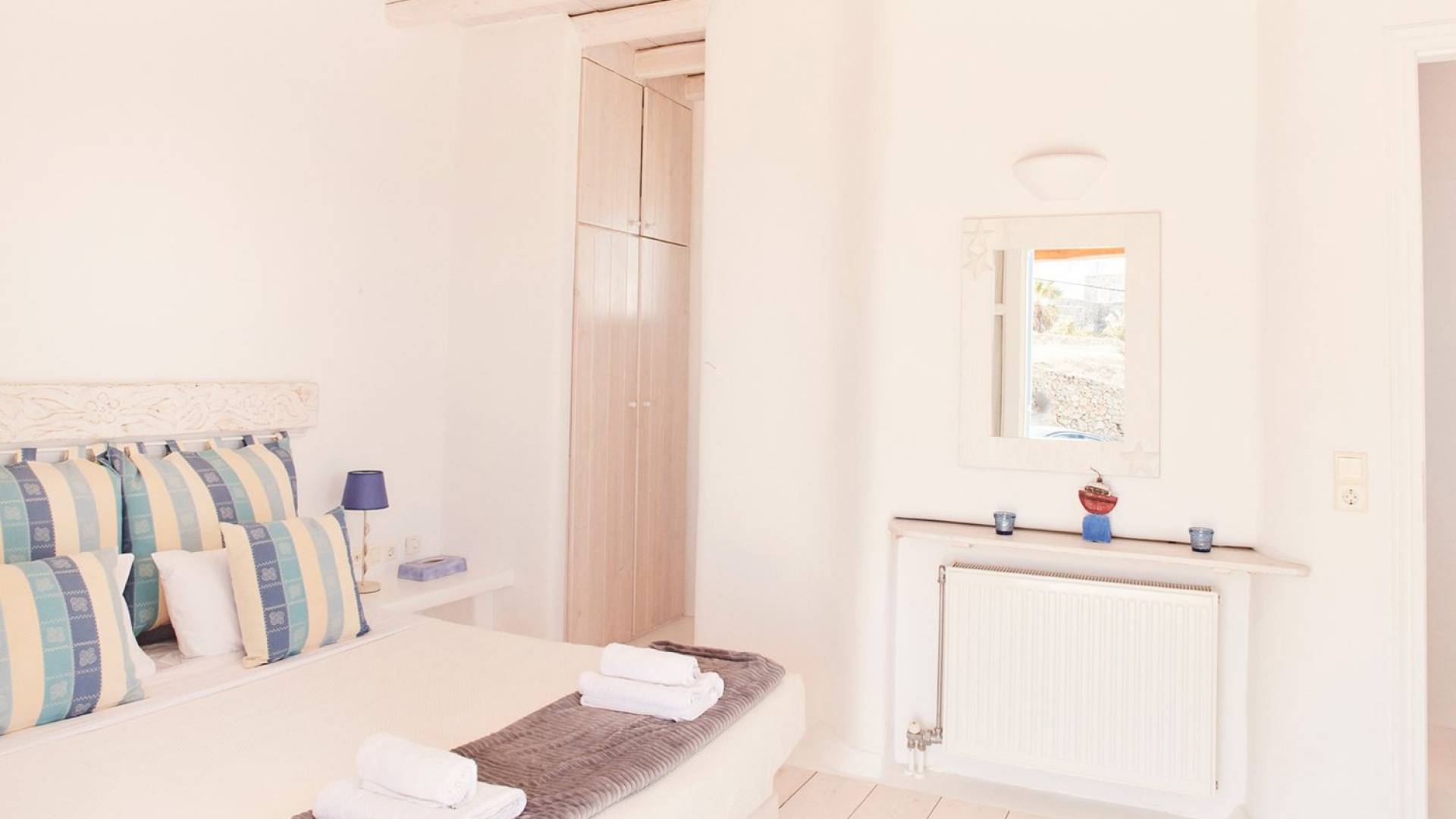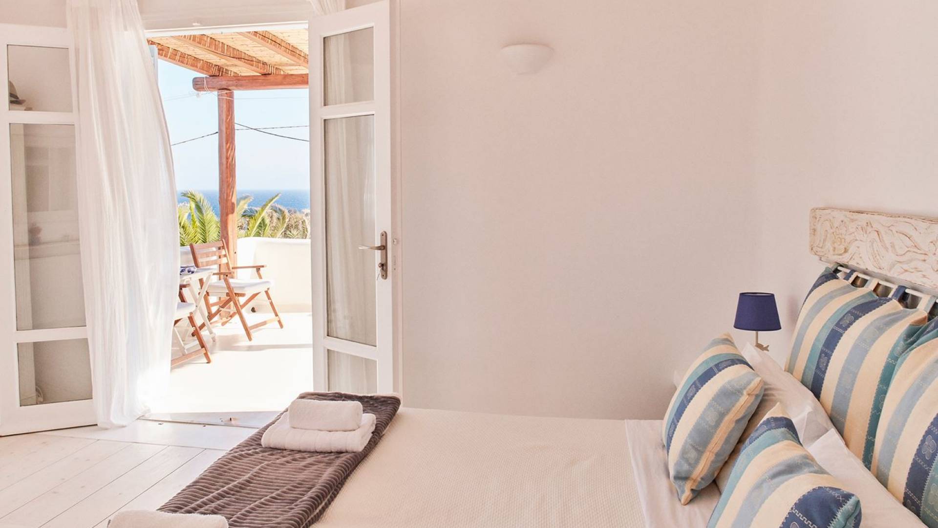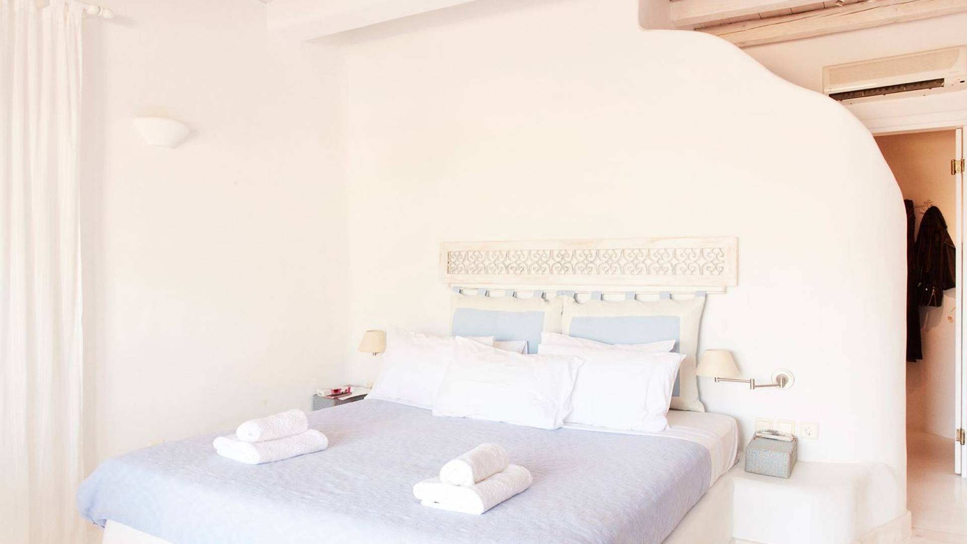 Villa Alcyone is a quintessential example of Mykonian sophistication. Its interior comprises 5 air-conditioned bedrooms, a commodious living room and a fully equipped kitchen, while its exterior features a charming terrace with sun loungers, a delightful garden and an inviting swimming pool with enticing ocean views
