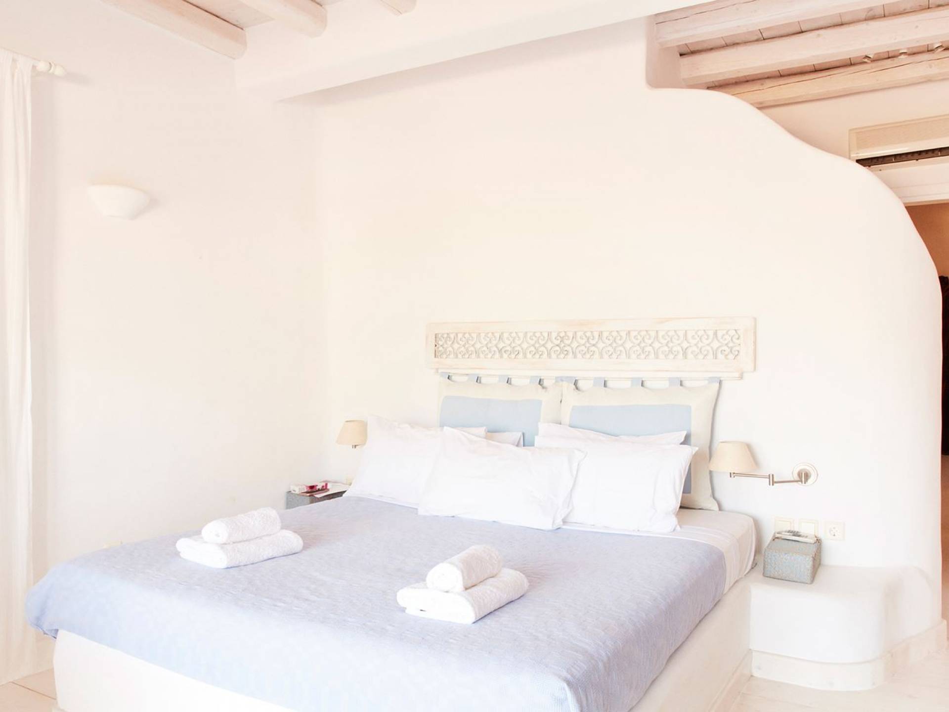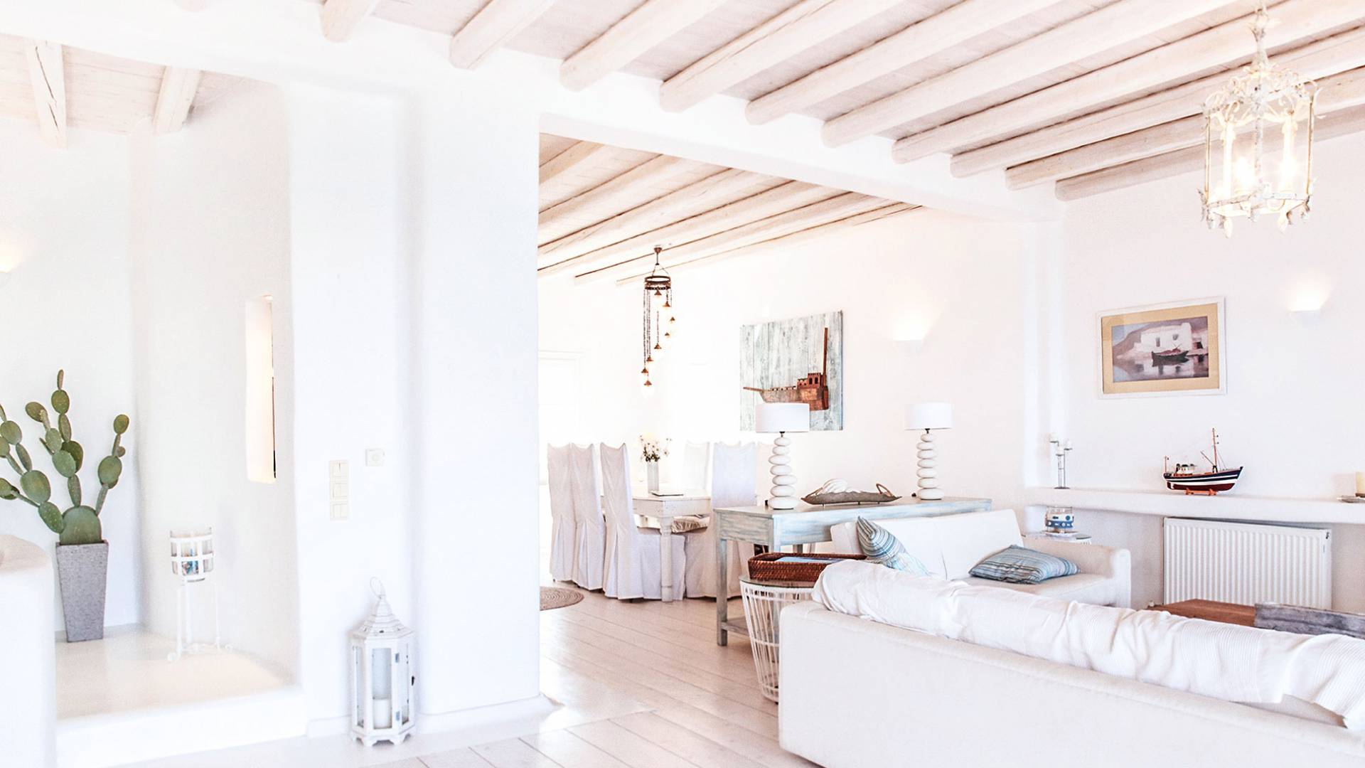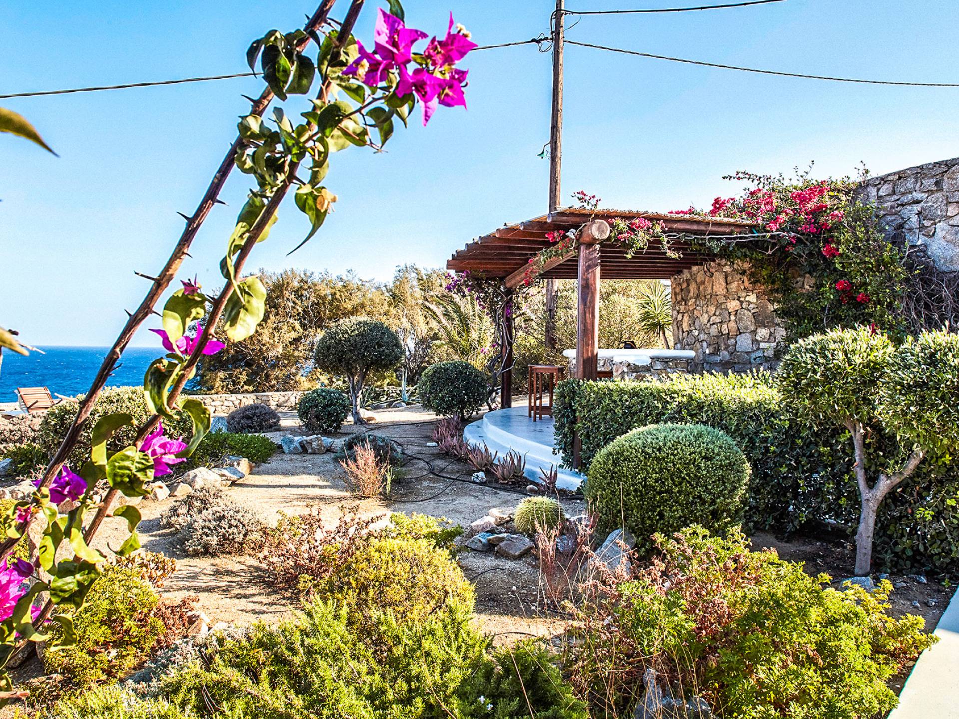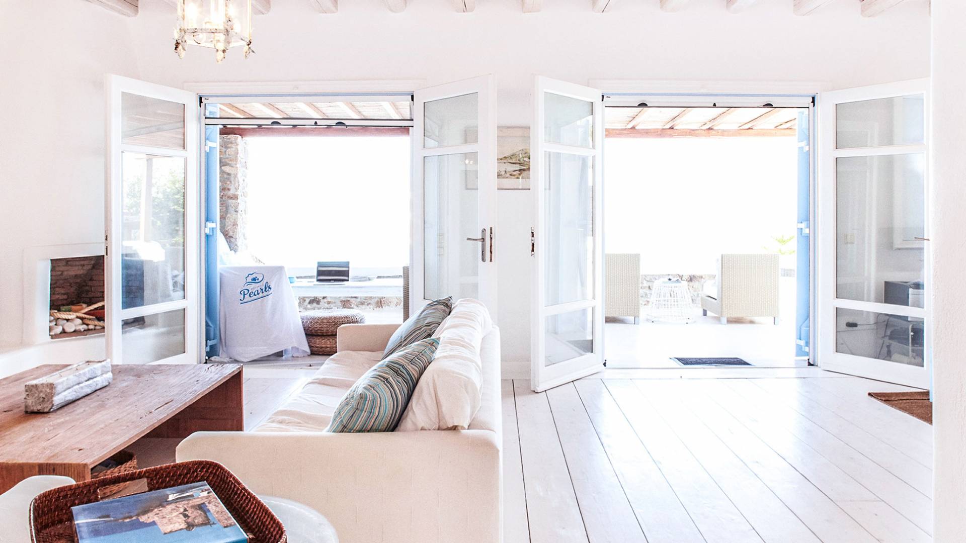 Villa Alcyone Mykonos is a luxury villa rental with 5 bedrooms and a private pool. Standing on a small hill on the edge of Kalo Livadi bay, villa Alcyone is a luxurious property that offers jaw-dropping views above the Aegean sea and elegant outdoor spaces. Just a breath away from the magnificent Kalo Livadi beach, Alcyone is the ideal choice for those looking to enjoy the natural beauty of Mykonos and unwind by the seafront.