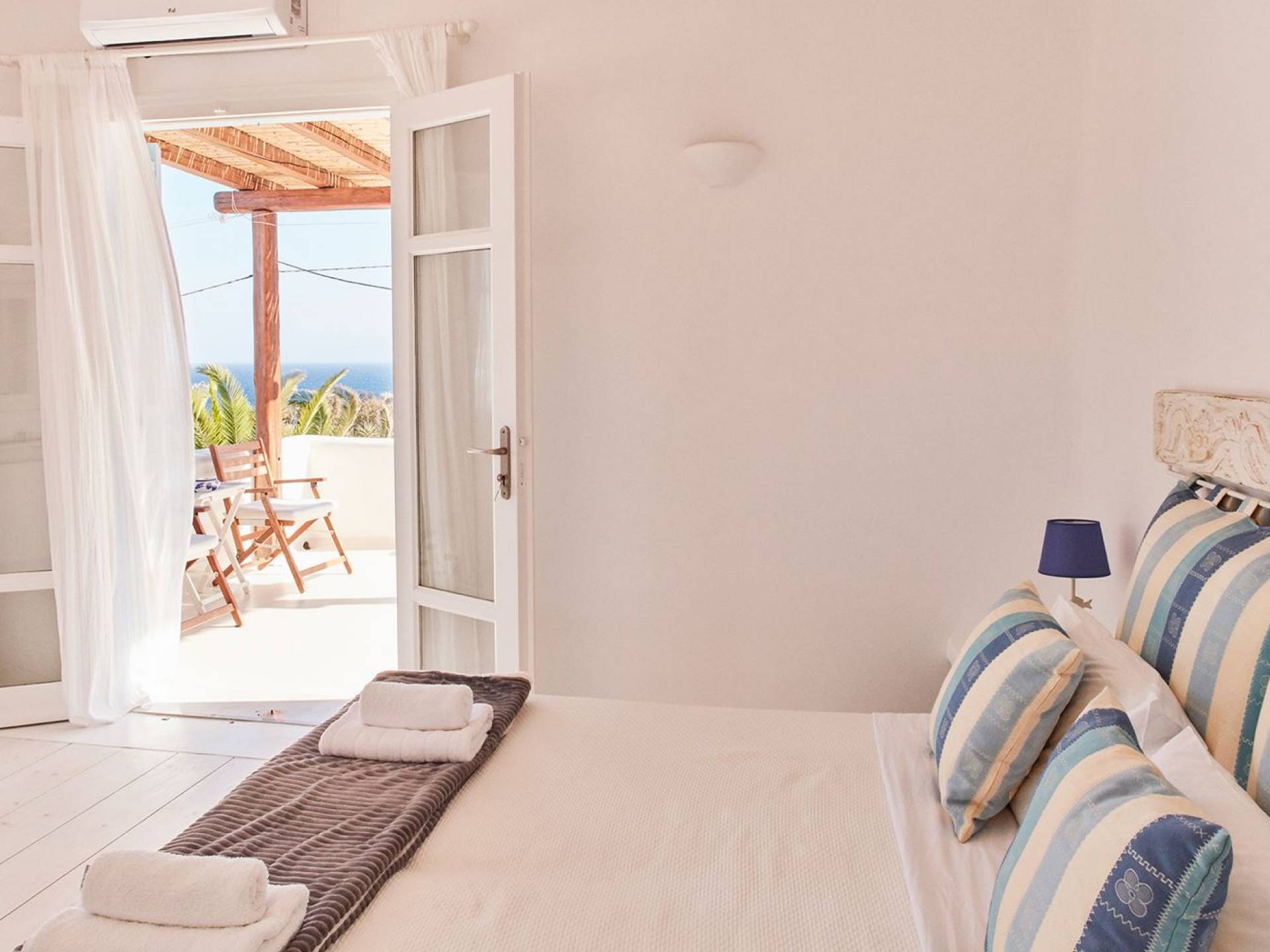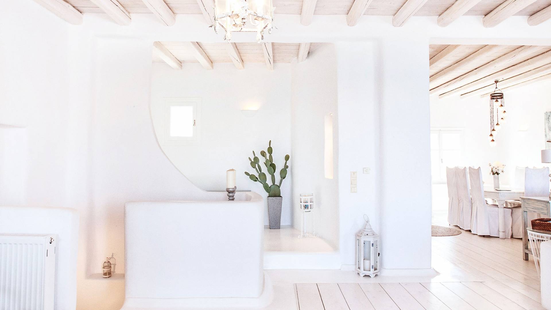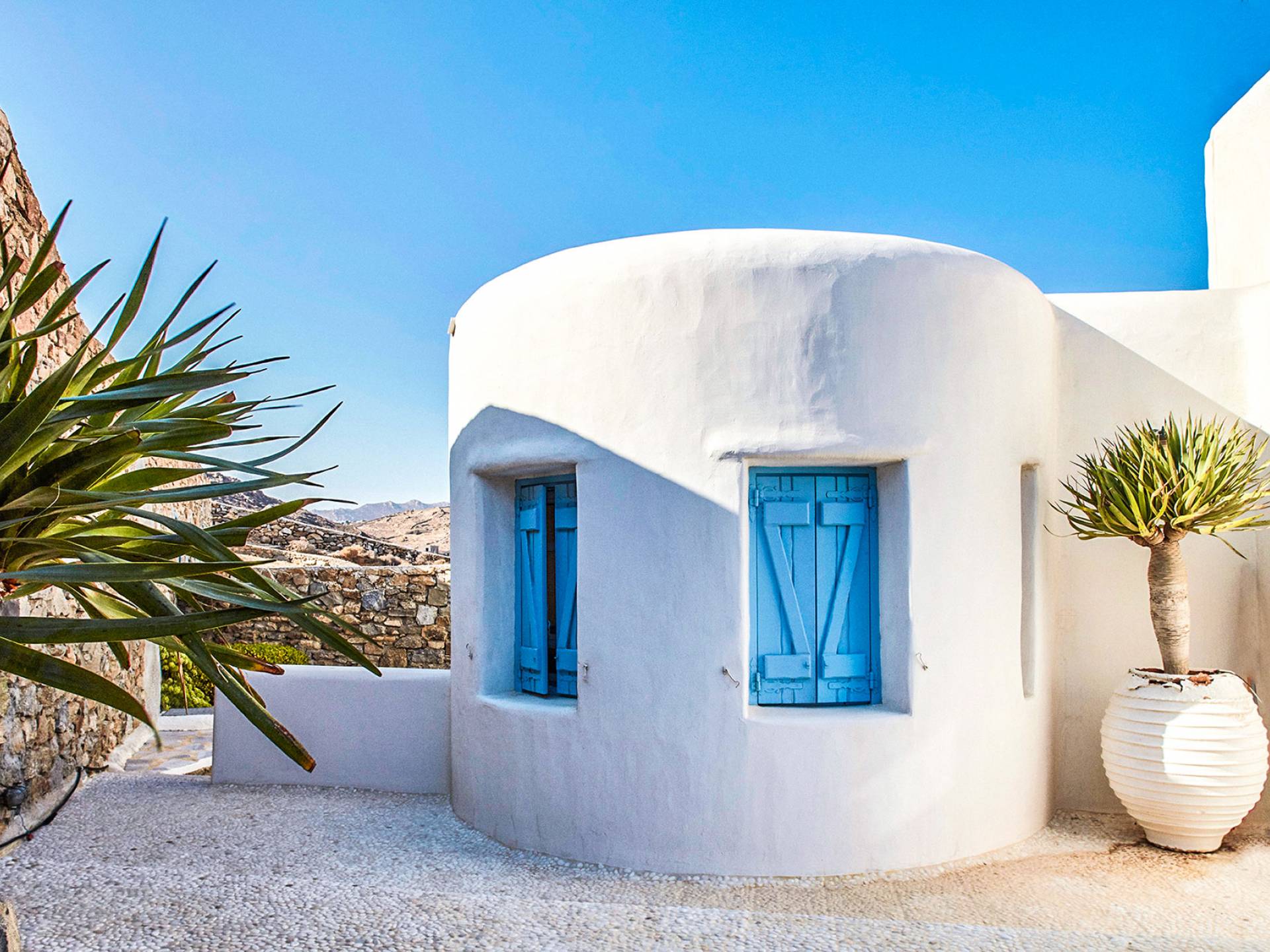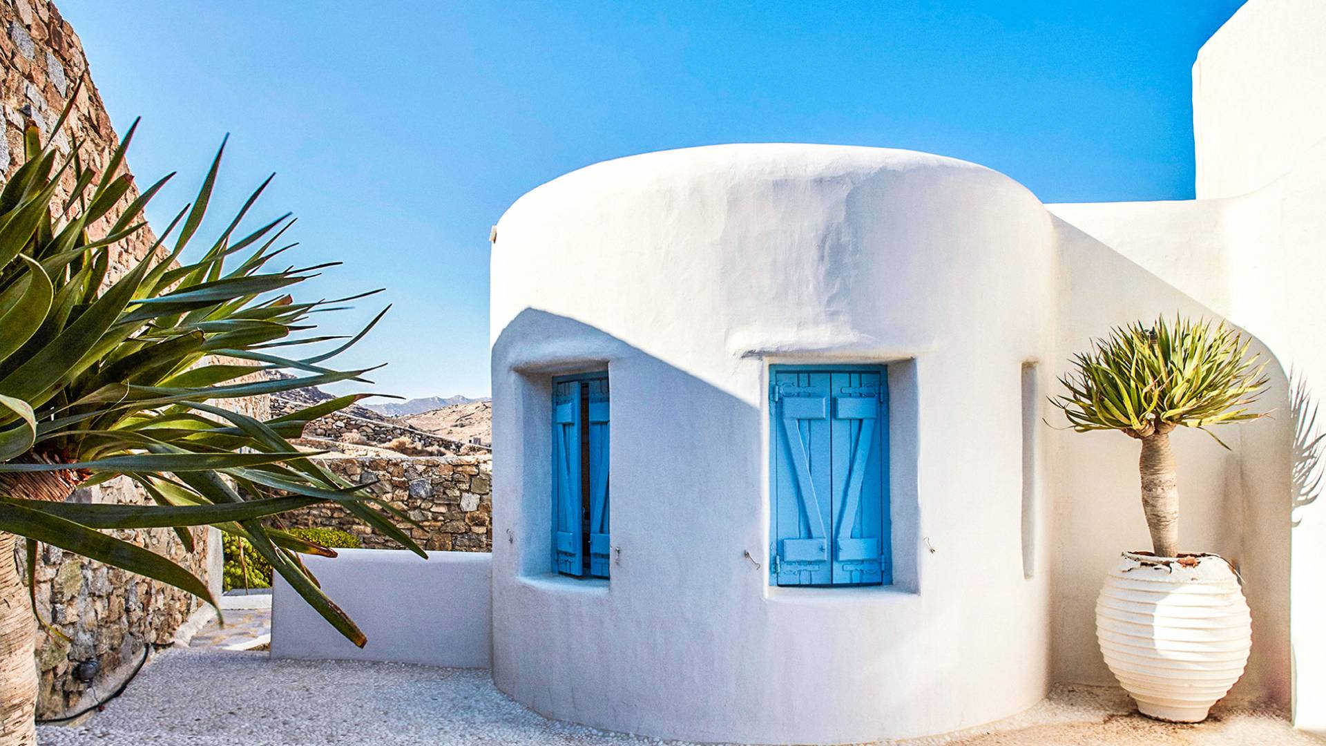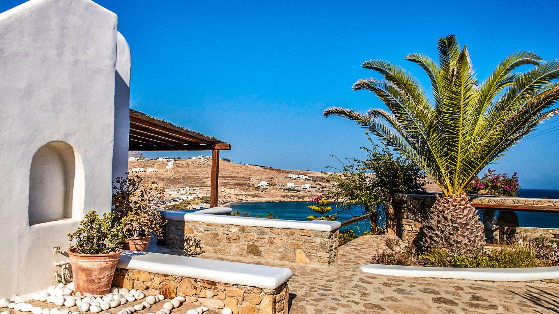 Villa Alcyone Mykonos is a luxury villa rental with 5 bedrooms and a private pool. Standing on a small hill on the edge of Kalo Livadi bay, villa Alcyone is a luxurious property that offers jaw-dropping views above the Aegean sea and elegant outdoor spaces. Just a breath away from the magnificent Kalo Livadi beach, Alcyone is the ideal choice for those looking to enjoy the natural beauty of Mykonos and unwind by the seafront.