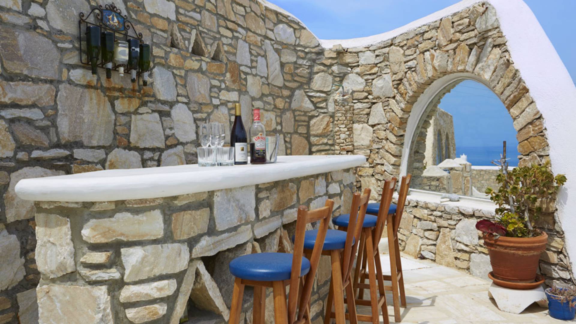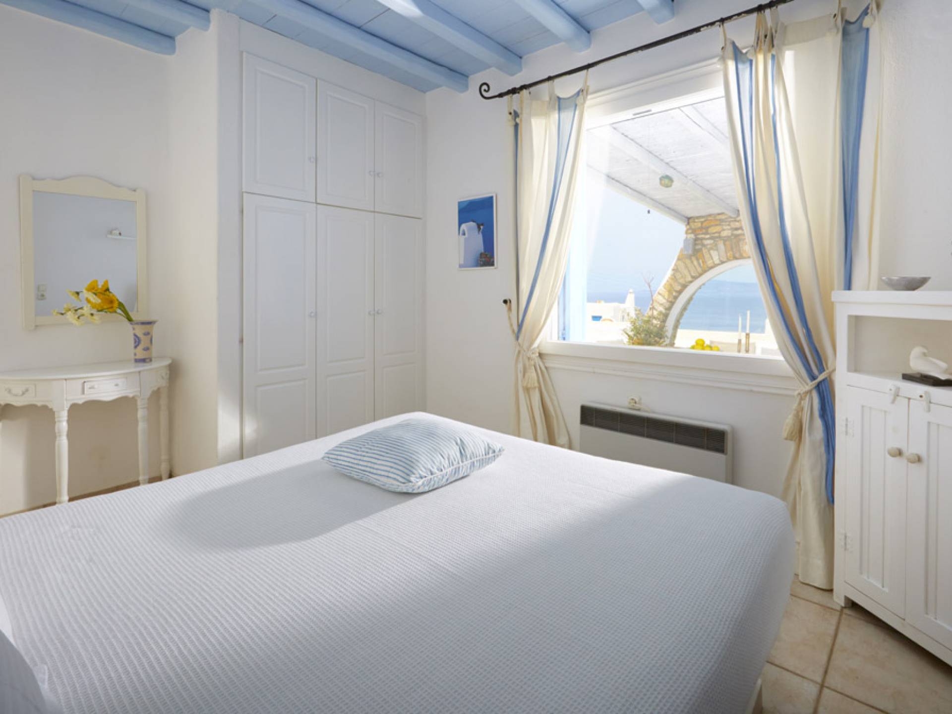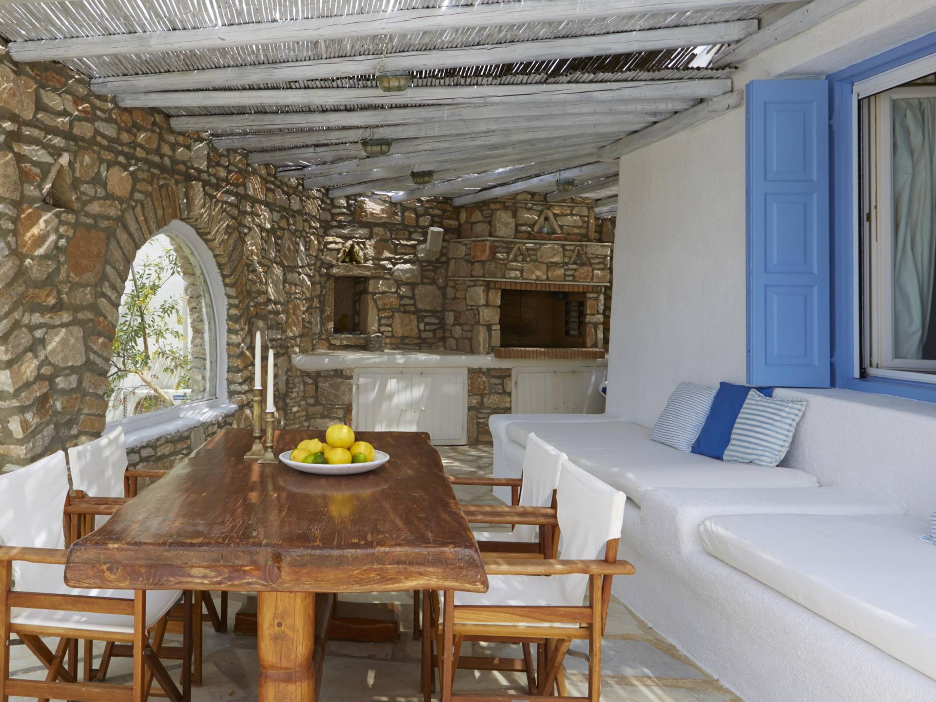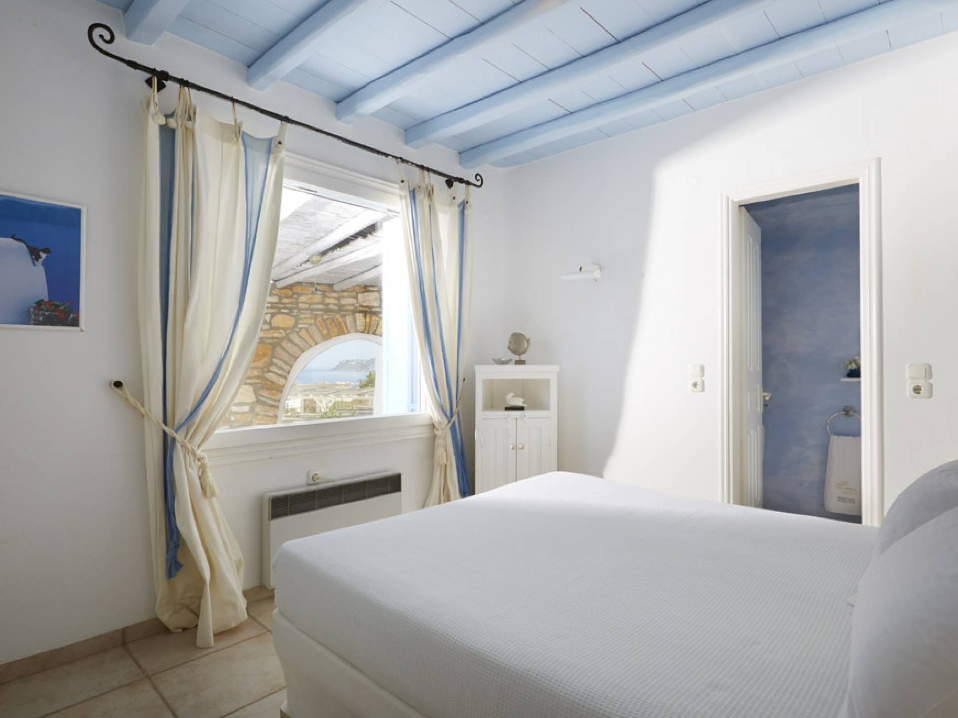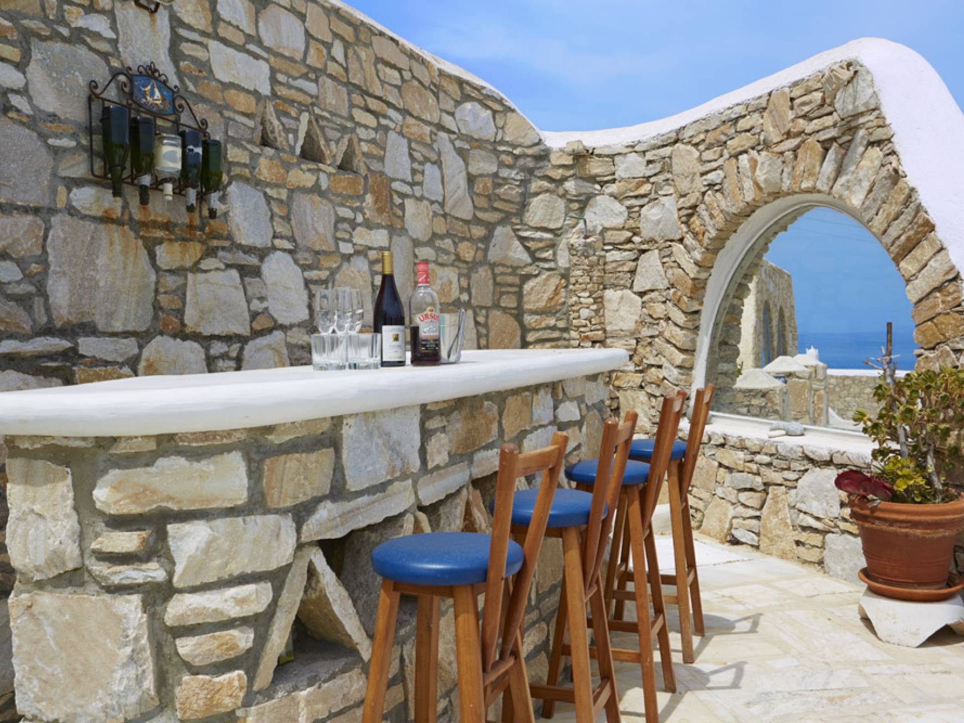 Villa Alexandra is situated in Kanalia. This villa has a panoramic view of Delos, Syros, and Tinos. Outside there is also a barbeque place and a bar area. At the end of the day, you can enjoy the magnificent sunset from your terrace drinking a glass of wine. This 3 bedroom villa has a fully equipped kitchen and a living room as well. One of the bedrooms is with twin beds and the other two bedrooms are with double beds. In this villa, there are 2 bathrooms.