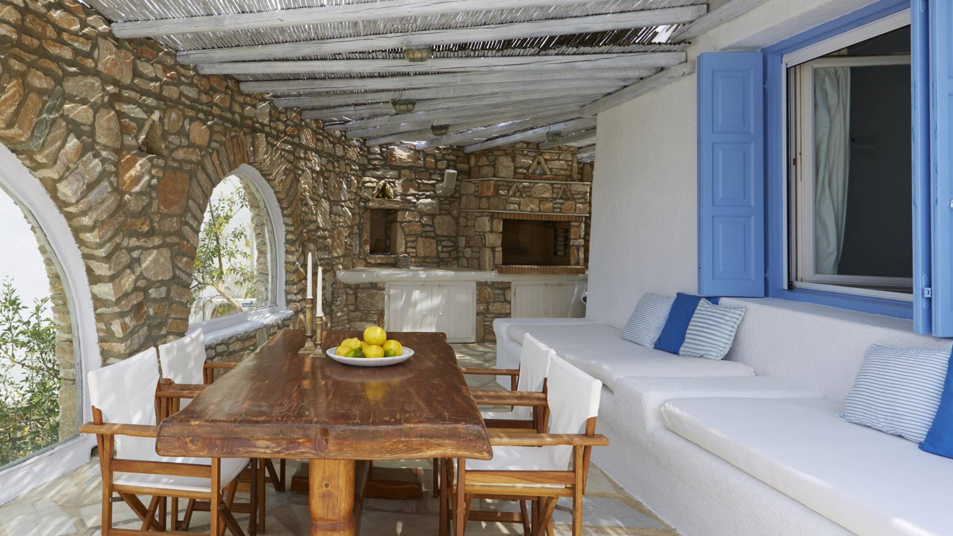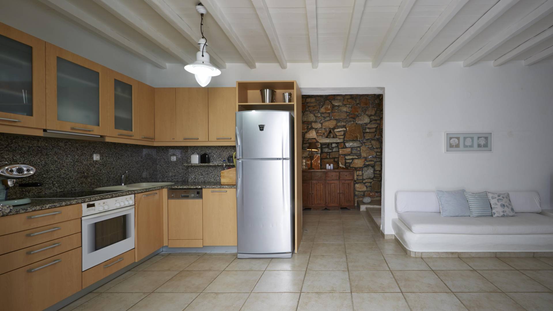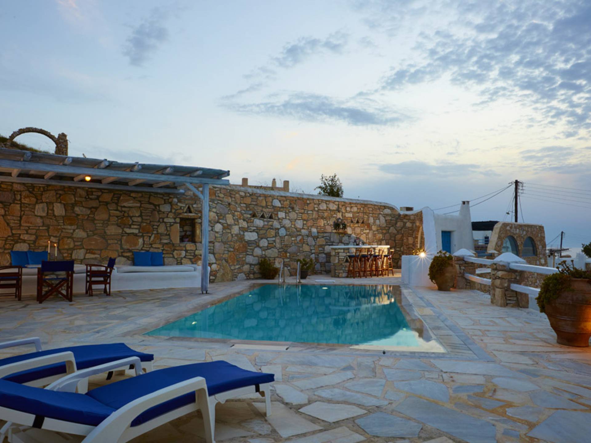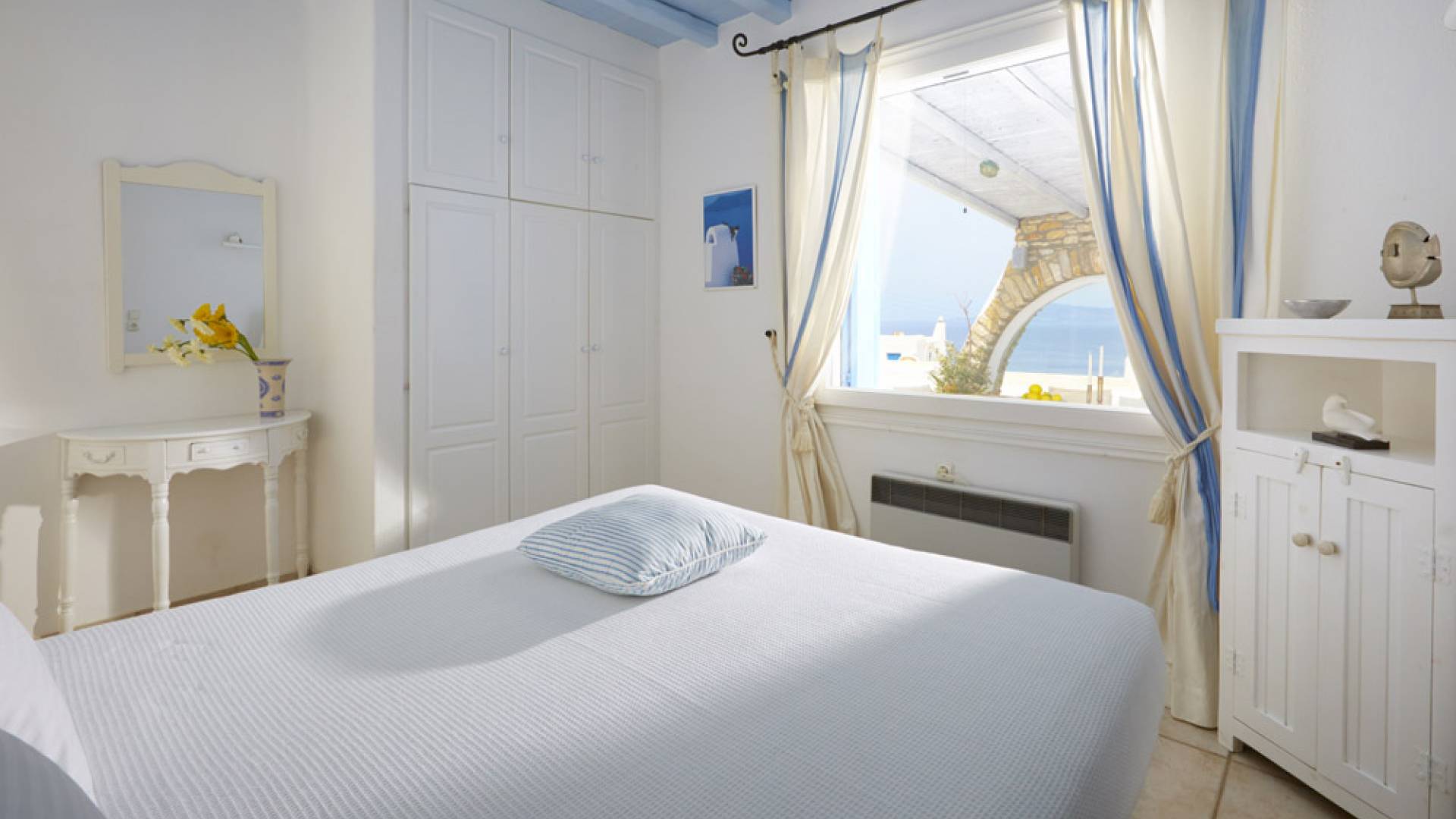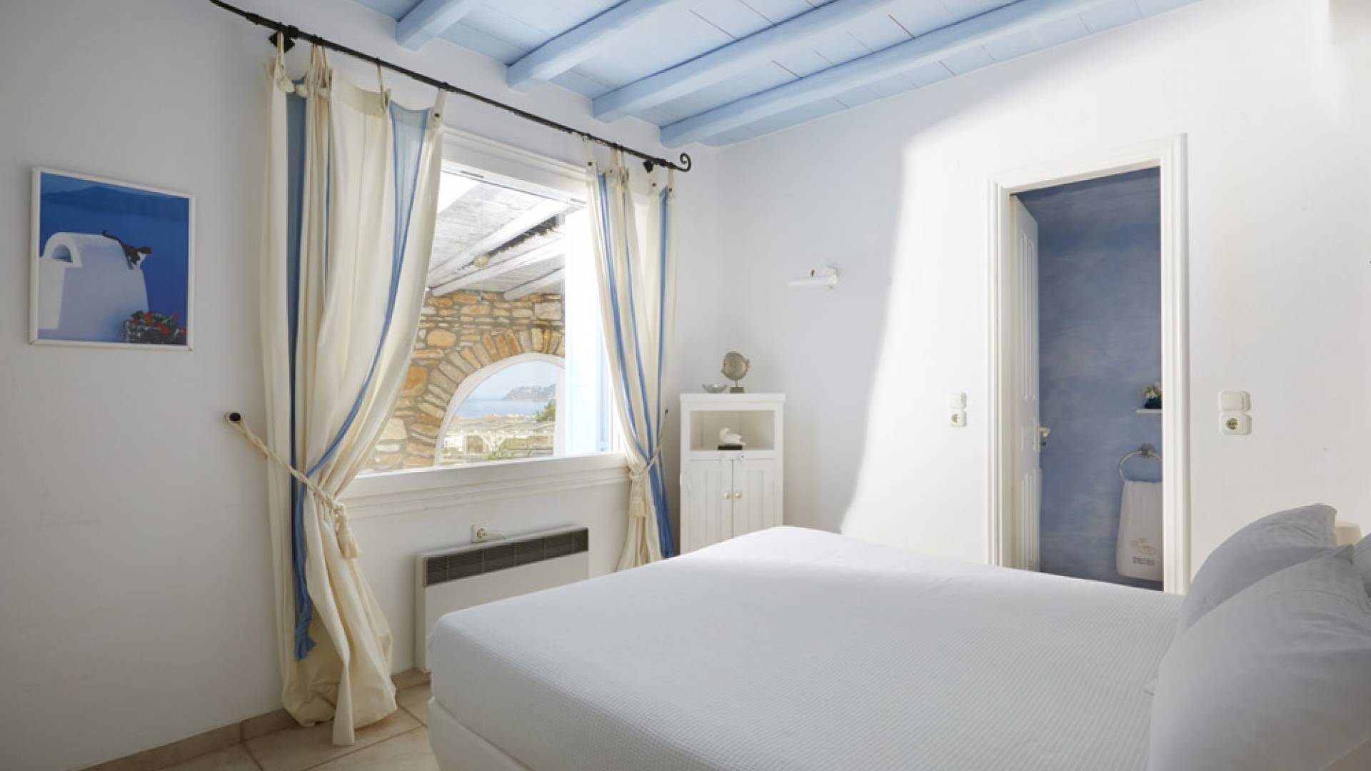 Villa Alexandra is situated in Kanalia. This villa has a panoramic view of Delos, Syros, and Tinos. Outside there is also a barbeque place and a bar area. At the end of the day, you can enjoy the magnificent sunset from your terrace drinking a glass of wine. This 3 bedroom villa has a fully equipped kitchen and a living room as well. One of the bedrooms is with twin beds and the other two bedrooms are with double beds. In this villa, there are 2 bathrooms.