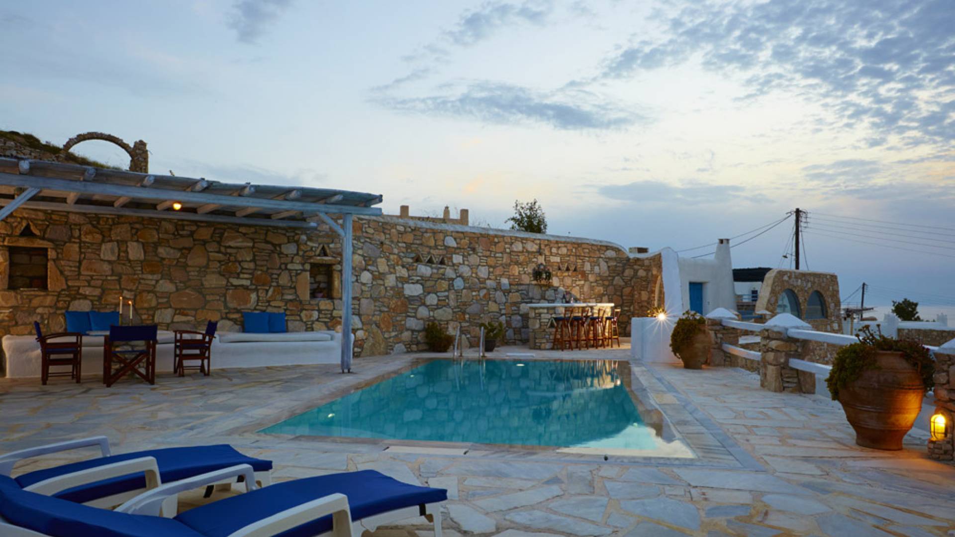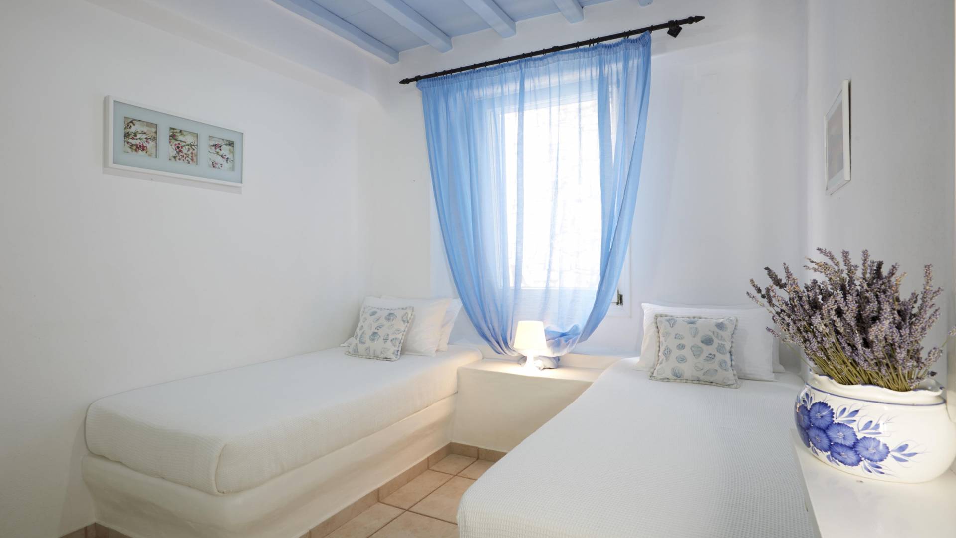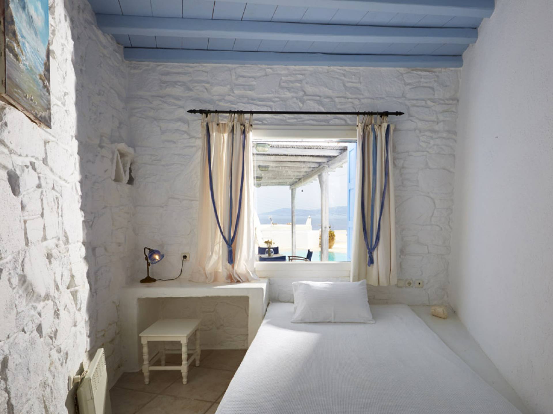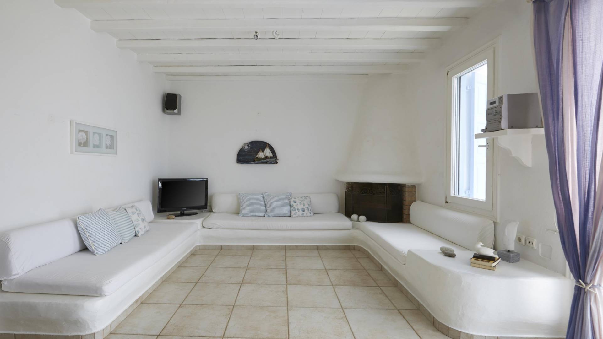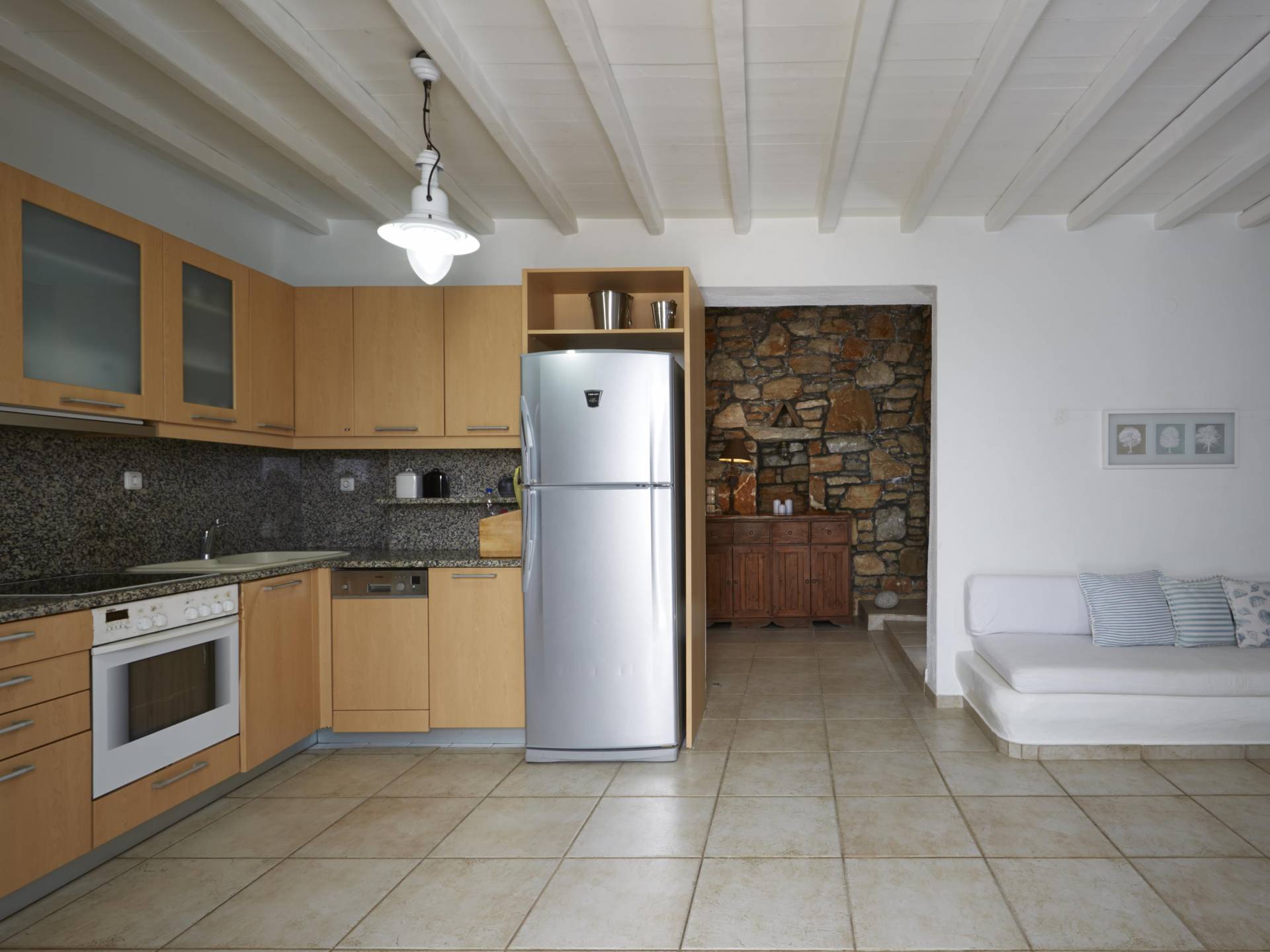 Villa Alexandra is situated in Kanalia. This villa has a panoramic view of Delos, Syros, and Tinos. Outside there is also a barbeque place and a bar area. At the end of the day, you can enjoy the magnificent sunset from your terrace drinking a glass of wine. This 3 bedroom villa has a fully equipped kitchen and a living room as well. One of the bedrooms is with twin beds and the other two bedrooms are with double beds. In this villa, there are 2 bathrooms.