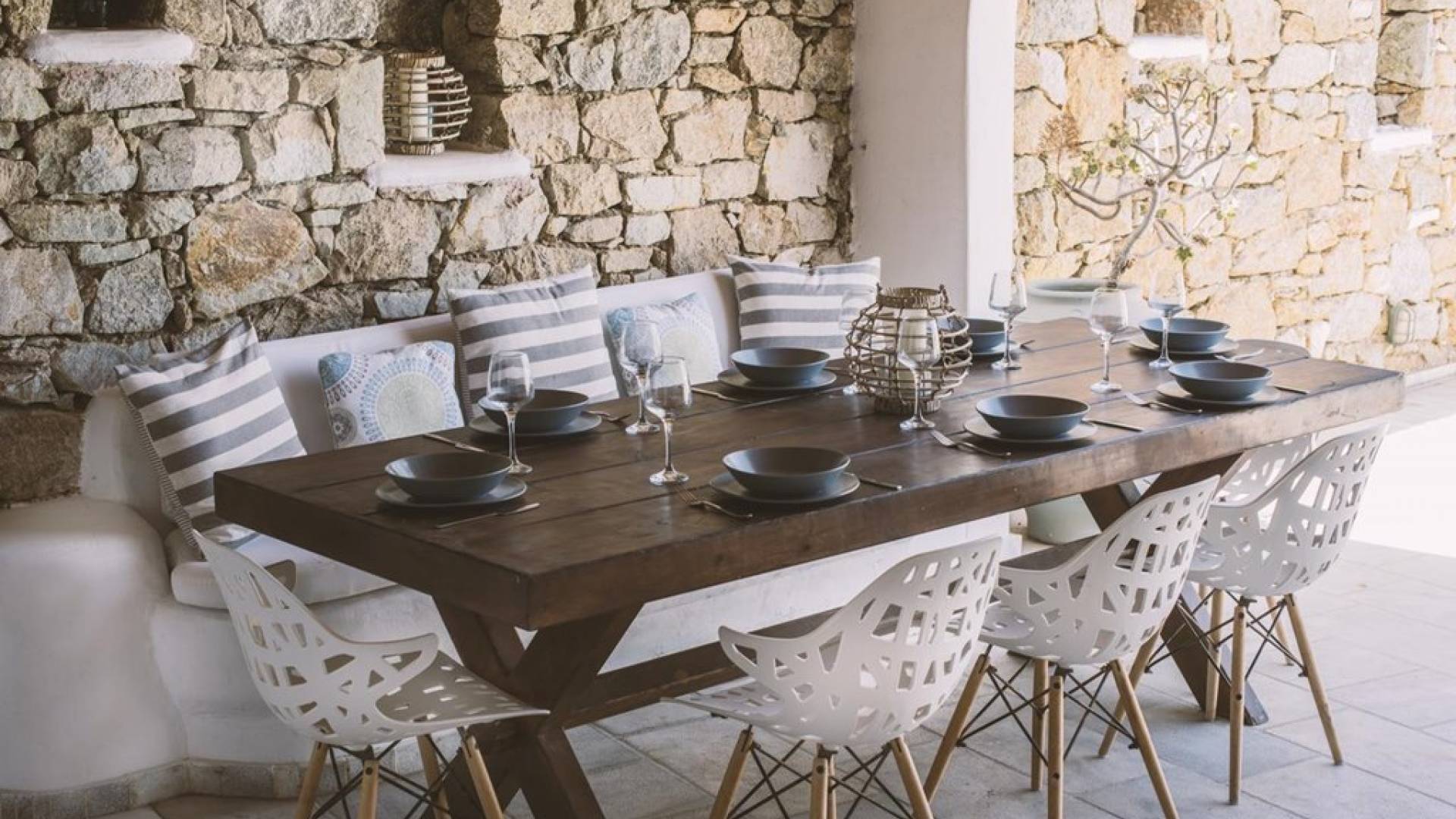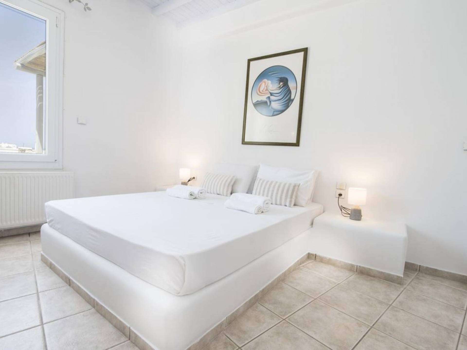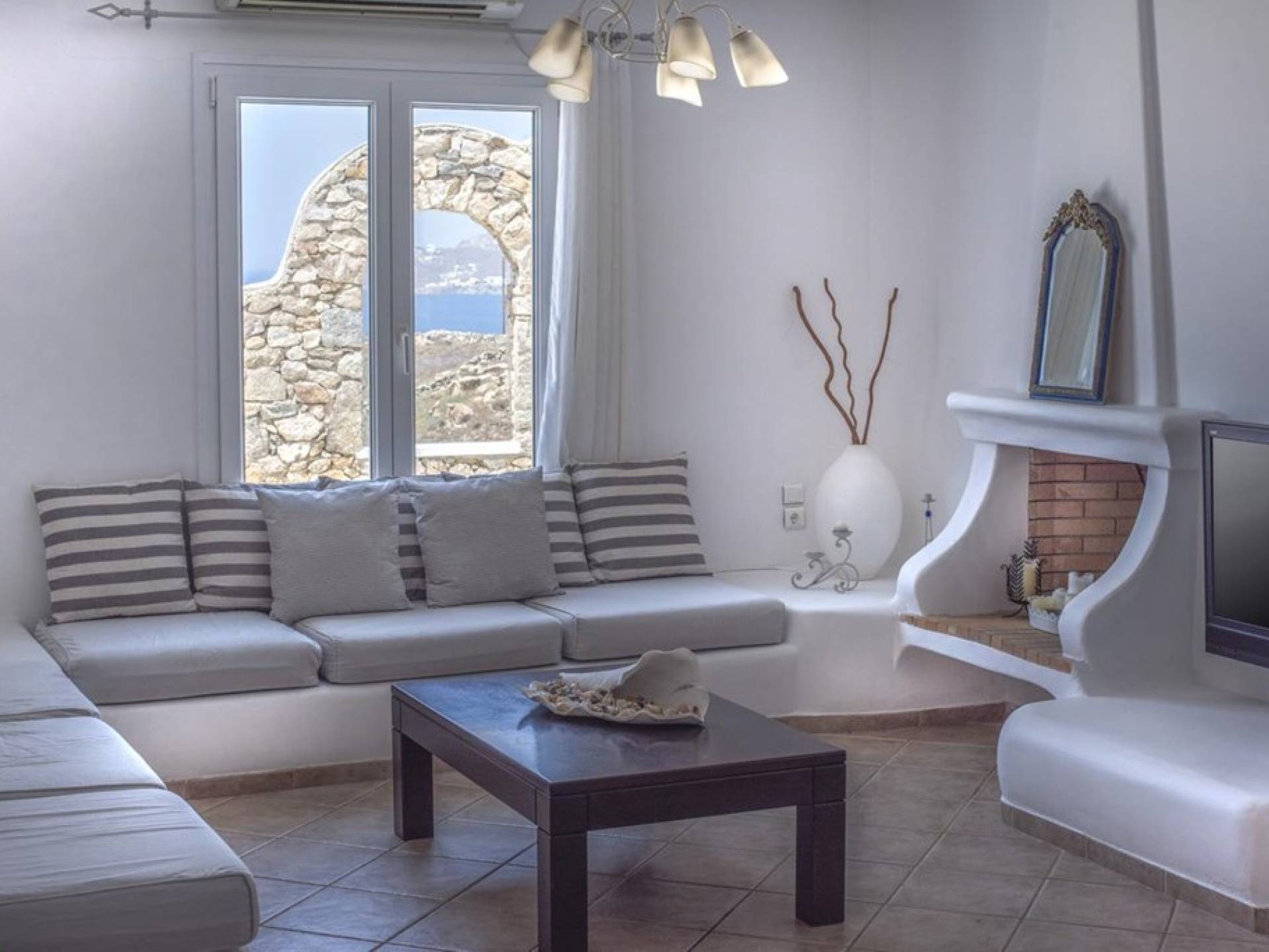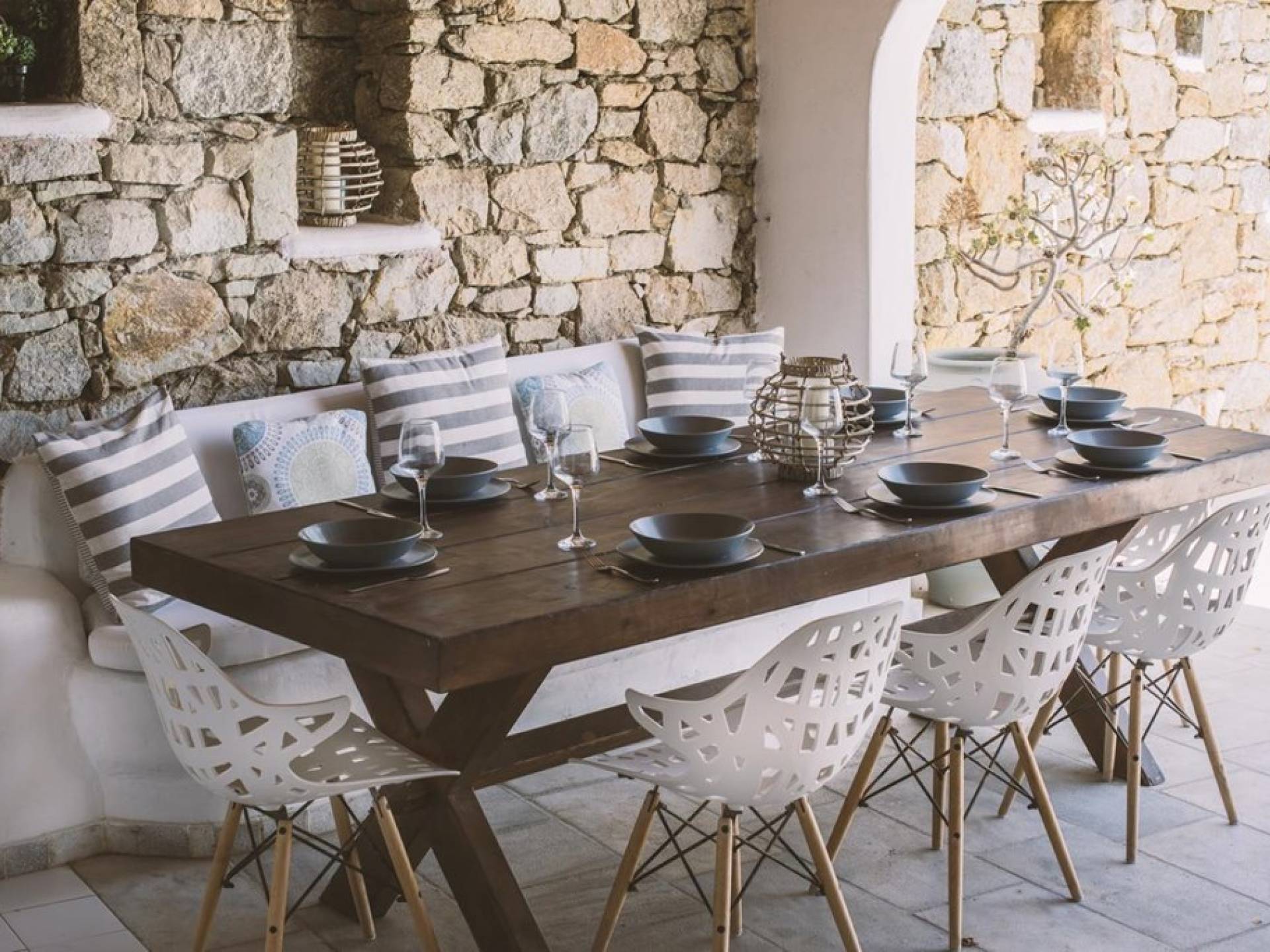 The ground level with flawless white walls and stylish furnishing has one double bedroom with ensuite bathroom and an open plan living and dining area and modern kitchen. On the first floor, you can enjoy three bedrooms all with amazing views. The meeting point in this villa is the vast exterior with its private swimming pool and delightful shaded dining and lounge area, all inclusive of a breathtaking view of the Aegean Sea. Spacious, simply but elegantly decorated, and full of things to do, Dolfino Villa Mykonos is definitely a choice to consider if you are looking to spend quality time with your loved ones.