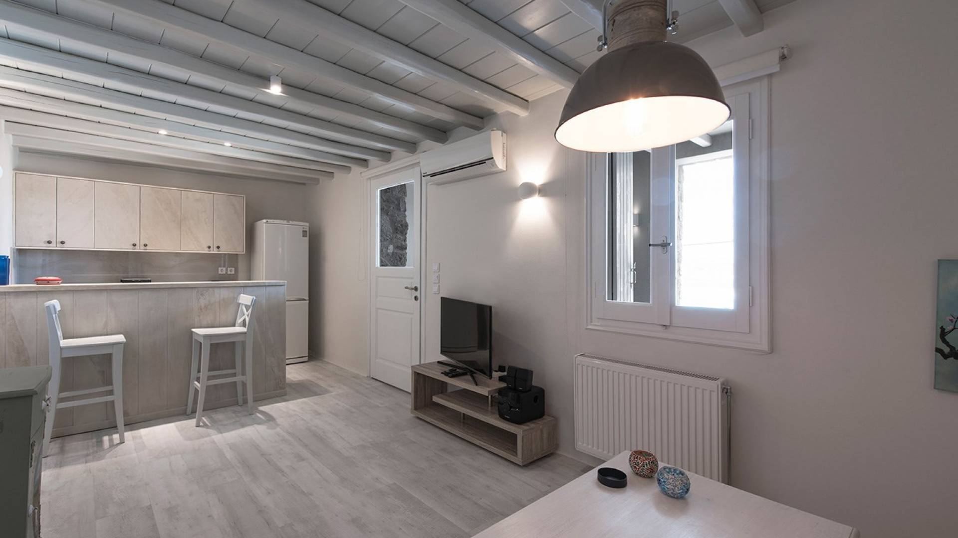 Kanalia is a residential area very close to Ornos village and the exciting nightlife of Mykonos Town! Beautiful beaches are within a few minute's drive, all naturally protected from the well-known “meltemia” winds of Mykonos. Some of the highlights you shouldn’t miss are the stylish Nammos beach bar at the famous Psarrou, the delicious seaside gastronomy of Platis Gialos, and the shopping therapy at Ornos’ chic boutiques. Also, if you are a fan of kite surfing, there is a beach just for you, very close to the villa!