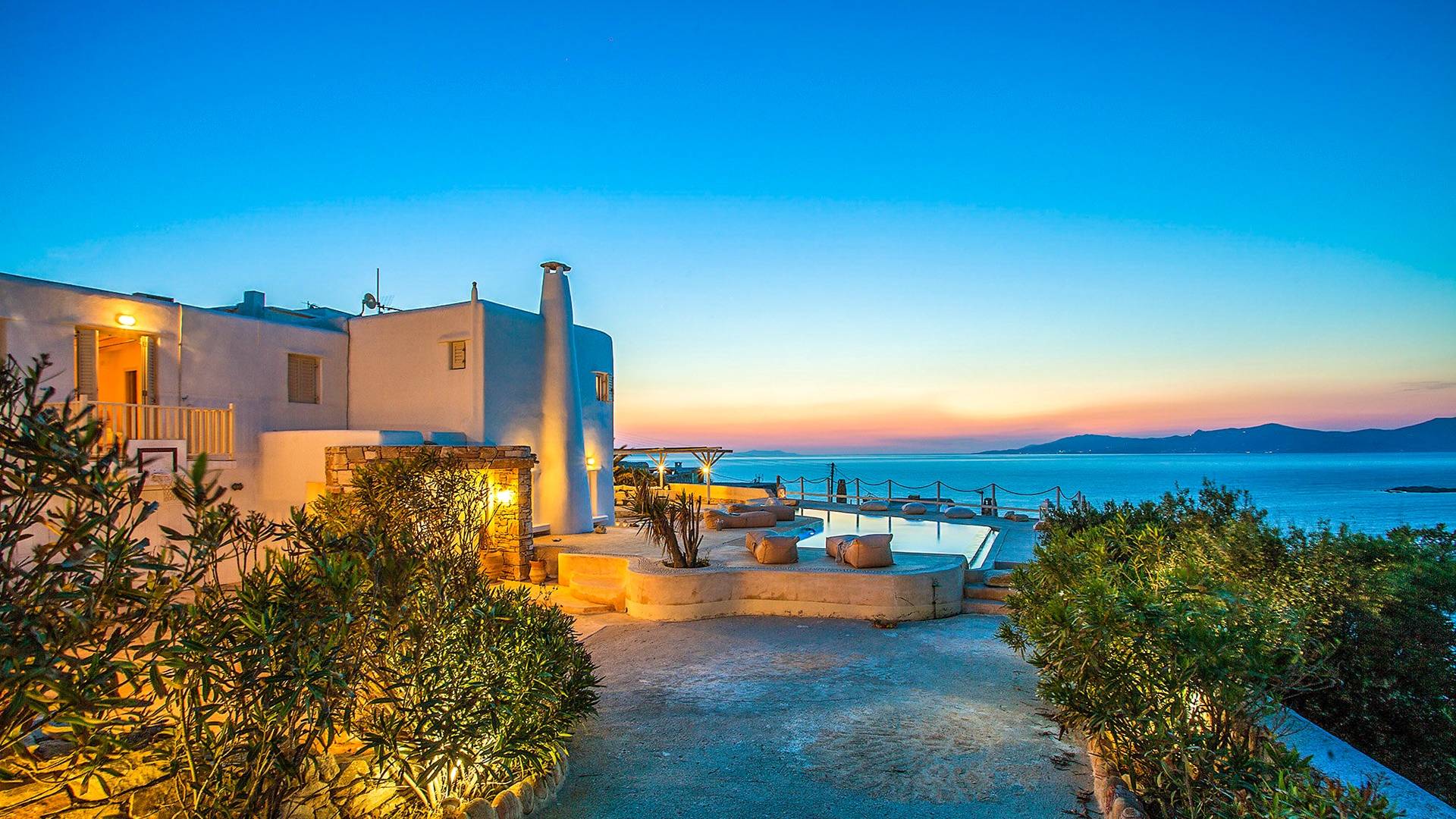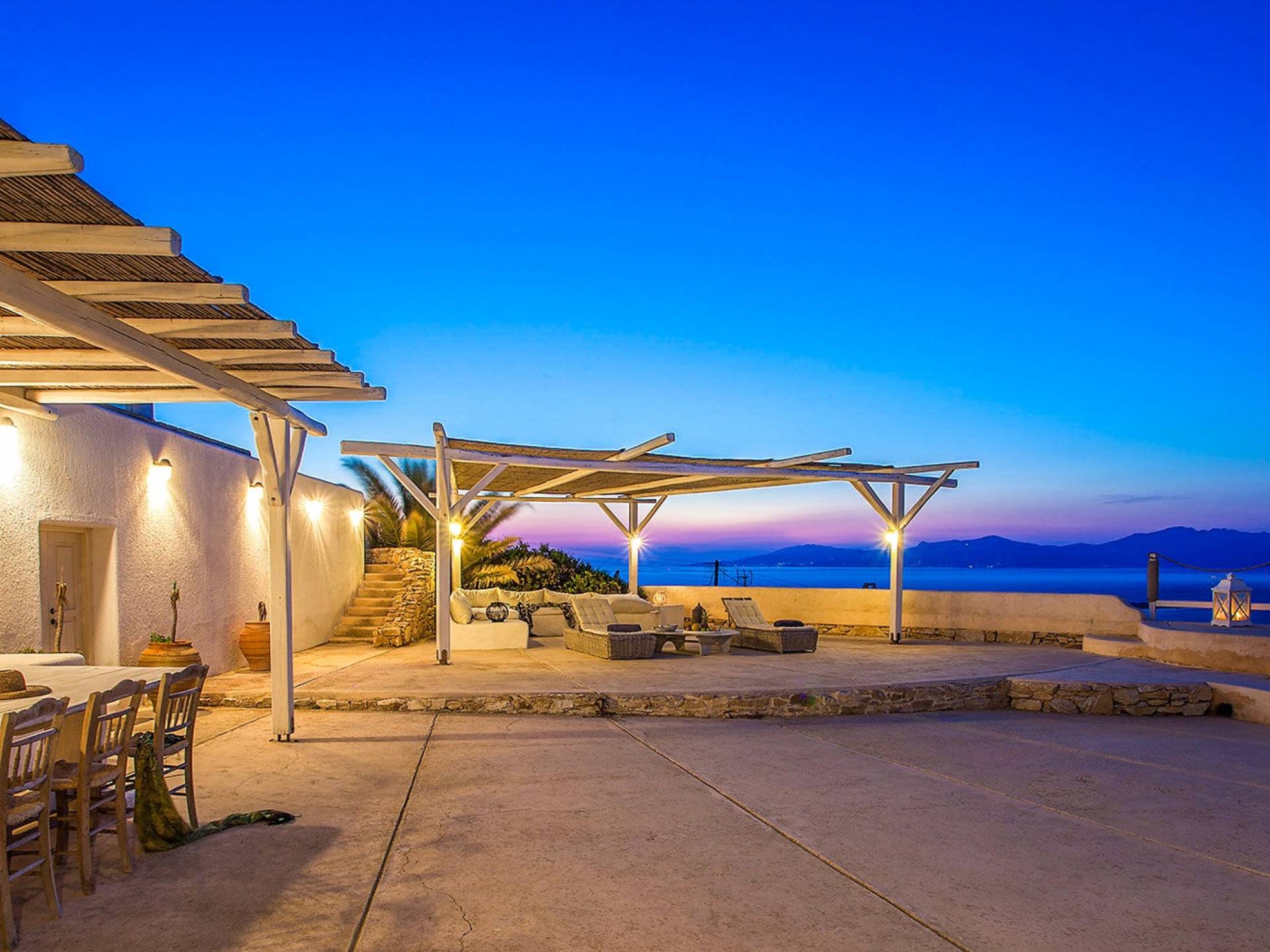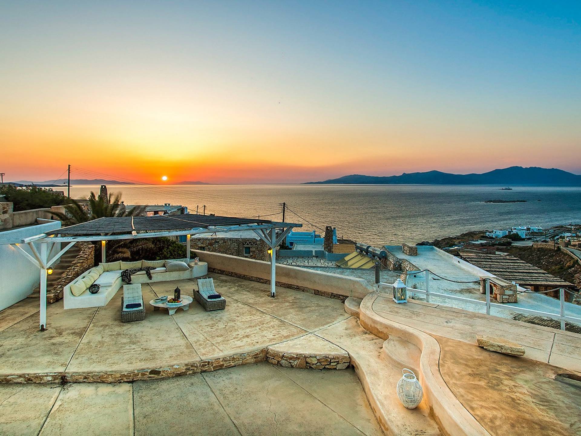 Live ‘la dolce vita’ in this superb, spacious five-bedroom, American-style villa with a super-cοζυ guest house. Relish sea-views and sun-kissed extensive terraces. Luxuriate in a stunning curved pool or sip cocktails on your shady veranda as an orange Aegean sun sets on another perfect day.