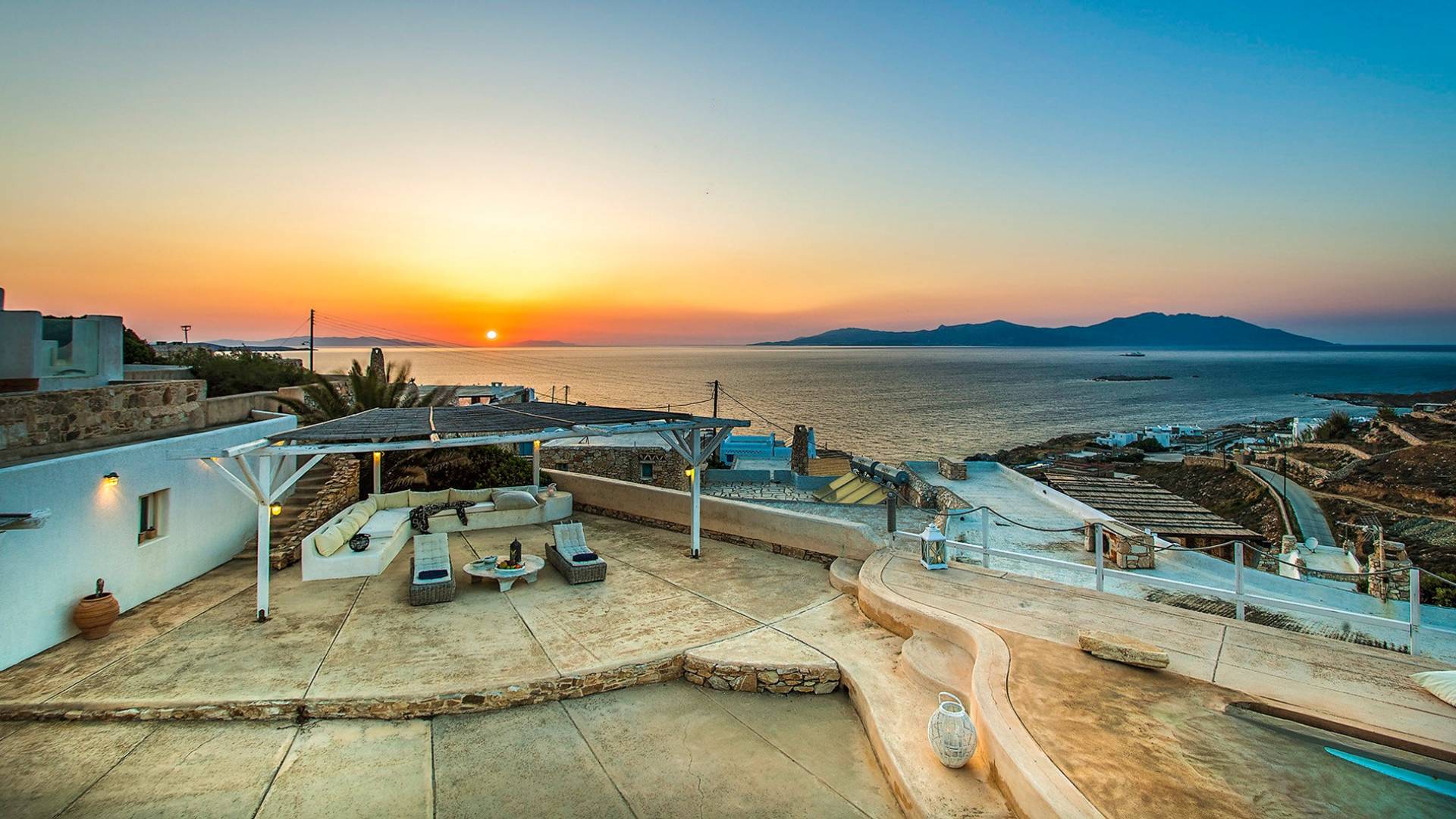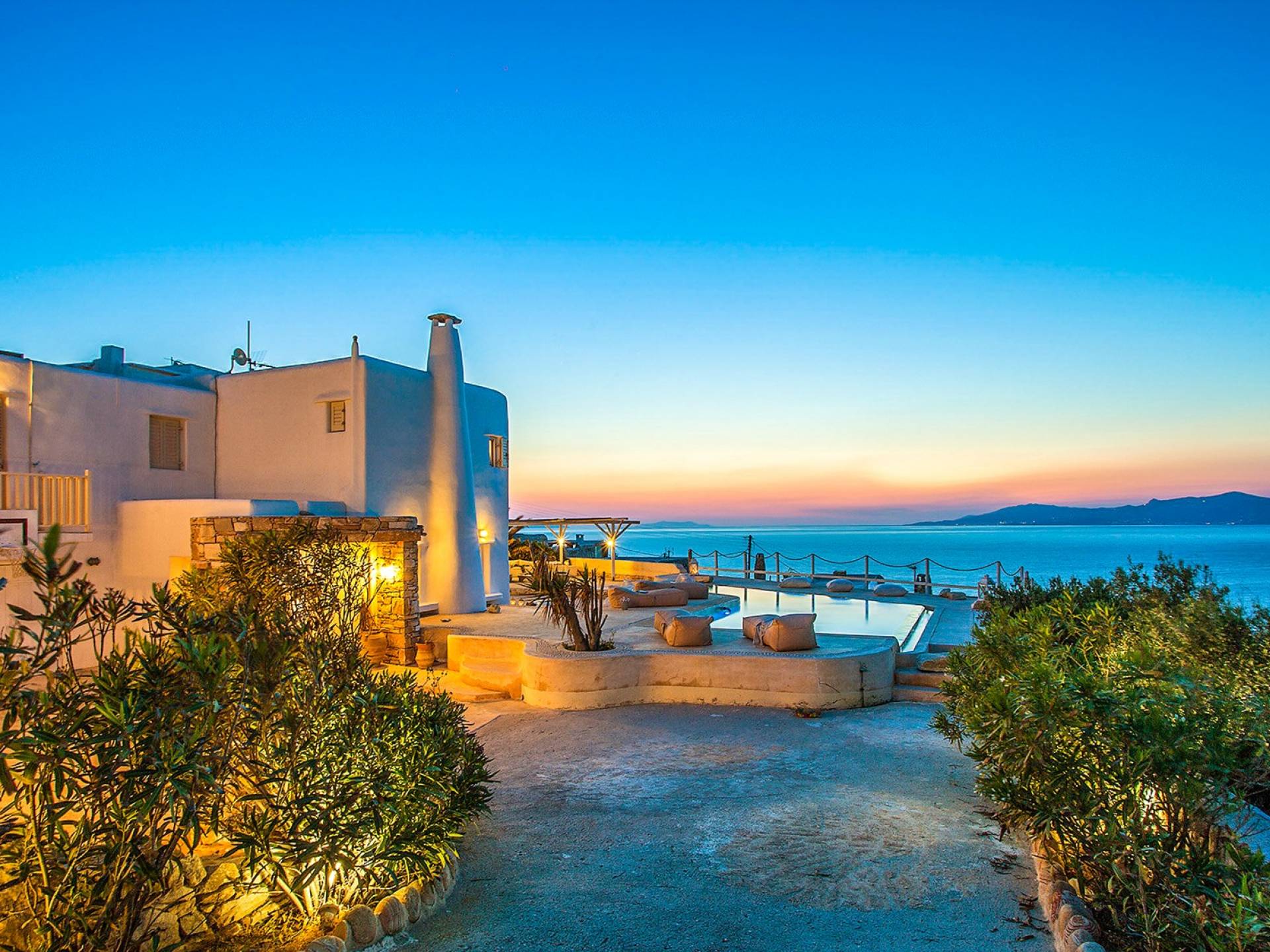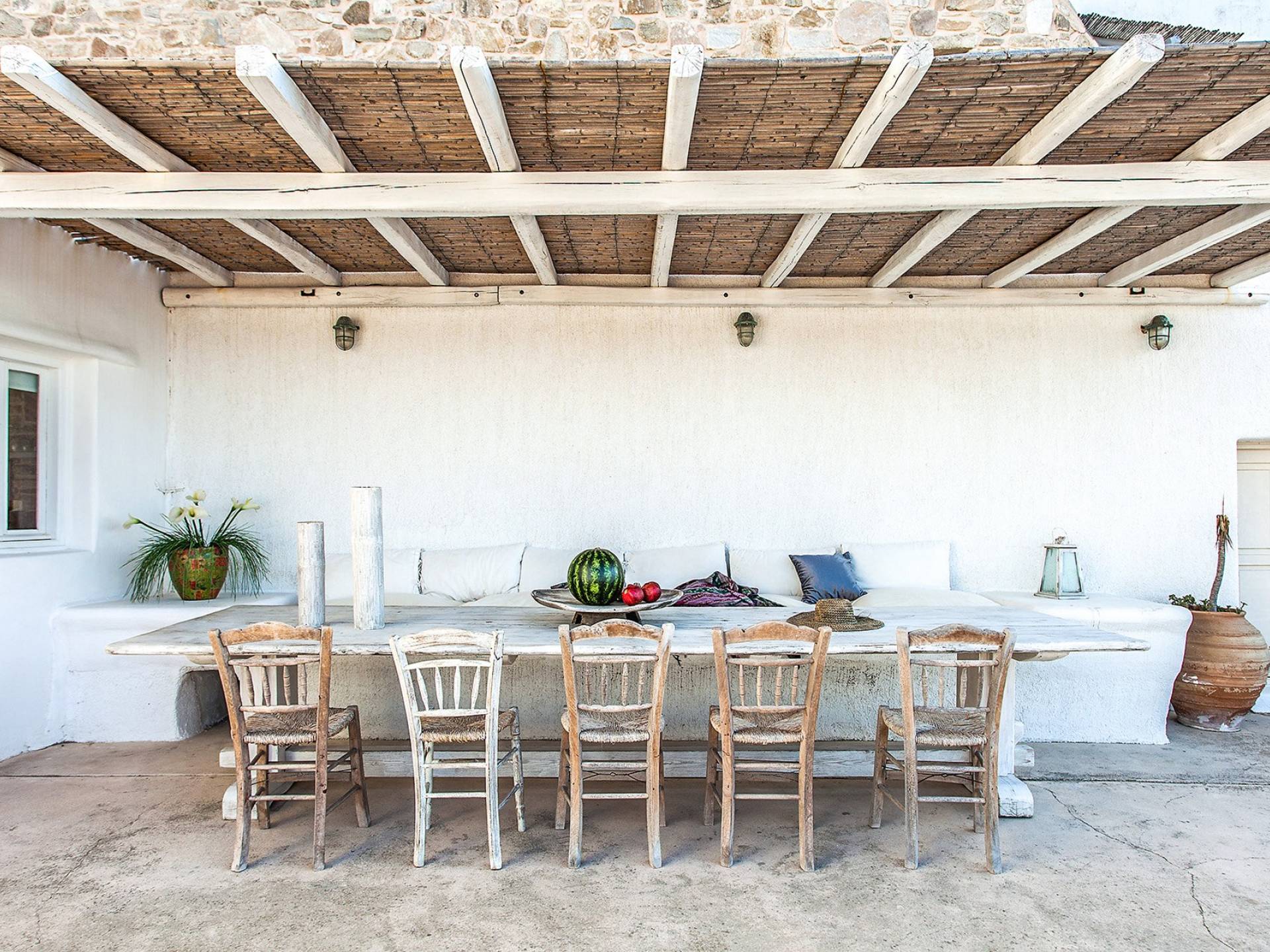 Live ‘la dolce vita’ in this superb, spacious five-bedroom, American-style villa with a super-cοζυ guest house. Relish sea-views and sun-kissed extensive terraces. Luxuriate in a stunning curved pool or sip cocktails on your shady veranda as an orange Aegean sun sets on another perfect day.