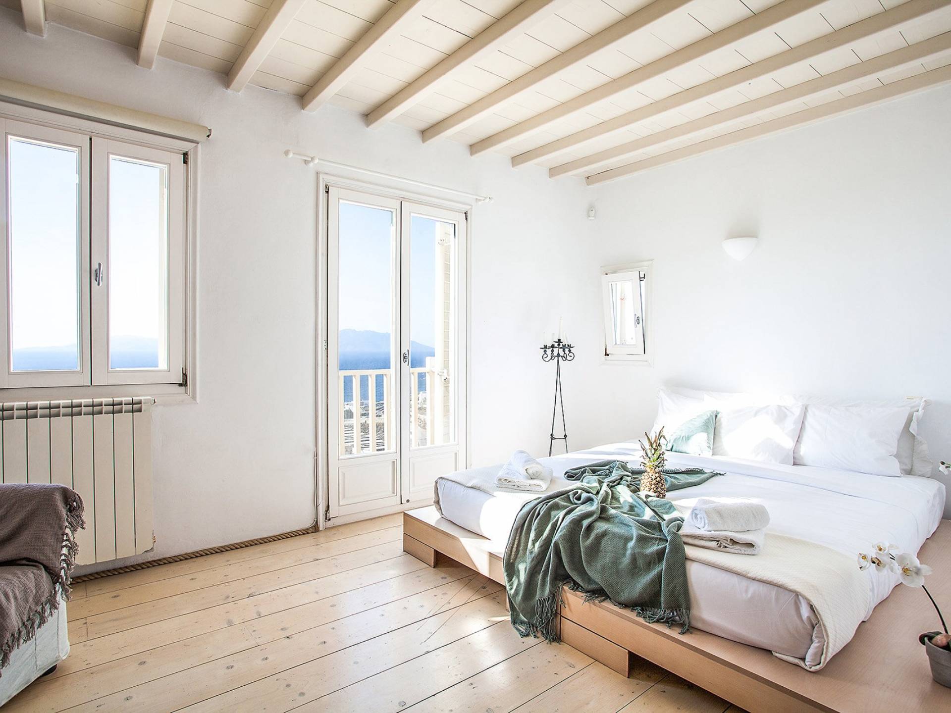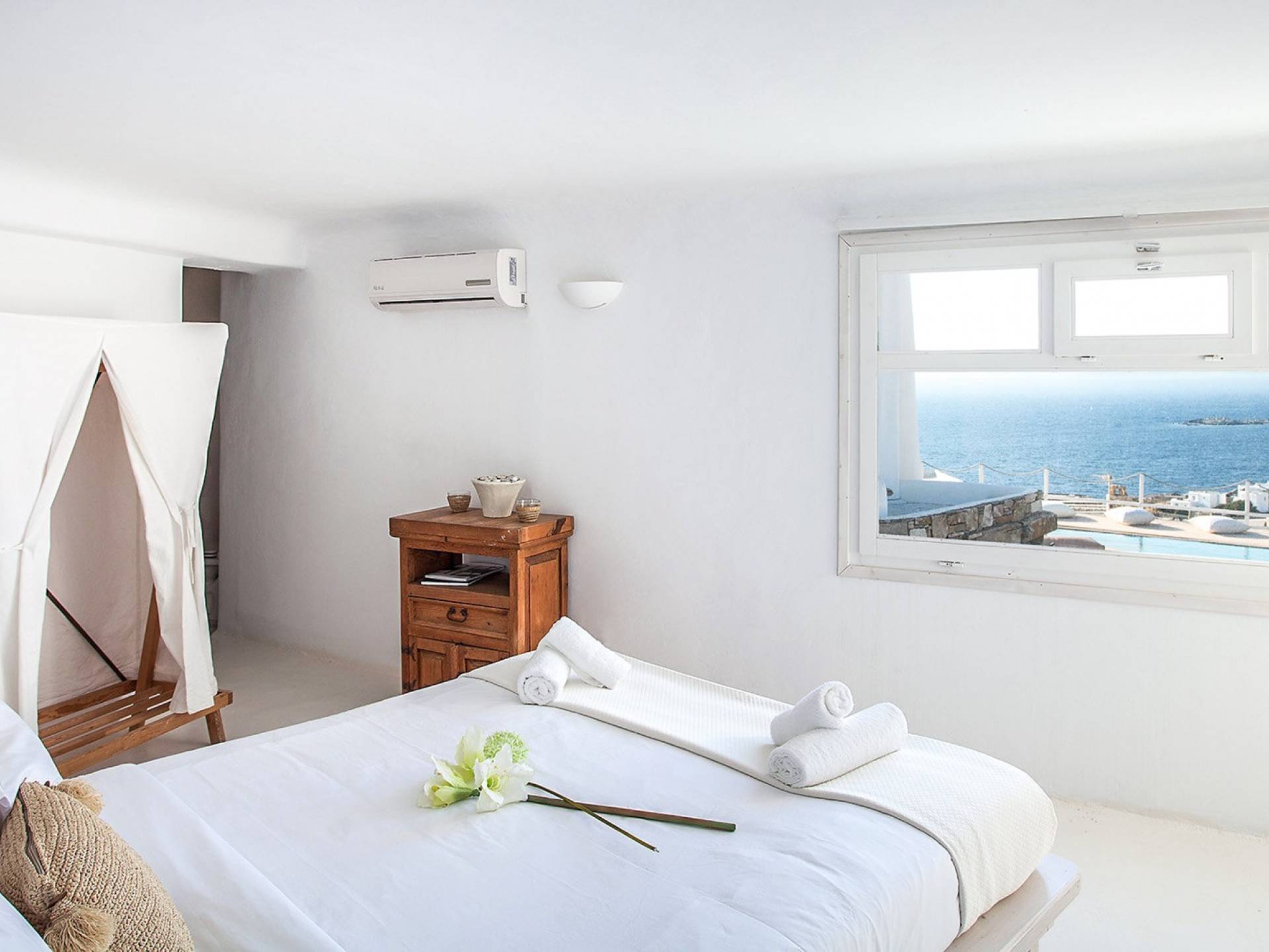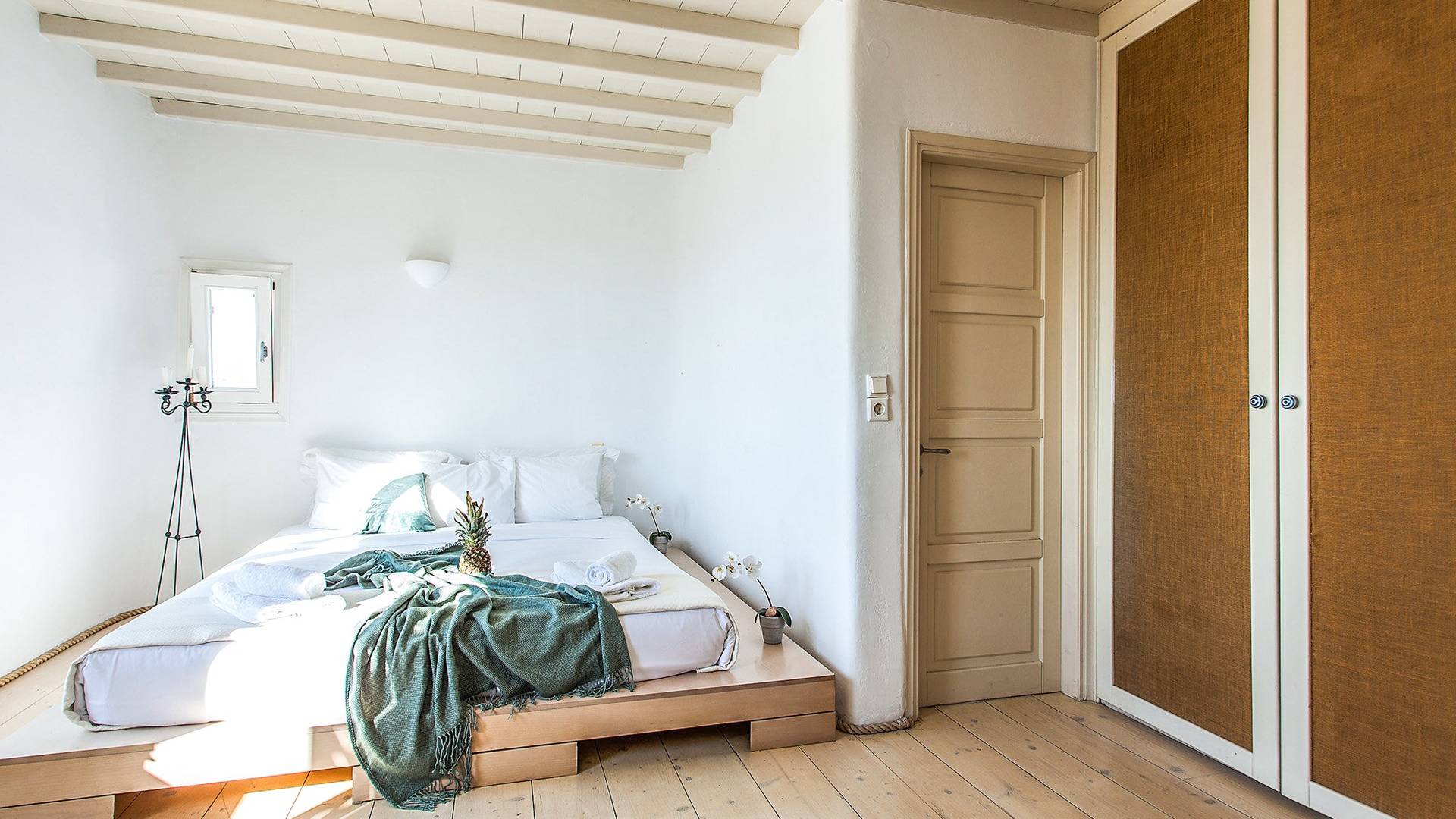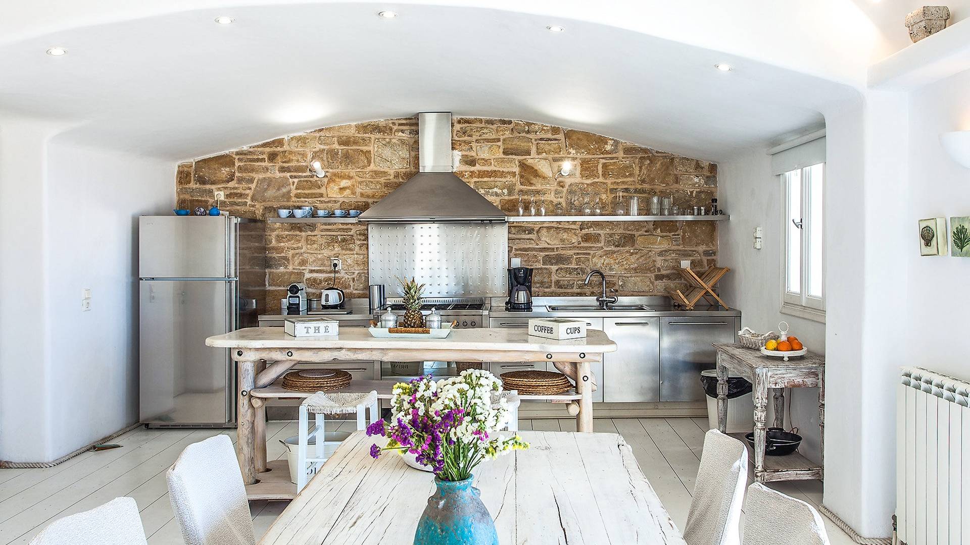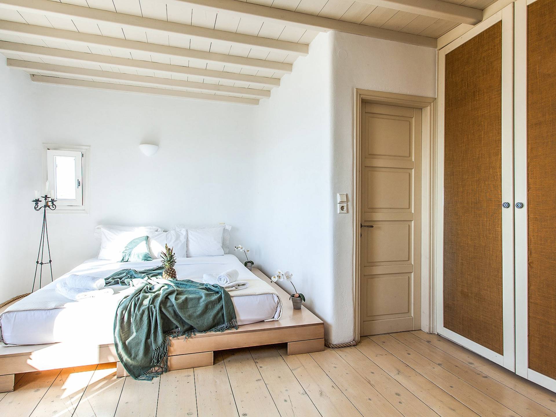 Villa Galena Mykonos is beautiful, modern, and striking, yet also adopting the marvelous, traditional chalk-white curvy and honey-colored stone Myconian features seen all over Mykonos. A beautifully ambient seaside theme floats through the villa, and the fabulous first-class furniture and accessories make your heart sing. Neutral tones are offset by brief vivid bursts of color or texture.