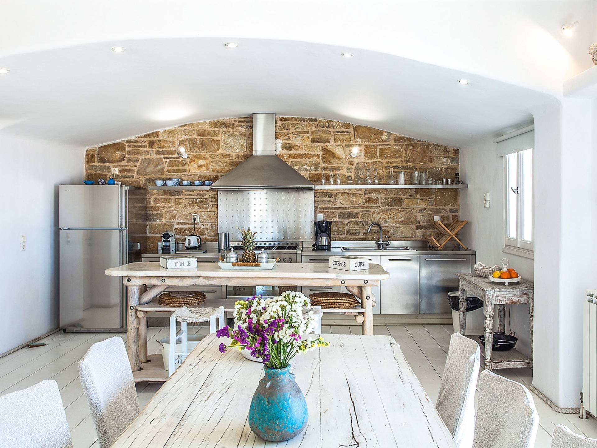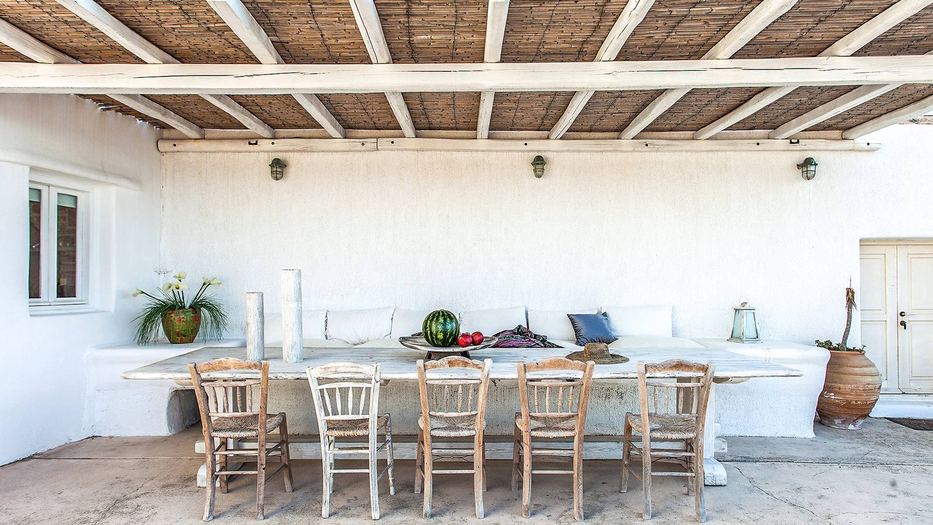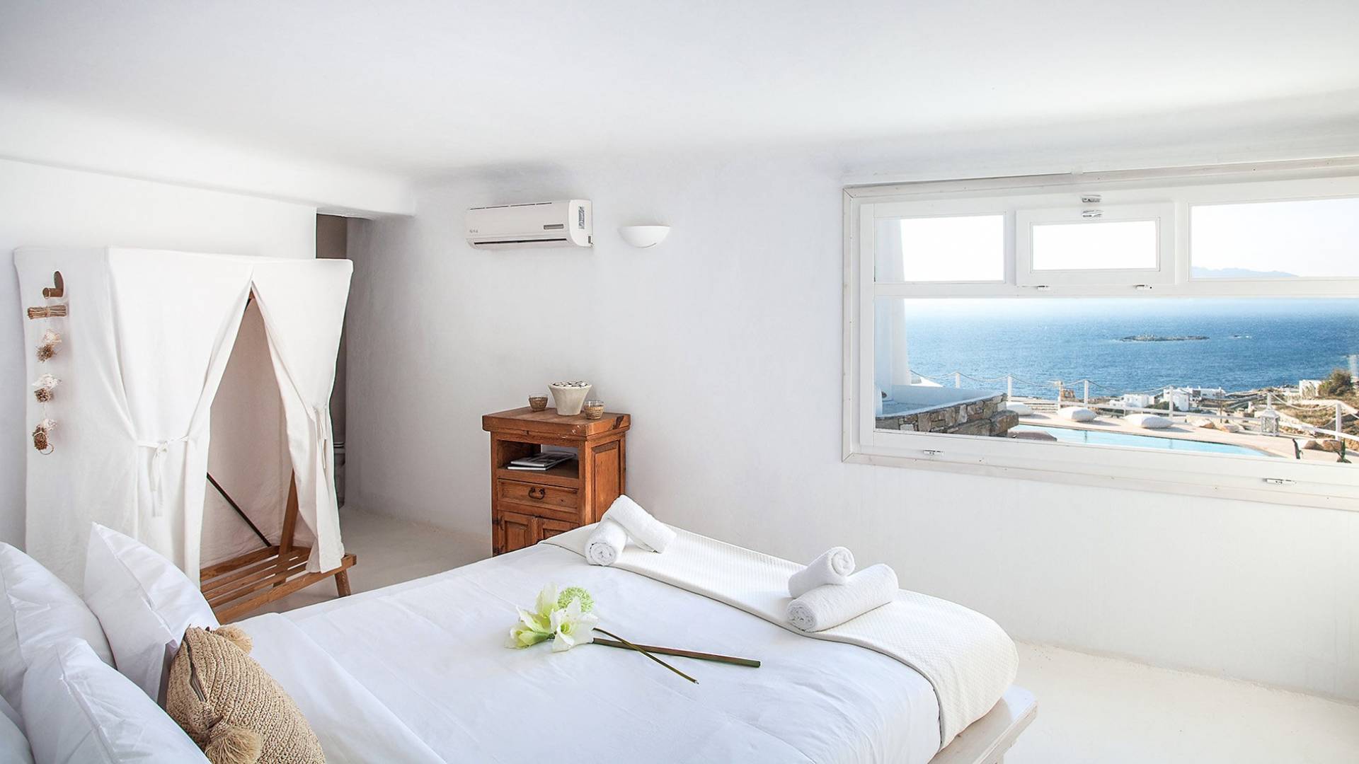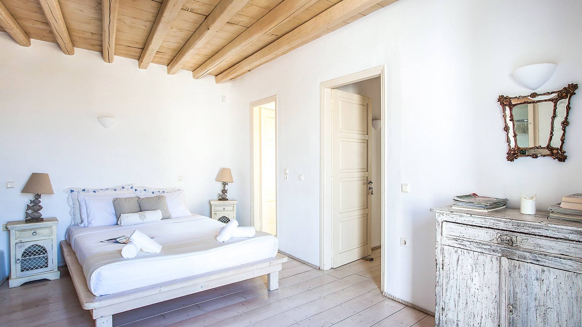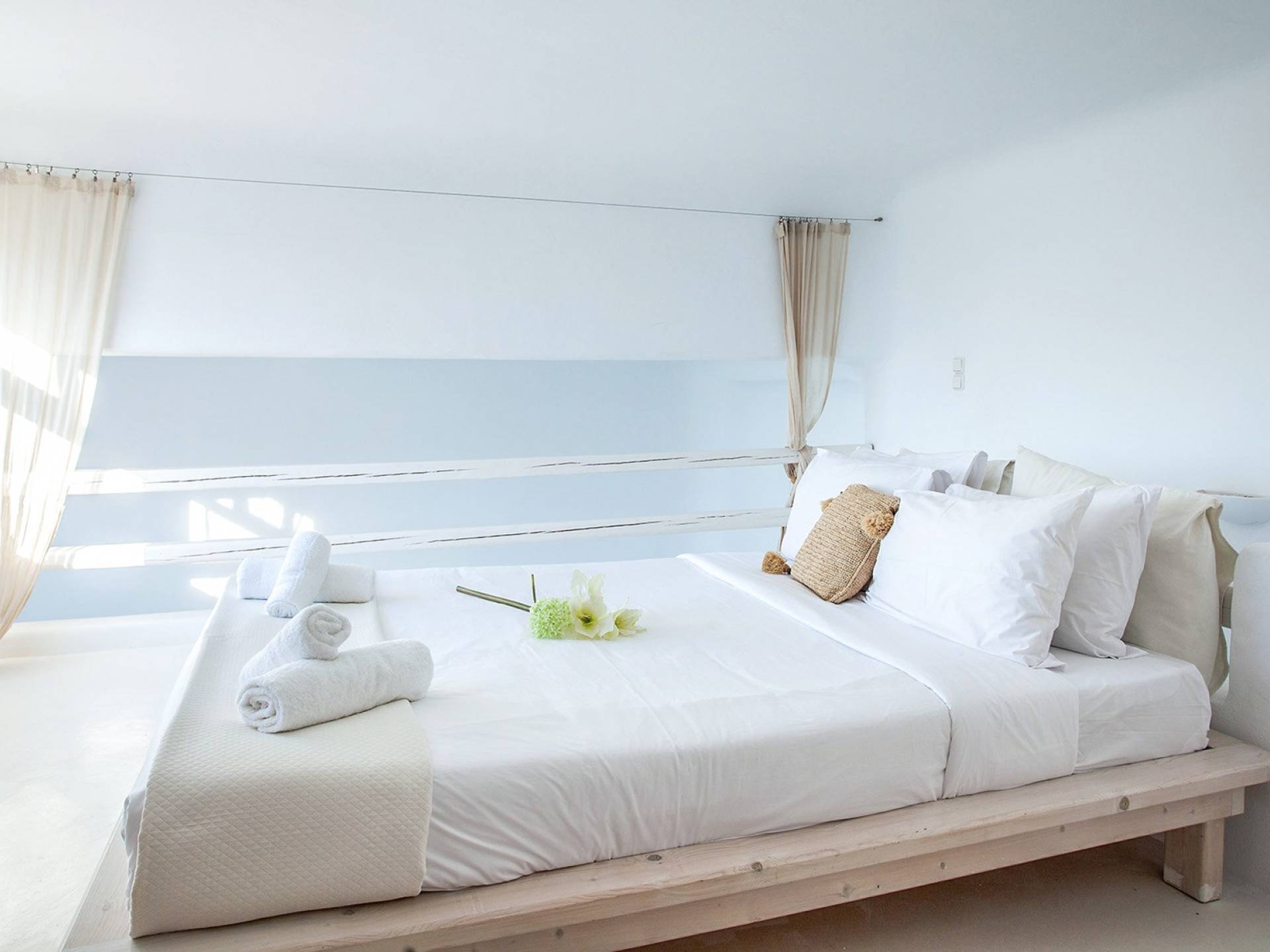 Villa Galena Mykonos is beautiful, modern, and striking, yet also adopting the marvelous, traditional chalk-white curvy and honey-colored stone Myconian features seen all over Mykonos. A beautifully ambient seaside theme floats through the villa, and the fabulous first-class furniture and accessories make your heart sing. Neutral tones are offset by brief vivid bursts of color or texture.