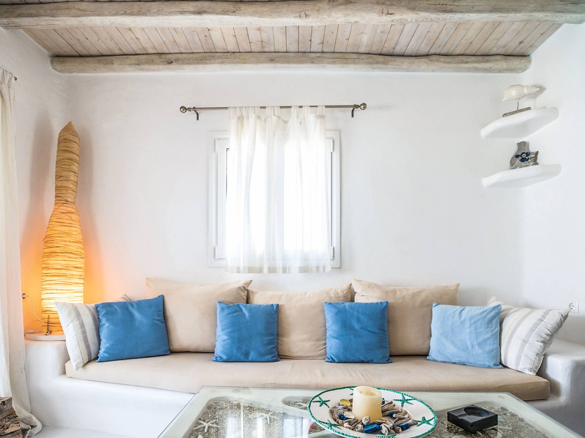 The amenities of the luxury rental cover even the most demanding visitor, having all the comforts that one would expect to find in a modern luxurious residence. From the fully equipped kitchen to the spacious and air-conditioned rooms, everything has been designed and created to offer you an unforgettable stay experience. Leave the doors and windows open to enjoy the glorious sun that floods the house and the magic of the sea spreading out in front of you as well as the beautiful sunset!