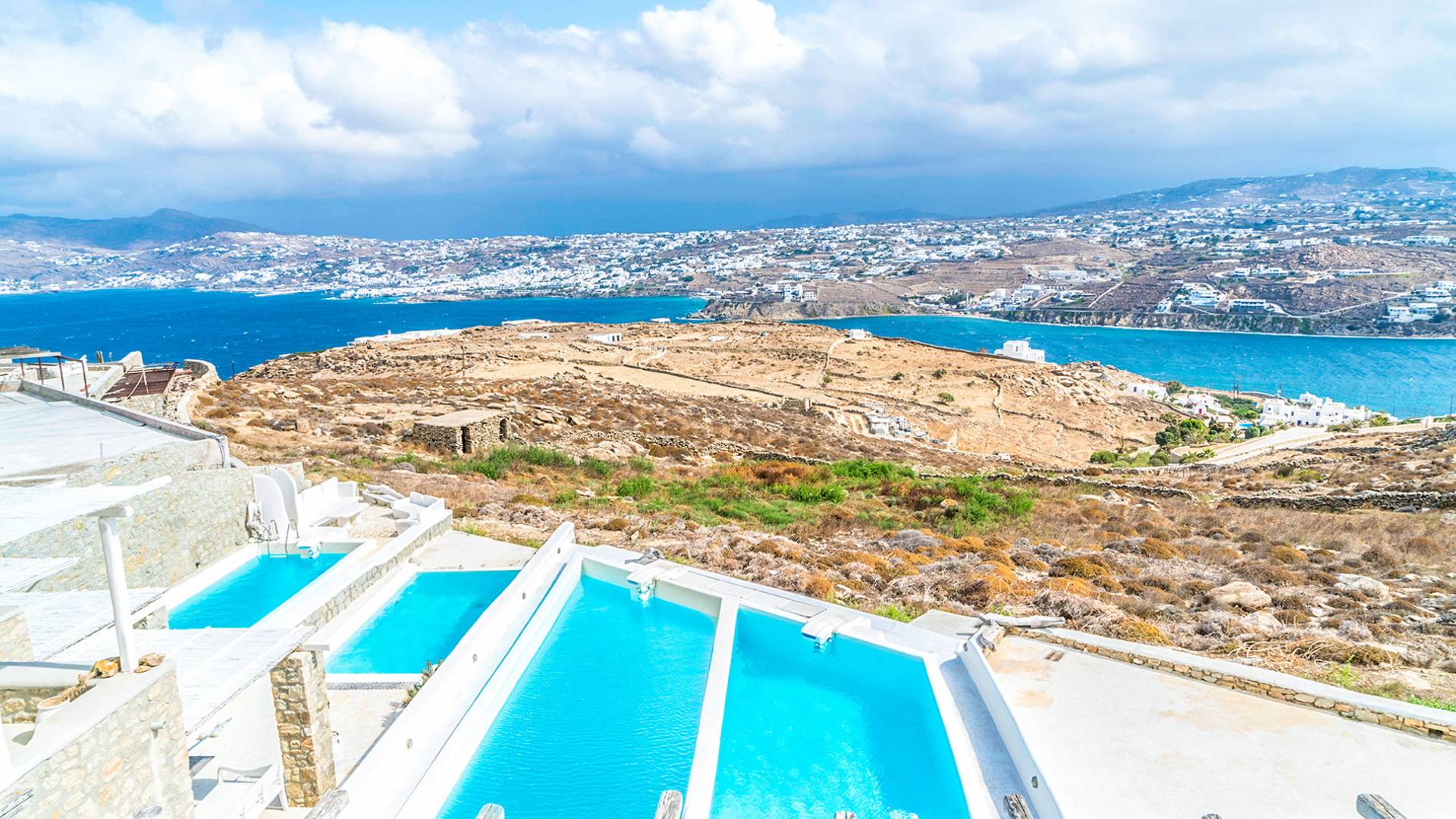 Villa Jasmine Mykonos is a luxury villa rental with 6 bedrooms and a private pool. Villa Jasmine is located at Kanalia, and from its pool deck has spectacular views of Mykonos Town and Ornos beach. It is just a short drive from isolated beaches around Agios Ioannis. The villa is built in a well-known Mykonian architectonic style.