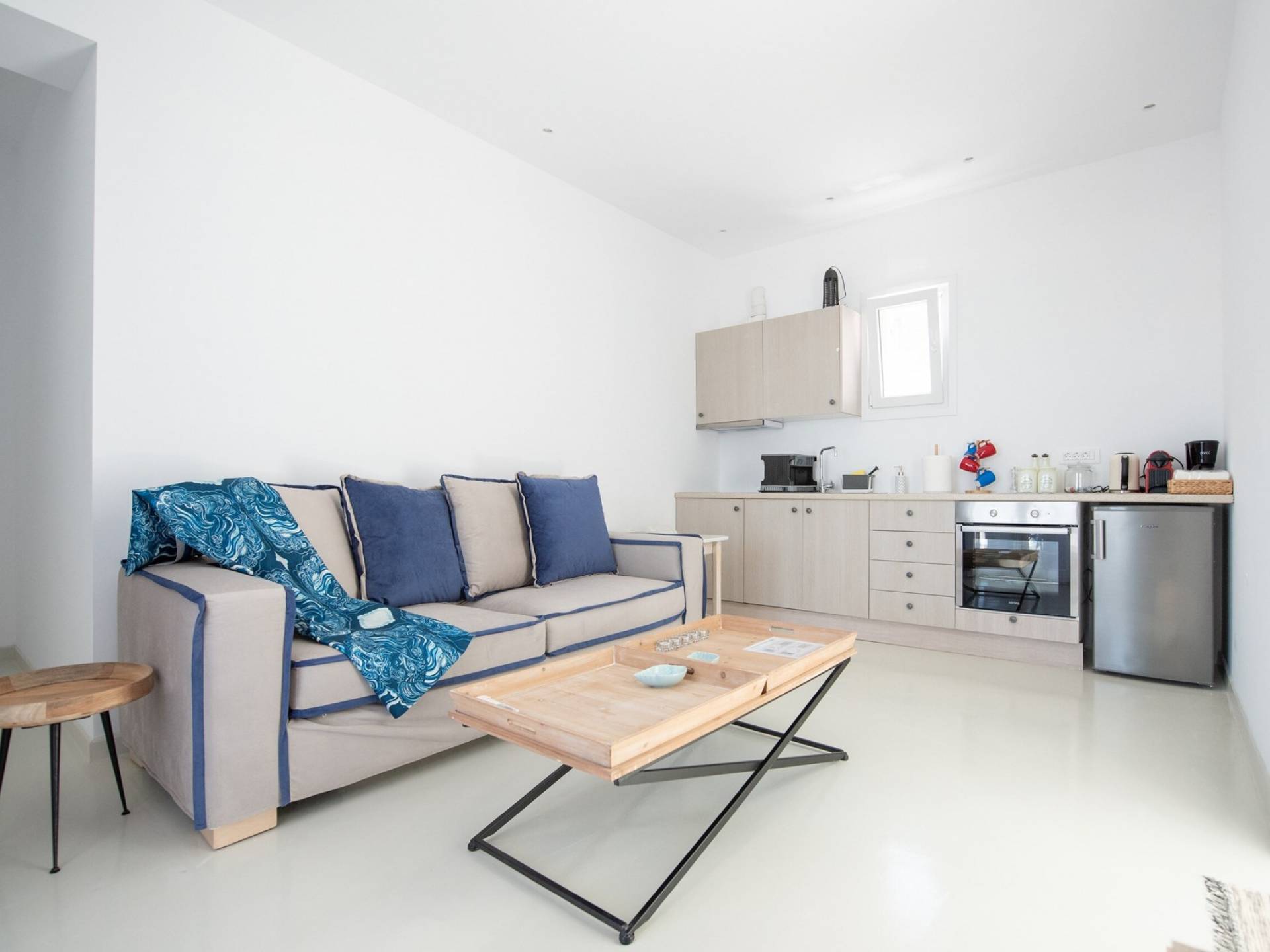 Villa Maroon VI offers comfortable accommodation for up to 4 guests with a master bedroom, a charming living room with a sofa-bed and a fully equipped kitchen. All the rooms are completely soundproof, ensuring privacy and serenity at one of the most spectacular locations of Mykonos.
