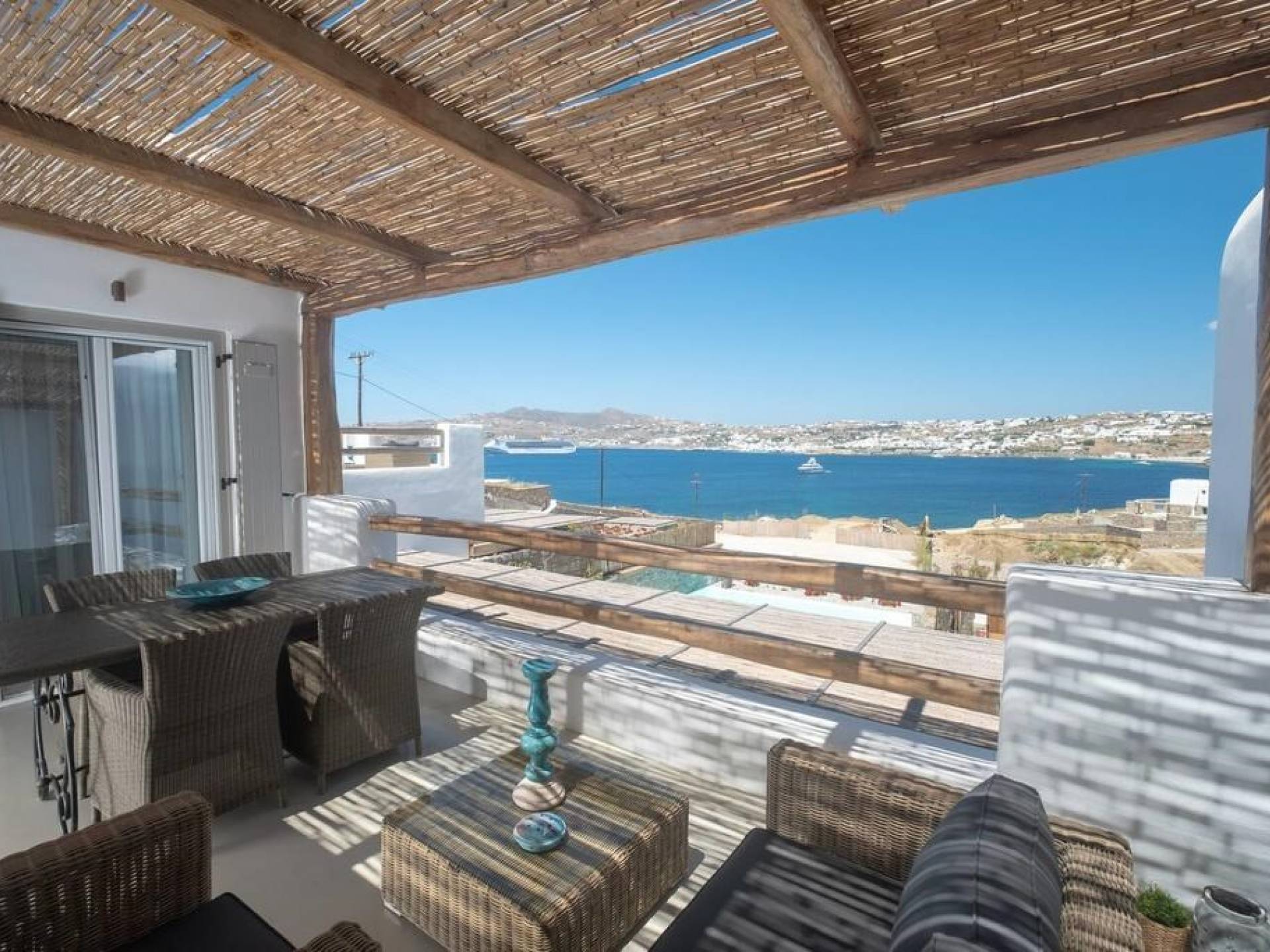 show more detailsKanalia is located in the north-west tip of Mykonos Island close to the beautiful beach of Agios Ioannis. Agios Ioannis is considered to be the most beautiful beach of the island's south-west coast with soft sand and crystalline blue waters. The beach boasts stunning views over the island of Delos. Kanalia is an excellent place to get away from it all. Not too close to the town to avoid big crowds yet will all amenities close by, Kanalia is an ideal place for your vacation.