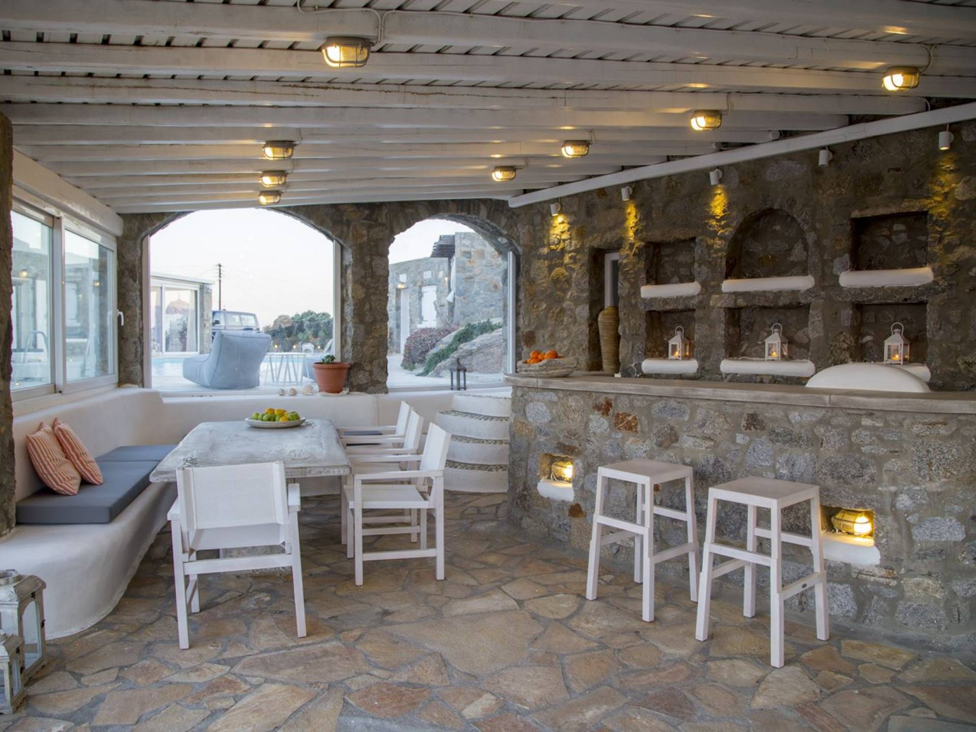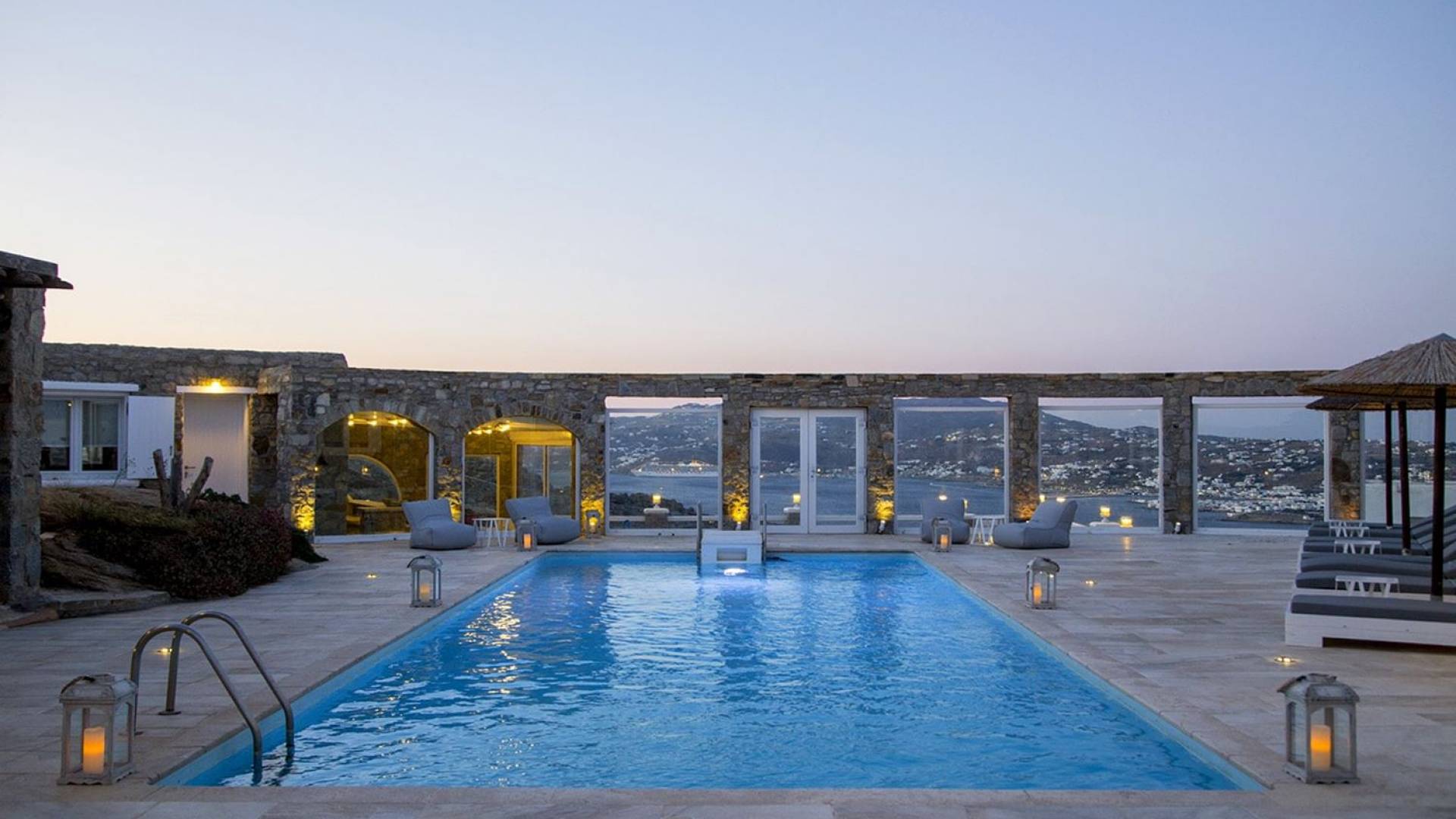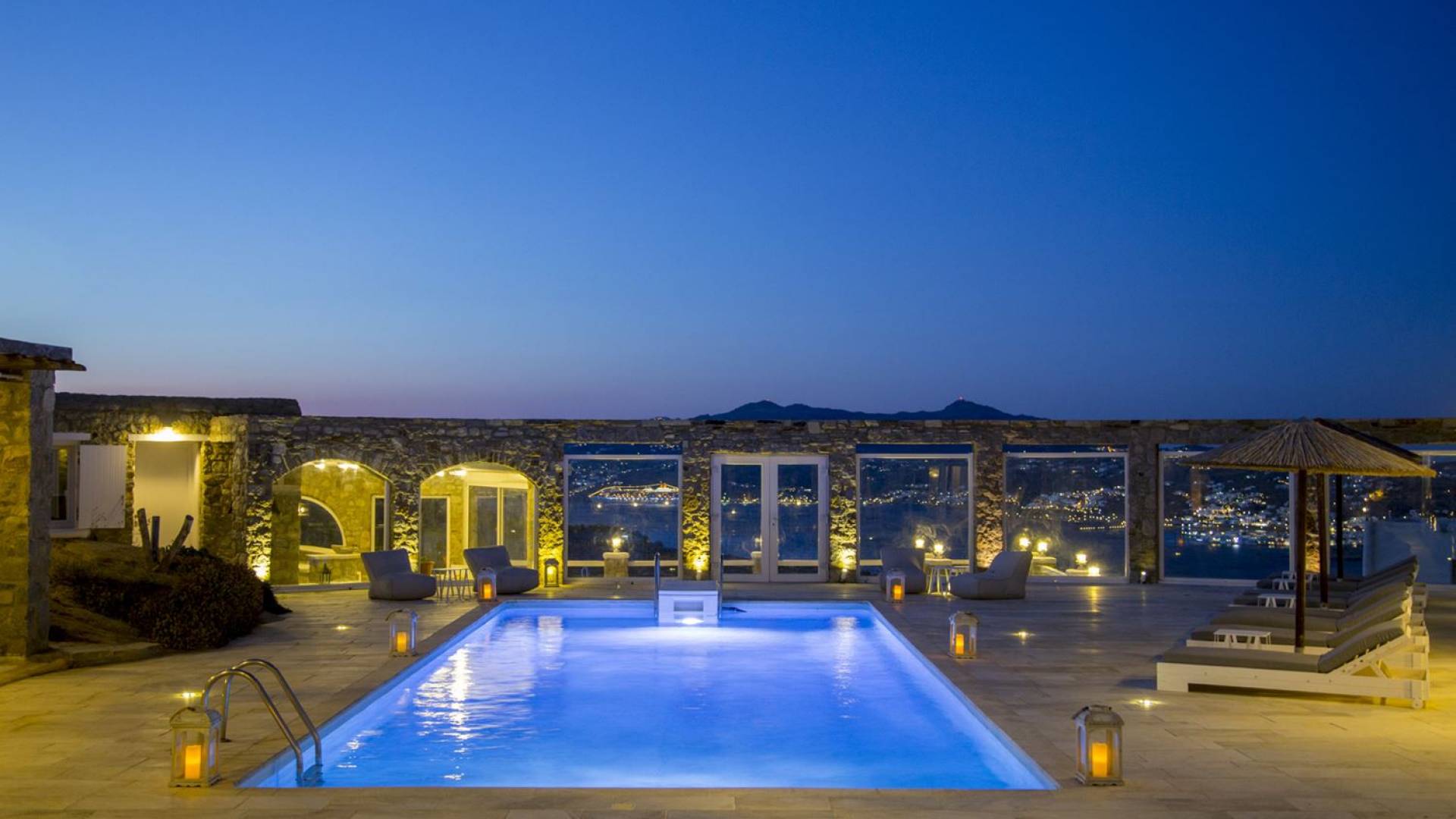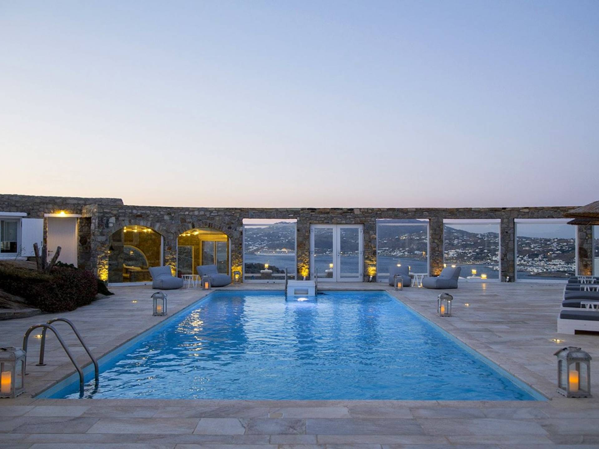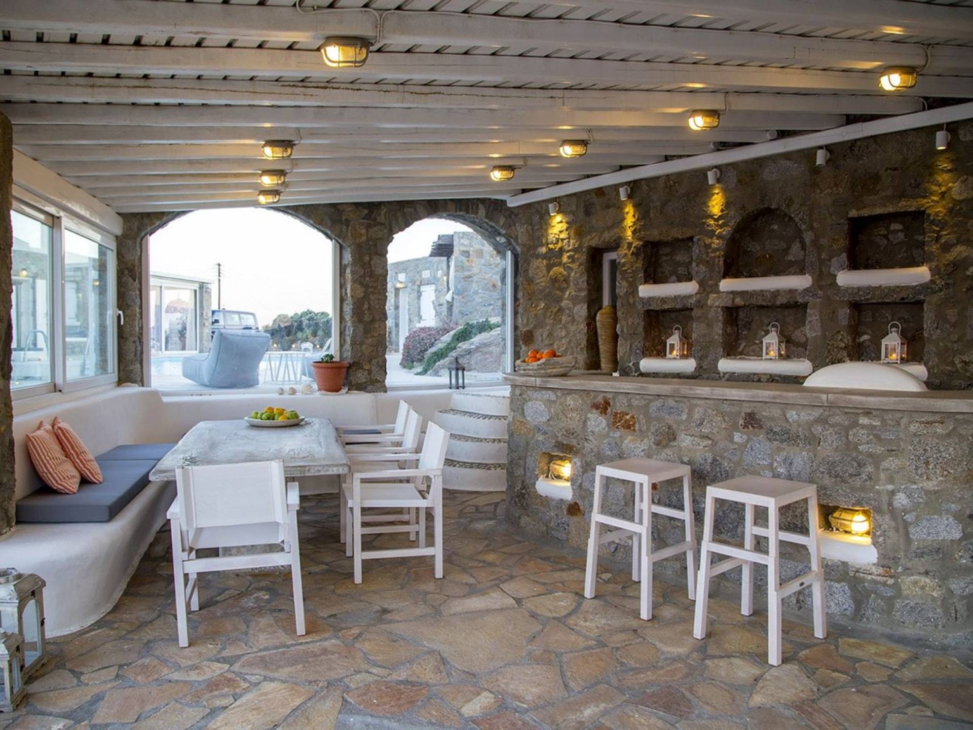 Villa Petrolefko offers a fully equipped kitchen & large living room with unique pieces of Cycladic art. Also, 4 bathrooms traditionally built with local materials & 2 WC. Wide terraces surround the house, overlooking magnificent views of Chora, Mykonos town & the bay area. Breathtaking beauty, elegant decoration & well-designed spaces position Ornos villa as the perfect option for your holidays in Mykonos! Wide terraces surround the house, overlooking magnificent views of Chora, Mykonos town & the bay area. Breathtaking beauty, elegant decoration & well-designed spaces position Ornos villa as the perfect option for your holidays in the “island of the winds”!