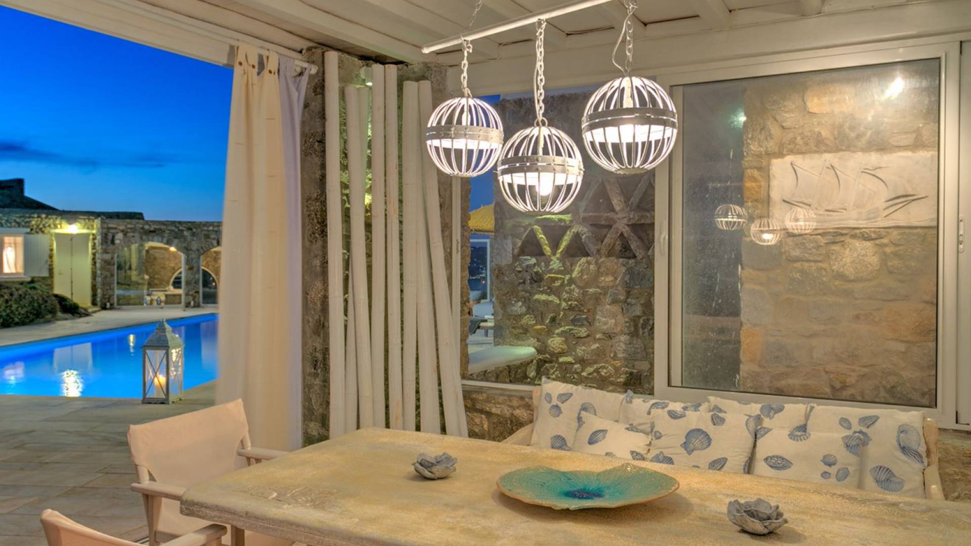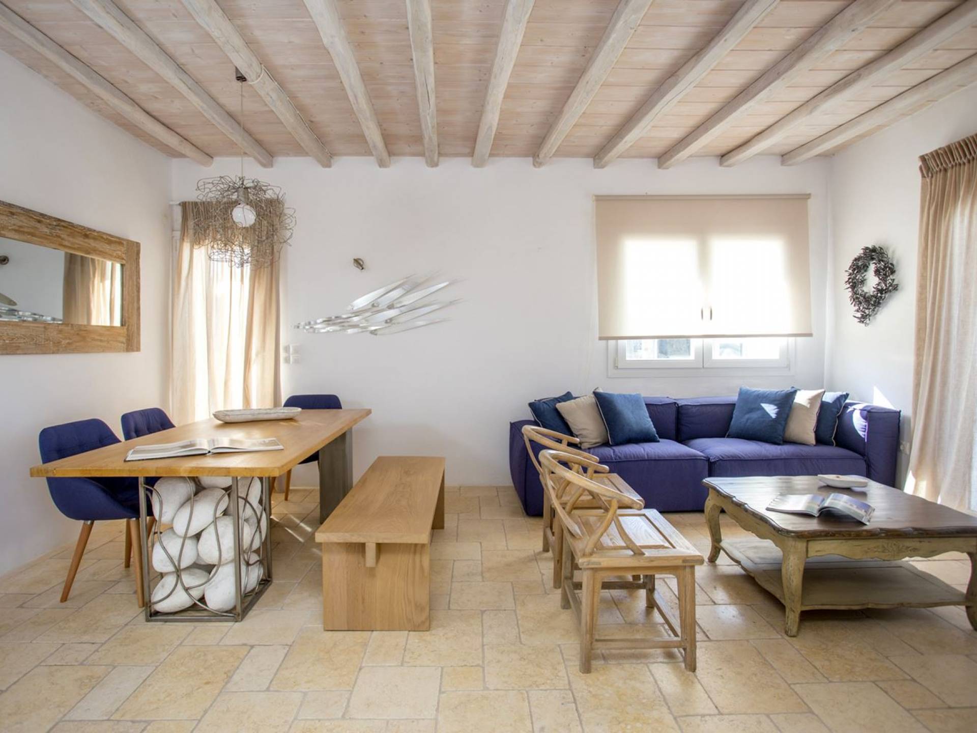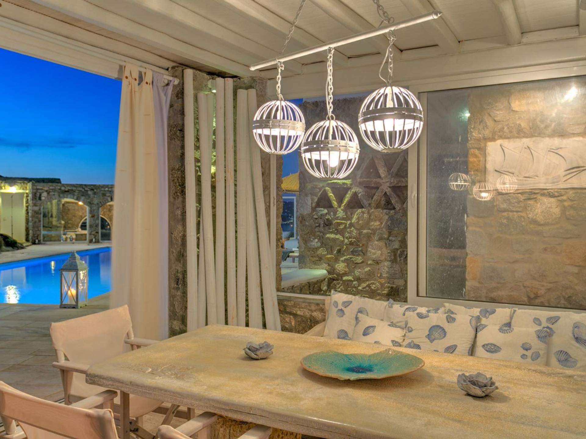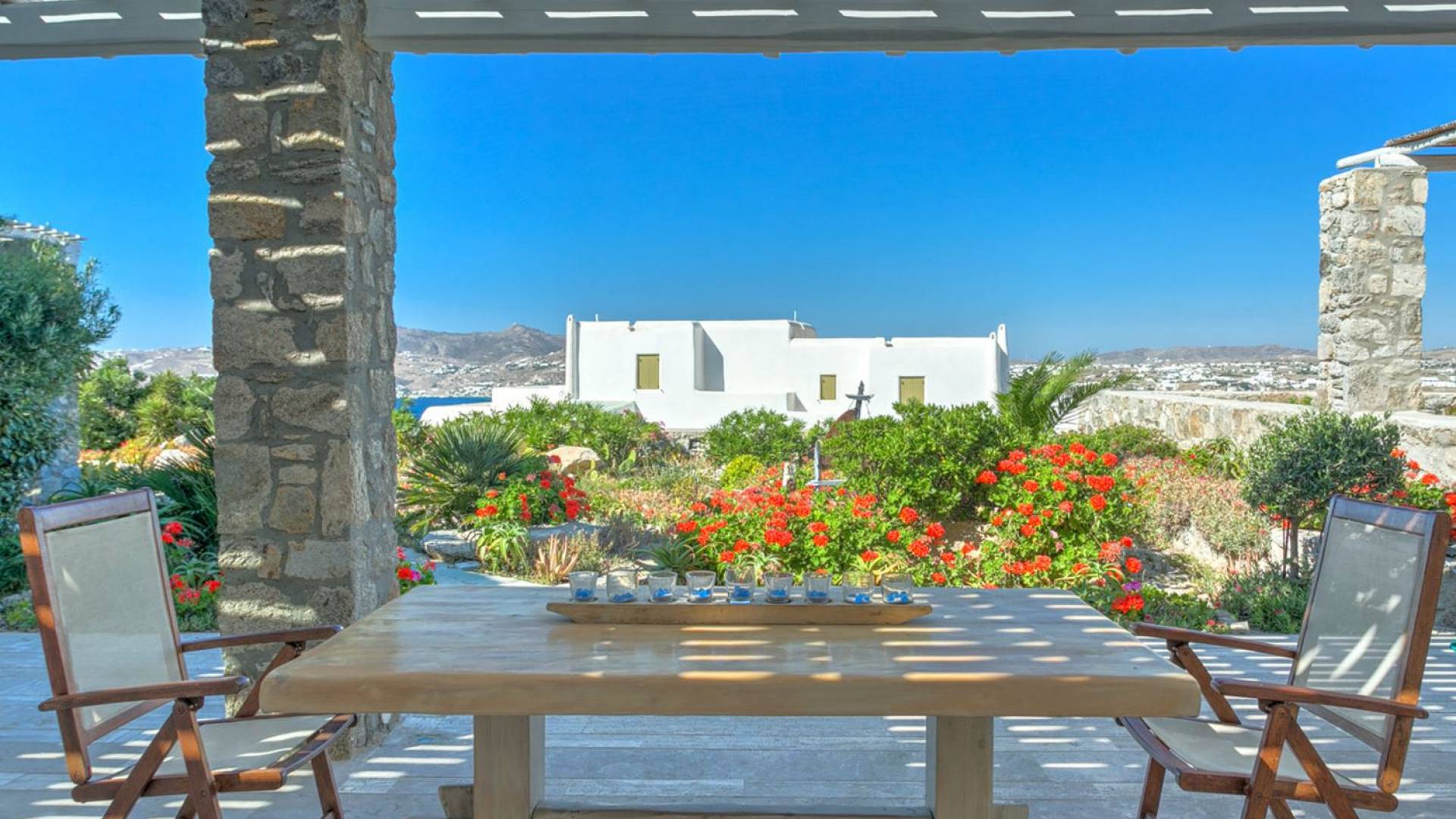 Villa Petrolefko offers a fully equipped kitchen & large living room with unique pieces of Cycladic art. Also, 4 bathrooms traditionally built with local materials & 2 WC. Wide terraces surround the house, overlooking magnificent views of Chora, Mykonos town & the bay area. Breathtaking beauty, elegant decoration & well-designed spaces position Ornos villa as the perfect option for your holidays in Mykonos! Wide terraces surround the house, overlooking magnificent views of Chora, Mykonos town & the bay area. Breathtaking beauty, elegant decoration & well-designed spaces position Ornos villa as the perfect option for your holidays in the “island of the winds”!