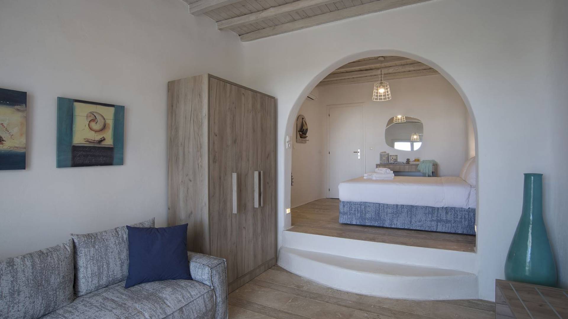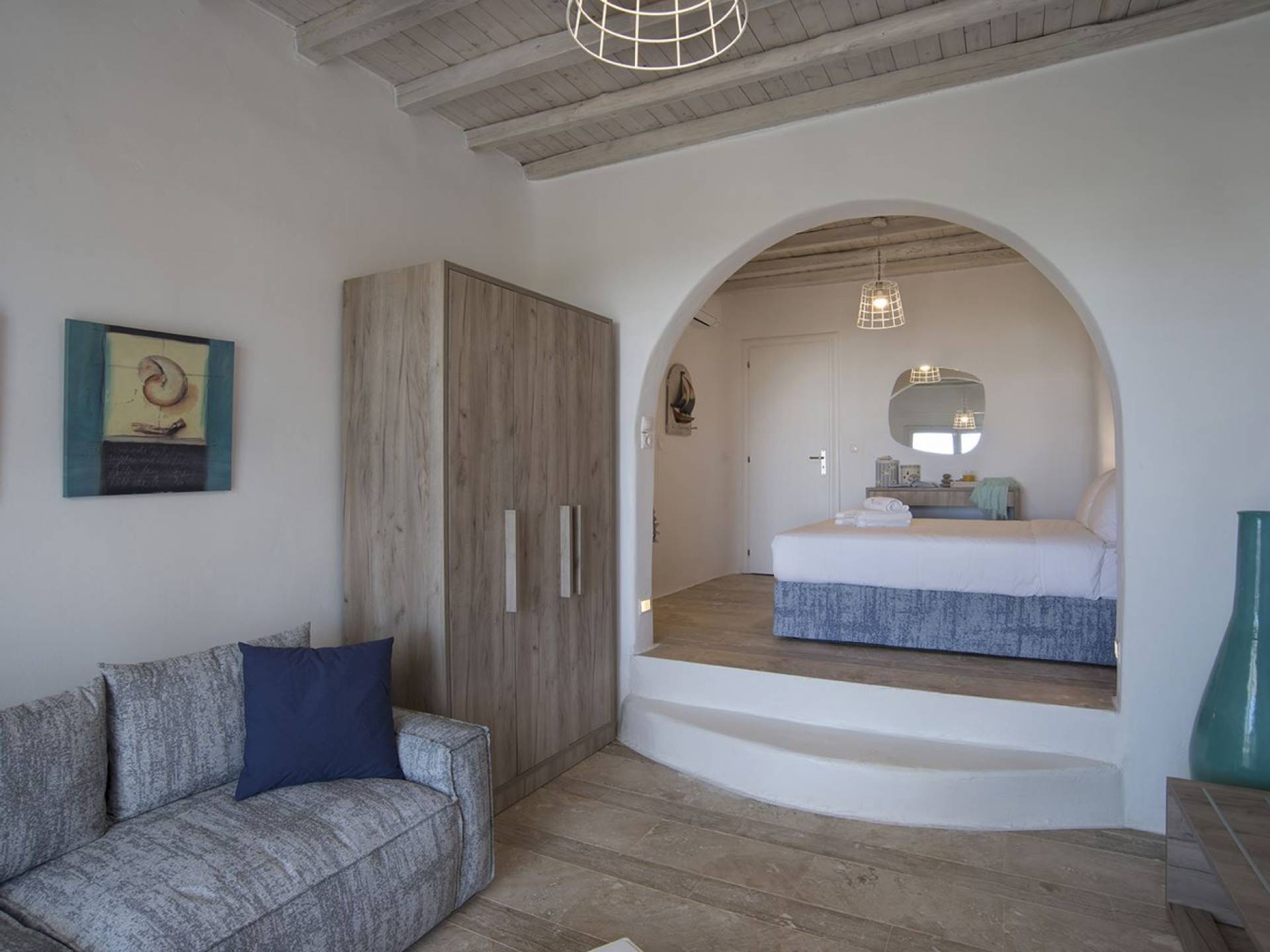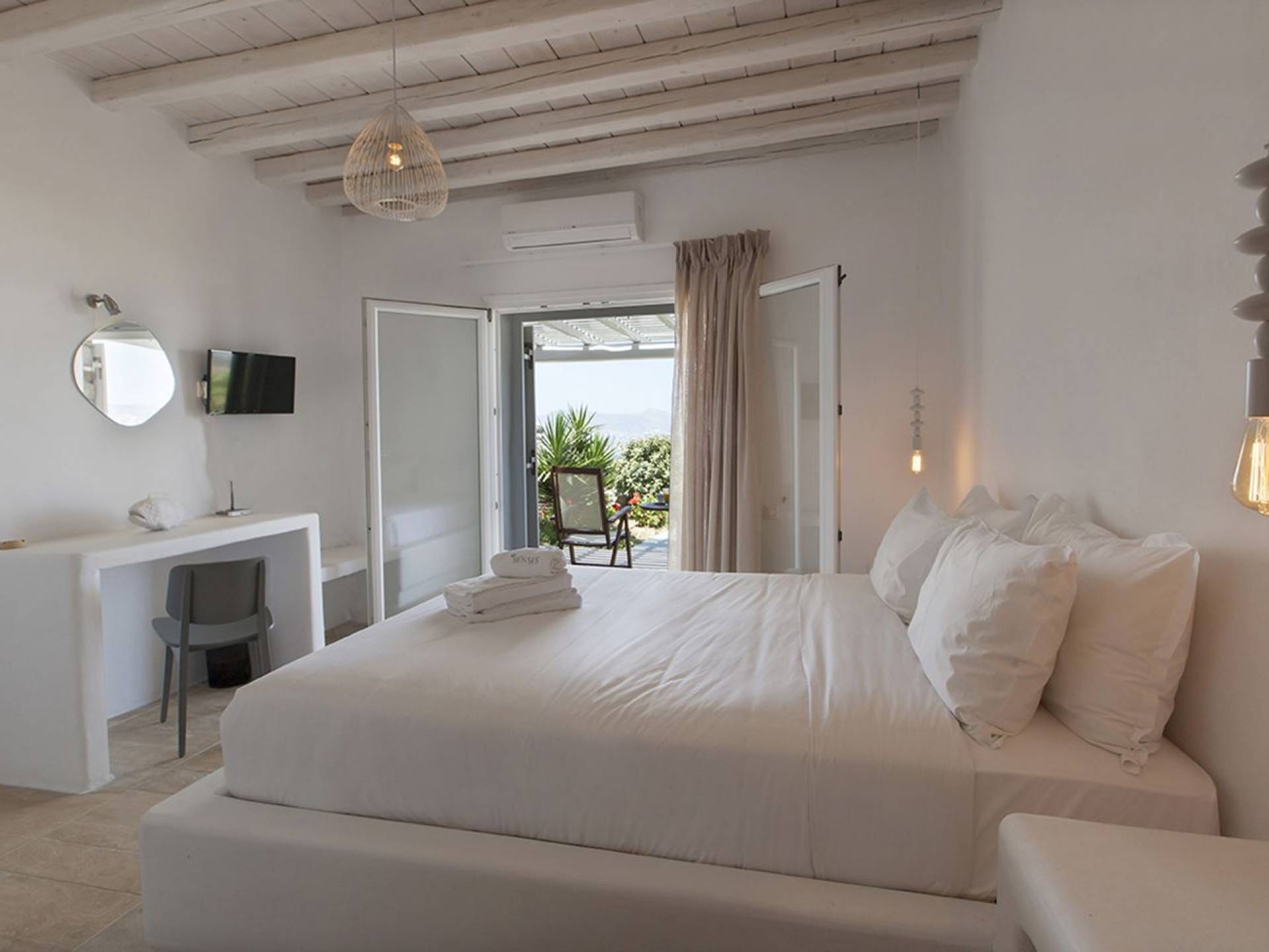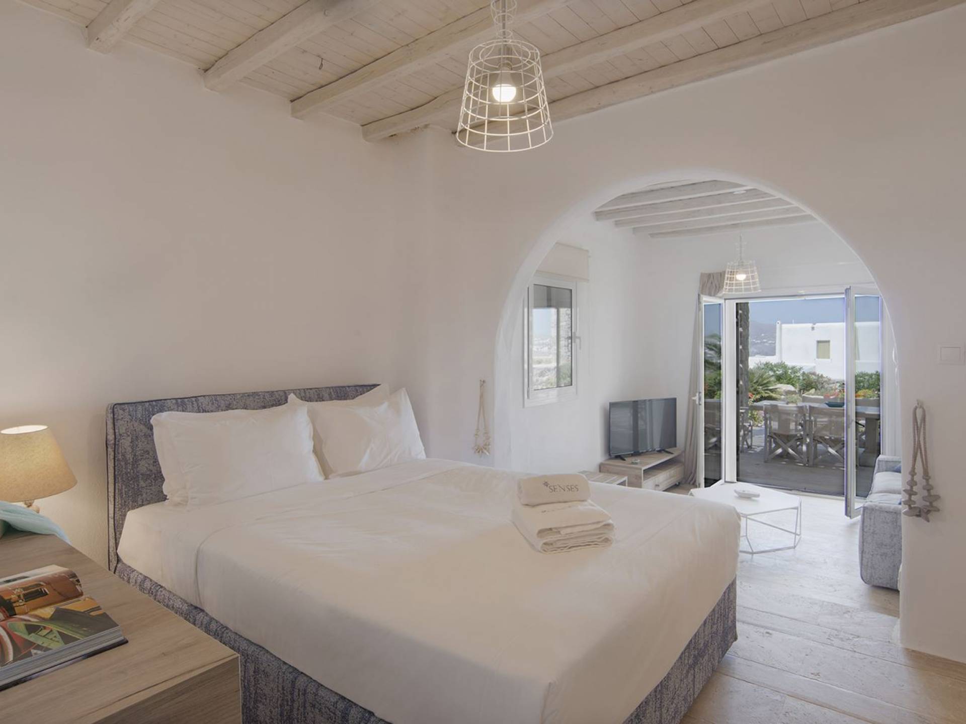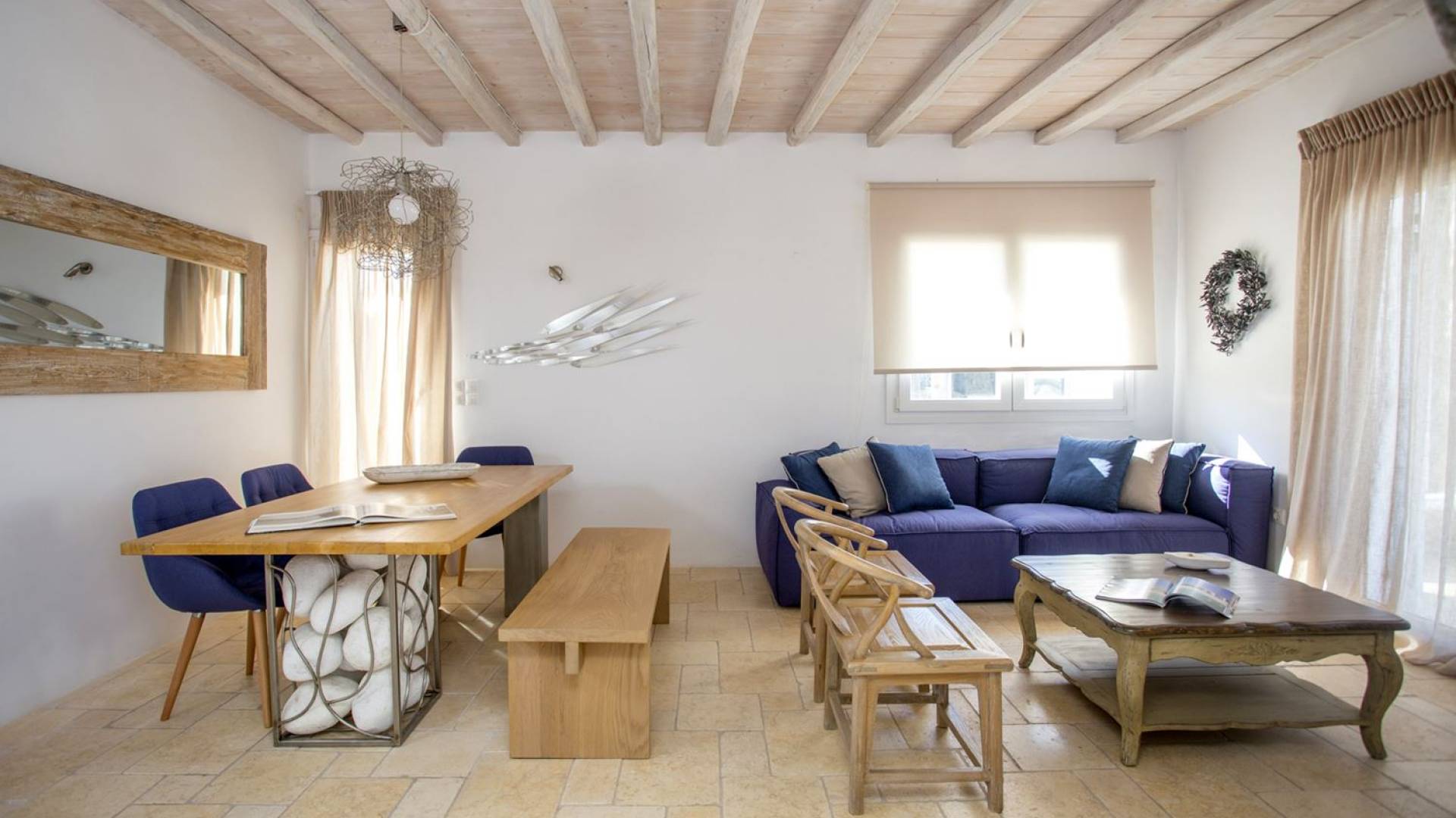 Villa Petrolefko offers a fully equipped kitchen & large living room with unique pieces of Cycladic art. Also, 4 bathrooms traditionally built with local materials & 2 WC. Wide terraces surround the house, overlooking magnificent views of Chora, Mykonos town & the bay area. Breathtaking beauty, elegant decoration & well-designed spaces position Ornos villa as the perfect option for your holidays in Mykonos! Wide terraces surround the house, overlooking magnificent views of Chora, Mykonos town & the bay area. Breathtaking beauty, elegant decoration & well-designed spaces position Ornos villa as the perfect option for your holidays in the “island of the winds”!