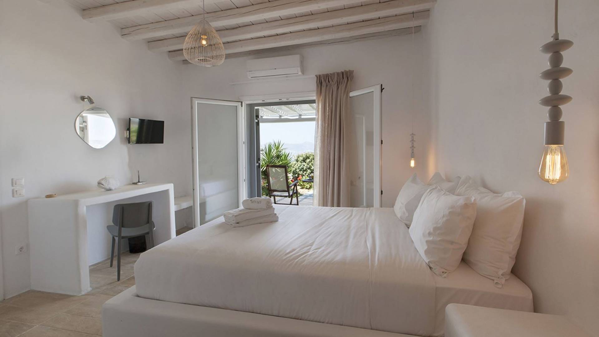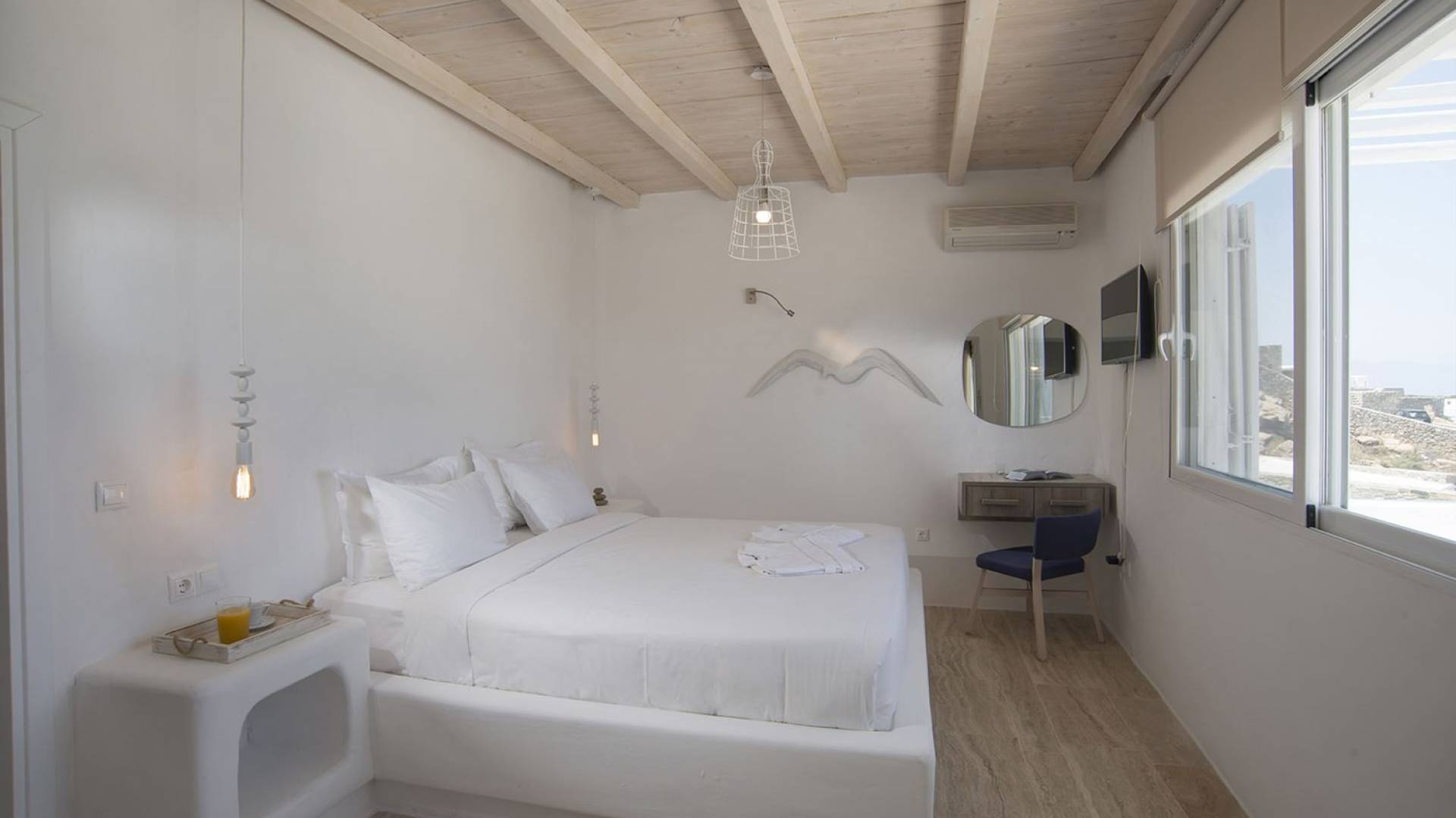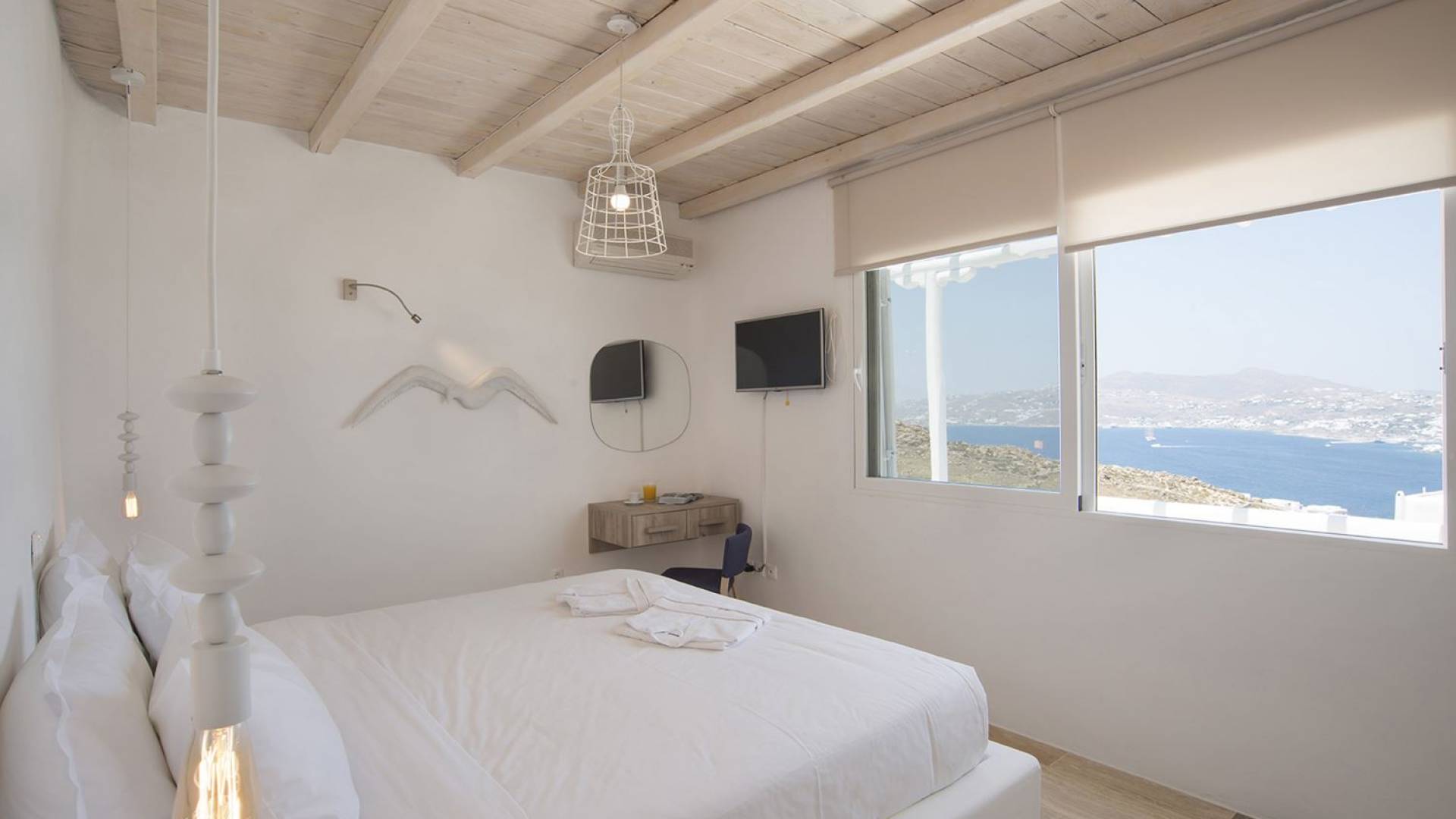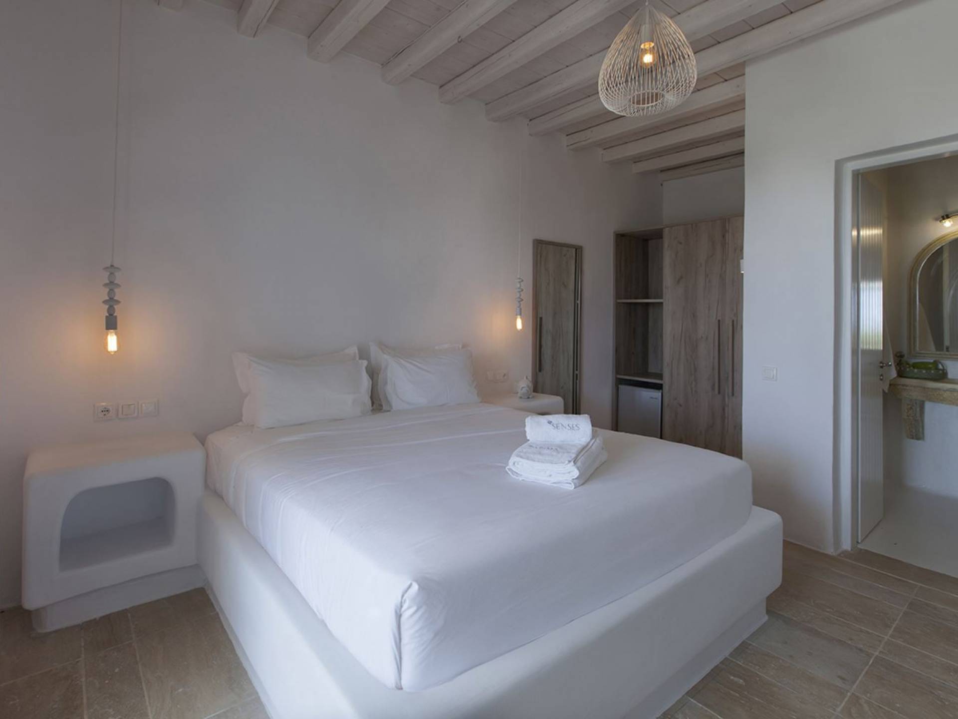 Villa Petrolefko offers a fully equipped kitchen & large living room with unique pieces of Cycladic art. Also, 4 bathrooms traditionally built with local materials & 2 WC. Wide terraces surround the house, overlooking magnificent views of Chora, Mykonos town & the bay area. Breathtaking beauty, elegant decoration & well-designed spaces position Ornos villa as the perfect option for your holidays in Mykonos! Wide terraces surround the house, overlooking magnificent views of Chora, Mykonos town & the bay area. Breathtaking beauty, elegant decoration & well-designed spaces position Ornos villa as the perfect option for your holidays in the “island of the winds”!