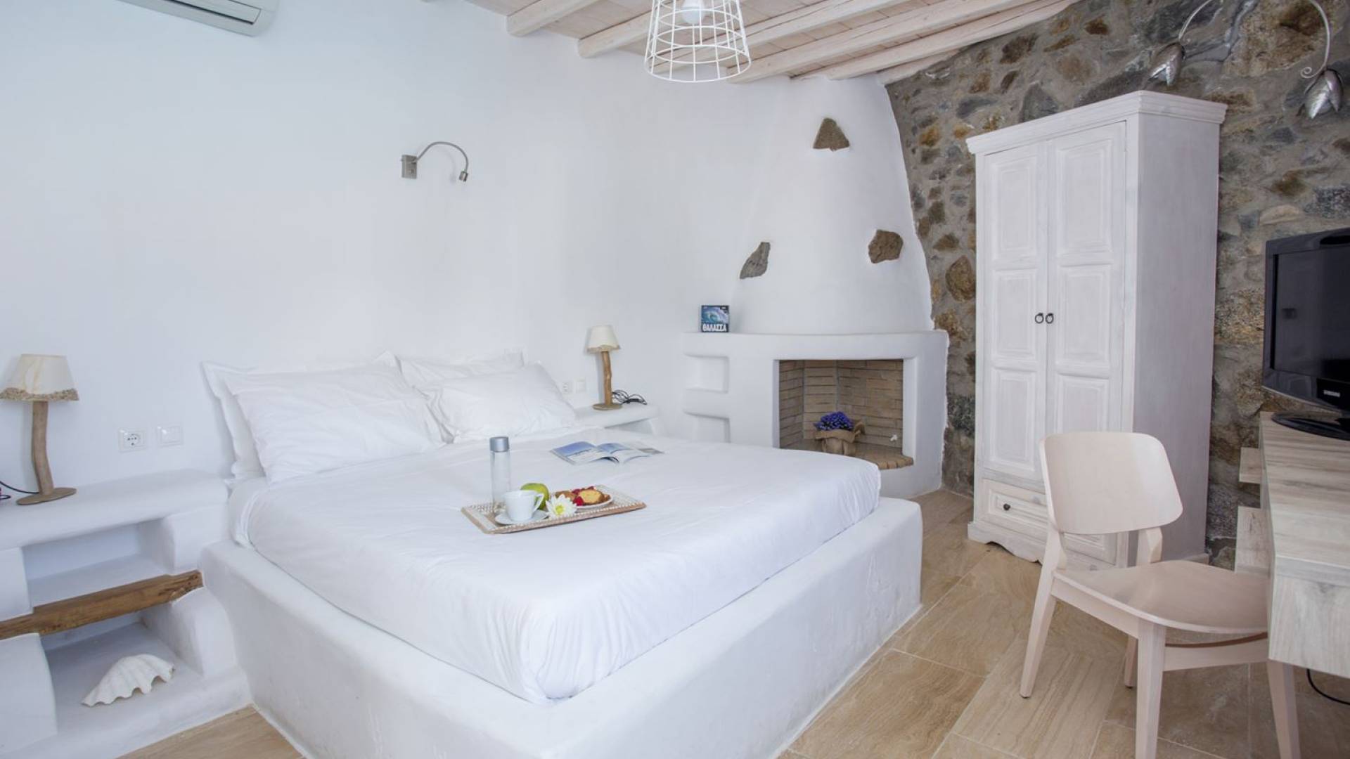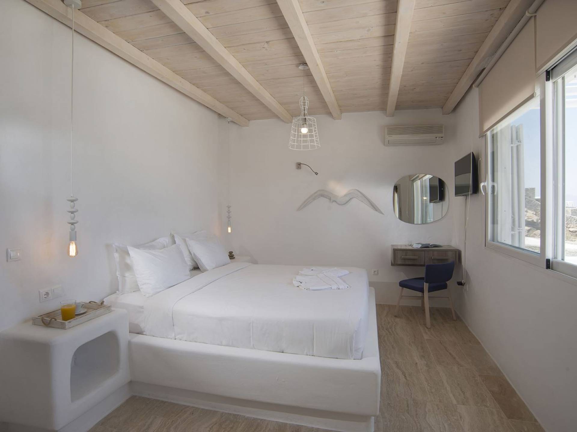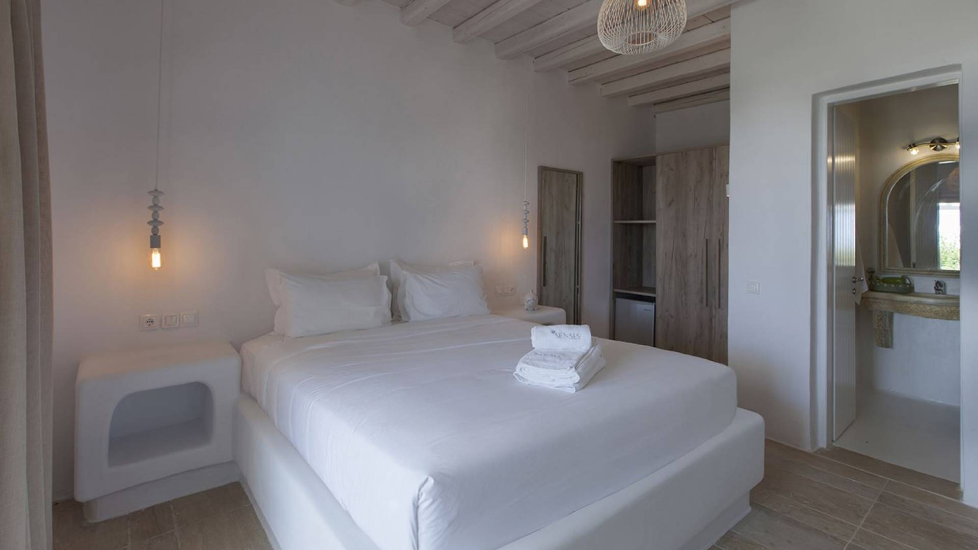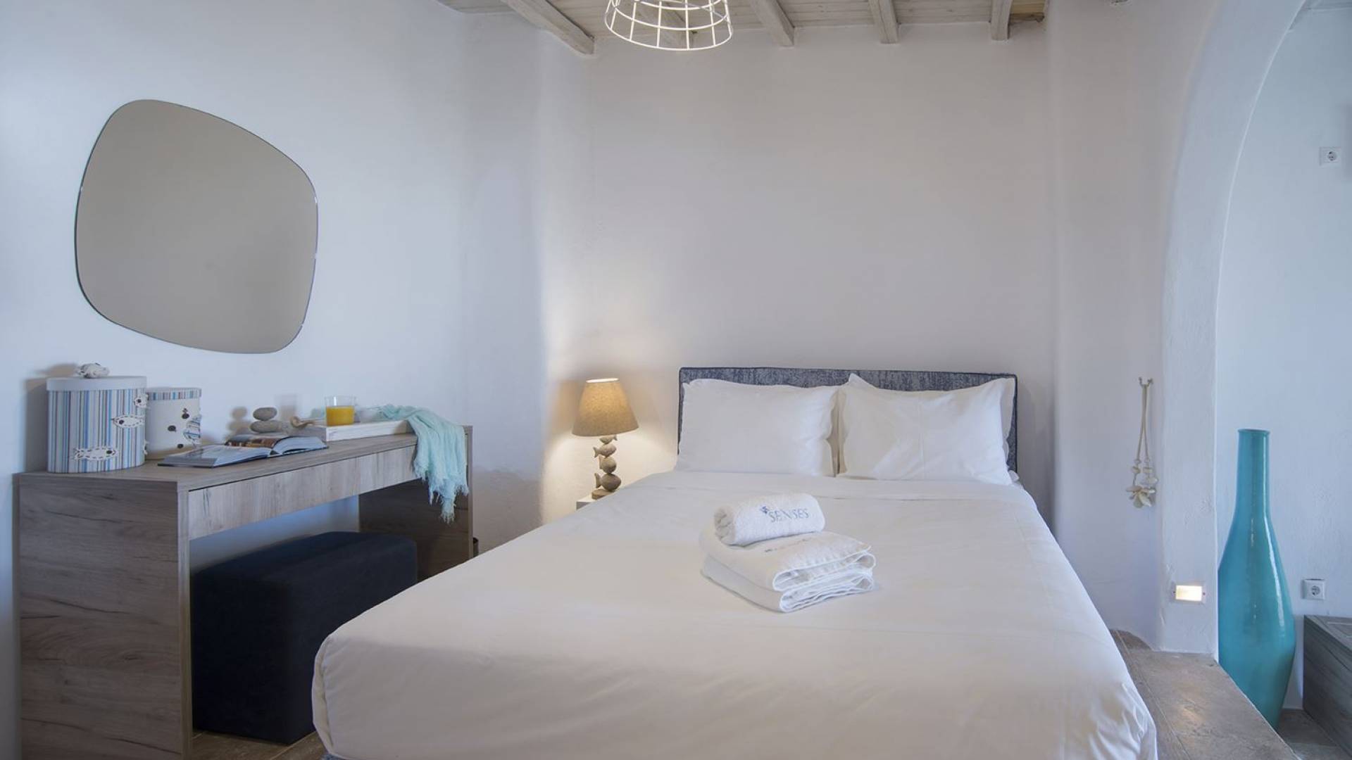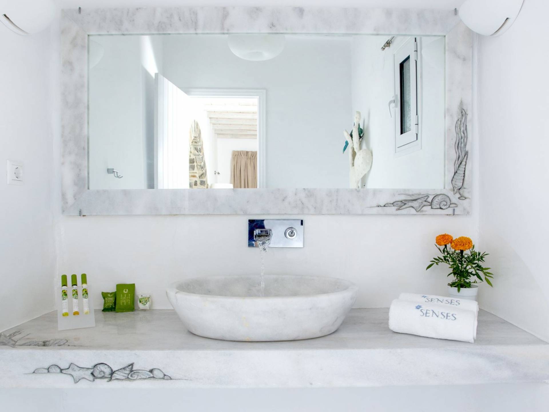 Villa Petrolefko offers a fully equipped kitchen & large living room with unique pieces of Cycladic art. Also, 4 bathrooms traditionally built with local materials & 2 WC. Wide terraces surround the house, overlooking magnificent views of Chora, Mykonos town & the bay area. Breathtaking beauty, elegant decoration & well-designed spaces position Ornos villa as the perfect option for your holidays in Mykonos! Wide terraces surround the house, overlooking magnificent views of Chora, Mykonos town & the bay area. Breathtaking beauty, elegant decoration & well-designed spaces position Ornos villa as the perfect option for your holidays in the “island of the winds”!
