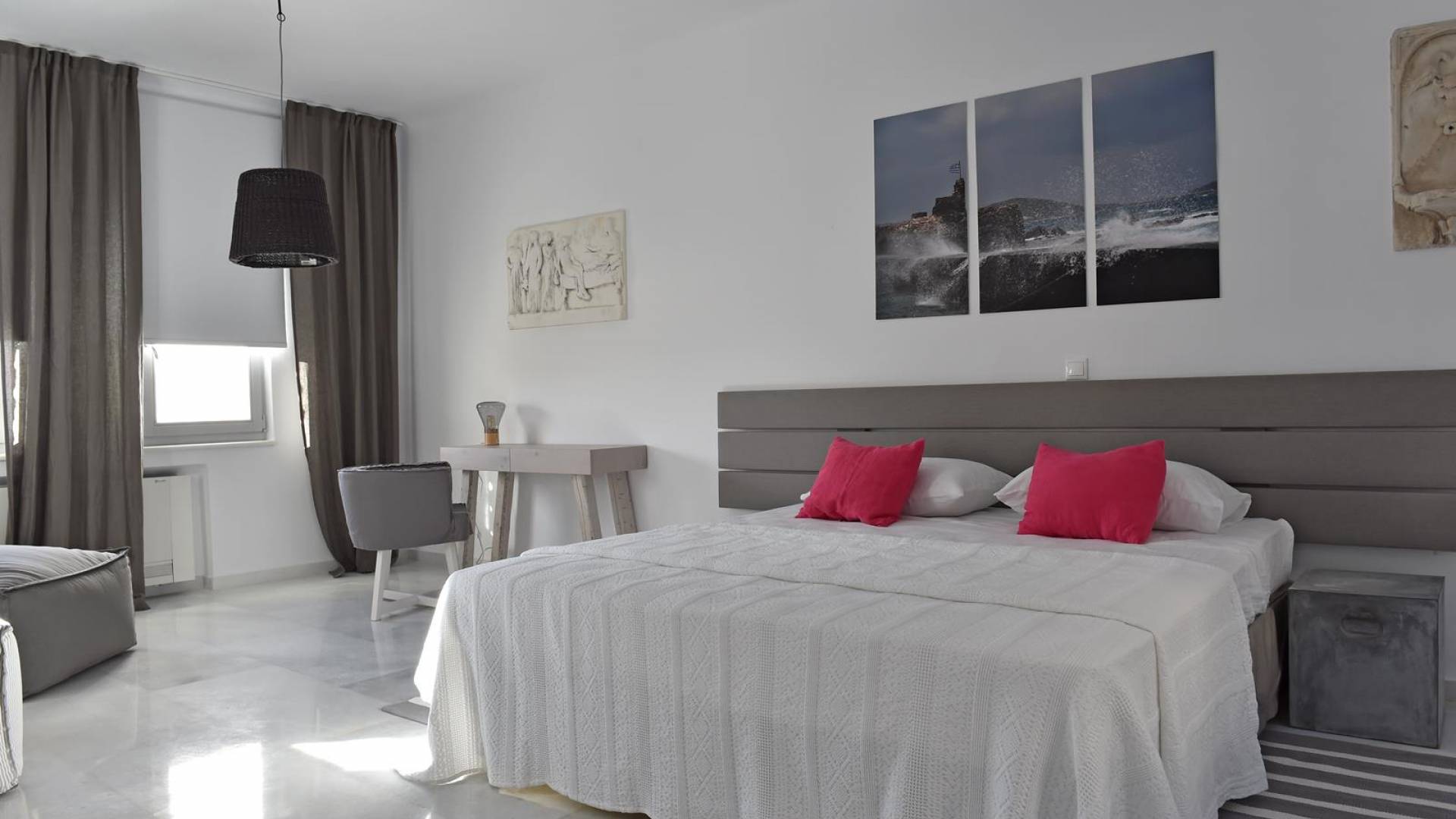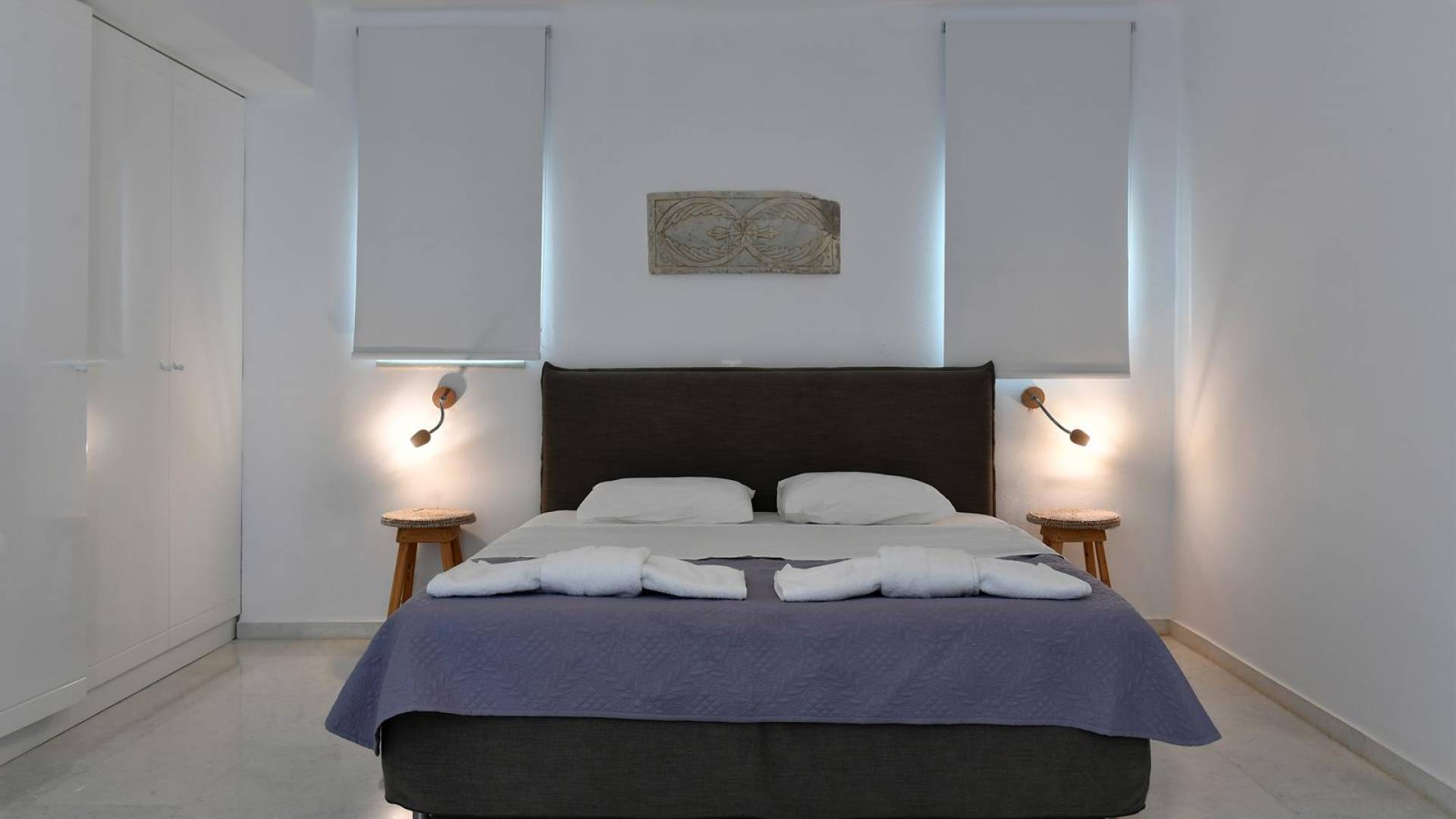 Guest House 1: Double room with en suite bathroom and private entrance (shower, king size bed, A/C, TV, mini-fridge, safe box, sea view). Guest House 2: Double room with en suite bathroom and private entrance (shower, king size bed, seating area, A/C, TV, mini fridge, safe box, sea view). Guest House 3: Triple room with en suite bathroom (shower, two areas with 3 single beds, A/C, TV, mini-fridge, safe box, sea view).