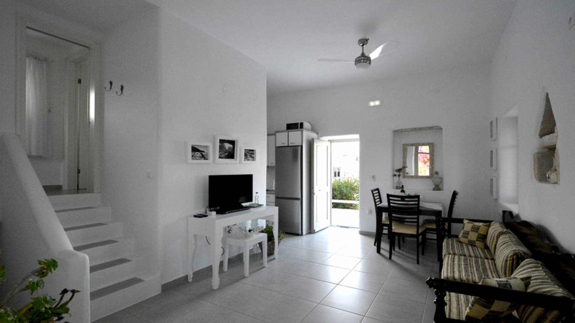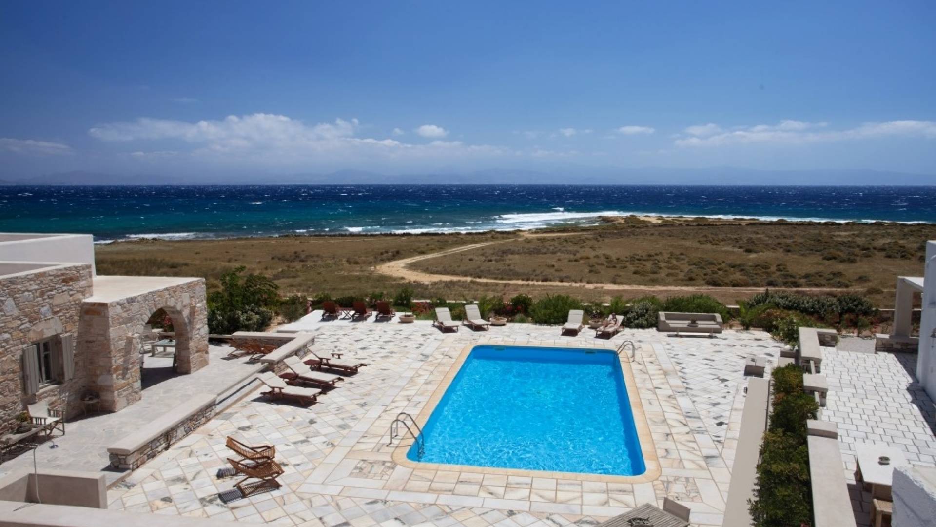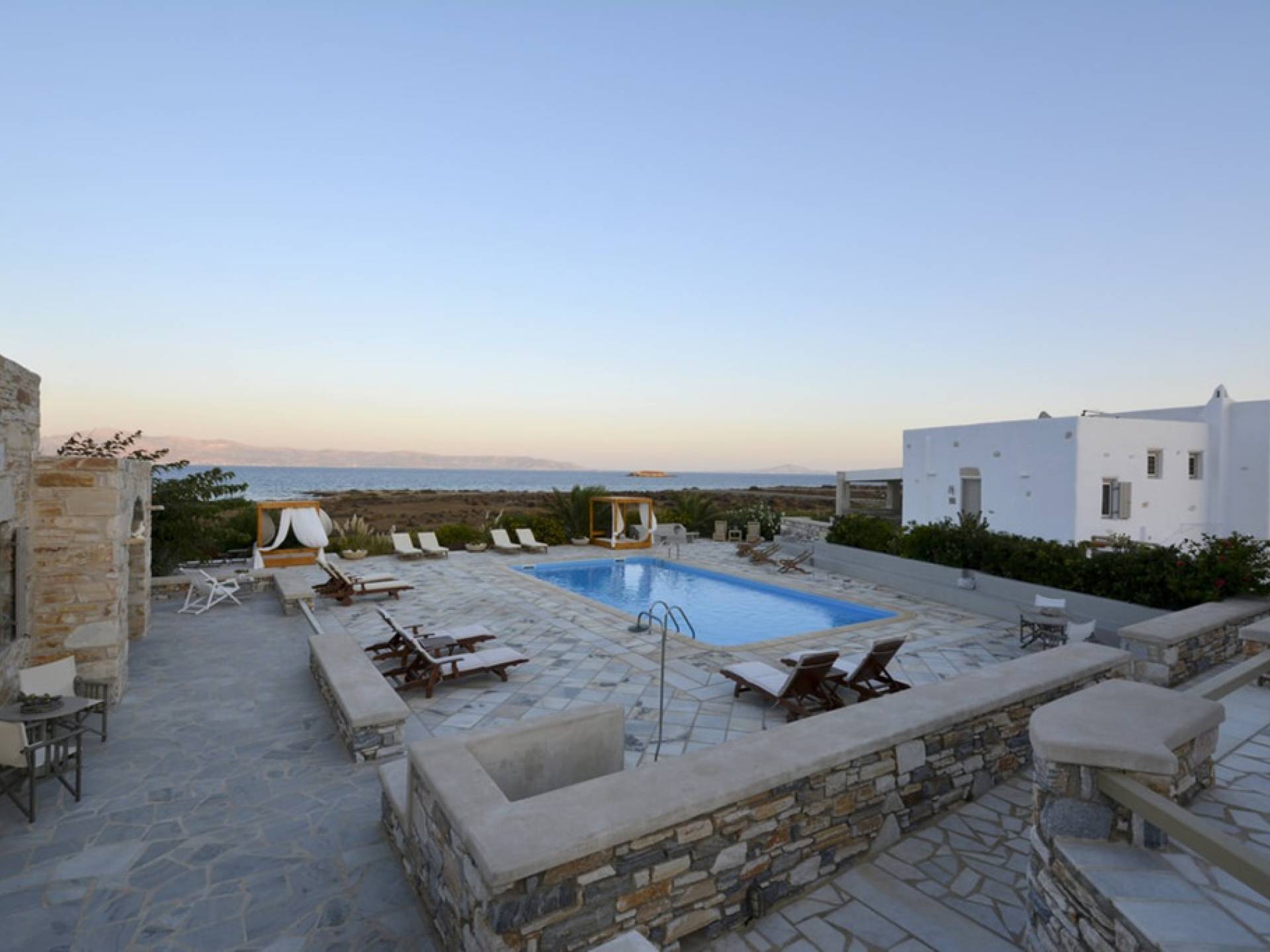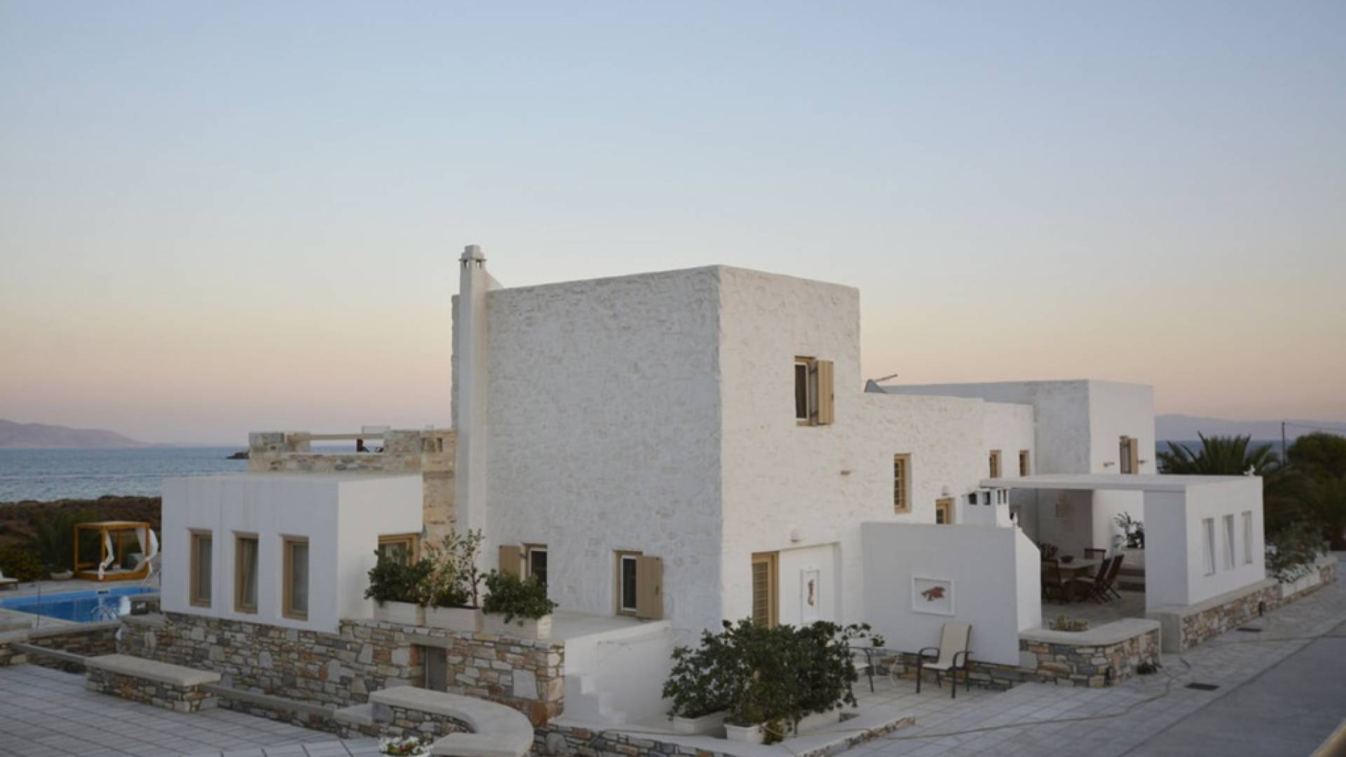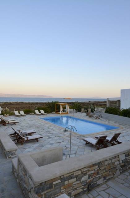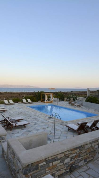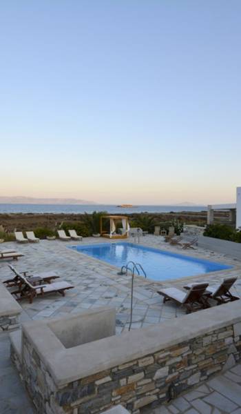 The internal, as well as the external spaces, are drawn with fineness and luxury. The interiors are equipped with beautiful furniture and unique pieces of art. All villas have an open view of the sea and the island of Naxos from every place you choose to sit and can offer you real relaxation. The complex offers also a big garden, parking facilities as well as a large common yard with a large swimming pool.